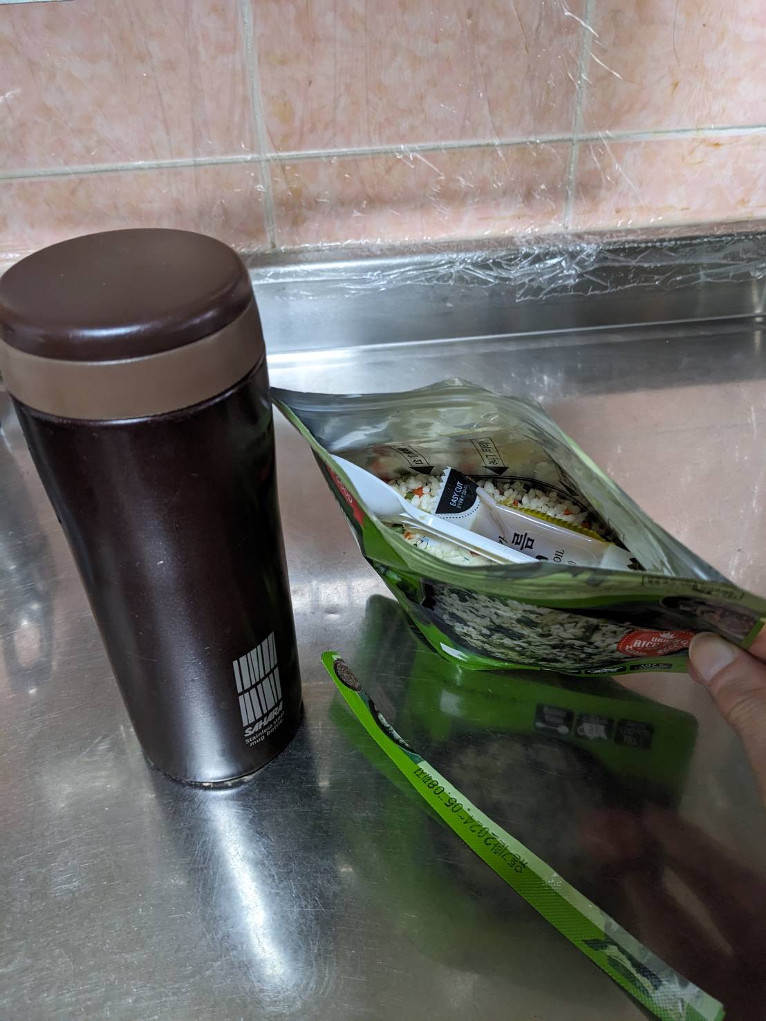 3.靜待9分鐘後,加入調味包、芝麻油包