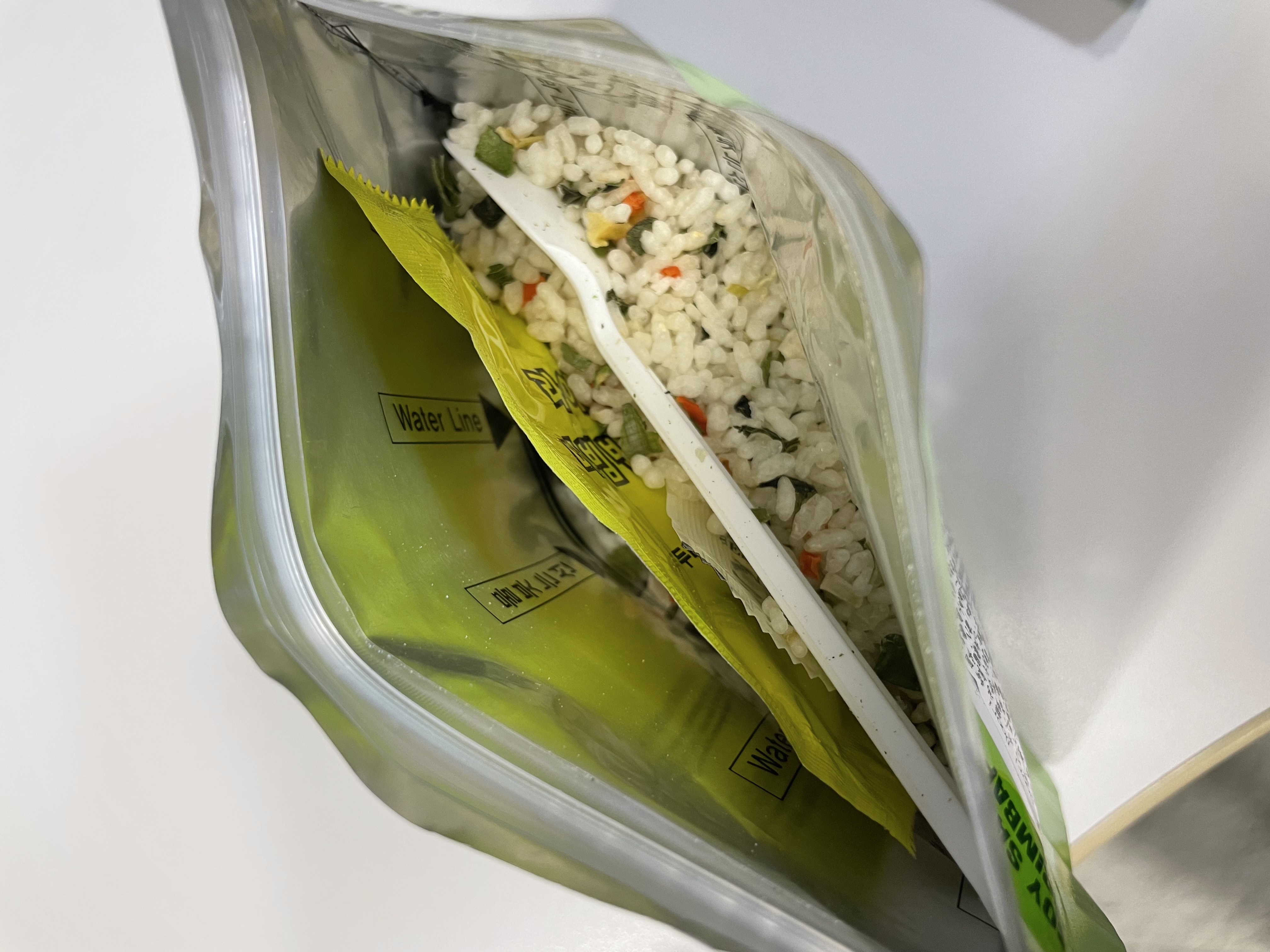 2.加入熱水至包裝內指示線,充分攪拌後將夾鏈袋緊密關起