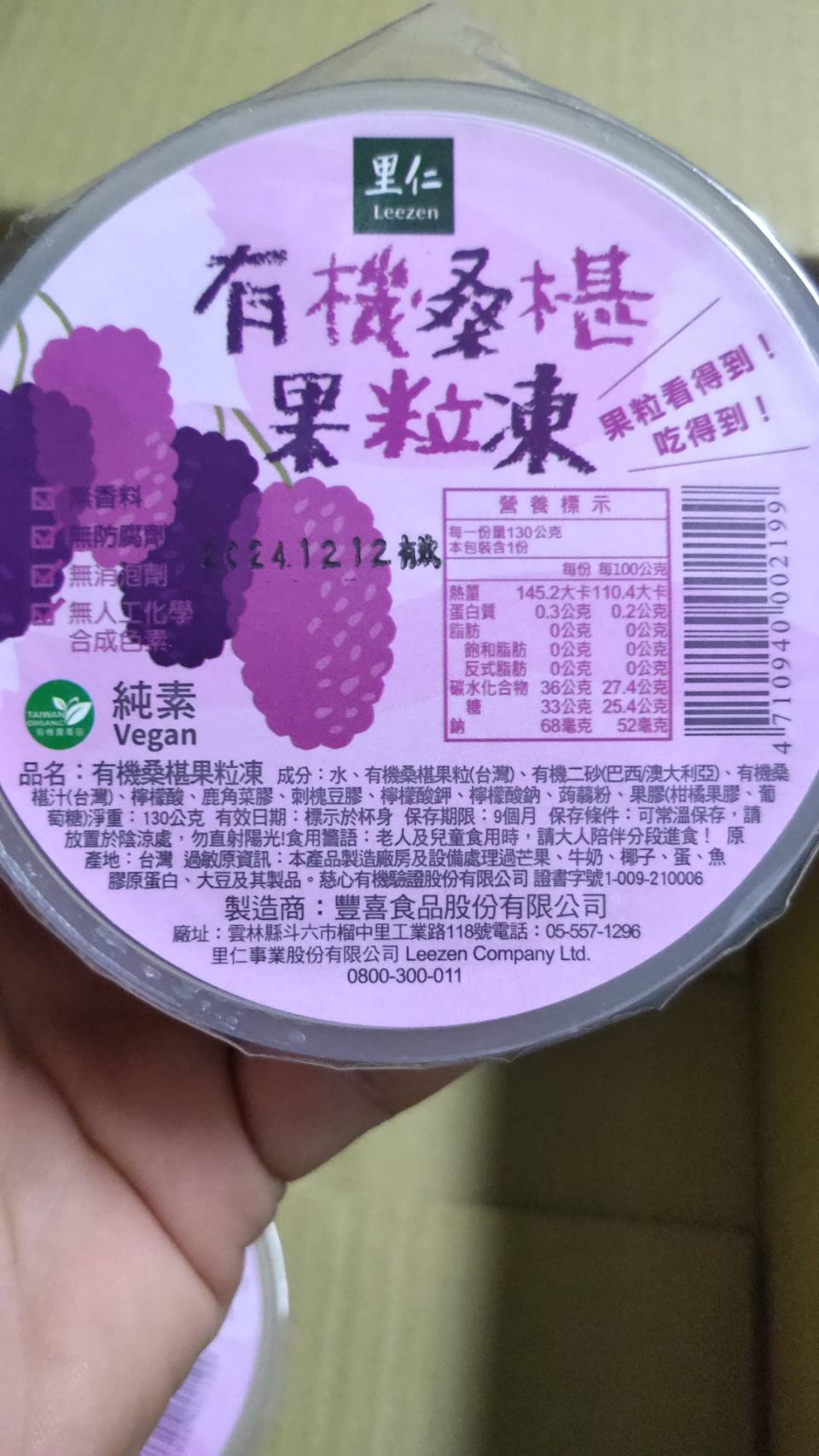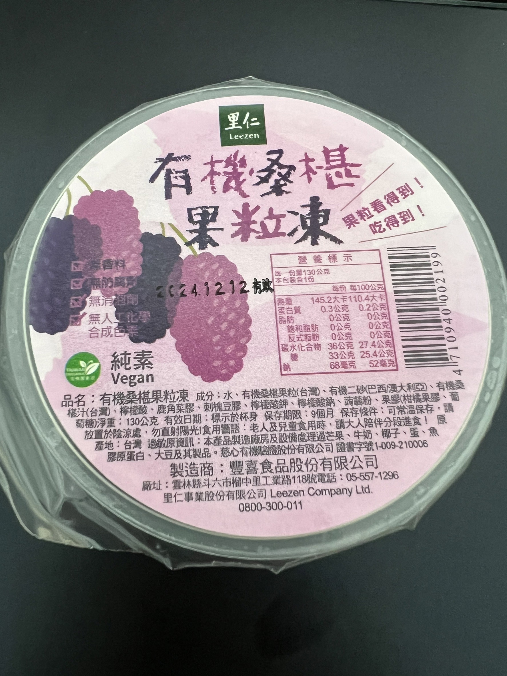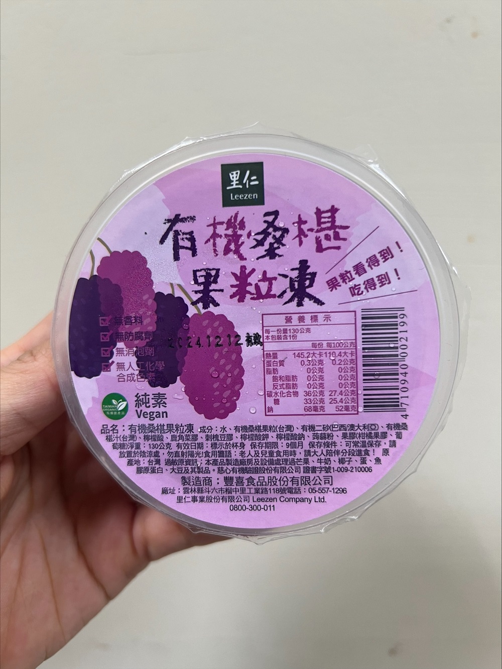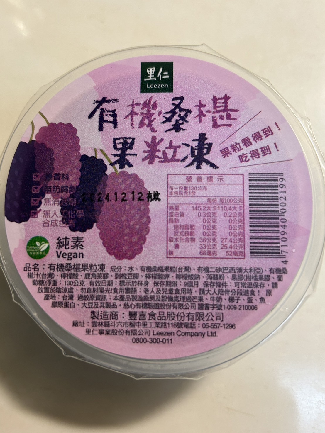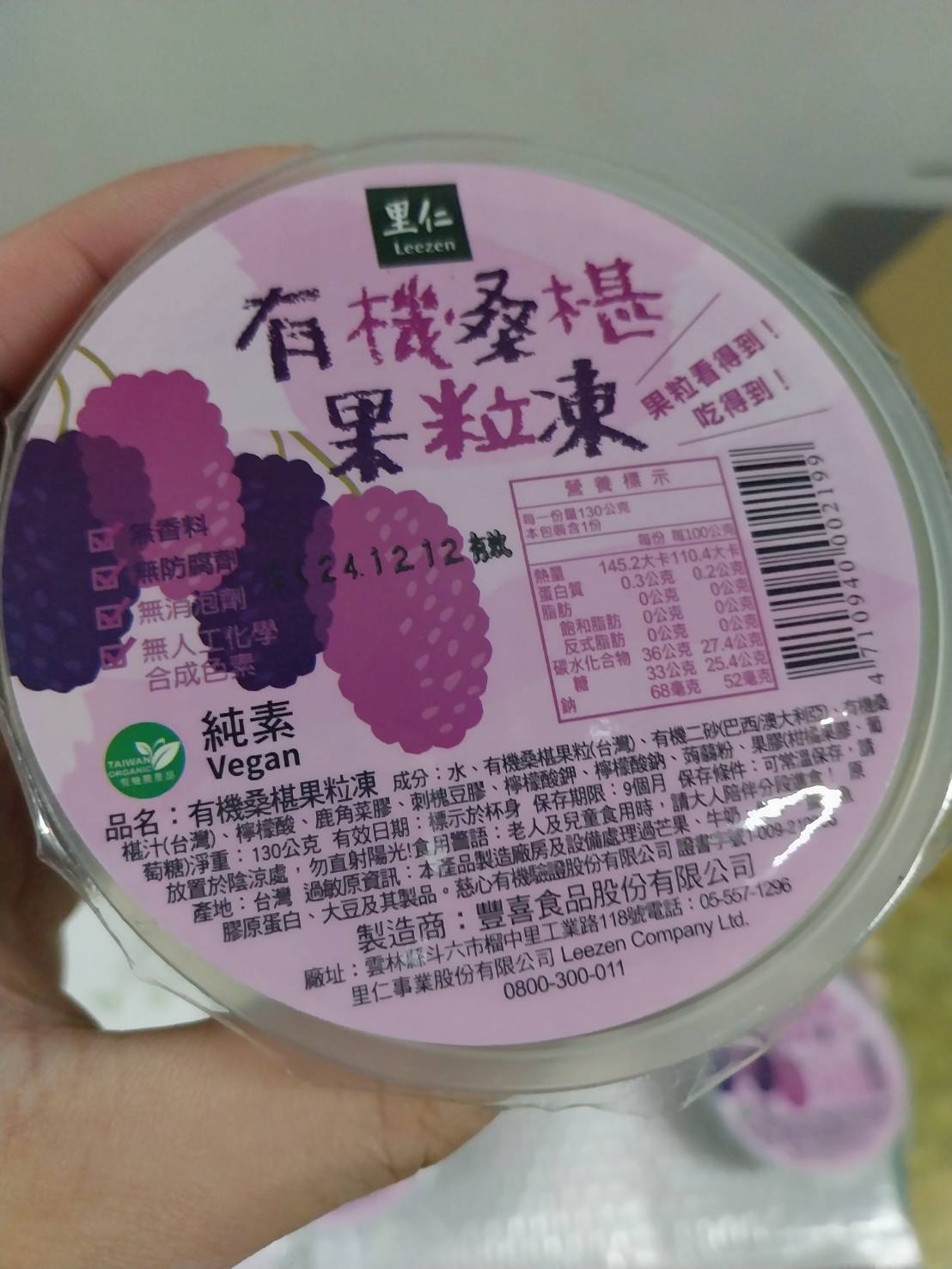 回列表 里仁 有機桑椹果粒凍 濃郁桑椹果香 酸酸甜甜 Q彈滑潤 市價$35/1個(免費申請) 所需等級 一般會員以上 所需學分 30 體驗份數 50 關注人數 842 申請人數 267 申請截止 品牌業者:里仁事業股份有限公司 負責廠商 豐喜食品股份有限公司 廠商地址 640雲林縣斗六市工業路118號 產地 台灣 試用產品規格 130g/個,共3個 食品業者登錄字號 P-123780871-00000-9 投保產品責任險字號 131213AKP0000105 心得分享 商品介紹 商品成分 使用方法 注意事項 體驗名單 9.2 里仁 有機桑椹果粒凍 果味濃郁 9.4 層次豐富 9.0 Q彈滑順 8.9 真材實料 9.5 建議推薦 9.1 心得分享 48則 Sandra Chien 金食達人 26歲 新北市 2024/06/24 對里仁 有機桑椹果粒凍留下評價 10 一顆果凍重達130g分量很足夠,倒扣在盤子上看起來格外美味可口果凍本身非常Q彈, 口感很順滑,是屬於軟嫩、入口即化那種,只需淺嚐一口就能感受到濃濃的桑葚味,味道非常濃郁之外不會過於死甜,是桑葚本身帶有的酸酸甜甜的味道更讓人驚喜的是裡面竟然還有3~4個完整的桑葚果肉,誠意十足啊!搭配著果凍一起吃,整顆吃完都不覺得膩口,相反的十分清爽,還有點回甘的感覺在吃之前可以先拿去冰箱冷藏,炎熱的天氣裡吃上一顆冰冰涼涼的真的非常消暑! Isa 金食達人 45歲 臺南市 2024/06/24 對里仁 有機桑椹果粒凍留下評價 10 里仁 有機桑椹果粒凍酸酸甜甜的口感,冰過更好吃,當果凍(常溫)吃的時候,QQ的果凍,切開可以看見整顆完整的桑椹,真是料好實在、甜酸味十足,不像一般果凍甜到膩。個人覺得里仁 有機桑椹果粒凍放進冷凍庫後,又是一種不一樣的滋味,可以拿著叉子,像在挖冰淇淋一樣吃,或者,就插著冷凍的果粒凍,像吃冰棒一樣,超級消暑的,不過,冷凍過後,原本有的酸甜味會降低許多,口感不像常溫吃的那麼豐富,也比較感覺不到整顆桑椹粒的果凍,兩種口感不一樣,但我都還蠻喜歡的~ 琪琪 鑽石達人 32歲 臺中市 2024/06/26 對里仁 有機桑椹果粒凍留下評價 10 一直對於里仁的產品天然、無添加有很好的印象,十分喜歡里仁產品不加化學合成添加物的理念,這次是吃的產品是「有機桑椹果粒凍」,隨箱還有送了幾本里仁的雜誌,裡面的故事蠻有趣的也學習到很多新知。試吃的果凍有三顆,一打開裡面有濃濃的桑椹果汁和多顆桑椹果粒,桑椹很容易壓爛、壓壞,平常在外面很難買到新鮮桑椹,更難買到有機桑椹!這款產品能吃到酸酸甜甜的桑椹果汁與果凍,還有顆顆飽滿的完整桑椹果粒,是好吃又值得推薦的小點心! 黃香婷 金食達人 29歲 高雄市 2024/06/26 對里仁 有機桑椹果粒凍留下評價 10 很開心抽中了里仁的有機桑椹果粒凍,冰起來冰冰涼涼的很適合夏天,像是紅酒一般的顏色,也令人食指大動。里仁的的食品讓人很放心,這款嚴選了有機桑椹果實,無添加人工色素和防腐劑,給人一種健康和天然的信任感。很放心給小孩吃,口味上擁有豐富的層次,香氣在口中散發出來。而且在食材的選擇和製作的精細度上也表現出色。無論是作為甜點還是小吃,都是一個非常不錯的選擇,特別是在夏天享用,清爽又開胃。總的來說,這次的試吃讓我對里仁的有機桑椹果粒凍印象深刻。 謝子勤 金食達人 33歲 桃園市 2024/06/27 對里仁 有機桑椹果粒凍留下評價 10 起初以為是很平常的果凍,頂多放一顆桑葚而已,沒想到大吃一驚,一個果凍裡面居然放了三顆桑葚,而且是非常大且完整的。除了含有三顆完整桑葚外,果凍本身的質地也是很棒的,不會太過堅實,不像有些果凍太堅實而有一種假假的感覺。風味的部份吃得到天然桑葚本身的風味,酸酸甜甜的,冰在冰箱,適合在炎熱的夏天當甜點,清涼又消暑。 朱育瑩 鑽石達人 39歲 彰化縣 2024/06/28 對里仁 有機桑椹果粒凍留下評價 10 感謝里仁抽中試吃機會,「有機桑椹果粒凍」剛收到時,原本以為吃起來會很酸,但實際吃的時候,不再是以前印象中桑椹的酸感,甜度和酸度的比例對我來說,非常適合,而且風味非常不錯。如同名稱一樣真的吃的到完整果粒,但是「凍」的感覺可以再硬一點,個人覺得有點軟,口感上比較沒有咀嚼感,然而對於小朋友來說是蠻剛好的。正值夏季天氣炎熱,先放進冰箱冰一陣子,再食用的話,風味和口感又是另一種感受,非常消暑,尤其當小孩子在外面玩耍回來時,想吃冰涼的食物時,給他們吃果粒凍再加入一些牛奶或優格等,也是不錯的選擇喔! 蔡佳明 金食達人 29歲 屏東縣 2024/06/26 對里仁 有機桑椹果粒凍留下評價 10 很開心能抽中里仁的有機桑椹果粒凍,因為本身就很喜歡桑葚的關係所以很常會去購買桑葚相關的食品,像是果醬或是飲料等。桑葚裡面富含了各種的維生素,然後還有抗氧化及抗發炎等等的功效,算是一種超級食物。而這是我第一次看到桑葚做成的果凍,吃起來酸甜可口,甜度適中,還吃的到桑葚的果粒,真的非常的好吃,是個健康又好吃的小甜點,推薦大家都能買來吃看看,一定不會讓大家失望的! 闕素純 金食達人 58歲 新北市 2024/06/23 對里仁 有機桑椹果粒凍留下評價 10 此次收到的品項是-里仁有機桑椹果粒凍,一撕開封膜,聞到濃郁的桑椹果香,使用有機桑椹的原汁原味濃縮在果粒凍內,果粒凍的色澤非常亮麗,拿起湯匙先輕挖一匙,放入口中,飽滿的桑椹果粒在嘴裡轉動,桑椹果汁的滋味酸酸甜甜,在細細的咀嚼,每一口Q彈滑潤的有機桑椹果粒凍,越吃越唰嘴,一下就吃完一盒,坊間一般果凍保存不易,都需冷藏存放,而