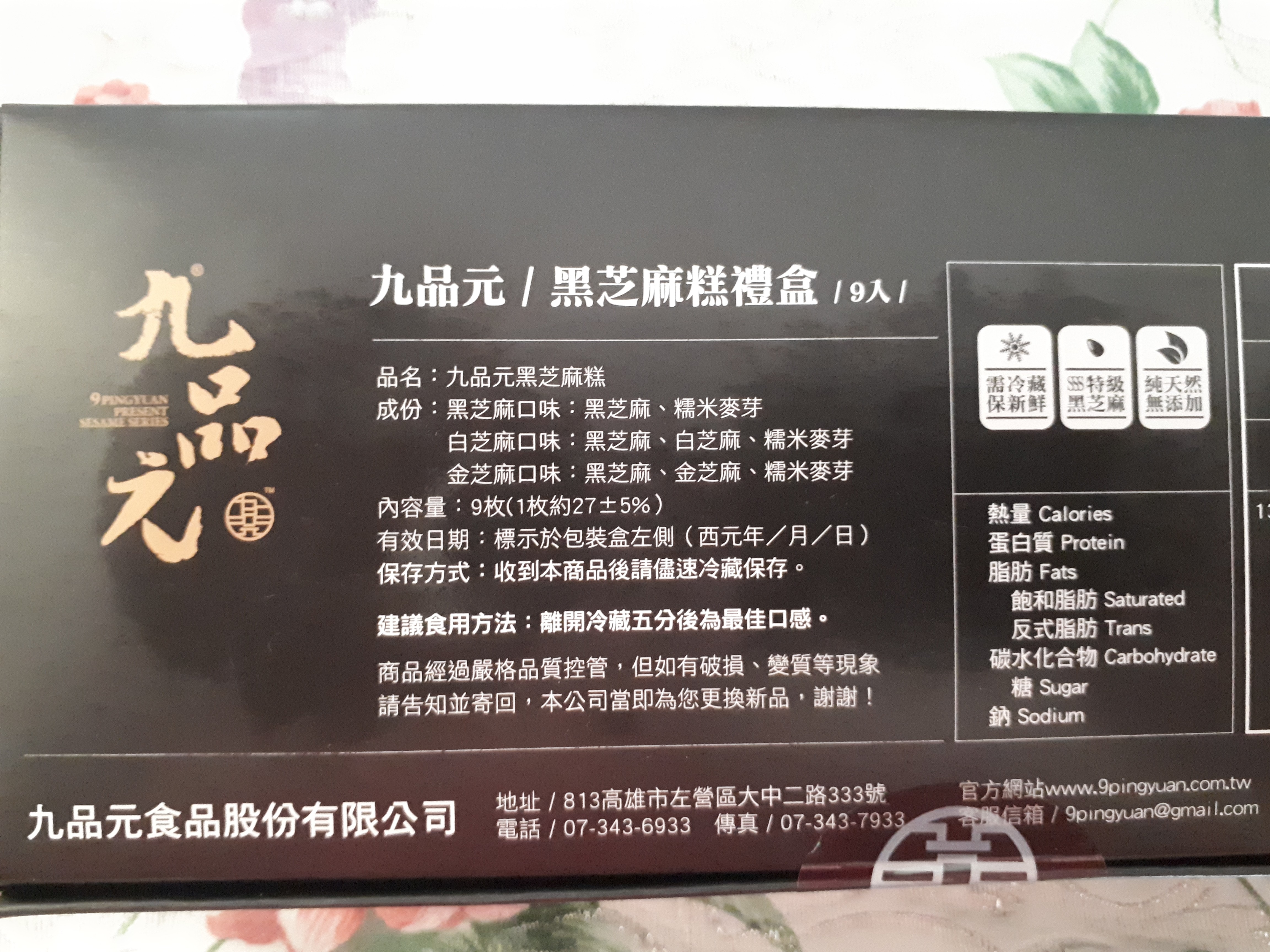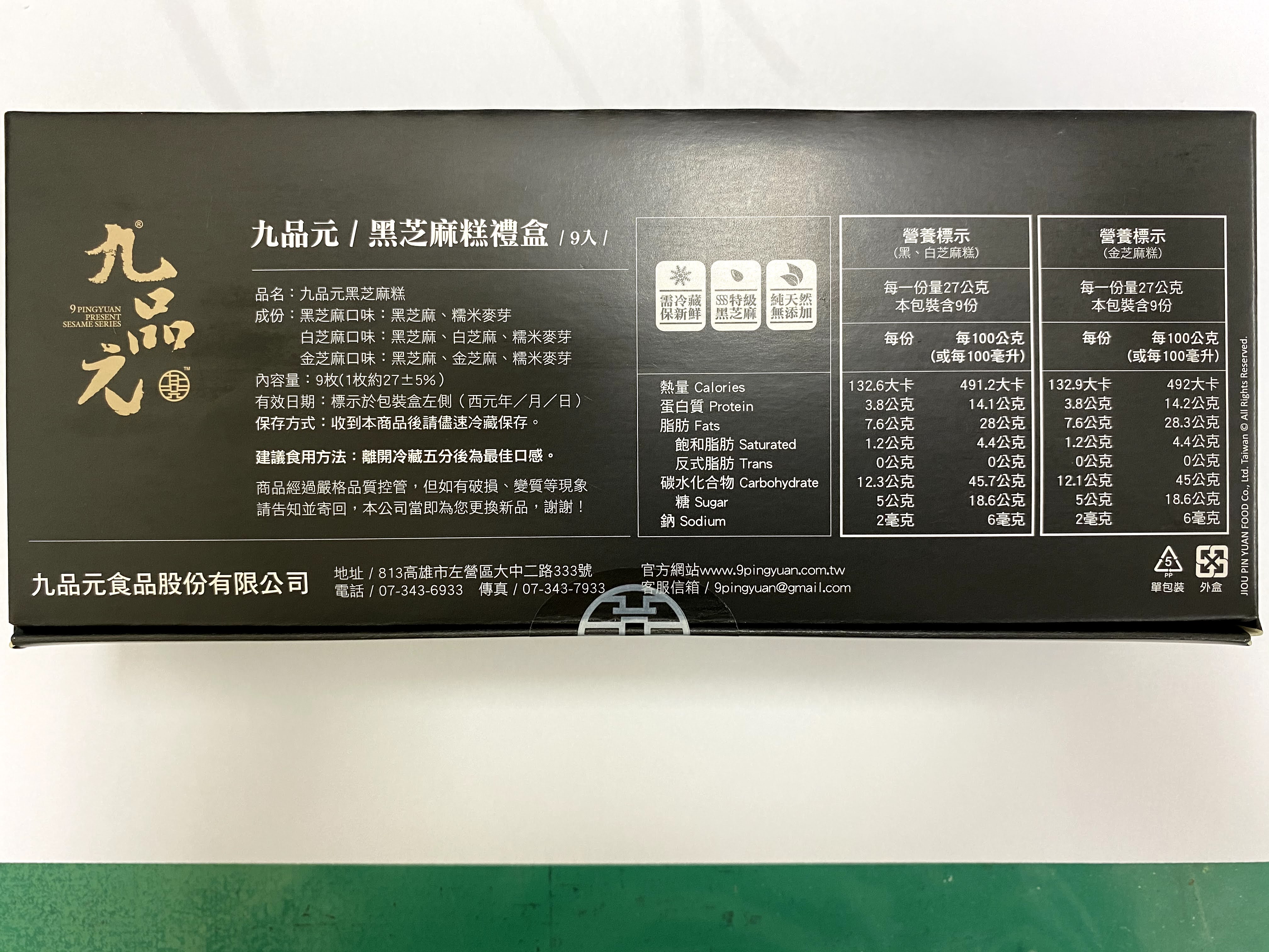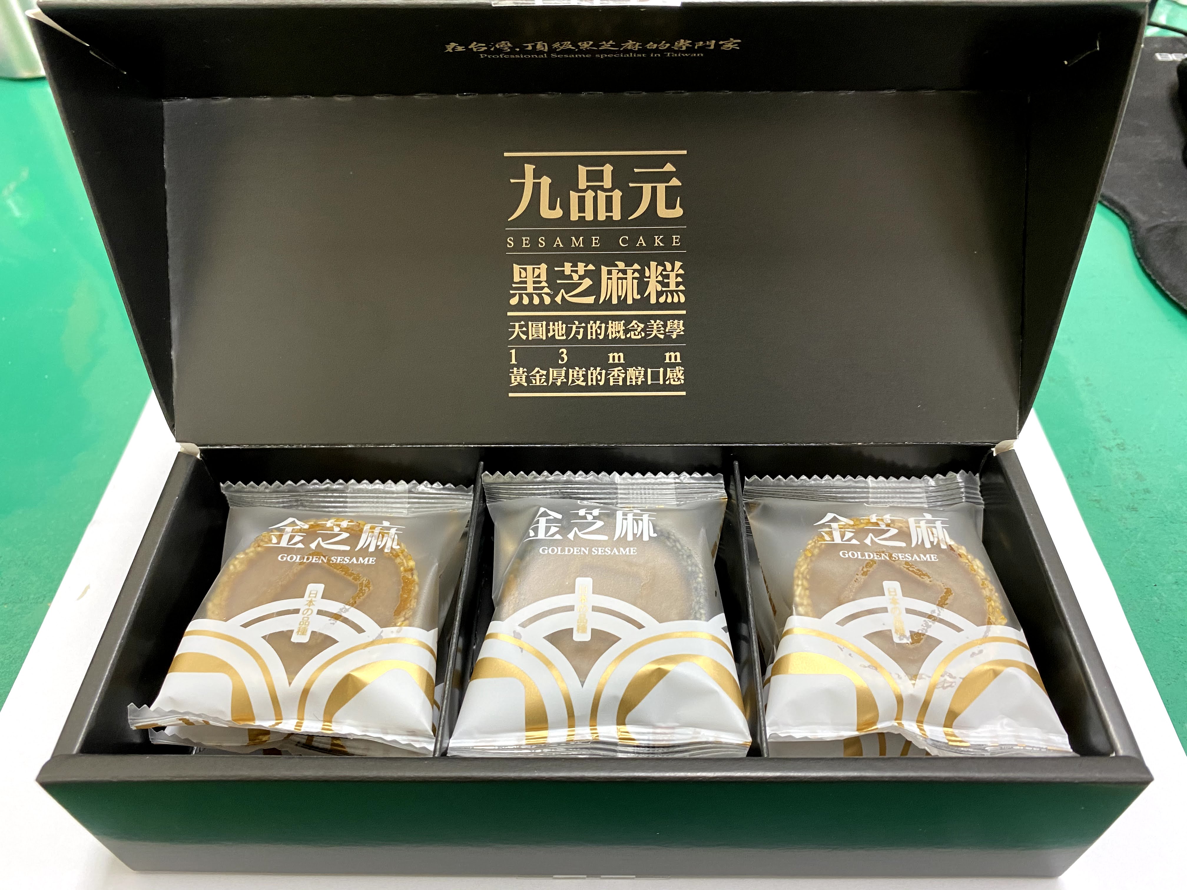 | 包裝 | 9枚入(黑金芝麻糕x3+金芝麻糕x6) |