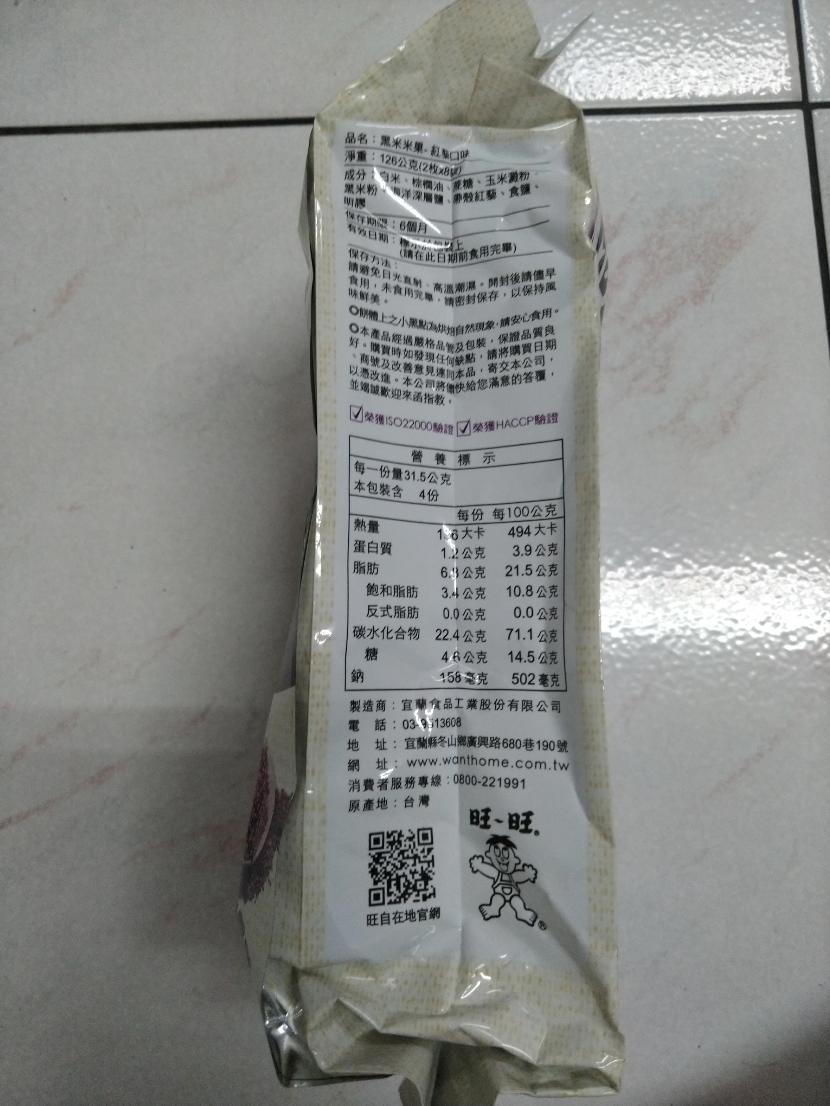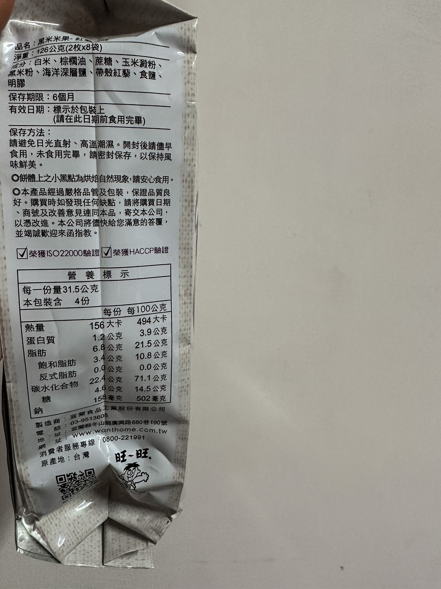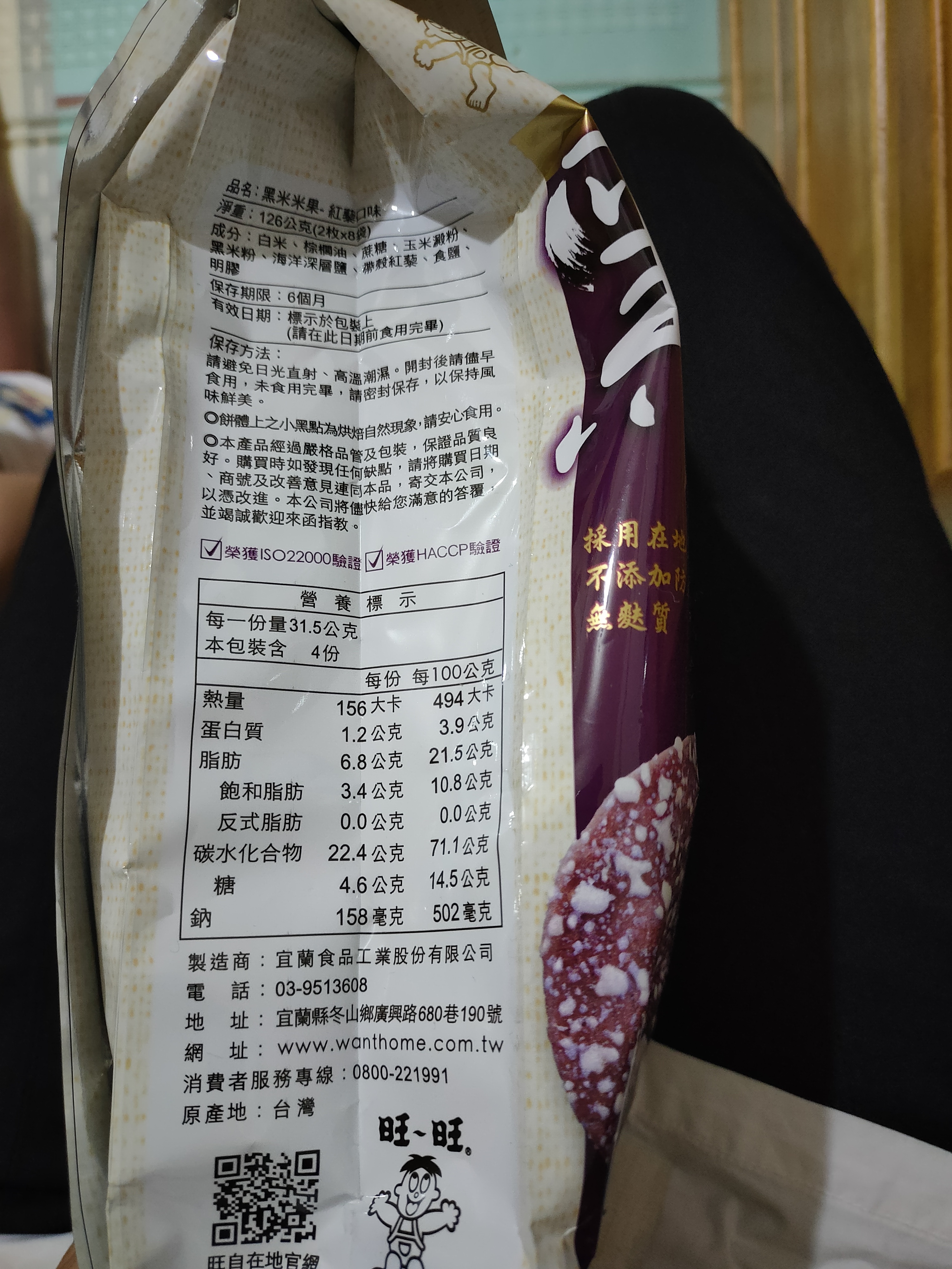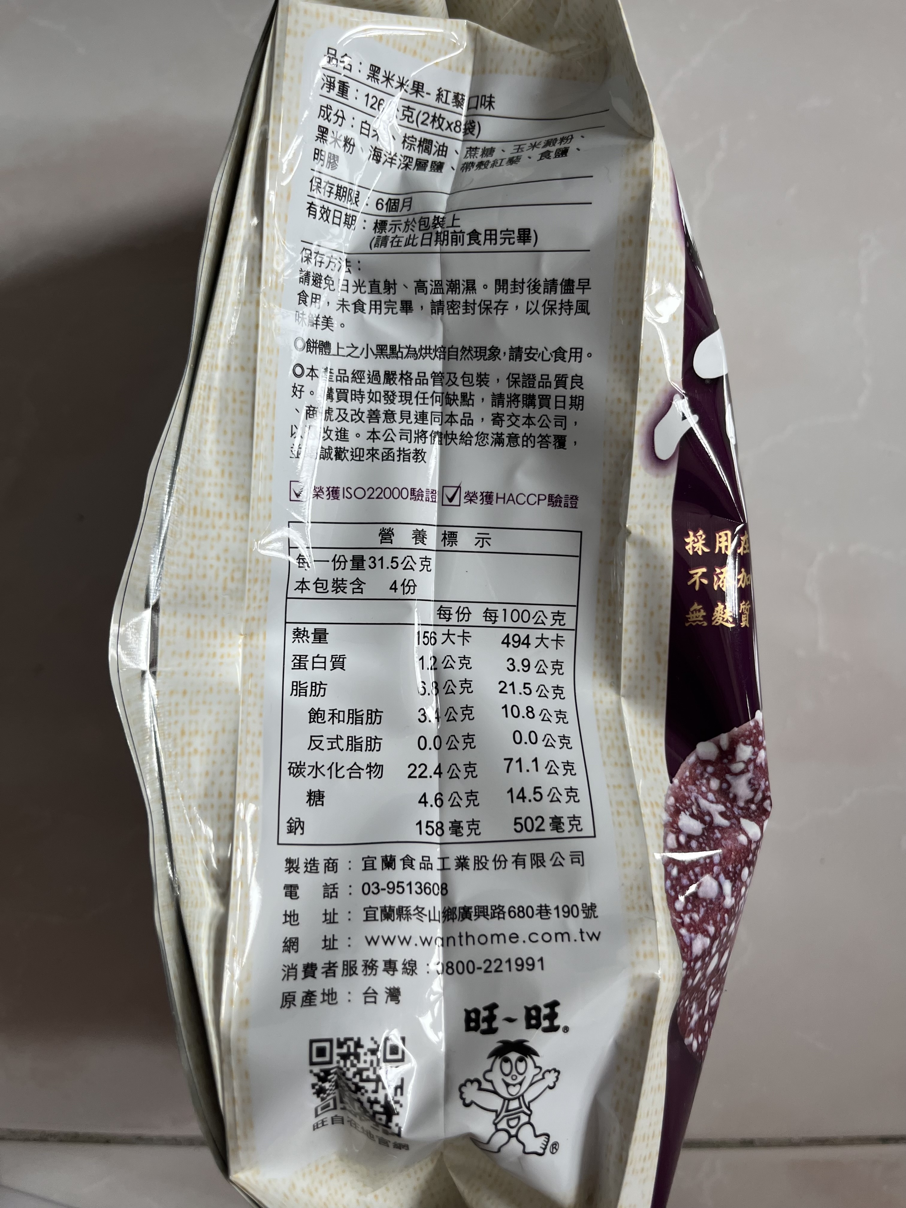 回列表 旺旺 黑米米果-紅藜口味 添加黑米與紅藜 在地健康好滋味 市價95元(免費申請) 所需等級 一般會員以上 所需學分 50 體驗份數 15 關注人數 1289 申請人數 265 申請截止 品牌業者:旺旺 負責廠商 宜蘭食品工業股份有限公司 廠商地址 宜蘭縣冬山鄉廣興路680巷190號 產地 台灣 試用產品規格 126g/盒 食品業者登錄字號 G-141695406-00001-0 投保產品責任險字號 旺旺友聯產物保險1200字第11PL0N000245號 心得分享 商品介紹 商品成分 使用方法 注意事項 體驗名單 8.4 旺旺 黑米米果-紅藜口味 營養豐富 8.4 香脆可口 8.9 天然健康 8.6 方便攜帶 9.3 建議推薦 8.7 心得分享 15則 冬 金食達人 63歲 新北市 2023/09/10 對旺旺 黑米米果-紅藜口味留下評價 9 旺旺-黑米米果(添加帶殼紅藜) # 使用在地小農的黑米與紅藜,成分簡單、無麩質、全素可食,健康好滋味。# 一袋裡面有8小包,每包2片,打開來外觀像是紫色版的旺旺雪餅,其中一面有白色糖霜點塊。# 黑米米果口感酥脆,表面糖霜的甜配上米果本體微微的鹹度,吃起來有淡淡的黑米香氣(原本吃第一片沒什麼感覺,第二片慢慢品嚐才有吃出黑米的香),如果認真咬還能感受到帶殼紅藜的小顆粒,滿特別的,營造出不同層次的口感。# 旺旺-黑米米果整體口味偏淡但很清爽,是個健康的小零食,推薦給大家。 林欣慧 金食達人 29歲 臺南市 2023/09/12 對旺旺 黑米米果-紅藜口味留下評價 9 旺旺的黑米米果-紅藜口味,首先外觀上的顏色就是很特別與以往類似商品有所差異,因為使用的是在地食材黑米與紅藜所製成的,吃起來口感香脆,米的香氣搭上米果上頭的白色糖雪霜,讓整體的口味微甜而不膩,一片接著一片不知不覺就吃完一包了!一小包裡兩片裝也能方便攜帶外出,這款旺旺黑米米果因為選用了在地食材,成分較天然、添加物少,相較其他零食感覺較為養生且無負擔,能吃得安心,會是嘴饞時想吃零食時的首要選擇! 雨涵 鑽石達人 41歲 新竹縣 2023/09/15 對旺旺 黑米米果-紅藜口味留下評價 9 很高興能參加這次試吃:來自台灣本土深根的在品牌旺旺-黑米米果(紅藜口味)使用嚴選台灣100%本土在地黑米製作,另添加帶殼紅藜,一打開,淡淡的米果清香,口感香脆不甜膩,配上超級食物穀類紅寶石-帶殼紅藜,非常涮嘴,讓人不自覺一口接一口的吃,一不小心,整包就嗑光了@@商品不添加防腐劑,同時無麩質,很適合對麥類過敏的朋友食用,健康養身,喜愛吃零食又怕胖的最佳選擇!PS,個人覺得口感雖不錯,但硬度可以稍加調整為更酥脆點,會更完美! 鄭滿祝 金食達人 57歲 新北市 2023/09/12 對旺旺 黑米米果-紅藜口味留下評價 9 產品吃起來口感脆脆的有甜味,但不會太甜,對身體較無熱量過高的負擔。而且產品含有黑米和藜麥成分,屬於較健康的產品,很好吃。產品大小適中,拿取方便。產品外包裝的文字與圖案設計,能清楚地表達該產品營養健康的特質,將非常吸引消費者目光而嘗鮮購買。 黃育琳 鑽石達人 31歲 臺中市 2023/09/12 對旺旺 黑米米果-紅藜口味留下評價 7 黑米米果外包裝很可愛,食物外觀顏色為淡紫色,很有特色,可以留下印象。產品成分單純,沒有什麼食品添加物。吃下去味道算清淡,微甜微鹹,非常剛好也不會過甜。口感鬆鬆脆脆,入口即化,雖然我吃不出紅藜的味道,但還是可以吃出淡淡的米香。是個蠻適合當點心也不會有過多負擔的選擇,價格也能接受。和平常吃到的米果味道並不會差太多,最後謝謝食力提供這個試吃體驗的機會。 hana,H. 金食達人 40歲 新北市 2023/09/15 對旺旺 黑米米果-紅藜口味留下評價 9 包裝滿有質感的,餅乾顏色也很特別是深紫色,很新奇的外觀!吃起來很像小時候吃的雪餅米果,口感和口味都蠻像的,只是這個包裝有更有質感一些,原本雪餅的包裝太薄,常常放一陣子就會餅乾軟掉,這個比較好管理!餅乾的尺寸也比之前雪餅的大了一些,但口味上是沒有太突出的差異!值得試試一吃! 陳采葳 鑽石達人 60歲 臺中市 2023/09/09 對旺旺 黑米米果-紅藜口味留下評價 8 很開心能收到食力體驗品- 旺旺 黑米米果-紅藜口味市售餅乾都添加許多精緻糖這款零嘴是用非精緻類澱粉製成且使用在地小農黑米及紅藜非常適合當作下午茶解嘴饞也無罪惡感餅乾一口咬進充滿黑米香還嚐的到紅藜顆粒口感多層次口感讓人難忘小包裝外出好攜帶🔍成份白米、棕櫚油、蔗糖、玉米澱粉、黑米粉、海洋深層鹽、帶殼紅藜、食鹽、明膠🔍營養標示每一份量31.5公克熱量 156Kcal蛋白質 1.2g脂肪 6.8g 飽和脂肪 3.4g 反式脂肪 0g碳水化合物 22.4g 糖 4.6g鈉 158mg Angela 金食達人 47歲 臺北市 2023/09/10 對旺旺 黑米米果-紅藜口味留下評價 9 從小吃到大的旺旺米果雪餅,沒想到開發出了黑米紅藜口味,雖然初次看到時米果的顏色不這麼的吸引人,但吃了以後有黑米的香氣、加上健康紅藜,也不會過鹹,香脆可口,讓人一包接著一包開吃,欲罷不能!!推薦給愛吃旺旺米果以及想找些較營養健康零食的朋友們~ 郭雅娟 金食達人 37歲 臺中市 2023/09/11 對旺旺 黑米米果-紅藜口味留下評價 8 很感謝這次有機會試吃旺旺 黑米米果-紅藜口味,成份跟其他零食相對比較起來單純許多;成份有白米、棕櫚油、蔗糖、玉米澱粉、黑米粉、海洋深層鹽、帶殼紅藜、食鹽、明膠。也比原本原味口味多了黑米跟紅藜麥的營養。吃起來稍微甜甜的,但不至於太甜。一包裡面有8小包,要吃就開一小包,很適合拿來當配茶的點心,