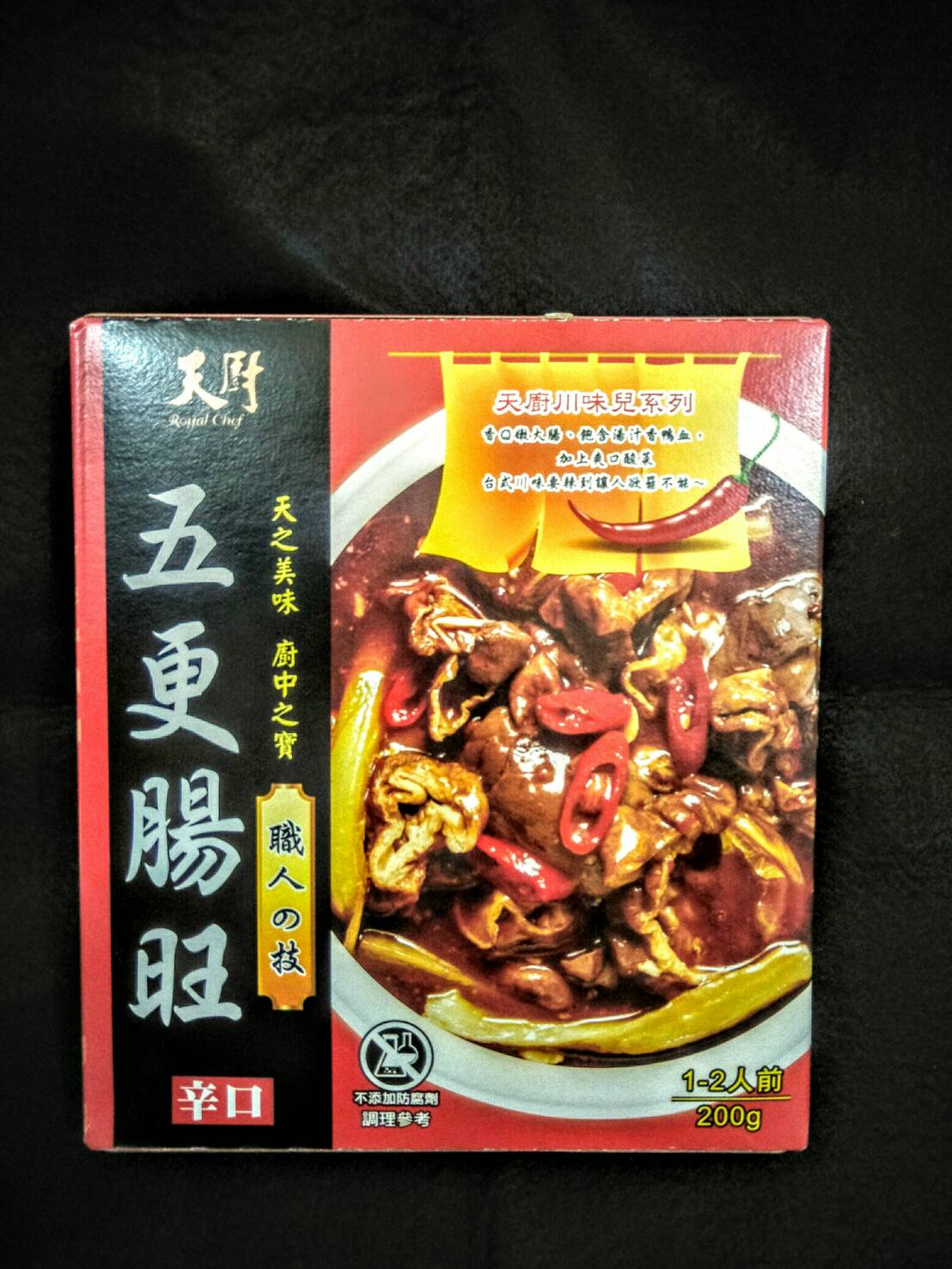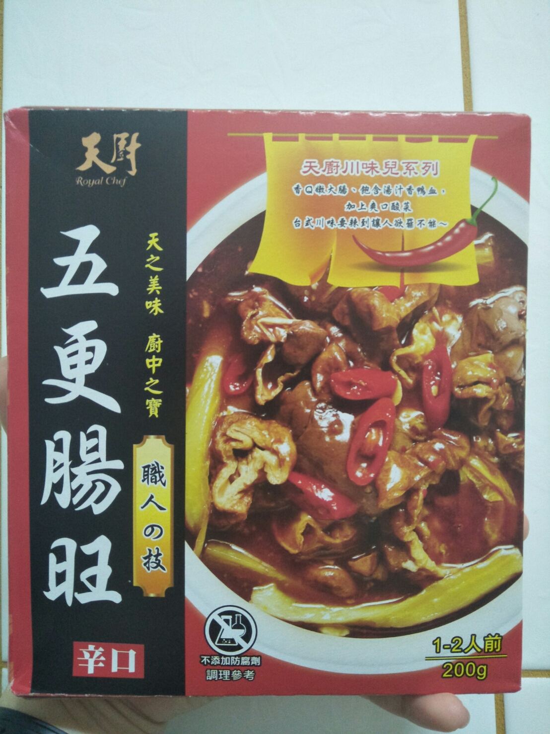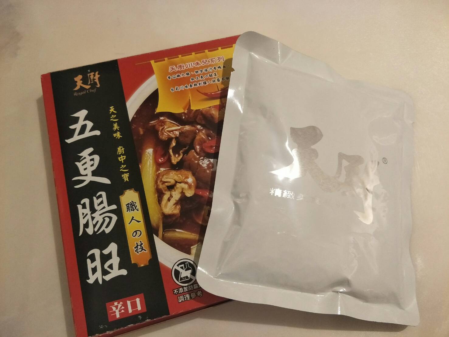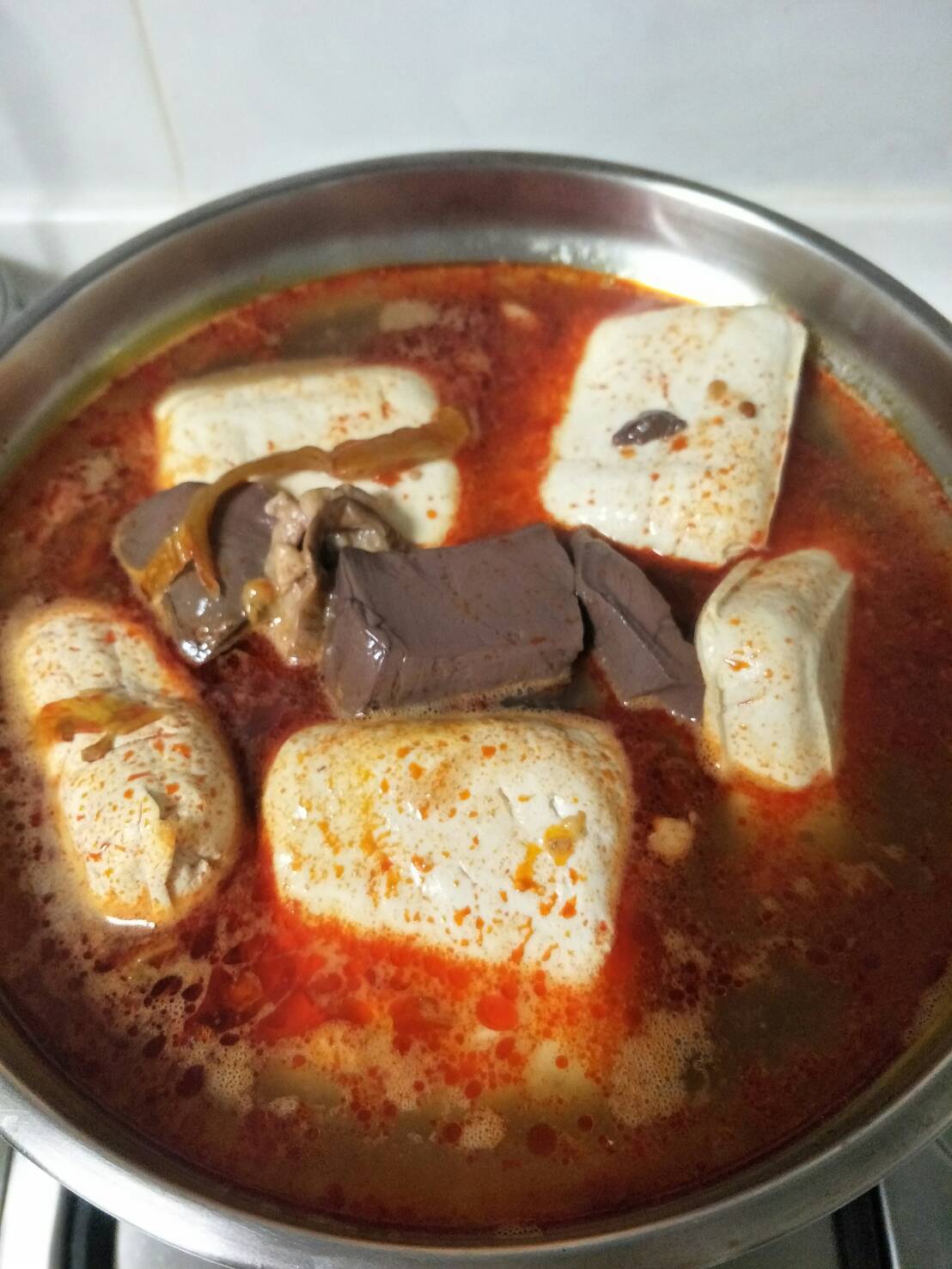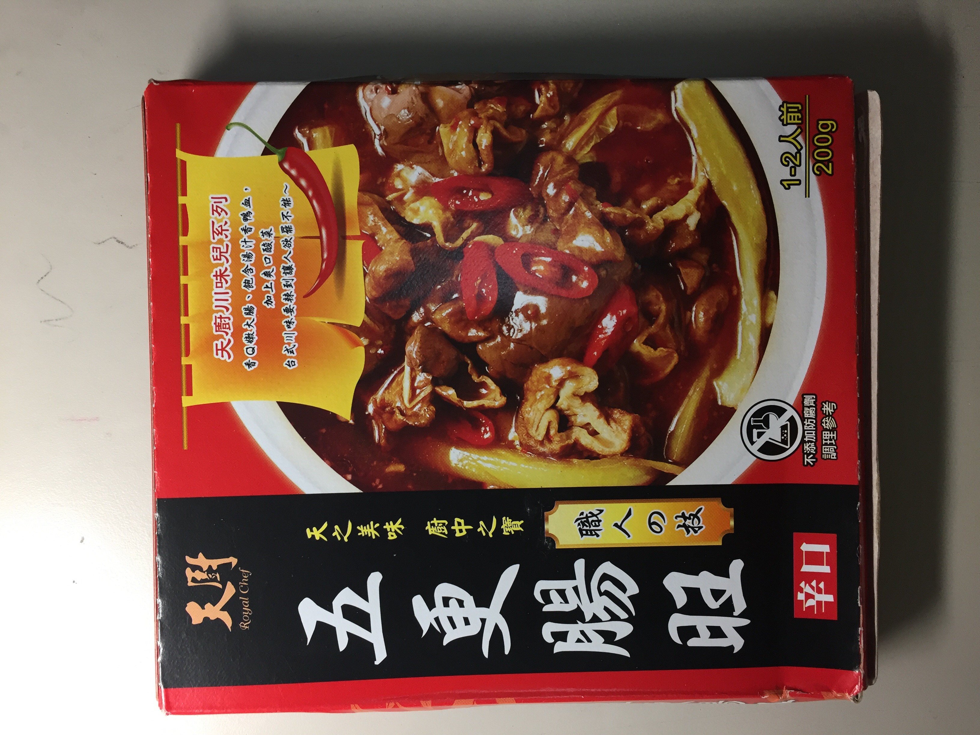 水、鴨血、豬大腸、酸菜、辣豆瓣醬、大豆沙拉油、醬油、薑、蒜、砂糖、雞粉、香油、八角粒、油性辣椒紅、花椒精油、麻辣肉精膏、花椒粉、五香粉、紅辣椒粉、白胡椒粉、水解大豆蛋白調味粉。