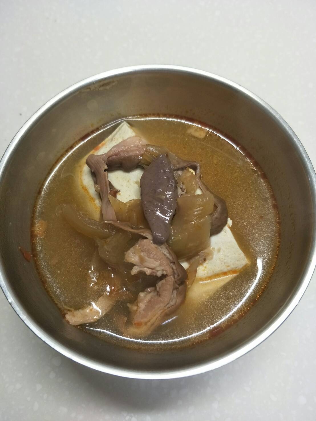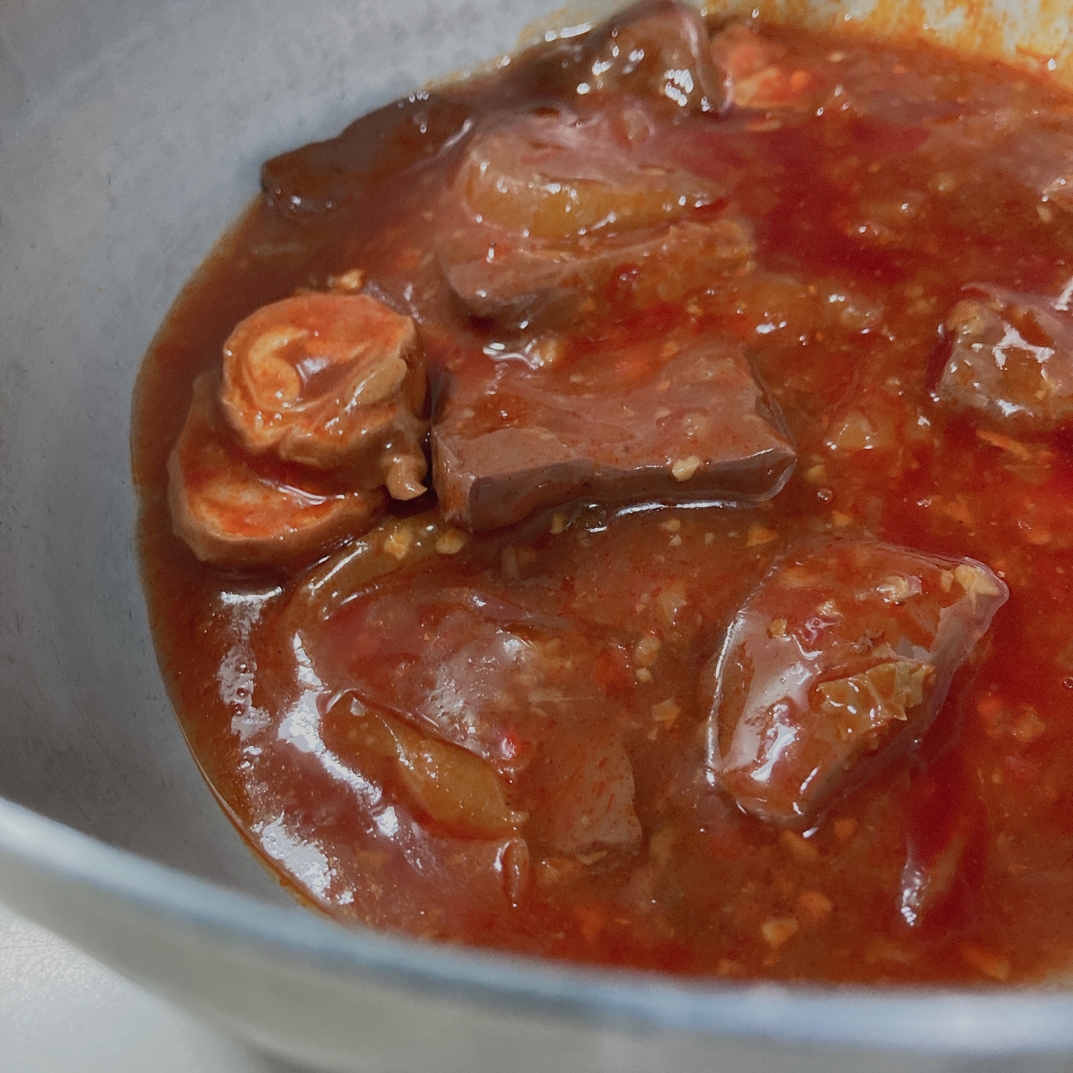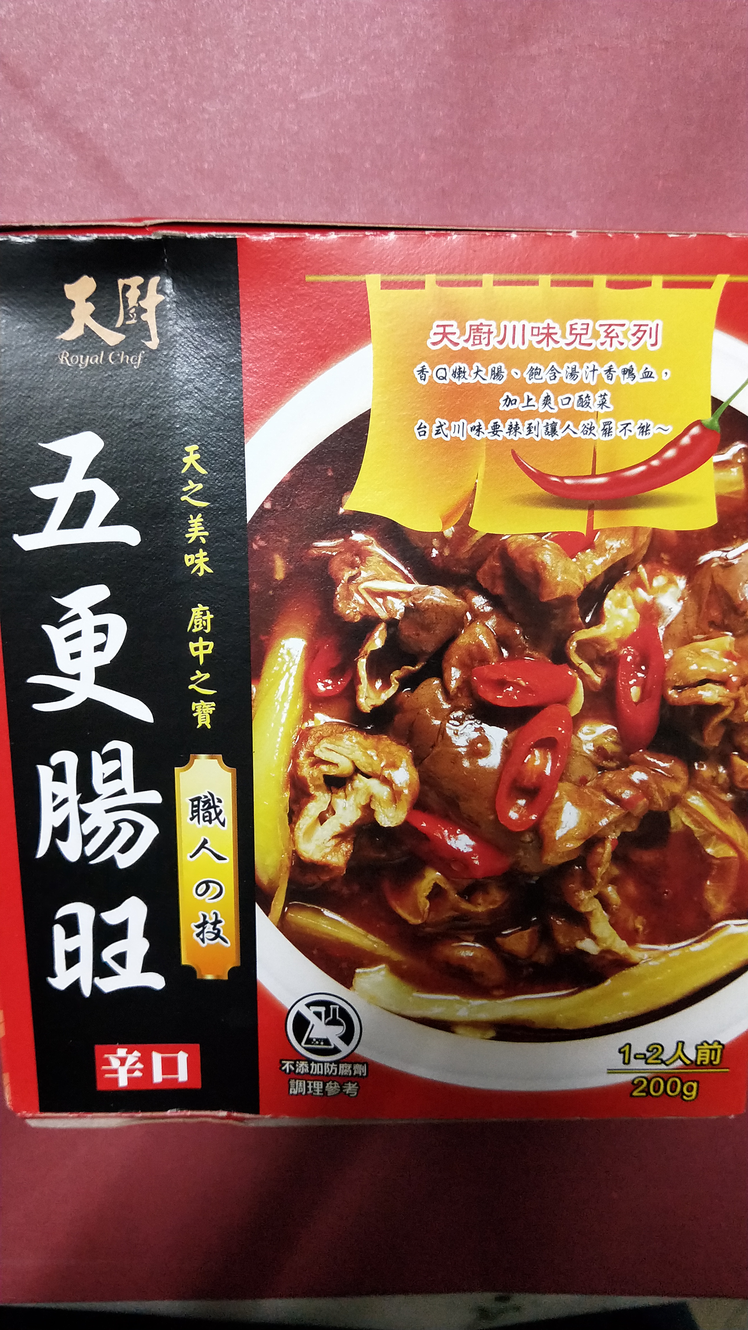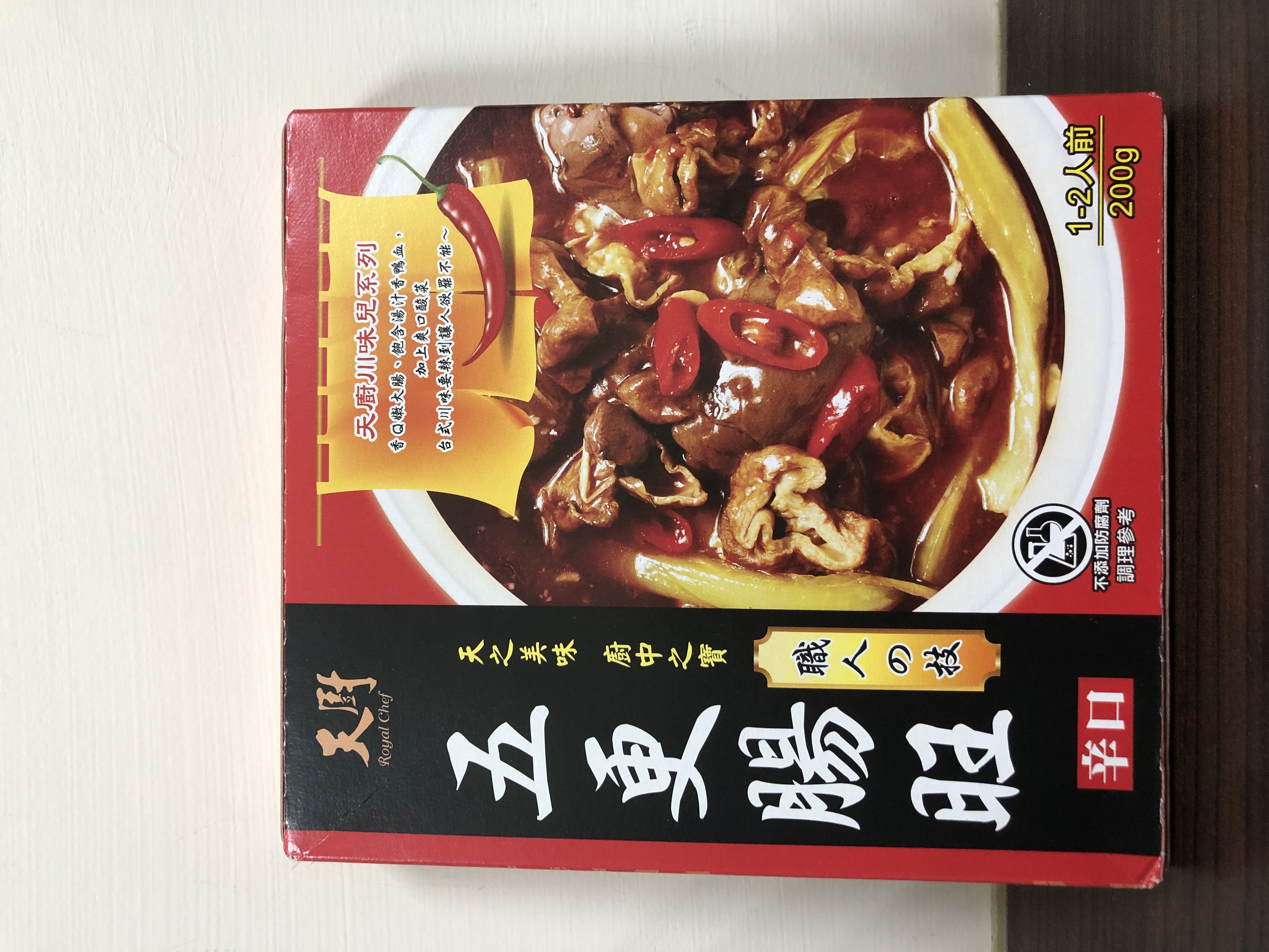 水、鴨血、豬大腸、酸菜、辣豆瓣醬、大豆沙拉油、醬油、薑、蒜、砂糖、雞粉、香油、八角粒、油性辣椒紅、花椒精油、麻辣肉精膏、花椒粉、五香粉、紅辣椒粉、白胡椒粉、水解大豆蛋白調味粉。