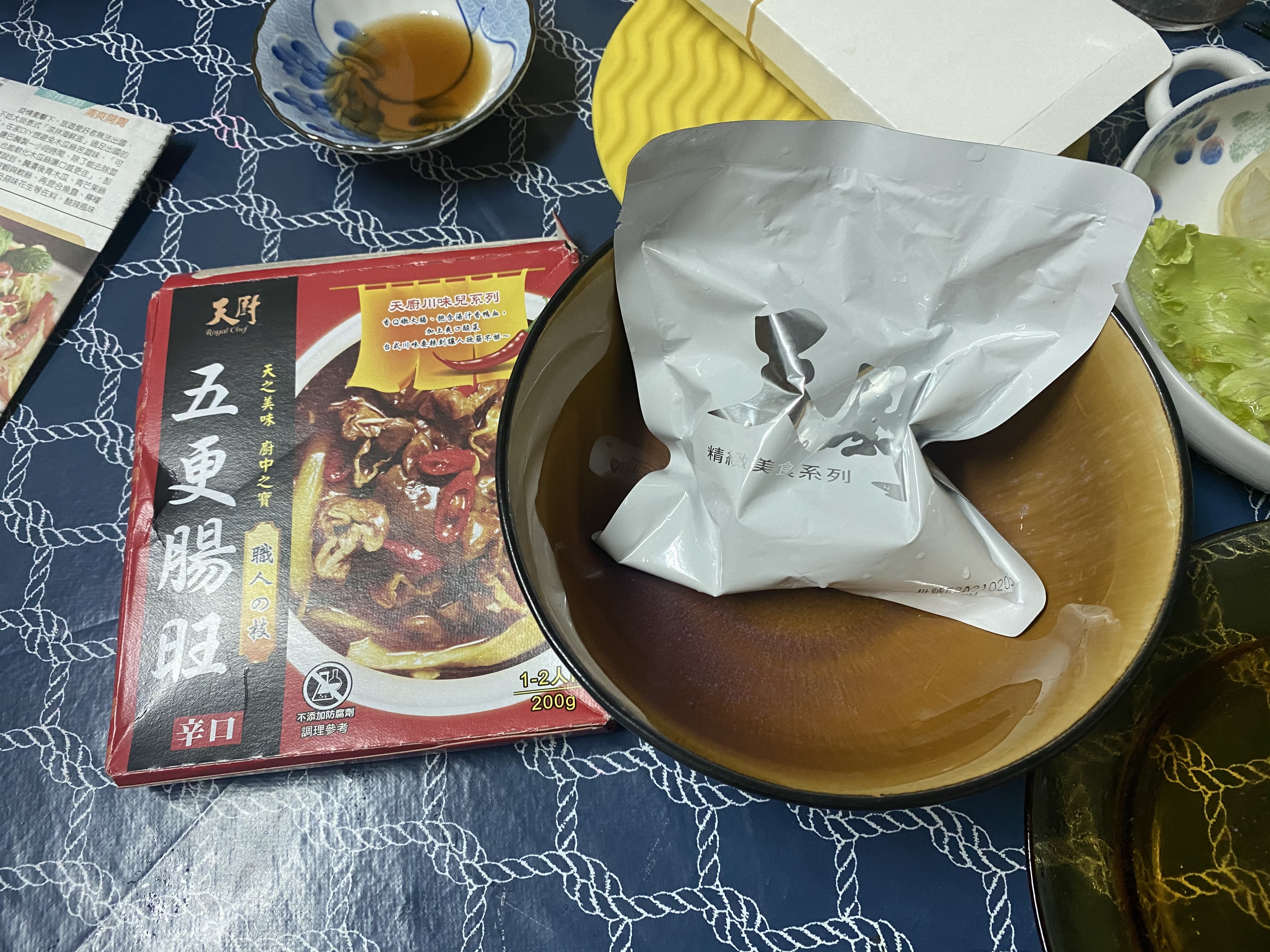 覆熱即可食用。亦可加入其他食材(如:各式火鍋料、蔬菜、科學麵等配料),一同煮滾後,即可享用。