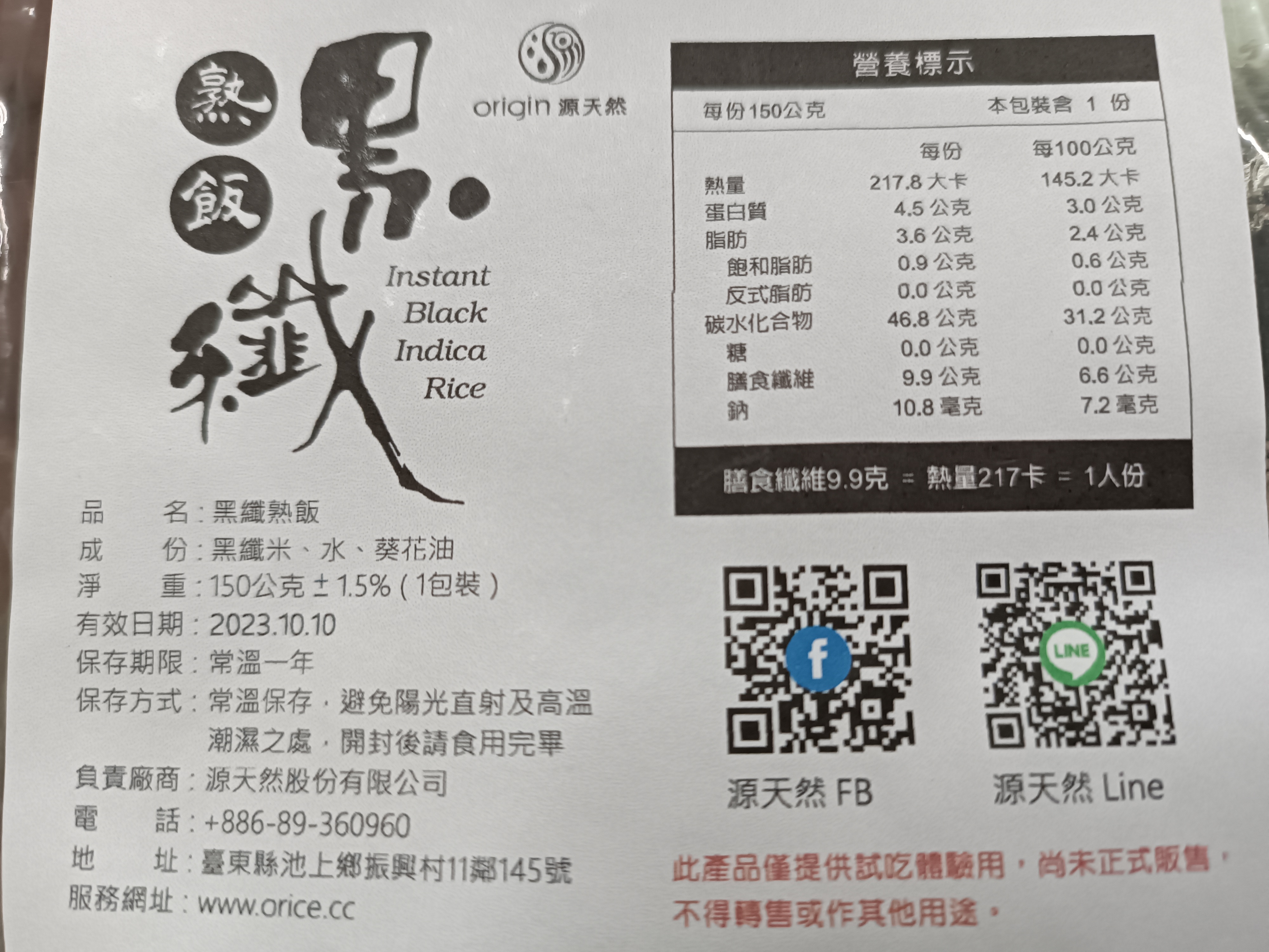 | 試用產品規格 | 150公克/包 |