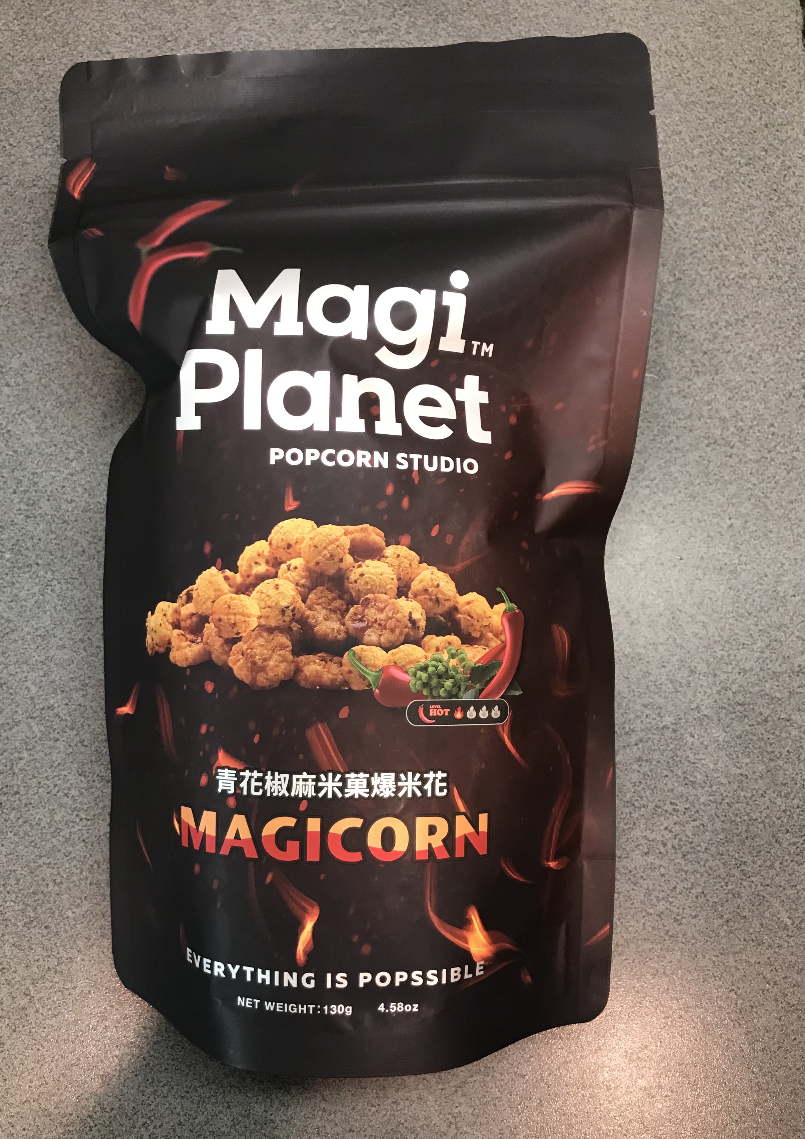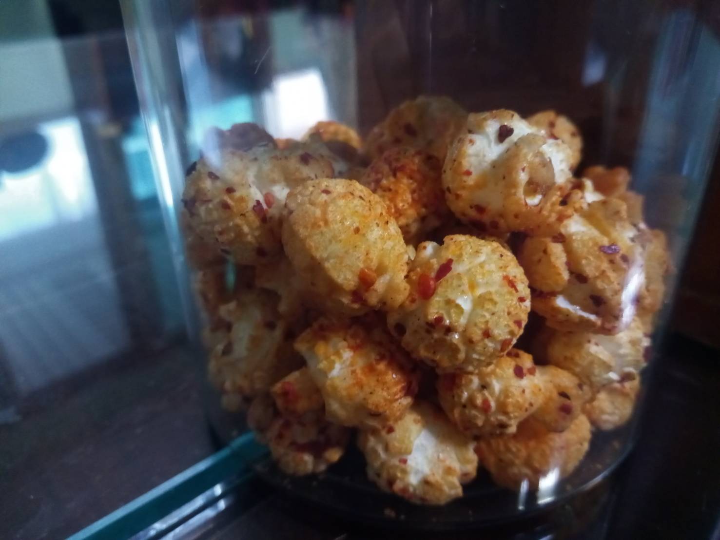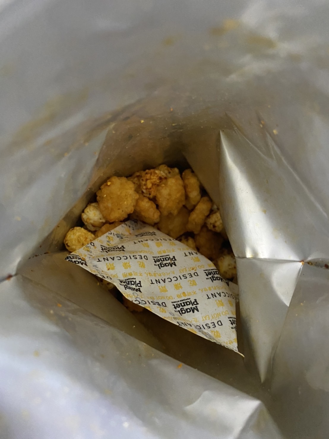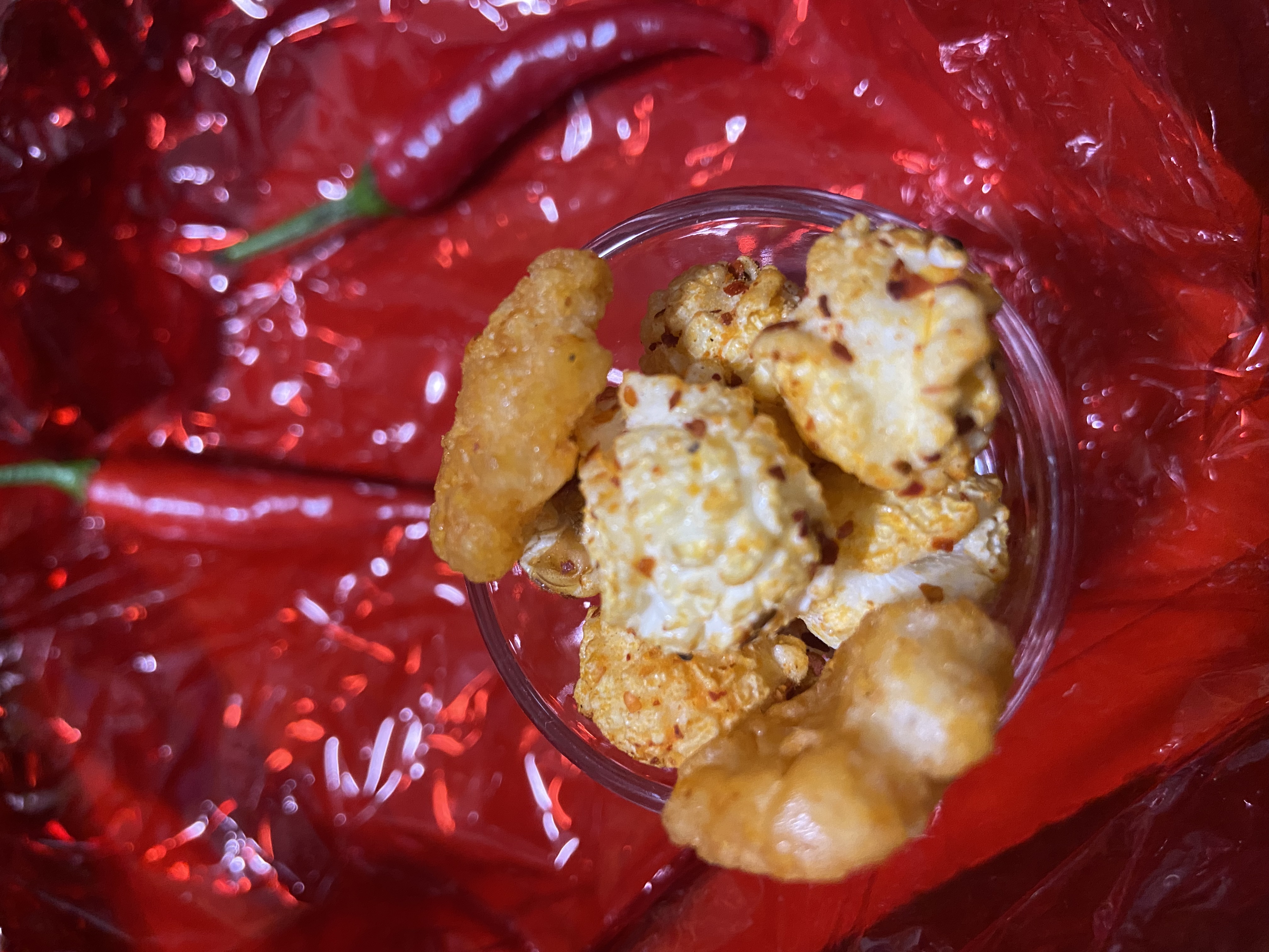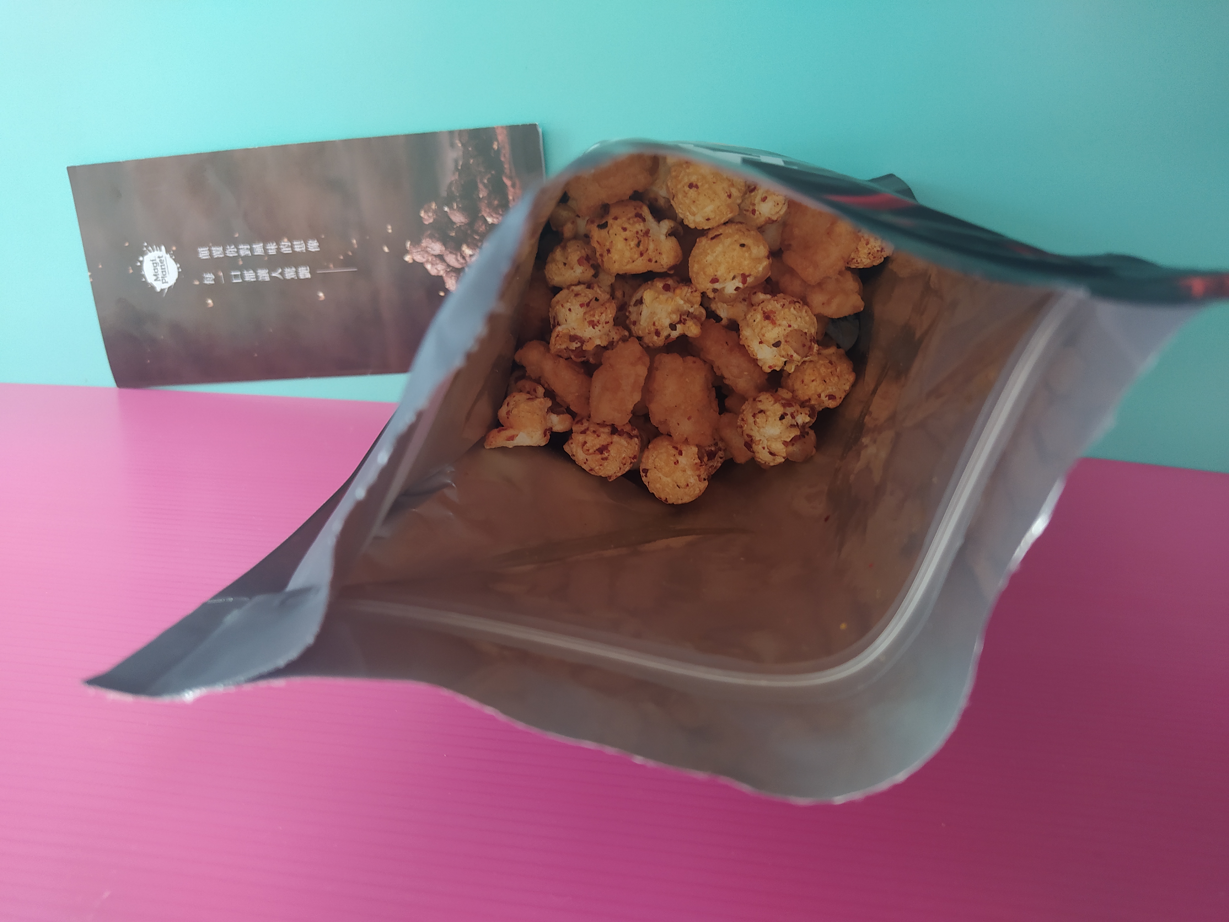 爆米花【 糖 ( 砂糖、葡萄糖、海藻糖)、進口玉米粒( 非基因改造)、棕櫚油、青花椒調味粉[ 椒麻粉( 辣椒粉、花椒粉)、麥芽糊精、酵母抽出物、鹽、醬油粉( 純釀造醬油、麥芽糊精、鹽、砂糖、焦糖色素、琥珀酸二鈉、5'-次黃嘌呤核苷磷酸二鈉、5'-鳥嘌呤核苷磷酸二鈉)、小麥纖維、油性辣椒紅( 紅椒色素、精製葵花油)、花椒萃取物]】