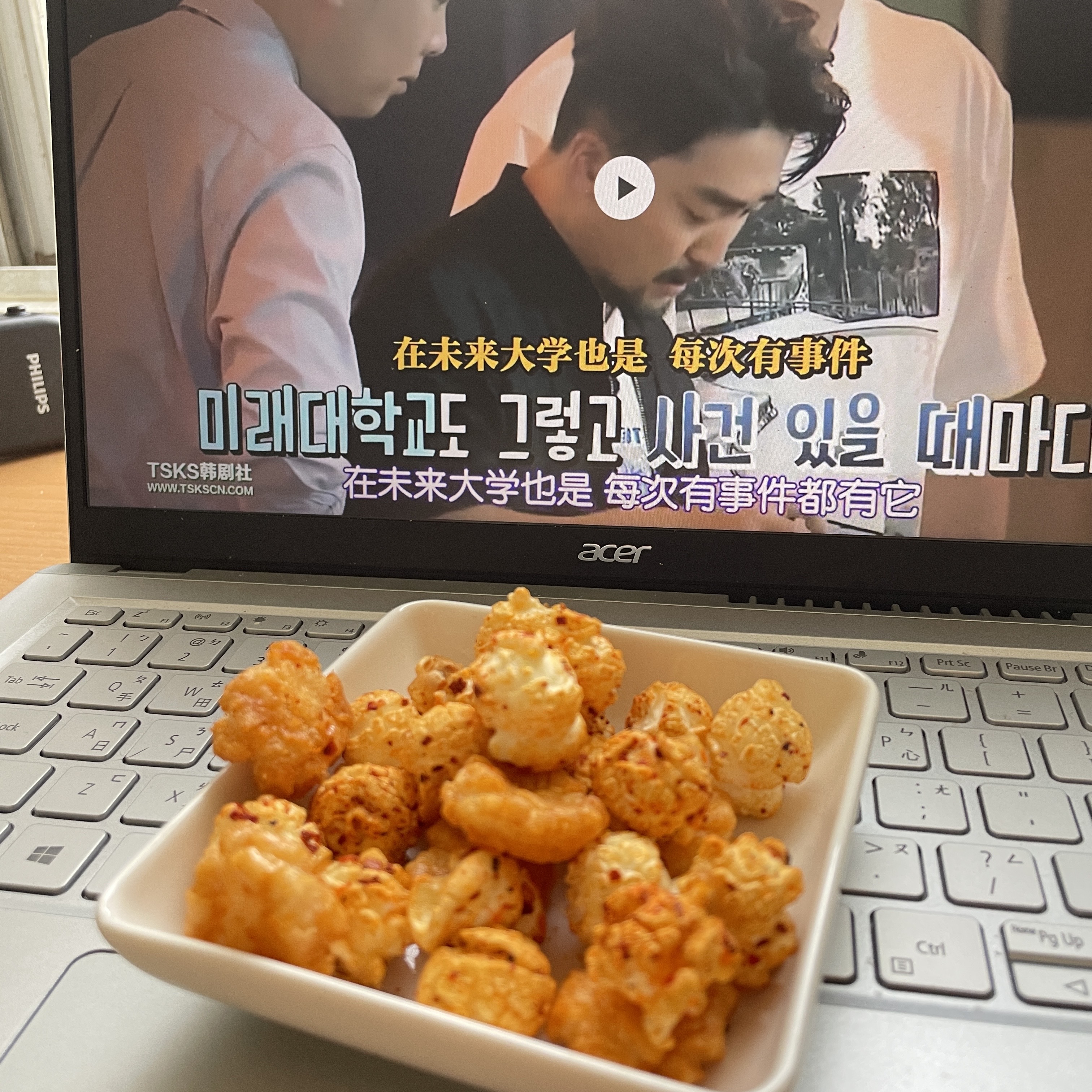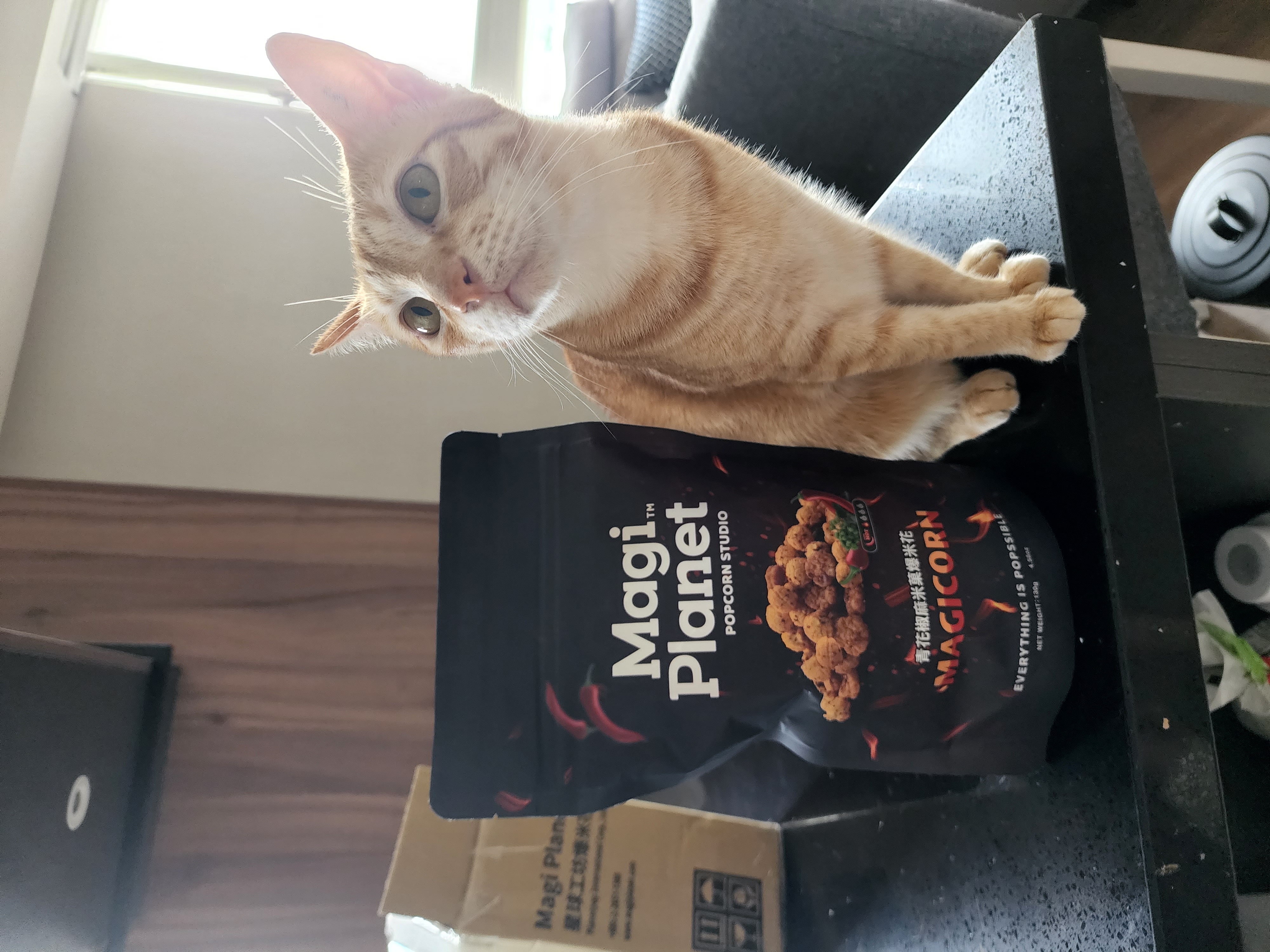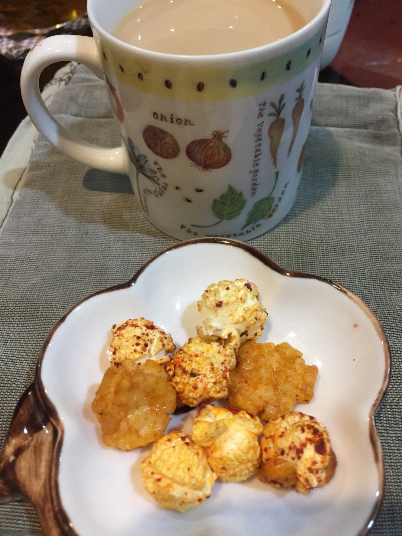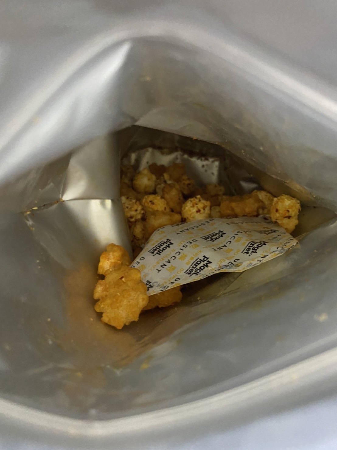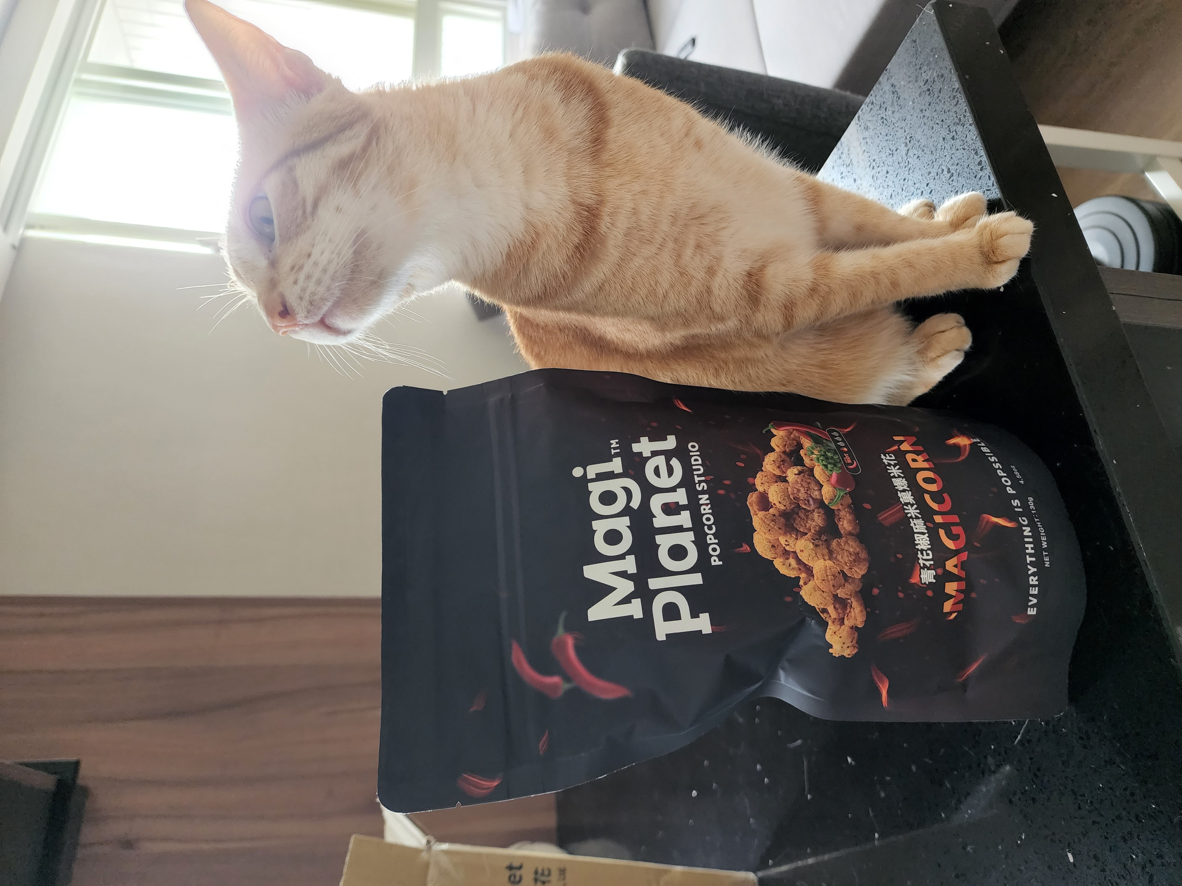 爆米花【 糖 ( 砂糖、葡萄糖、海藻糖)、進口玉米粒( 非基因改造)、棕櫚油、青花椒調味粉[ 椒麻粉( 辣椒粉、花椒粉)、麥芽糊精、酵母抽出物、鹽、醬油粉( 純釀造醬油、麥芽糊精、鹽、砂糖、焦糖色素、琥珀酸二鈉、5'-次黃嘌呤核苷磷酸二鈉、5'-鳥嘌呤核苷磷酸二鈉)、小麥纖維、油性辣椒紅( 紅椒色素、精製葵花油)、花椒萃取物]】
