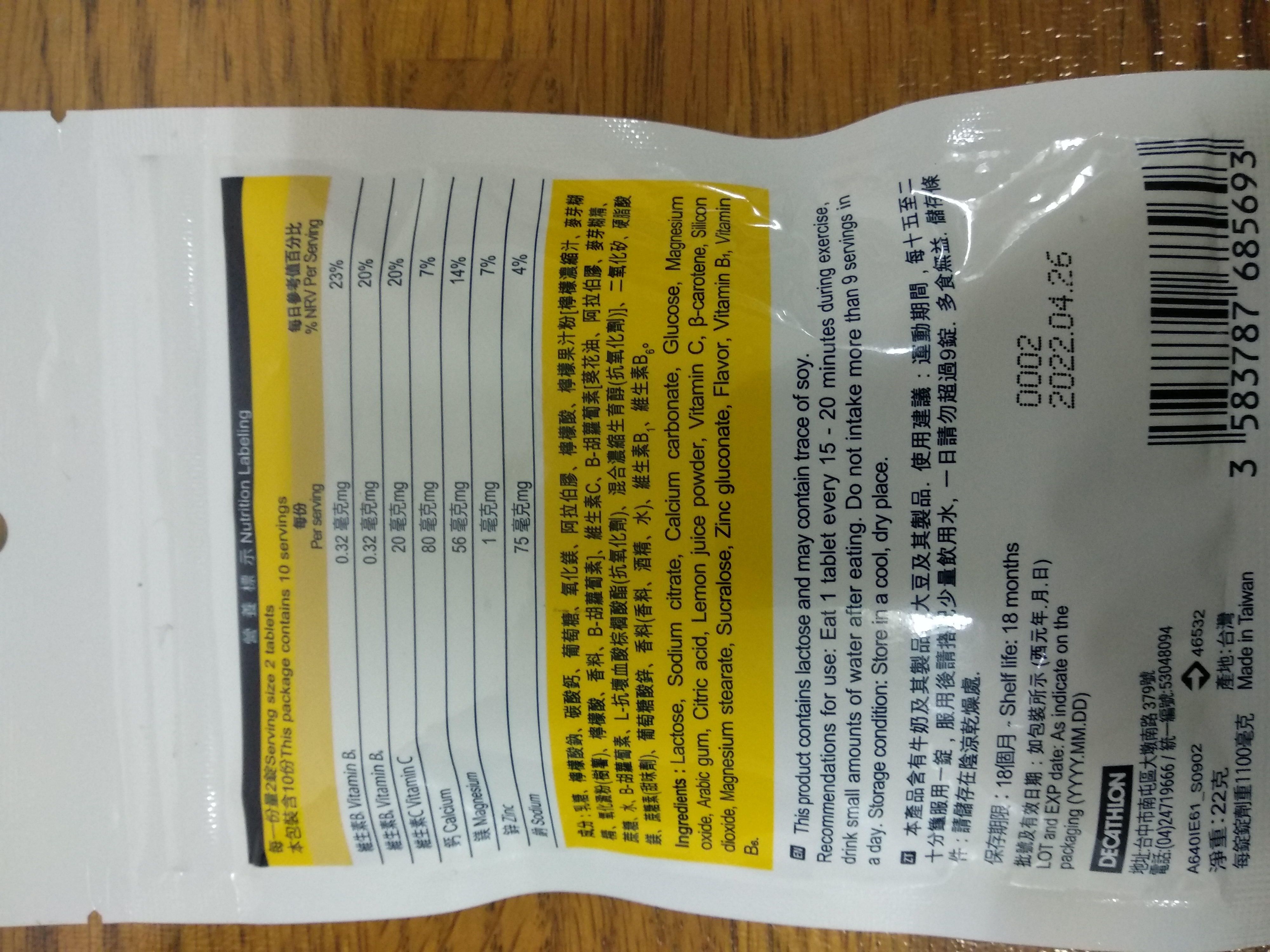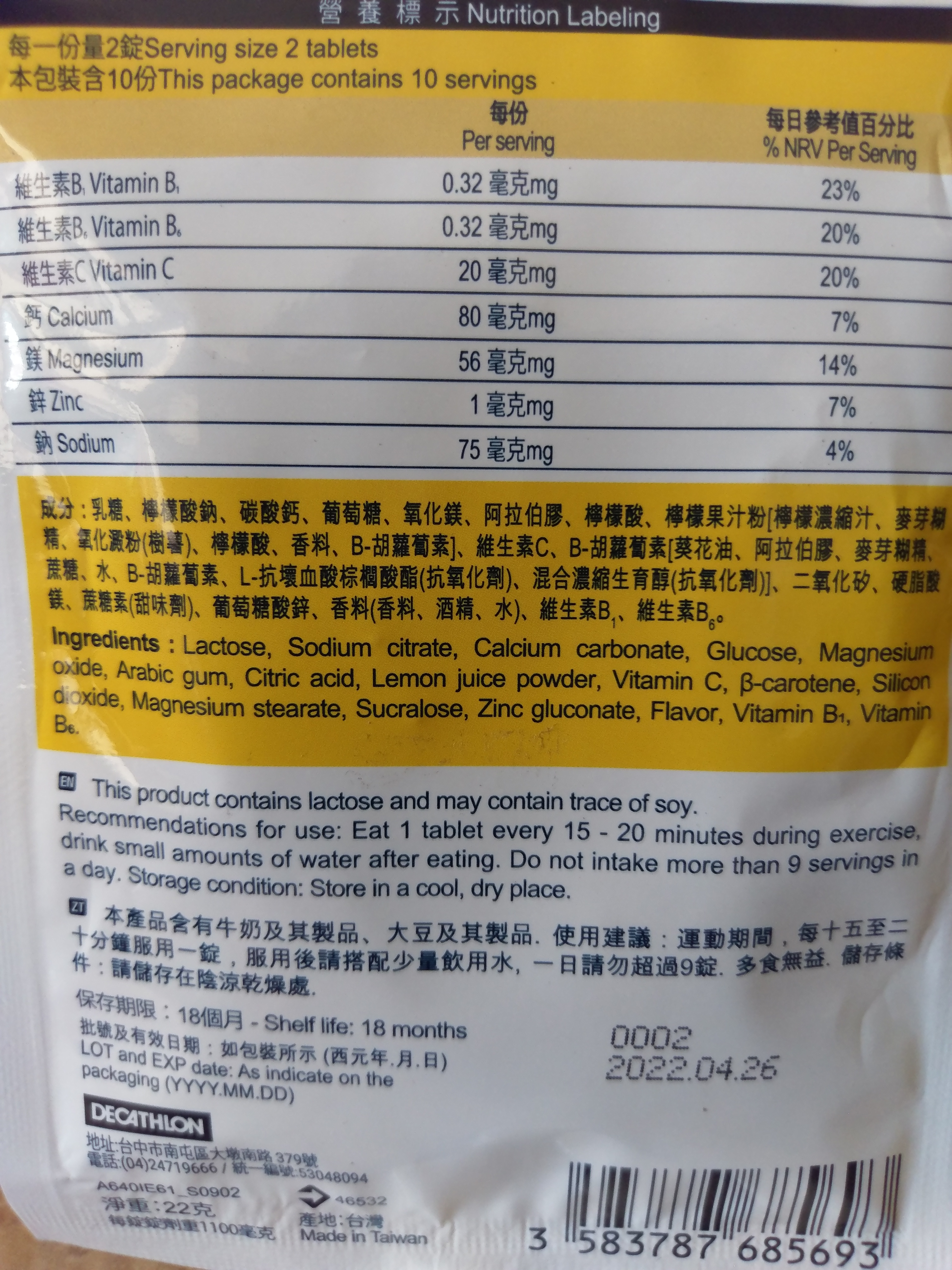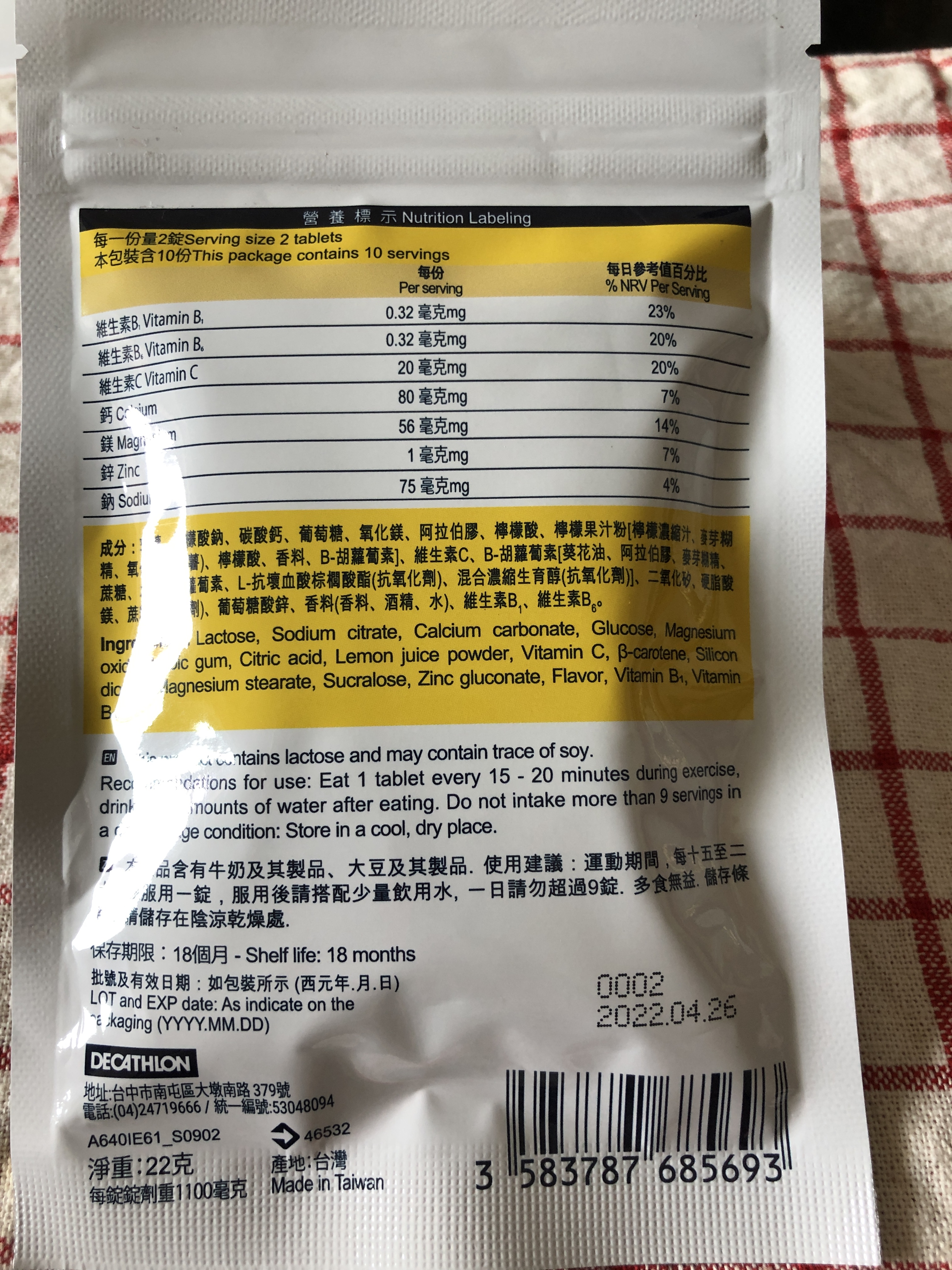 迪卡儂 電解質嚼錠(檸檬) 隨時隨地為您補給