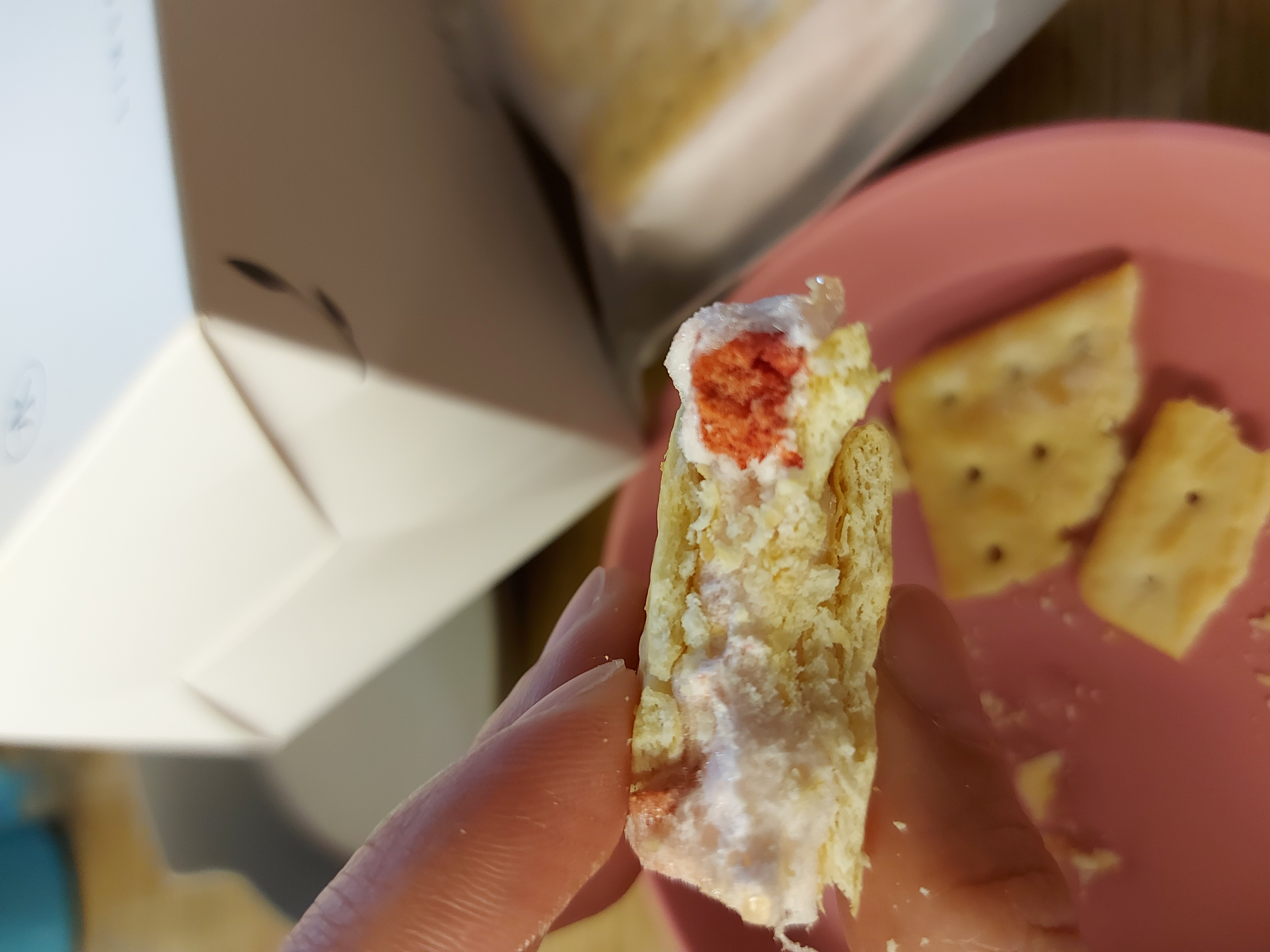 回列表 里木菓水 草莓雲朵棉花糖夾心 甜蜜雲朵,初戀般的滋味 重回那些年戀愛的美好時光 市價180元 (免費申請) 所需等級 一般會員以上 所需學分 60 體驗份數 15 關注人數 1434 申請人數 313 申請截止 品牌業者:里木菓水 負責廠商 里木菓水 廠商地址 台南市建南路253號 產地 台灣 試用產品規格 76g/盒 食品業者登錄字號 D-200209455-00000-7 投保產品責任險字號 1503字第11PD05073號 心得分享 商品介紹 商品成分 使用方法 注意事項 體驗名單 8.6 里木菓水 草莓雲朵棉花糖夾心 酥脆口感 9.2 味覺層次 8.4 草莓香氣 8.4 包裝美學 9.3 建議推薦 8.6 心得分享 14則 徐穎嫻 鑽石達人 33歲 新北市 2024/03/12 對里木菓水 草莓雲朵棉花糖夾心留下評價 9 里木菓水的草莓雲朵棉花糖夾心餅乾讓我蠻驚喜的!我沒有想到餅乾會那麽的酥脆,夾心的棉花糖還能入口即化,兩者配合在一起的口感非常有趣!重點是夾心的棉花糖還帶有草莓乾,多了一層的口感,而且酸酸甜甜的,是非常不錯吃的下午茶小甜點!另外,里木菓水的草莓雲朵棉花糖夾心餅乾的外包裝非常大方得體,是可以拉出來的小盒子,吃完了餅乾,小盒子還可以用來放首飾呢~ 黃美慧 鑽石達人 55歲 桃園市 2024/03/13 對里木菓水 草莓雲朵棉花糖夾心留下評價 9 收到包裹看到白淨的紙盒女孩驚呼一聲, 好文靑的包裝啊抽屜式雅致盒裝, 吃完後還可以裝小文具飾品繼續惜物愛物獨有的棉花夾心, 不是厚厚甜膩的餡料一口咬下酥脆的餅乾, 麵香四溢不燥口厚度誠意滿滿, 用力張開口才可以咬下一口雲朵般棉花糖夾心, 有彈性不會有空虛感吃著吃著腦海裡不斷飄出粉紅泡泡軟綿綿不黏口的棉花糖, 酸甜滋味, 意猶未盡春天櫻花樹下吃著這粉紅酸甜的點心配上一杯東方美人, 真是浪漫人生大享受腦海一直勾勒出少女甜甜的回憶與羞澀真是好吃又美妙的口感 吳靜宜 金食達人 47歲 臺南市 2024/03/11 對里木菓水 草莓雲朵棉花糖夾心留下評價 10 該款產品的棉花糖是「入口即化」傳統的棉花糖,不是軟QQ的那種棉花糖。試吃的口味是草莓夾心口味,酸酸的凍乾草莓碎加上甜甜的粉紅色棉花糖,搭配起來甜中帶點微酸,深受我家小學妹(小三、小六)的喜愛。催促我趕快再去下單購買。產品成分中有使用膨脹劑、食用人工色素,建議應採用衛福部公告正面表列的添加物名稱。另奶粉、偏亞硫酸氫鈉建議寫過敏原,以上供參。 楊翾 金食達人 40歲 桃園市 2024/03/12 對里木菓水 草莓雲朵棉花糖夾心留下評價 10 小時候超愛吃棉花糖,長大後擔心糖吃太多就開始忌口,但里木菓水這款草莓雲朵棉花糖夾心很特別,小小一份草莓棉花糖,吃進嘴裡就想起小時候吃棉花糖的回憶,還很特別搭配酥脆餅乾,再加上棉花糖內層有草莓凍乾,這樣的多層次口感,鹹鹹甜甜的味道,不甜不膩,恰到好處,小孩也很愛喔~之後買來送禮一定讓朋友感到驚艷! 紀依汝 金食達人 38歲 南投縣 2024/03/07 對里木菓水 草莓雲朵棉花糖夾心留下評價 8 在市面上相對少見此產品,可能會吸引消費者願意購買嘗鮮,我就是因為覺得特別,所以想申請試吃看看,但吃完後,感覺有點偏甜,咬下去餅乾和中間的棉花糖會分離,比較可惜,但吃得出淡淡的草莓香氣,是天然的,而不是可怕的香精,一開始是因為覺得新奇,但吃完後,倒沒有被驚艷到,包裝簡單樸素設計成像抽屜,容易拿取,這點還不錯,感謝食力提供這次的試吃機會。 張佑安(yuanchang) 鑽石達人 63歲 臺中市 2024/03/10 對里木菓水 草莓雲朵棉花糖夾心留下評價 8 很高興有此機會體驗品嚐此創意性產品,吃完東西,心情簡直像是踏上了彩虹的每一個色彩,胃裡滿載滿足的幸福感瞬間飄然而至,彷彿整個世界都變成了一片美味的仙境。嘴角那一抹滿足的微笑,就像是飄逸的陽光灑在心靈深處,讓人心花怒放,一切煩憂都在那一刻煙消雲散。那種被美味包圍的感覺,仿佛是一場盛大的音樂會在口腔中奏鳴,每一口都是一個音符,交織出一首動人的樂章。味蕾在那甜、酸的交響中跳躍,如同舞者在舞台上翩翩起舞,帶給心靈一種難以言喻的愉悅。且草莓乾可以舒緩甜味加上入口即化,更能使產品更大眾化。然此產品有一定甜度,所以不喜甜味者慎入。 蔡欣妤 鑽石達人 32歲 臺南市 2024/03/10 對里木菓水 草莓雲朵棉花糖夾心留下評價 8 一拿到「草莓雲朵棉花糖夾心」就覺得很開心,因為包裝很精緻高檔、顏色也搭配的很好看,不過一盒只有4個,覺得好像有點少~口感的部分,則是外面餅乾,裡面棉花糖,棉花糖內又夾帶著碎草莓,不過吃起來偏酸,而棉花糖不是QQ的那種棉花糖,而是會融化在口中的棉花糖,整體而言,甜甜的蠻好吃的~ 彭信介 鑽石達人 61歲 新北市 2024/03/11 對里木菓水 草莓雲朵棉花糖夾心留下評價 8 里木菓水 草莓雲朵棉花糖夾心(4入) 口感酥脆的餅乾,搭配絲滑的棉花糖,每一口都是驚喜,草莓凍乾,口感層次豐富,草莓凍乾夾心:多層次口感,吃的草莓的脆,棉花糖的絲滑,口感酥脆的餅乾配上絲滑的棉花糖~棉花糖是有糖絲『入口即化』,與賣場那種一顆一顆白色棉花糖不同哦~但棉花糖的甜度對我說是太甜了。 周佳雯 鑽石達人 47歲 彰化縣 2024/03/12 對里木菓水 草莓雲朵棉花糖夾心留下評價 9 很開心收到棉花糖夾心餅乾,外觀包裝就像一般鳳梨酥的那種包裝很素雅,我喜歡草莓的產品,酸酸甜甜好讓人喜愛,一盒打開裡面是分開包裝的,撕開包裝是軟軟的草莓棉花糖搭上草莓凍乾,