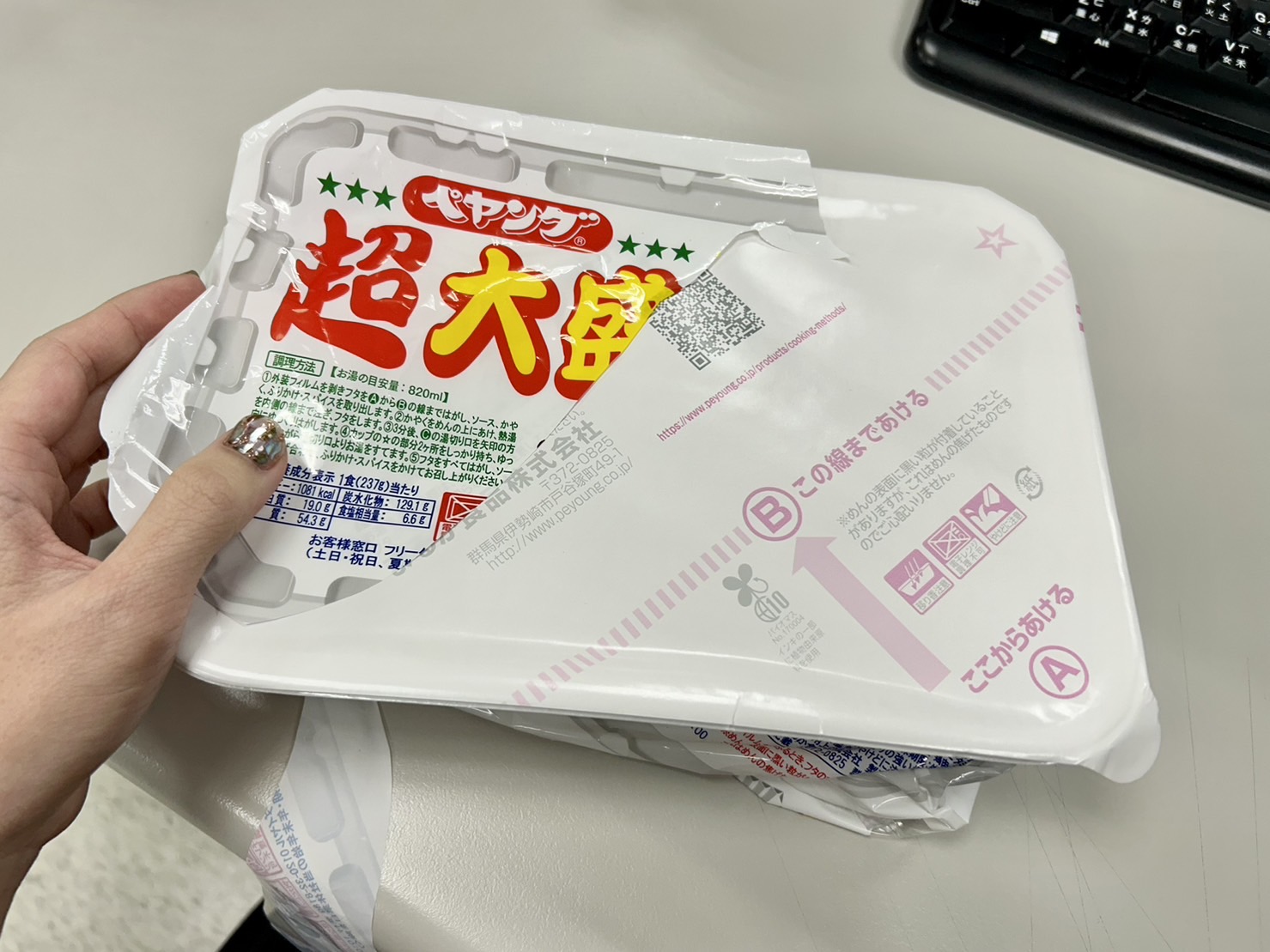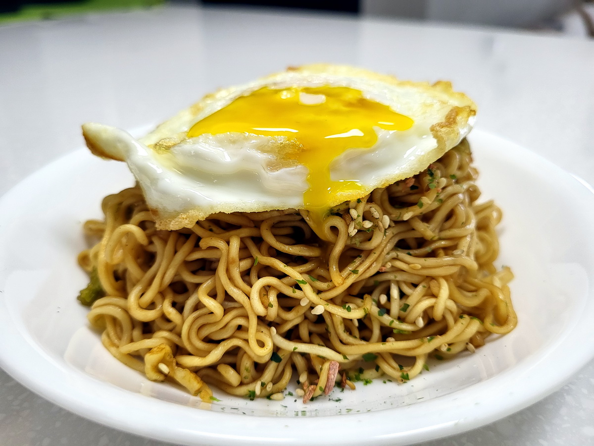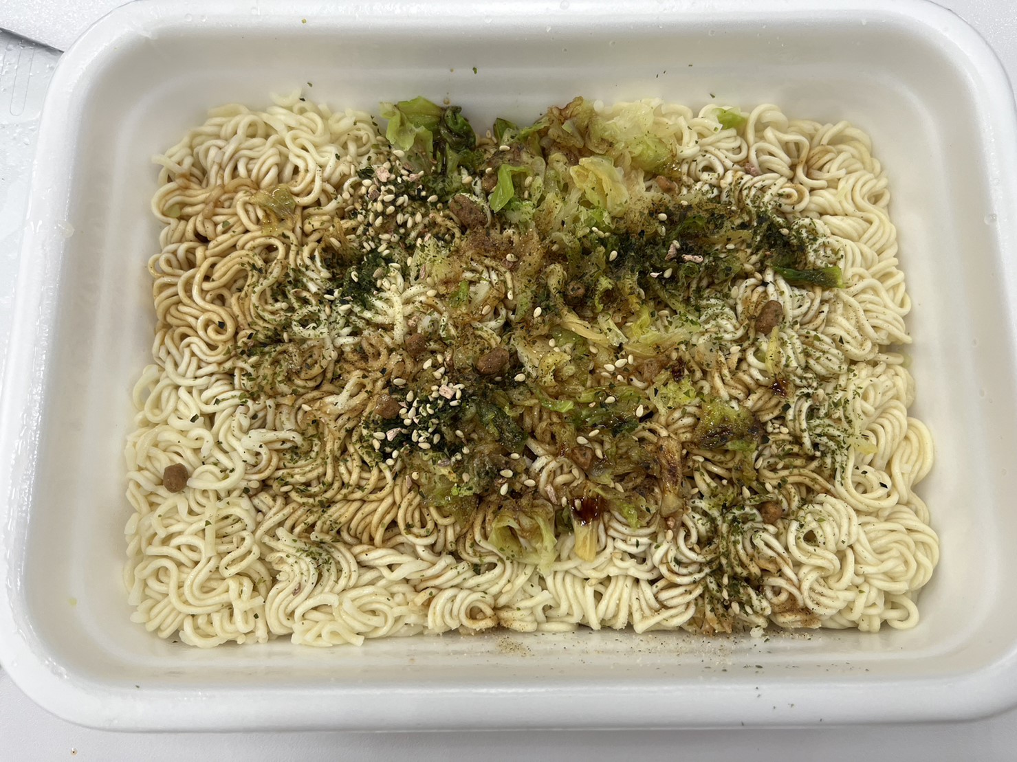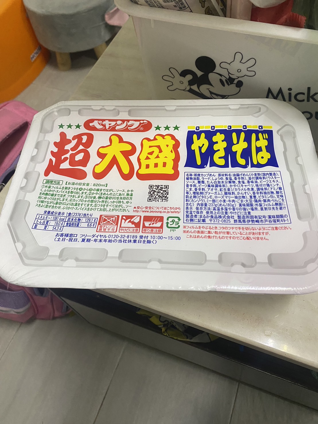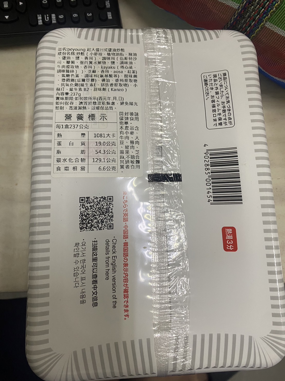調味炒麵(小麥粉、豬油、植物油、鹽、醬油、香料)、辣醬油、捲心菜、糖、蛋白質水解物、豬肉碎、鹽、香油、芝麻、香料、紅姜、aosa、牛肉提取物、焦糖色素、調味料(氨基酸等)、增稠劑(瓜爾豆膠)、酸味劑、柑橘、抗氧化劑(維生素E)、香料提取物、維生素B2、紫蘇色素、(部分原料有醬油、牛肉、豬肉、蘋果)