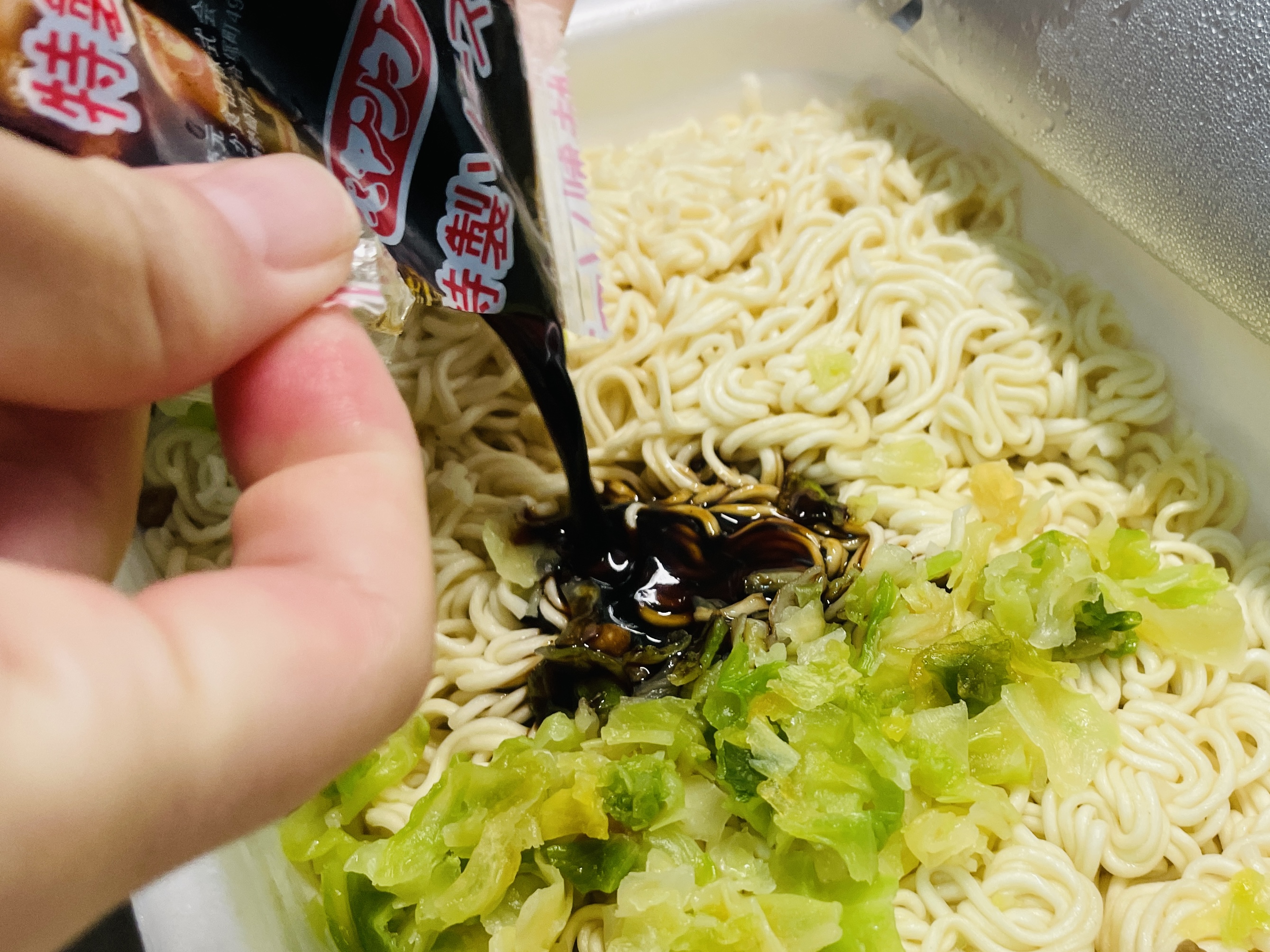4.將醬料包倒入麵體,並充分攪拌