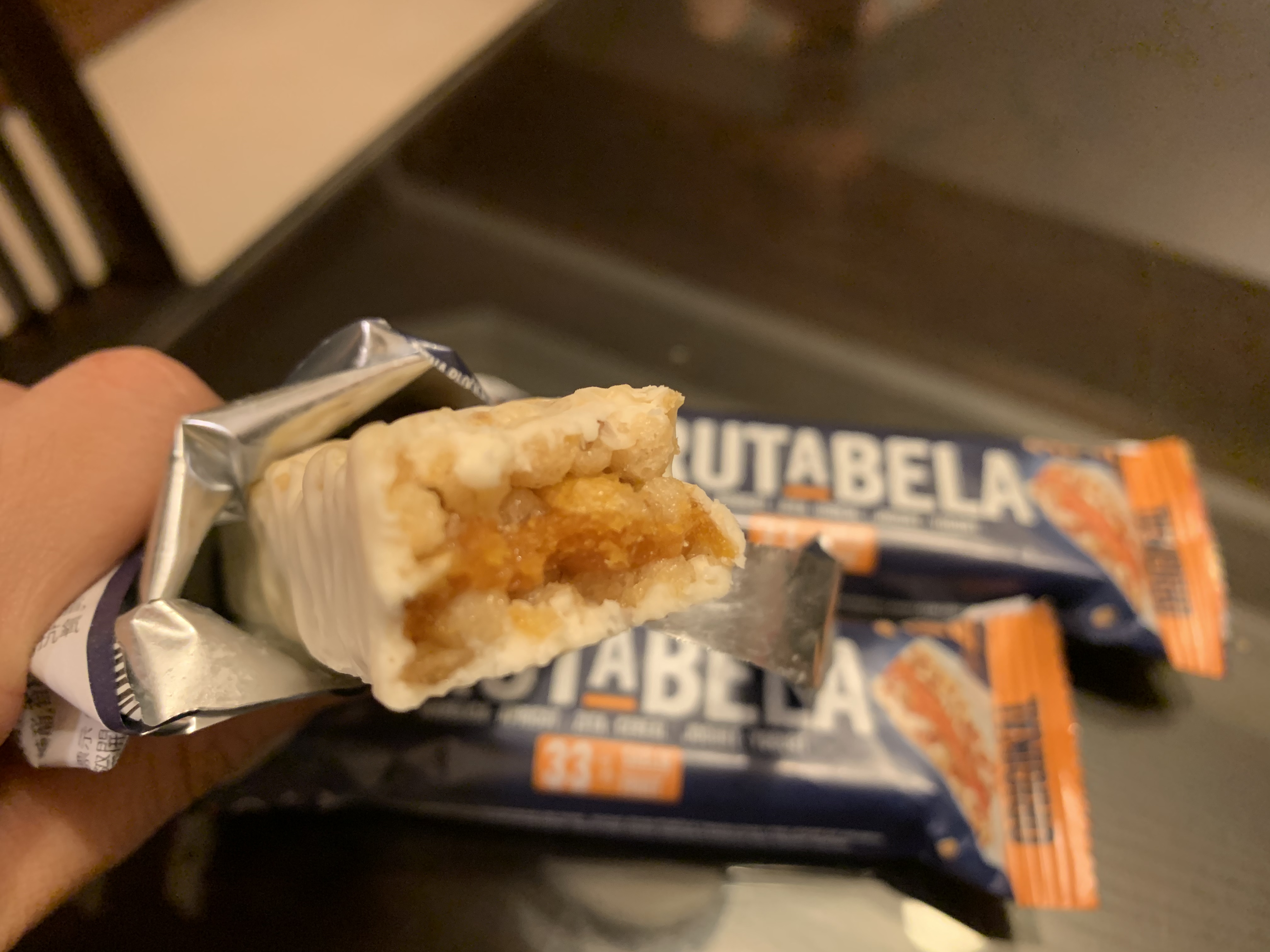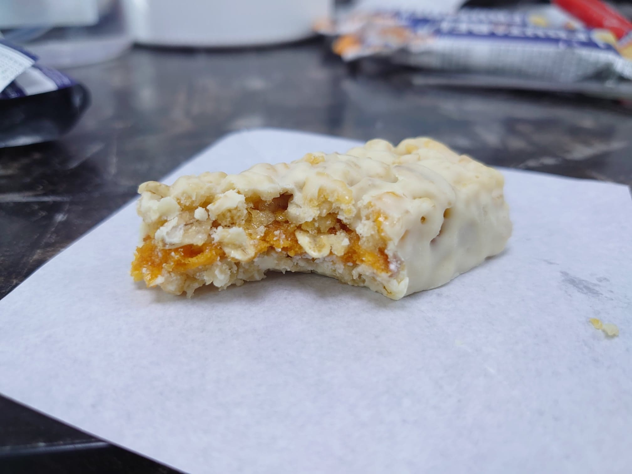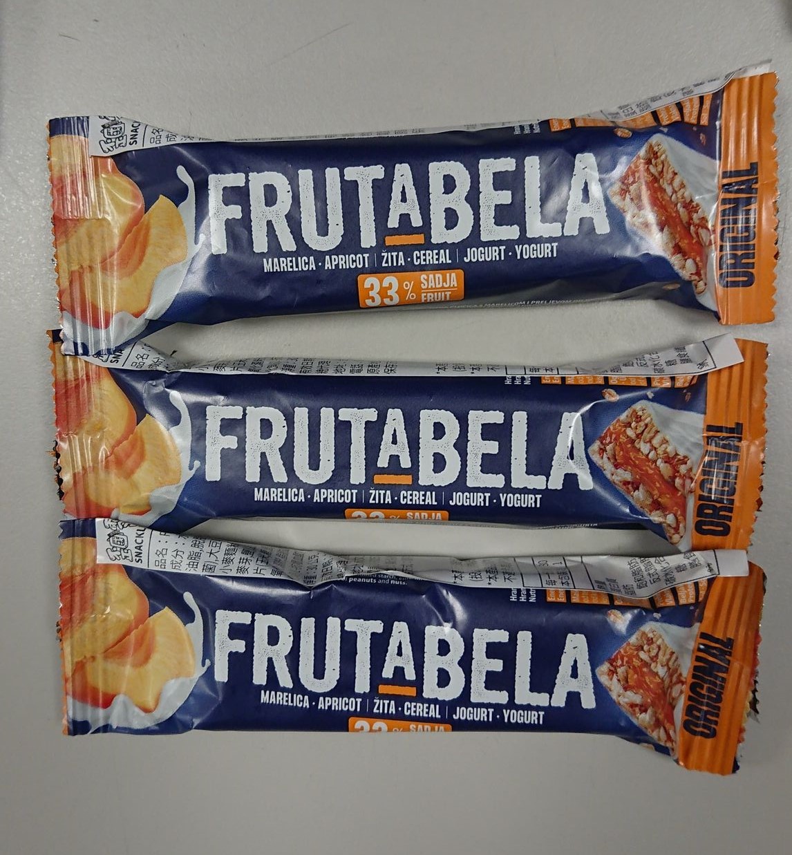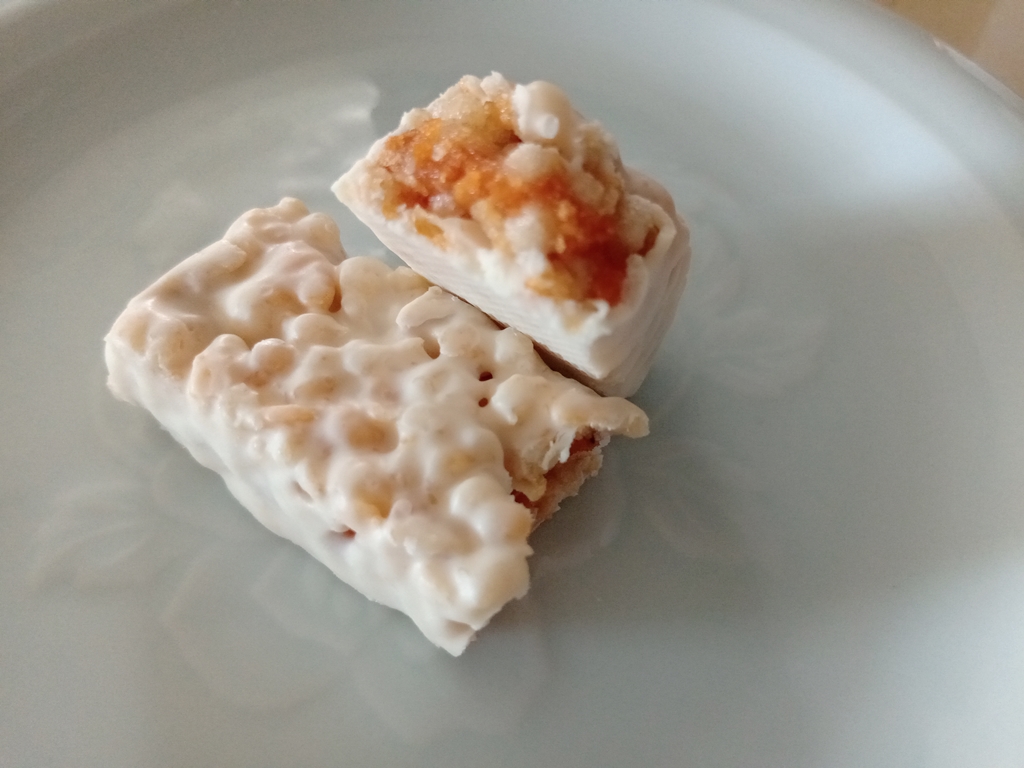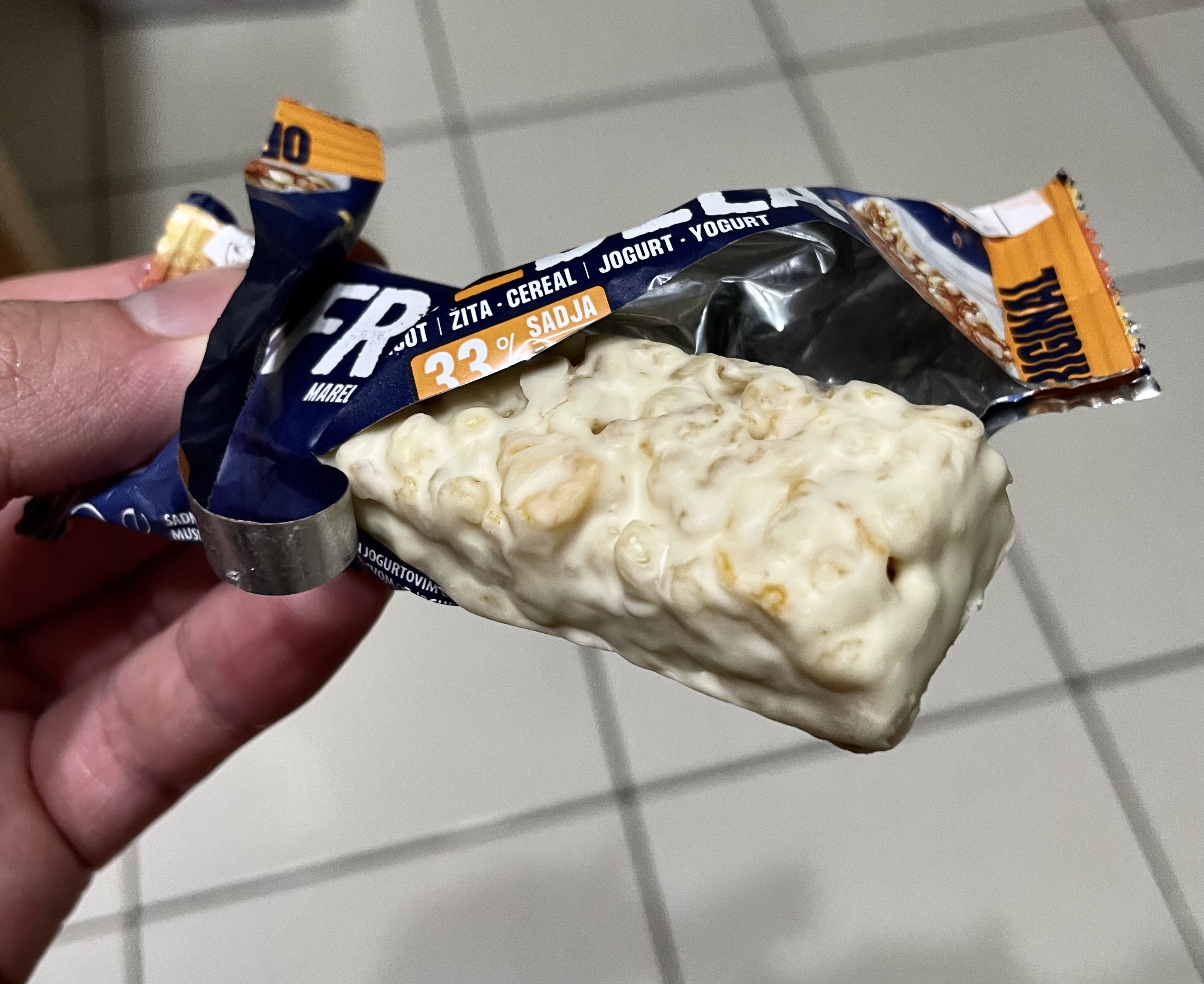 巧克力醬、水果醬、優格淋醬、全脂奶粉、優格粉、大豆卵磷脂、糖、葡萄糖漿、穀物、品質改良劑、甘油、玉米片、燕麥片、棕櫚脂肪、修飾澱粉、檸檬酸、香料、脂肪酸蔗糖酯、抗氧化劑