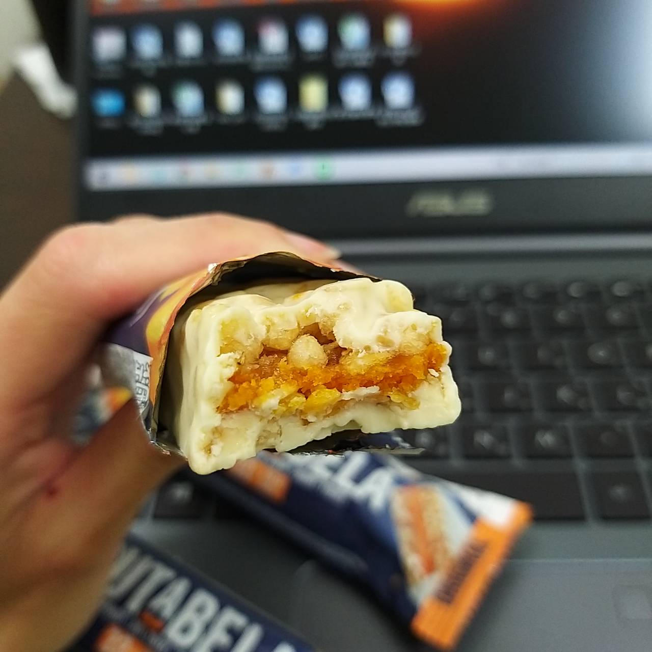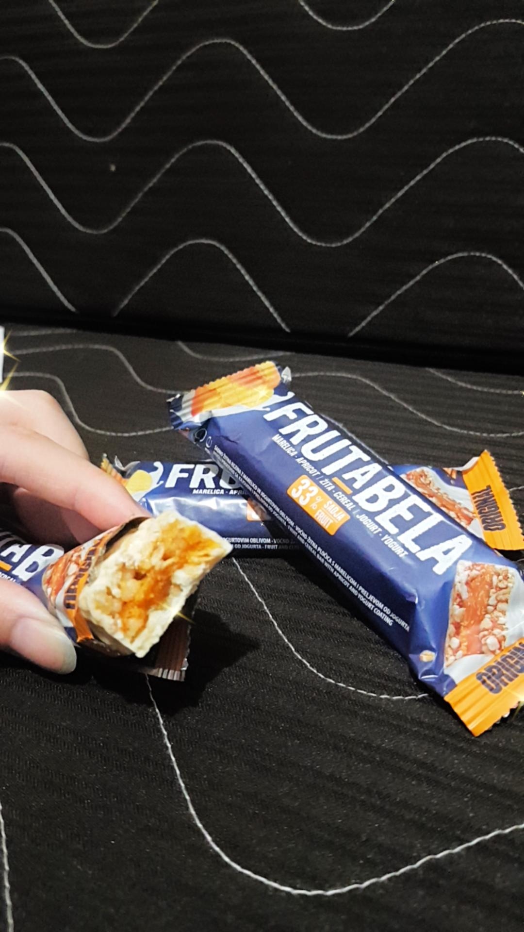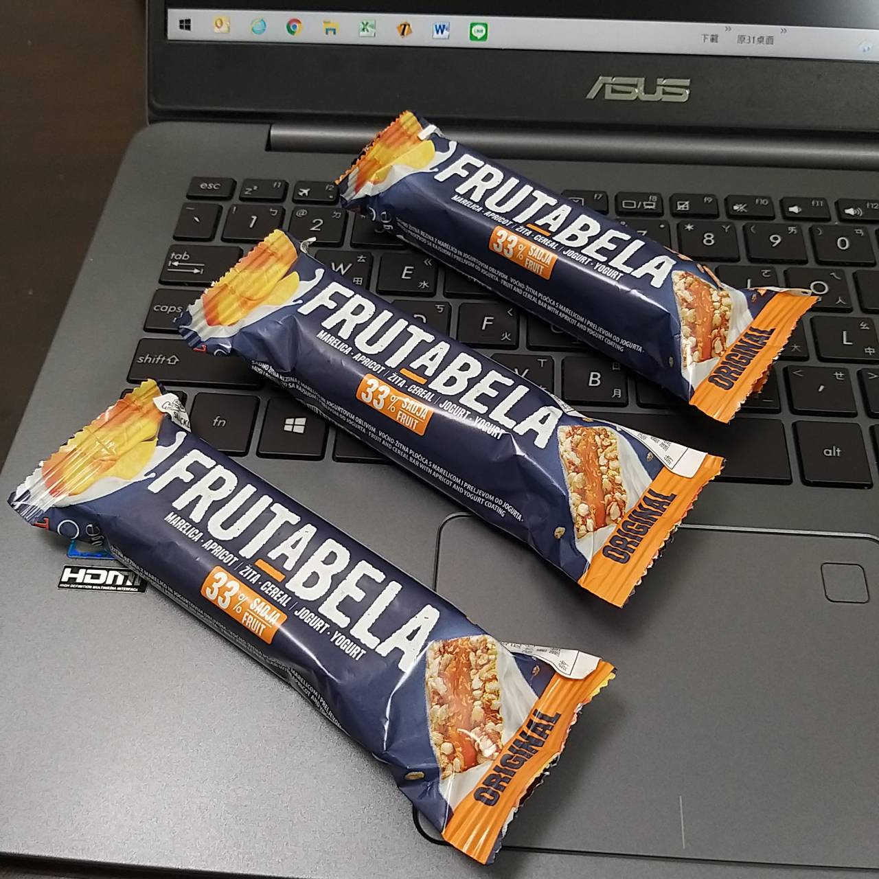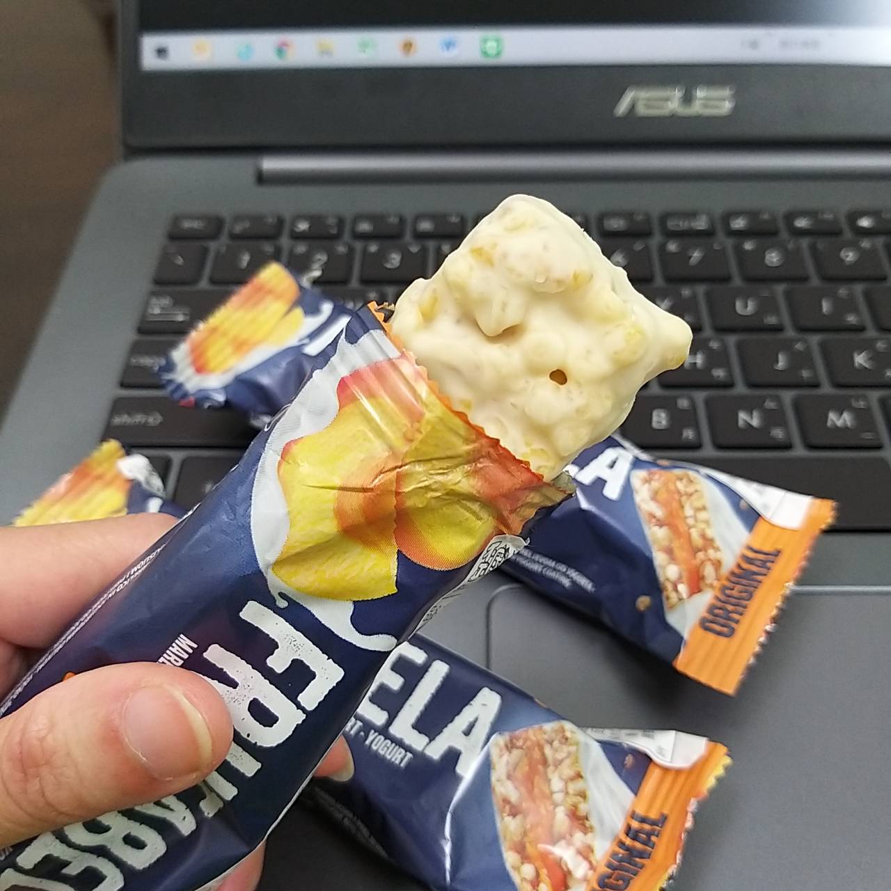 巧克力醬、水果醬、優格淋醬、全脂奶粉、優格粉、大豆卵磷脂、糖、葡萄糖漿、穀物、品質改良劑、甘油、玉米片、燕麥片、棕櫚脂肪、修飾澱粉、檸檬酸、香料、脂肪酸蔗糖酯、抗氧化劑