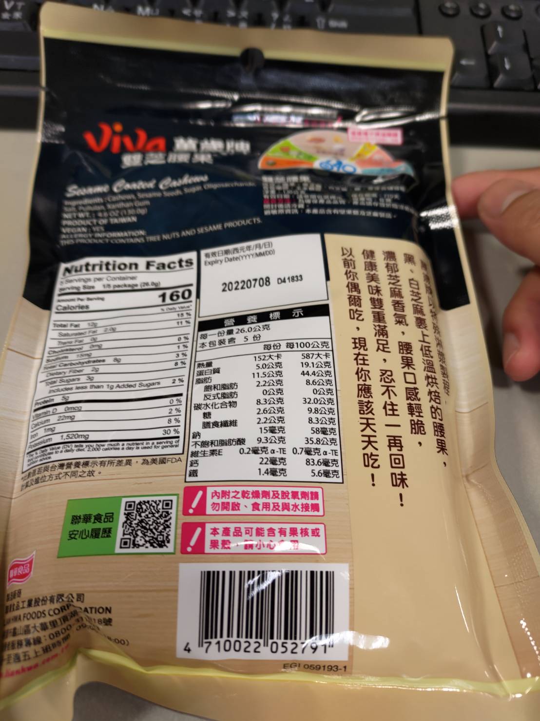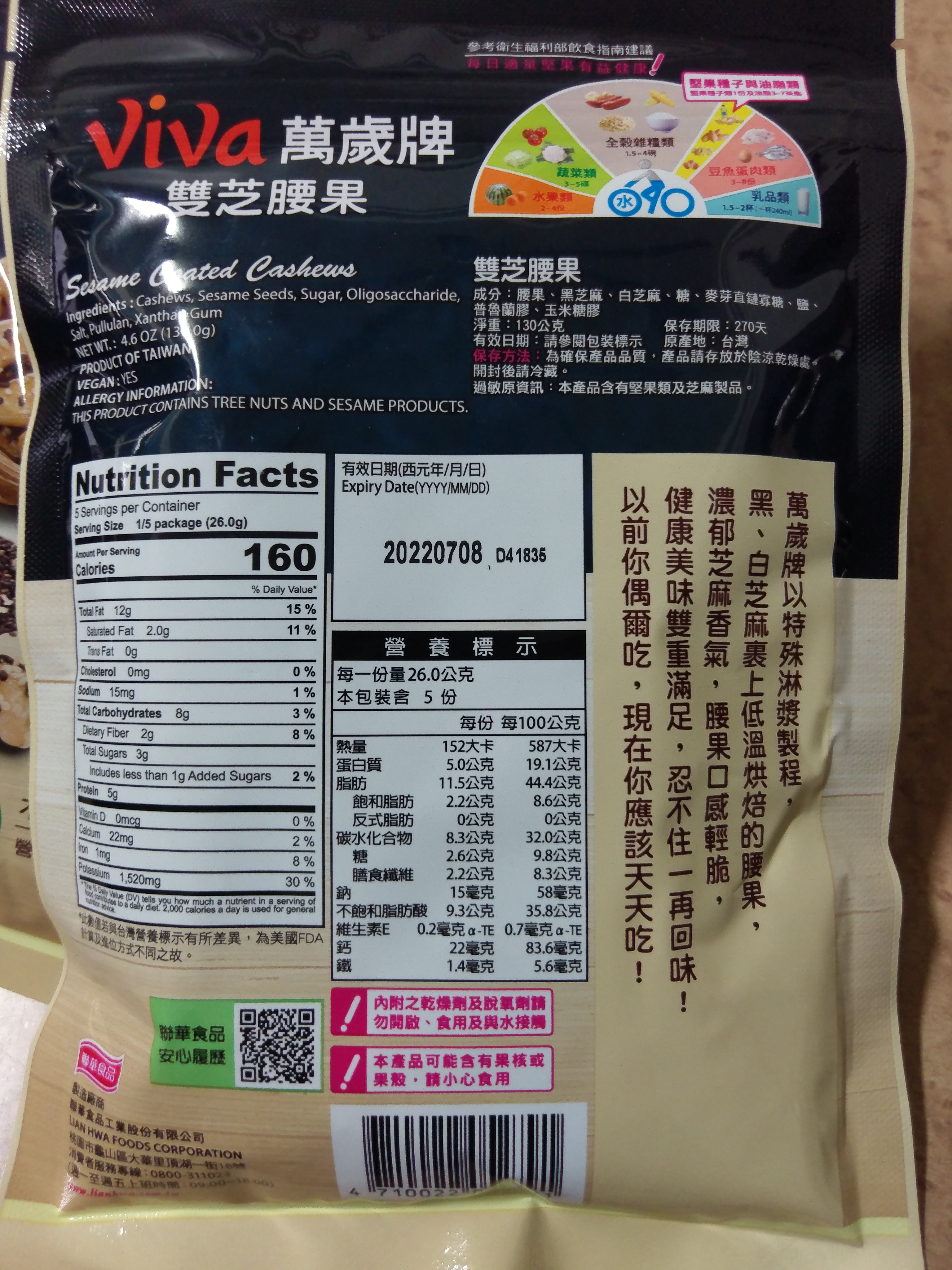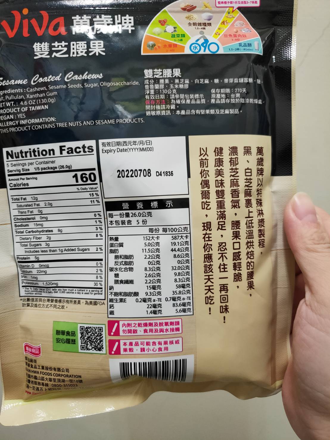 回列表 萬歲牌 雙芝腰果 雙倍香脆 營養加倍 零食不再罪惡 150元/包,共兩包300元 所需等級 一般會員以上 所需學分 20 體驗份數 40 關注人數 1454 申請人數 380 申請截止 品牌業者:VIVA萬歲牌 製造廠商 VIVA萬歲牌 廠商聯絡電話 02-2555-3161 試用產品規格 130g/包,共2包 食品業者登錄字號 A-107569627-00000-0 心得分享 商品介紹 商品成分 使用方法 注意事項 體驗名單 9.3 VIVA萬歲牌 雙芝腰果 芝麻香氣 9.4 腰果脆口 8.9 營養健康 9.2 調味喜好 9.1 建議推薦 9.3 心得分享 40則 Cu Tung 金食達人 52歲 臺北市 2021/11/27 對VIVA萬歲牌 雙芝腰果留下評價 10 口感超好的,又脆又香,而且不只堅果的香氣,更包括了芝麻的味道,又非常搭配,從沒想過二者可以如此結合,算是開了眼界與口感。包裝上的夾鏈設計也很方便,畢竟堅果是高油脂,不適合一下吃太多,所以我都是一次吃個五六個堅果就停,夾鏈帶就是很好的設計,使用方便又便於保存,不會受潮而軟掉,太貼心。如果能也能是聯華擅長的潔淨標章系列的話,那就更好了,不僅少添加,更健康,當然這在技術上是非常挑戰,期待未來有機會讓這款產品能升級至此,很期待。 林益詠 鑽石達人 36歲 臺中市 2021/11/27 對VIVA萬歲牌 雙芝腰果留下評價 10 低溫烘培,一直是對堅果的營養保留最好的處理方式,萬歲牌雙芝腰果當然也不例外地對堅果做低溫洪培,最重要的是能夠和其他堅果低溫烘培產品不一樣的點我覺得是加入芝麻的這個想法,使用了吃起來甜甜的糖漿黏住了容易分散的的芝麻,然後芝麻跟腰果的香味能夠一起進入味覺,產生出不同的層次感。在營養方面更是加分,除了腰果有大量的維生素和營養素,所含油脂屬 Omega 3多元不飽和脂肪酸,能不易產生肥胖及產生心血管問題、促進身體代謝、降低中風的風險之外,黑白芝麻的亞麻油酸,是一種健康的不飽和脂肪酸,可以幫忙降低身體膽固醇、清理血管、潤腸通便,更不用說膳食纖維能幫助排便的功效了。一天吃個三到四顆,不僅好吃,營養更是滿分。 鍾清輝 金食達人 35歲 高雄市 2021/11/28 對VIVA萬歲牌 雙芝腰果留下評價 9 這是一個非常適合我的點心食物首先腰果本身就是一種很好的零食自己平常不管在早餐或是下午茶偶爾也會吃一些堅果類的食物這一款腰果吃起來口感硬度不會過應有點甜甜的 非常的好吃 也很適合我配茶的時候當小零嘴配食真的覺得太適合了~ 周佳雯 鑽石達人 47歲 彰化縣 2021/11/29 對VIVA萬歲牌 雙芝腰果留下評價 9 感謝萬歲牌提供好吃又健康的堅果零嘴以及食力提供抽獎機會!我很喜歡吃堅果,身上總是會隨身攜帶幾小包堅果隨身包,偶而肚子餓時可以嚐一下,市售上的堅果品牌我都買過,說真的我覺得萬歲牌最好吃,每次打開味道都是很新鮮的,其他品牌都有一些缺點,例如咀嚼時感受到一些些不新鮮的味道、或是裡面堅果、果乾不好吃,亦或是果仁烘的太硬,這次萬歲牌提供的試吃品是腰果搭配黑白芝麻,腰果富含ω-3脂肪酸、黑芝麻含豐富鈣質、白芝麻含豐富不飽和脂肪酸,這三者都是對身體很棒的食物,每天適量攝取有益健康,試吃的心得一如往常新鮮、腰果淋上麥芽微甜並沾附黑白雙色芝麻,吃的時候不會一直掉芝麻,除了腰果的香氣還有芝麻香,兩者搭配很合適不會互相搶味,好吃! 陳奕丞 鑽石達人 37歲 新北市 2021/11/29 對VIVA萬歲牌 雙芝腰果留下評價 10 首先感謝(VIVA萬歲牌)和(食力)提供本次試用的機會,因為小弟我本身一直都有在吃堅果的習慣,常常把堅果當成辦公室的健康零嘴,或是居家的小點心。所以得知獲選本次的試用體驗,有機會試試新口味,我非常開心。萬歲牌推出的產品品質有口皆碑,也在小弟我日常的堅果購物名單內。實際體驗品嘗後,果然不出所望,十分美味,腰果香脆的口感,加上淡淡的芝麻香,尤其是很貼心的加入了黑白兩種芝麻,使芝麻的香氣完美呈現,品嘗的出來芝麻的香氣,但又不會喧賓奪主搶走原本腰果的風味,兩者香氣恰到好處的在口中散發開來,我家人品嘗後,也是讚不絕口,直說好吃。如果你跟我一樣是喜歡吃堅果的同好,那你一定要品嘗看(VIVA萬歲牌 雙芝腰果),我十分推薦(VIVA萬歲牌 雙芝腰果)給大家,品嚐零嘴的同時也可以兼顧健康,感謝(食力)&(VIVA萬歲牌)提供這次的試用機會,再次謝謝。 賴冠普 金食達人 38歲 臺北市 2021/11/29 對VIVA萬歲牌 雙芝腰果留下評價 9 包裝非常的好撕順手,不像有些洋芋片的包裝非常難打開,同時還有夾鏈袋設計,對於一天攝取不多的堅果油脂類的保存相當友善。整體口味不會像其他市售產品偏甜,也不會過於黏手,可惜以脆口性來說有點美中不足,但對於牙齒不好的中老年人卻是非常好入口,會一口接一口就停不下來。香氣的部分還算平衡,因為其實個人對於純芝麻沒有到很愛,所以他不會過於突出深得我心,不過希望下次可以推出綜合堅果口味,如此就能更均衡的攝取堅果類的營養成分。 蘇孜艾 鑽石達人 40歲 臺南市 2021/11/29 對VIVA萬歲牌 雙芝腰果留下評價 9 我本來就很愛吃芝麻跟堅果,其實產品一上市我就立馬買來嚐鮮了,果然沒讓我失望,看到有這個活動,也是馬上參加,而且也很開心有中獎。一打開產品,滿滿撲鼻而來的芝麻香味,一入口甜甜的,再來就是滿滿的芝麻香氣,讓人一口接一口,唯一可惜的是太甜了,無法吃很多,若能降低甜度,應該會讓人一次吃完一整包的。 胡家菁 金食達人 50歲 高雄市 2021/11/29 對VIVA萬歲牌 雙