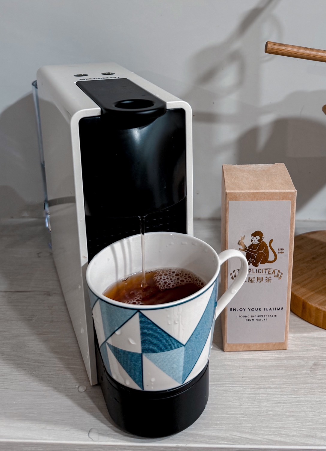 使用茶葉膠囊前請先將咖啡機走水一次,不放膠囊直接按大杯即可,可以降低咖啡味道對於茶湯的影響