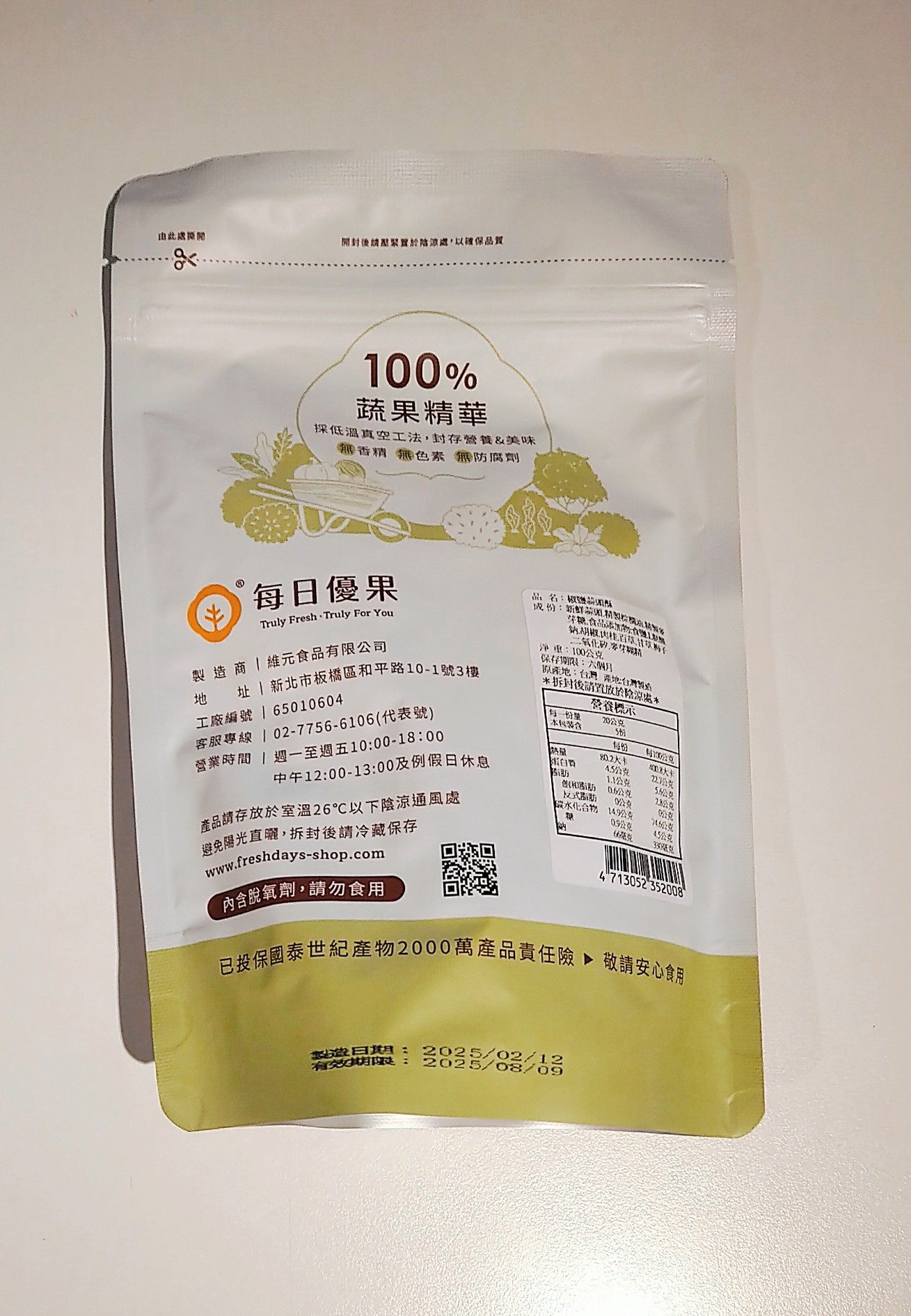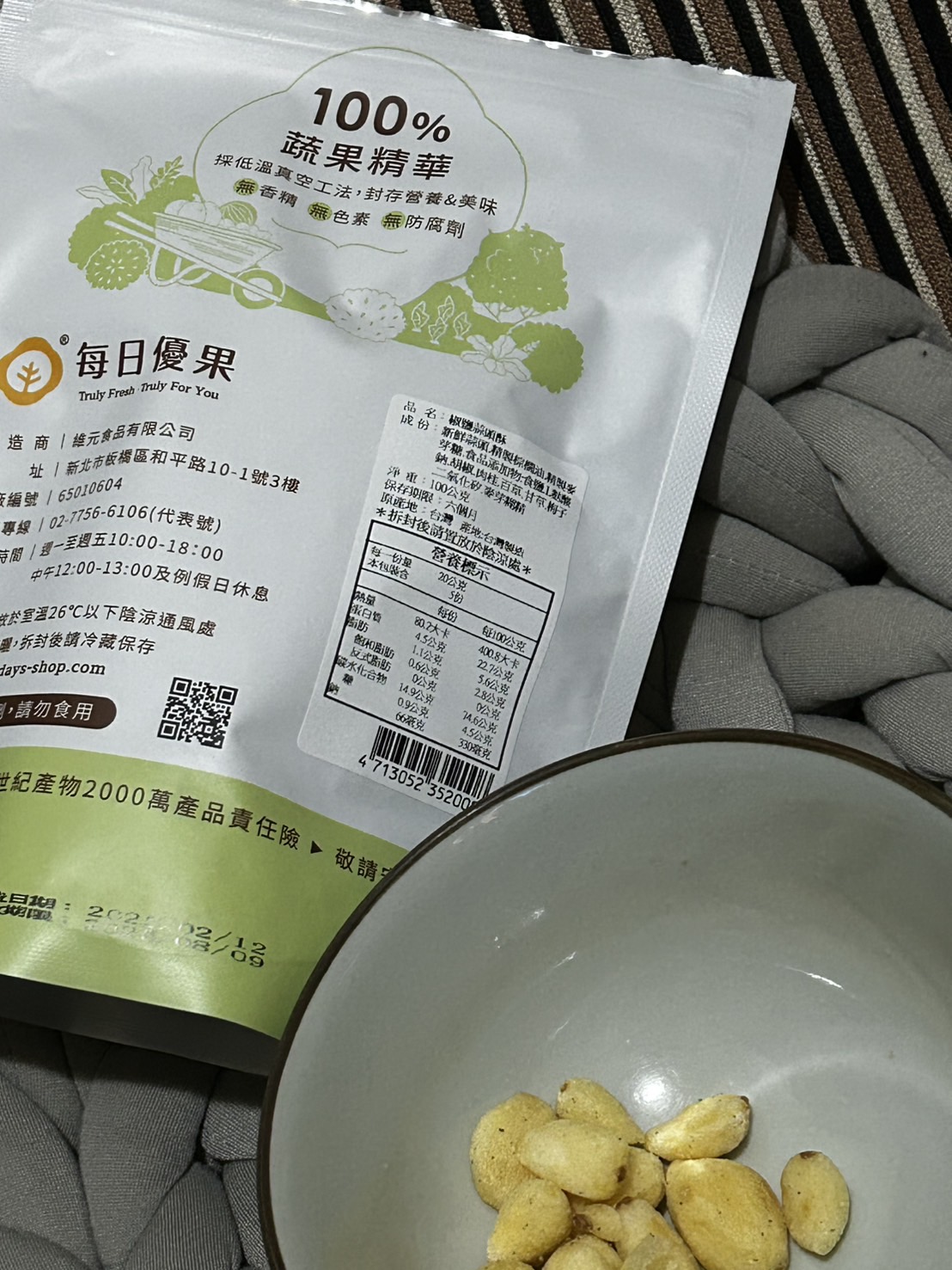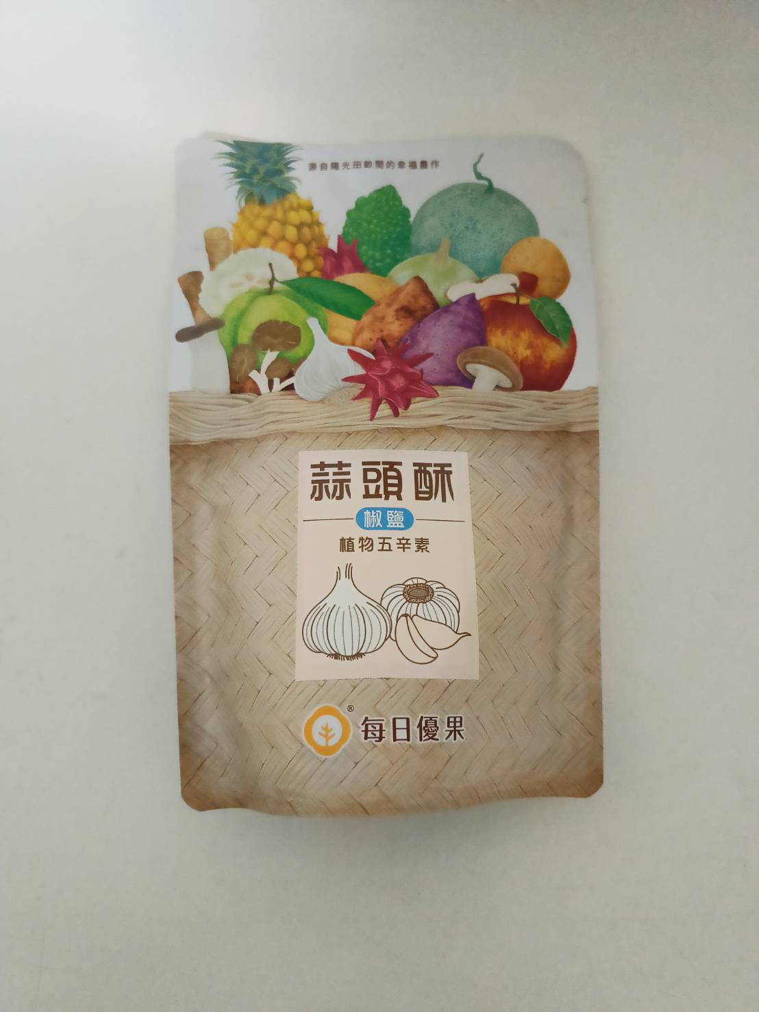 回列表 每日優果 椒鹽蒜頭酥 爽嗑性零食 看片追劇解饞好幫手 市價200元 (免費申請) 所需等級 一般會員以上 所需學分 70 體驗份數 15 關注人數 1573 申請人數 212 申請截止 品牌業者:維元食品有限公司 製造廠商 維元食品有限公司 廠商地址 220新北市板橋區和平路10-1號3樓 產地 台灣 試用產品規格 100g/包 食品業者登錄字號 F-142726650-00000-5 投保產品責任險字號 國泰世紀2000萬產品責任險 心得分享 商品介紹 商品成分 使用方法 注意事項 體驗名單 8.5 每日優果 椒鹽蒜頭酥 包裝美學 9.2 香味濃郁 9.1 口感酥脆 9.0 下酒程度 8.8 建議推薦 8.6 心得分享 14則 Ivy Huang 金食達人 40歲 臺北市 2025/02/20 對每日優果 椒鹽蒜頭酥留下評價 8 沒吃過蒜頭酥,很開心可以獲得試吃的機會!每日優果的蒜頭酥,是採用新鮮蒜頭,以低溫真空工法製成,完全吃得到蒜頭的原始風味,感覺很新鮮健康,也沒有增加香精和防腐劑等等。雖然是椒鹽口味,但也不會太鹹或令人口乾舌燥,還可以稍微淡化蒜味,酥脆的口感很適合配啤酒、飲料,當成閒暇時的小零食。不過因為畢竟是蒜頭製成,有些沒那麼能接受蒜味的親友,就不太能夠接受,而且蒜頭也不能一次吃太多,會造成消化道不適,也會在口中殘留味道,看到每日優果有出產非常多種乾燥蔬果脆片,都可以嘗試看看喔! 小劉 鑽石達人 27歲 臺北市 2025/02/22 對每日優果 椒鹽蒜頭酥留下評價 8 每日優果的蒜頭酥包裝精美,不論是送禮送禮自用都兩相宜,包裝是貼心的夾鏈袋密封設計,不用擔心一次沒吃完會影響口感。這次嘗試的口味是椒鹽口味,一打開包裝便有濃濃的蒜頭香及椒鹽香氣,迫不及待嚐了一口,口感十分酥脆,少了生蒜頭辛辣嗆口的感覺,卻又能完美體現出蒜頭迷人之處,椒鹽混合著蒜香,讓人一口接一口欲罷不能,絕對是蒜頭星人必須手刀購入的產品,搭配著有氣飲料,喜歡的影集,最完美的時光不過如此。某些餐廳會把蒜片及肉類搭配在一起,我想之後我也會這樣嘗試,希望能蹦出新滋味。 陳麒茗 鑽石達人 45歲 新北市 2025/02/22 對每日優果 椒鹽蒜頭酥留下評價 8 產品包裝用色很鮮明,正面有豐富的彩色蔬果圖案加上竹籃編織圖騰襯托很有特色也會吸引人目光。主產品的蒜頭圖案跟文字直接就是很清楚產品特色,背面也是用淺綠色跟淡綠色很清新,外加標示註明製造商跟產地就是本土製造。最重要是特別標籤有營養標示食用很健康而且品質有保障。內裝物就是小小顆的蒜頭,乍看之下很像真的蒜頭,一口酥脆入口濃濃的蒜頭味,吃起來很過癮,夾鏈條設計也可以封存冷藏!但本身就是有蒜頭味需配飲料才不會很乾,最適合當下酒菜配啤酒很對味。 承哲 金食達人 52歲 臺北市 2025/02/23 對每日優果 椒鹽蒜頭酥留下評價 8 這次收到每日優果每日優果的蒜頭酥-椒鹽口味,一包是100公克。這是一款極具特色的蒜頭脆片零食,產品是台灣嚴選100%新鮮蒜頭加上椒鹽調味,使用低溫真空方式封存蒜頭精華,且無添加人工色素、香精、防腐劑。吃進去時會散發出濃郁的蒜香,搭配椒鹽調味,讓整體風味更加層次分明。酥脆的口感讓人印象深刻。此蒜頭酥不僅可以單獨食用,也可以搭配其它主食來增添風味。如果喜歡蒜香與鹹香交織的美味,這款蒜頭酥會是絕佳選擇。不過,因為此產品蒜味較濃,建議酌量享用。整體而言,這是一款值得一試的獨特零食! Li Emma 鑽石達人 49歲 高雄市 2025/02/23 對每日優果 椒鹽蒜頭酥留下評價 10 蒜頭是健康的好東西,居然可以做成零食的形式實在是太特別了,即開即食也好方便,而且吃起來不嗆辣,連平時不敢吃蒜頭的小孩都很愛吃耶!拿來配飯配飲料也超適合的,家裡剛好有剩一些年貨還未消化完,把一口烏魚子和豬肉乾搭配上(每日優果-椒鹽蒜頭酥)一起配飯吃,飯都可以多吃好幾口,也太下飯了吧!消夜時搭個氣泡飲料或啤酒也都很讚!口感相當酥脆,調味也很香,讓人一口接一口的吃,超唰嘴的,夾鏈袋形式的包裝也很方便,但是小孩自己拿來吃都會擔心沒密封好,感覺很怕受潮軟掉,如果能分裝個小包一定更加方便與令人安心。感謝抽中試吃! 劉家妤 銀食達人 39歲 新北市 2025/02/24 對每日優果 椒鹽蒜頭酥留下評價 9 最近感冒的人好多,雖然有戴好口罩但還是很怕不小心就被傳染!只能盡量增強自己的免疫力~所以最近開始吃生蒜頭,只是好辣好辣口感不是很好,就在這時!我抽到了每日優果”椒鹽蒜頭酥”,也太剛好了吧!!!!!馬上就打開來吃,免剝皮鹹香鹹香好酥脆,像在吃餅乾一樣,沒有像生蒜頭那般恐怖的辣勁,既可以補充免疫力又可以當零嘴吃,一舉兩得!不過不能空腹或是因為好吃就吃太多,會容易造成腸胃不適。小孩都害怕吃蒜頭,但這蒜頭酥可以接受,每天讓他吃幾顆,降低感冒頻率,真的太棒啦! 黃H 金食達人 55歲 新北市 2025/02/24 對每日優果 椒鹽蒜頭酥留下評價 7 今天試吃了"每日優果 椒鹽蒜頭酥",這款零食讓我一開始就有很高的期待。包裝設計簡單又不失吸引力,打開包裝後可以聞到濃郁的蒜頭香味和椒鹽的鹹香,這讓我迫不及待地想要嚐嚐看。咬下去的感覺,酥脆的口感立刻讓人印象深刻,蒜頭的味道有點強烈,但是和椒鹽的鹹香相互融合,讓味蕾充滿層次感。每一口都帶有微微的辛辣感,非常適合在看片或追劇的時候吃,既解饞又不會覺得油膩。再加上適中的鹹味,讓人一口接一口停不下來。另外,這款零食也不會像其他零食那樣讓人吃得