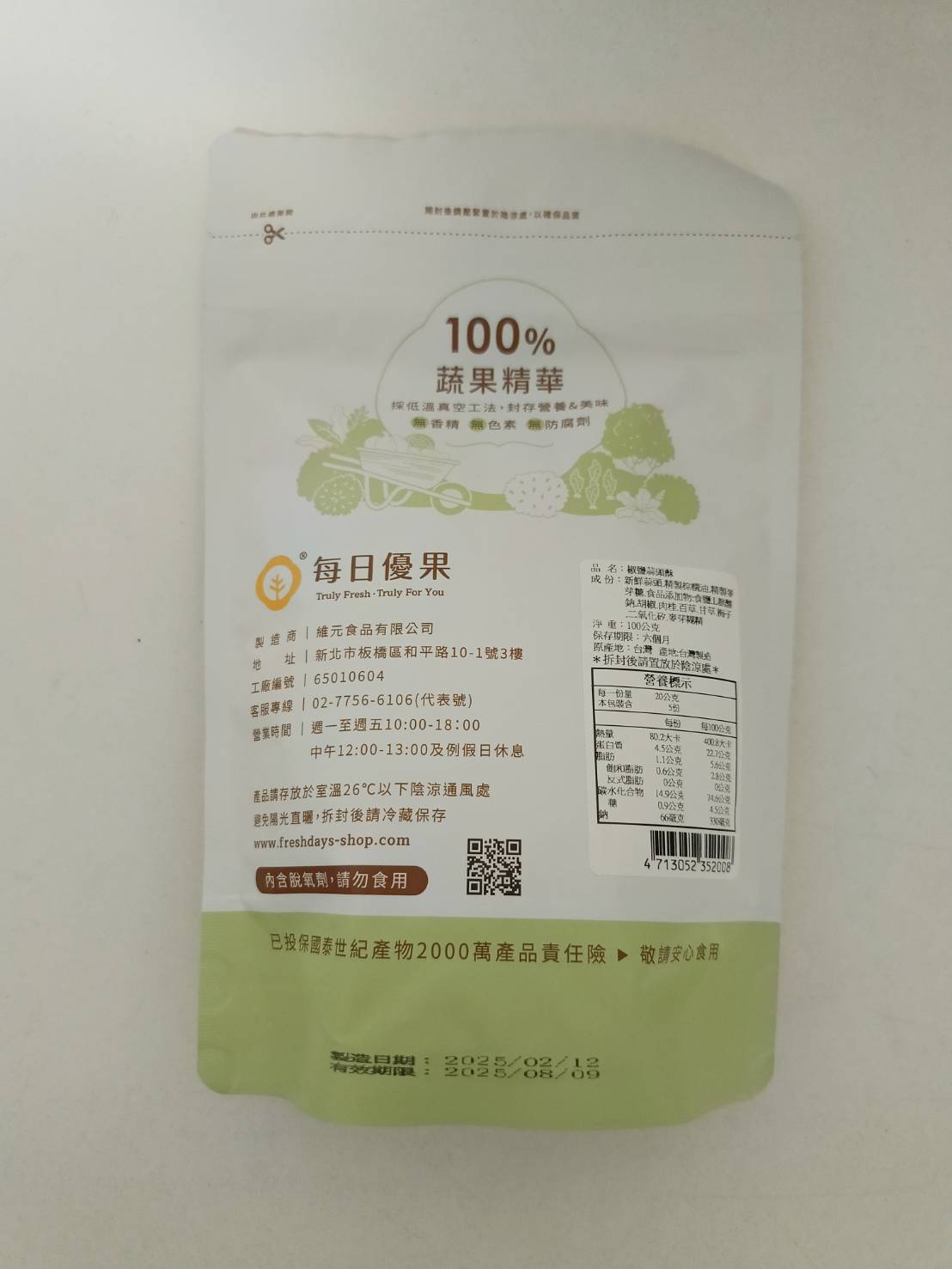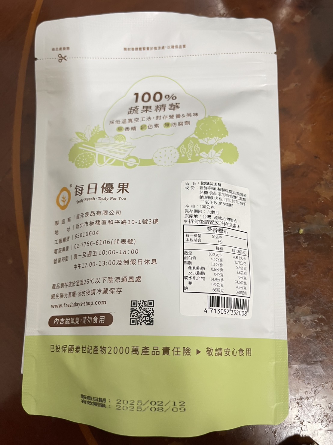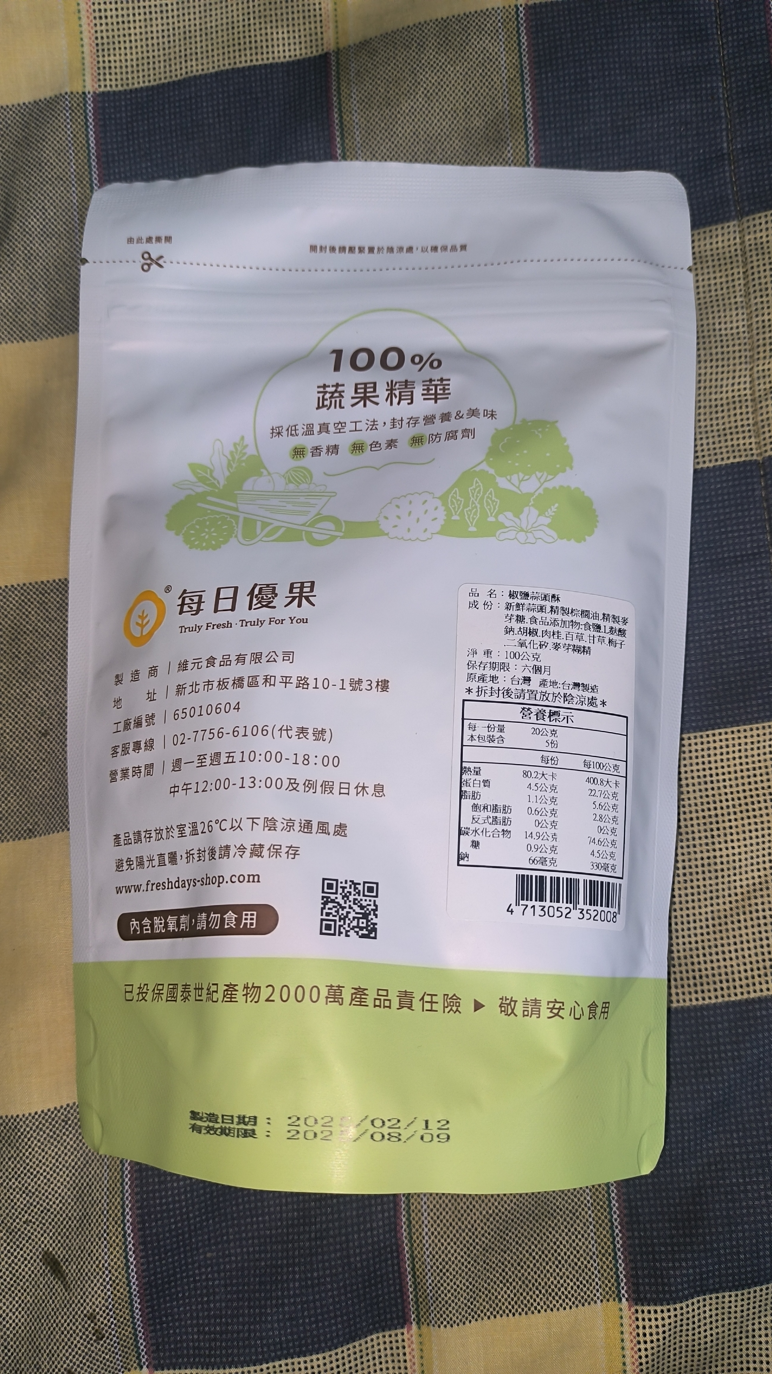 回列表 每日優果 椒鹽蒜頭酥 爽嗑性零食 看片追劇解饞好幫手 市價200元 (免費申請) 所需等級 一般會員以上 所需學分 70 體驗份數 15 關注人數 1573 申請人數 212 申請截止 品牌業者:維元食品有限公司 製造廠商 維元食品有限公司 廠商地址 220新北市板橋區和平路10-1號3樓 產地 台灣 試用產品規格 100g/包 食品業者登錄字號 F-142726650-00000-5 投保產品責任險字號 國泰世紀2000萬產品責任險 心得分享 商品介紹 商品成分 使用方法 注意事項 體驗名單 8.5 每日優果 椒鹽蒜頭酥 包裝美學 9.2 香味濃郁 9.1 口感酥脆 9.0 下酒程度 8.8 建議推薦 8.6 心得分享 14則 Ivy Huang 金食達人 40歲 臺北市 2025/02/20 對每日優果 椒鹽蒜頭酥留下評價 8 沒吃過蒜頭酥,很開心可以獲得試吃的機會!每日優果的蒜頭酥,是採用新鮮蒜頭,以低溫真空工法製成,完全吃得到蒜頭的原始風味,感覺很新鮮健康,也沒有增加香精和防腐劑等等。雖然是椒鹽口味,但也不會太鹹或令人口乾舌燥,還可以稍微淡化蒜味,酥脆的口感很適合配啤酒、飲料,當成閒暇時的小零食。不過因為畢竟是蒜頭製成,有些沒那麼能接受蒜味的親友,就不太能夠接受,而且蒜頭也不能一次吃太多,會造成消化道不適,也會在口中殘留味道,看到每日優果有出產非常多種乾燥蔬果脆片,都可以嘗試看看喔! 小劉 鑽石達人 27歲 臺北市 2025/02/22 對每日優果 椒鹽蒜頭酥留下評價 8 每日優果的蒜頭酥包裝精美,不論是送禮送禮自用都兩相宜,包裝是貼心的夾鏈袋密封設計,不用擔心一次沒吃完會影響口感。這次嘗試的口味是椒鹽口味,一打開包裝便有濃濃的蒜頭香及椒鹽香氣,迫不及待嚐了一口,口感十分酥脆,少了生蒜頭辛辣嗆口的感覺,卻又能完美體現出蒜頭迷人之處,椒鹽混合著蒜香,讓人一口接一口欲罷不能,絕對是蒜頭星人必須手刀購入的產品,搭配著有氣飲料,喜歡的影集,最完美的時光不過如此。某些餐廳會把蒜片及肉類搭配在一起,我想之後我也會這樣嘗試,希望能蹦出新滋味。 陳麒茗 鑽石達人 45歲 新北市 2025/02/22 對每日優果 椒鹽蒜頭酥留下評價 8 產品包裝用色很鮮明,正面有豐富的彩色蔬果圖案加上竹籃編織圖騰襯托很有特色也會吸引人目光。主產品的蒜頭圖案跟文字直接就是很清楚產品特色,背面也是用淺綠色跟淡綠色很清新,外加標示註明製造商跟產地就是本土製造。最重要是特別標籤有營養標示食用很健康而且品質有保障。內裝物就是小小顆的蒜頭,乍看之下很像真的蒜頭,一口酥脆入口濃濃的蒜頭味,吃起來很過癮,夾鏈條設計也可以封存冷藏!但本身就是有蒜頭味需配飲料才不會很乾,最適合當下酒菜配啤酒很對味。 承哲 金食達人 52歲 臺北市 2025/02/23 對每日優果 椒鹽蒜頭酥留下評價 8 這次收到每日優果每日優果的蒜頭酥-椒鹽口味,一包是100公克。這是一款極具特色的蒜頭脆片零食,產品是台灣嚴選100%新鮮蒜頭加上椒鹽調味,使用低溫真空方式封存蒜頭精華,且無添加人工色素、香精、防腐劑。吃進去時會散發出濃郁的蒜香,搭配椒鹽調味,讓整體風味更加層次分明。酥脆的口感讓人印象深刻。此蒜頭酥不僅可以單獨食用,也可以搭配其它主食來增添風味。如果喜歡蒜香與鹹香交織的美味,這款蒜頭酥會是絕佳選擇。不過,因為此產品蒜味較濃,建議酌量享用。整體而言,這是一款值得一試的獨特零食! Li Emma 鑽石達人 49歲 高雄市 2025/02/23 對每日優果 椒鹽蒜頭酥留下評價 10 蒜頭是健康的好東西,居然可以做成零食的形式實在是太特別了,即開即食也好方便,而且吃起來不嗆辣,連平時不敢吃蒜頭的小孩都很愛吃耶!拿來配飯配飲料也超適合的,家裡剛好有剩一些年貨還未消化完,把一口烏魚子和豬肉乾搭配上(每日優果-椒鹽蒜頭酥)一起配飯吃,飯都可以多吃好幾口,也太下飯了吧!消夜時搭個氣泡飲料或啤酒也都很讚!口感相當酥脆,調味也很香,讓人一口接一口的吃,超唰嘴的,夾鏈袋形式的包裝也很方便,但是小孩自己拿來吃都會擔心沒密封好,感覺很怕受潮軟掉,如果能分裝個小包一定更加方便與令人安心。感謝抽中試吃! 劉家妤 銀食達人 39歲 新北市 2025/02/24 對每日優果 椒鹽蒜頭酥留下評價 9 最近感冒的人好多,雖然有戴好口罩但還是很怕不小心就被傳染!只能盡量增強自己的免疫力~所以最近開始吃生蒜頭,只是好辣好辣口感不是很好,就在這時!我抽到了每日優果”椒鹽蒜頭酥”,也太剛好了吧!!!!!馬上就打開來吃,免剝皮鹹香鹹香好酥脆,像在吃餅乾一樣,沒有像生蒜頭那般恐怖的辣勁,既可以補充免疫力又可以當零嘴吃,一舉兩得!不過不能空腹或是因為好吃就吃太多,會容易造成腸胃不適。小孩都害怕吃蒜頭,但這蒜頭酥可以接受,每天讓他吃幾顆,降低感冒頻率,真的太棒啦! 黃H 金食達人 55歲 新北市 2025/02/24 對每日優果 椒鹽蒜頭酥留下評價 7 今天試吃了"每日優果 椒鹽蒜頭酥",這款零食讓我一開始就有很高的期待。包裝設計簡單又不失吸引力,打開包裝後可以聞到濃郁的蒜頭香味和椒鹽的鹹香,這讓我迫不及待地想要嚐嚐看。咬下去的感覺,酥脆的口感立刻讓人印象深刻,蒜頭的味道有點強烈,但是和椒鹽的鹹香相互融合,讓味蕾充滿層次感。每一口都帶有微微的辛辣感,非常適合在看片或追劇的時候吃,既解饞又不會覺得油膩。再加上適中的鹹味,讓人一口接一口停不下來。另外,這款零食也不會像其他零食那樣讓人吃得
