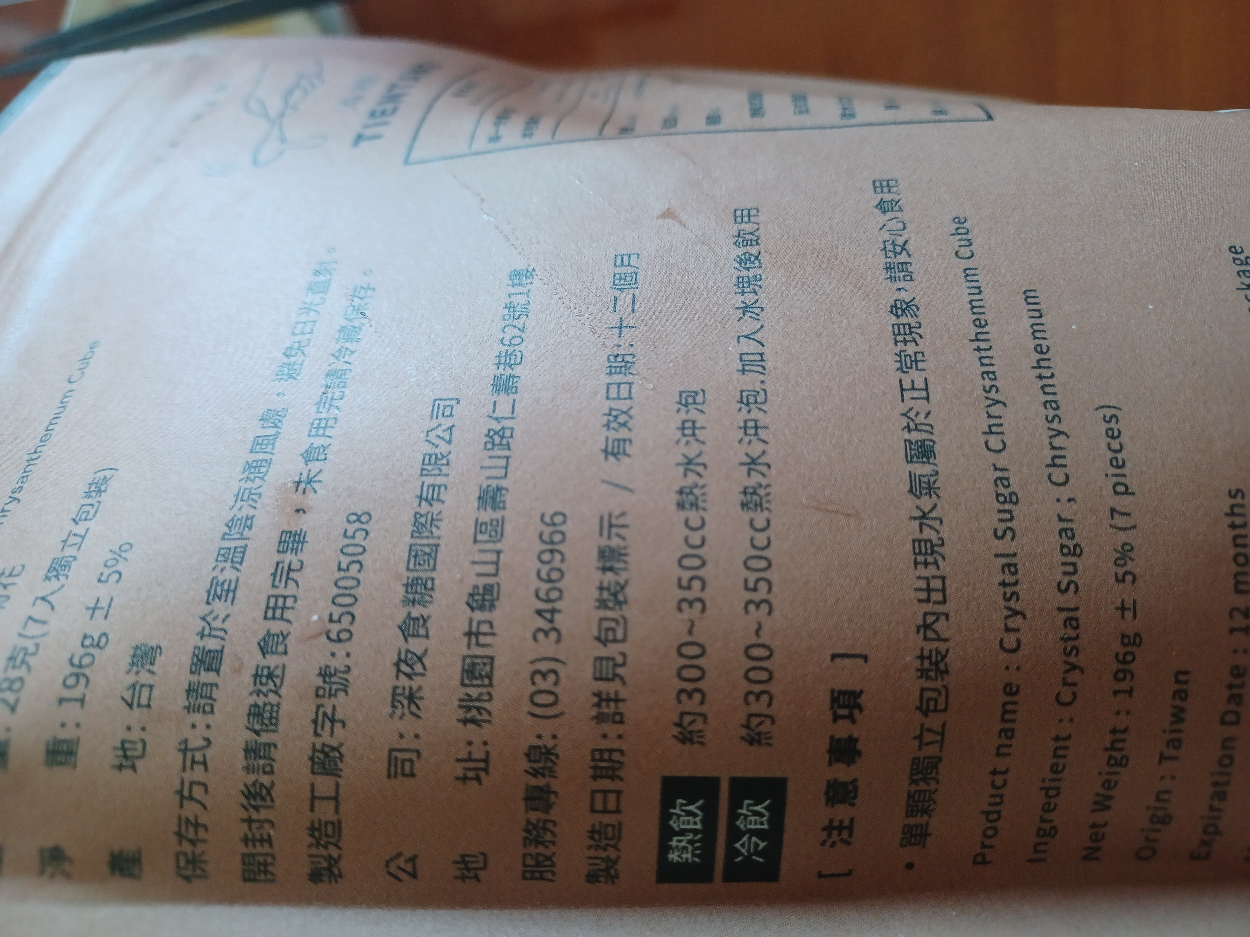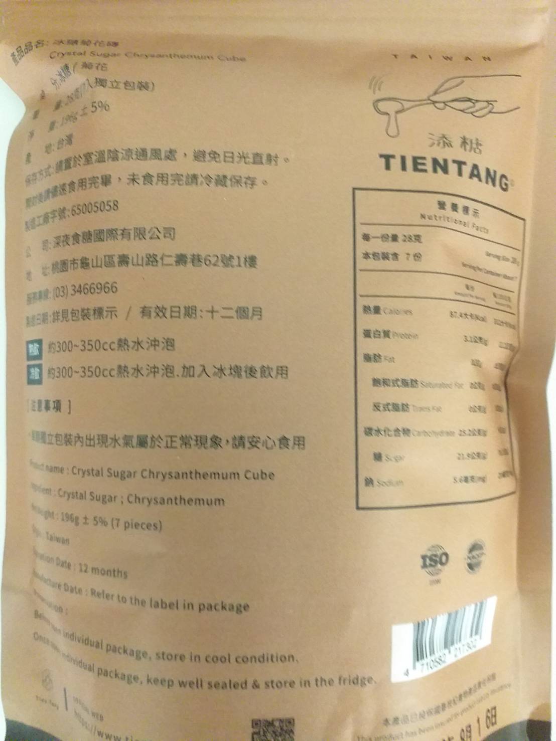 回列表 添糖 冰糖菊花磚 好香、好濃、好天然 台灣原產 新鮮冰糖 看得到原料好安心 市價170元 所需等級 一般會員以上 所需學分 60 體驗份數 15 關注人數 1376 申請人數 362 申請截止 品牌業者:添糖 負責廠商 深夜食糖國際有限公司 廠商地址 桃園市龜山區壽山路仁壽巷62號1樓 產地 台灣 試用產品規格 196公克/包 食品業者登錄字號 H-154508068-00000-1 投保產品責任險字號 國泰世紀產物產品責任保險 1504字第08PD02485號 心得分享 商品介紹 商品成分 使用方法 注意事項 體驗名單 8.1 添糖 冰糖菊花磚 包裝美學 8.9 天然風味 7.9 小油菊香氣 7.5 清新爽口 7.9 建議推薦 8.0 心得分享 15則 陳諭萱 鑽石達人 27歲 臺南市 2022/09/22 對添糖 冰糖菊花磚留下評價 9 「添糖黑糖 TienTang」是由7. 8年級臺灣青年創立的品牌,這系列總共有三種口味:包含原粹黑糖、黑糖老薑、冰糖菊花,適合想要養身,吃健康飲食的大家!這次試吃的口味為冰糖菊花口味,冰糖糖磚的設計不僅有美感、食材也透明又健康,對於喜愛天然食品的我實在是超大福音,非常適合女孩生理後與女性更年期唷! Ming Ou 鑽石達人 34歲 高雄市 2022/09/24 對添糖 冰糖菊花磚留下評價 8 首先謝謝食力給予試用體驗的機會。我是個茶飲控,每天一定要來一杯沖泡的紅茶、茉莉綠茶或花草茶的飲品,因此這款“冰糖菊花”很對我的喜好。這次體驗熱飲、冷飲都有嘗試,比較可惜的是沒有明顯的菊花香氣,喝完都是冰糖的甜味,包裝設計沒有很吸眼球的地方,與期待有些落差。 Hazel Chen 金食達人 42歲 臺南市 2022/09/24 對添糖 冰糖菊花磚留下評價 9 * 包裝簡單大方,附有夾鏈包裝設計,且每一顆糖磚都有獨立包裝,方便保存。送禮也非常適合。* 目前天氣涼爽糖磚不太會有因過熱稍微黏融化的狀況,後面說明也有提到若有水氣屬正常狀況。*撕開後的糖磚,香氣還不會很明顯,可看到乾燥的菊花花瓣。* 熱水一沖下去香氣立刻變得非常明顯,稍等一下糖磚就溶化。如果不喜歡吃到花瓣,可再過濾或是一開始就把糖磚放在茶包袋內泡開。* 按照建議水量先用350cc泡開,冰糖滋味非常明顯,帶點淡淡的菊花香氣很順口好喝。較不嗜甜者可泡到500cc左右都還蠻有滋味的。個人平常喜歡喝冷飲,加入冰塊後菊花香氣稍淡,冰糖滋味依舊順口。 Jerry 金食達人 56歲 嘉義市 2022/09/24 對添糖 冰糖菊花磚留下評價 9 這款冰糖菊花磚外包裝看起來很簡潔,我喜歡這樣的設計美學,採用小包裝,適合一個人食用,外出也很方便。用熱開水沖泡時會聞到淡淡的菊花香,也能看到菊花花瓣飄浮水面上,食材看起來是有挑選過的。熱熱的喝可以潤喉,加上冰塊風味還不錯,喝起來口感偏甜,或許是加上冰糖的關係,喝起來雖然甜但卻是清甜的,個人還算蠻喜歡這口感的,推薦給喜歡甜甜口味的同好喔。 張若君 鑽石達人 57歲 新北市 2022/09/24 對添糖 冰糖菊花磚留下評價 8 好喝是好喝,不過跟市售的利樂包菊花茶,味道幾乎一樣。若按照所指示的冲泡比例,太甜了。建議若一整顆的話,水量至少要600cc。冰飲,熱飲都嚐試了,覺得冰飲較有菊花的風味。不過,要讓菊花磚融化,花的時間有點長。外包裝相當不錯,有種清新感,顏色淡淡的,看起來很舒服。 劉小黑 金食達人 36歲 高雄市 2022/09/26 對添糖 冰糖菊花磚留下評價 7 包裝完整且獨立包裝,上面還有可愛的小貼紙,若看包裝會有想入手的感覺。用熱水沖泡約7分鐘後,仍沒融化完全,期間有攪拌,但效果好像差不多。喝起來的味道,喜歡冰糖味道的應該會蠻喜歡的,對我個人而言,在經期的時候喝還蠻療癒的,因為甜甜熱熱的,只不過......菊花的味道真的蠻淡的,聞起來也是聞不太出來有菊花的味道。 紀邱翊珊 金食達人 57歲 臺北市 2022/09/26 對添糖 冰糖菊花磚留下評價 8 我想到的是用冰磚泡茶很特殊,菊花茶湯淡雅的黃色,聞著菊花裊裊的香喝起來有蜂蜜般的甜,加上菊花的花瓣隨意漂浮在茶杯中平添著些許的詩意,既天然又純真的添上冰糖加上菊花的組合製成[冰茶菊花磚],又貼心的為每一塊茶磚包上透明小包裝,方便攜帶及防潮,真的很為消費者著想。冰糖菊花磚 好香、好濃、好天然 台灣原產 新鮮冰糖 看得到原料好安心,真的值得推薦。 紀依汝 金食達人 38歲 南投縣 2022/09/26 對添糖 冰糖菊花磚留下評價 6 一開始用300cc的水沖泡比例,覺得有點甜,感覺在喝糖水,趕緊加水稀釋後喝較不甜,但少了油菊的香氣,心想如果增加油菊添加的量應該會改善許多吧 ,包裝的話還蠻有質感的,用紙袋比起用塑膠袋裝更環保,這點很加分,感謝食力提供這次的試吃機會。 金燕 金食達人 55歲 臺南市 2022/09/26 對添糖 冰糖菊花磚留下評價 9 很開心可以體驗添糖的冰糖菊花磚一包裡面有7大塊糖磚,每塊都是獨立包裝,糖類最怕潮濕,封口設計可以避免開封後潮濕軟化,很不錯!而且一塊單獨裝攜帶方便,適合帶到辦公室下午泡個好茶來喝,成分只有冰糖和菊花,很天然喝起來較安心!外包裝說明泡熱飲時一塊糖磚,搭配400毫升水量,個人覺得偏甜,可以增加至500毫升較剛好,泡開後有些許菊花花渣,菊花味淡淡地,天氣熱的時候泡好放冰箱,更好喝喔!喝膩平淡白開水的可以試看看~ 游家東 鑽石達人 47歲 桃園市 2022/09/27 對添糖 冰糖菊花磚留下評價 8 大包裝內還有小包裝,讓人覺得是天然無添加才會如此用心包裝保存,再沖泡時邊攪拌,菊花花瓣慢慢釋放到熱水中,有種視覺享受,不過