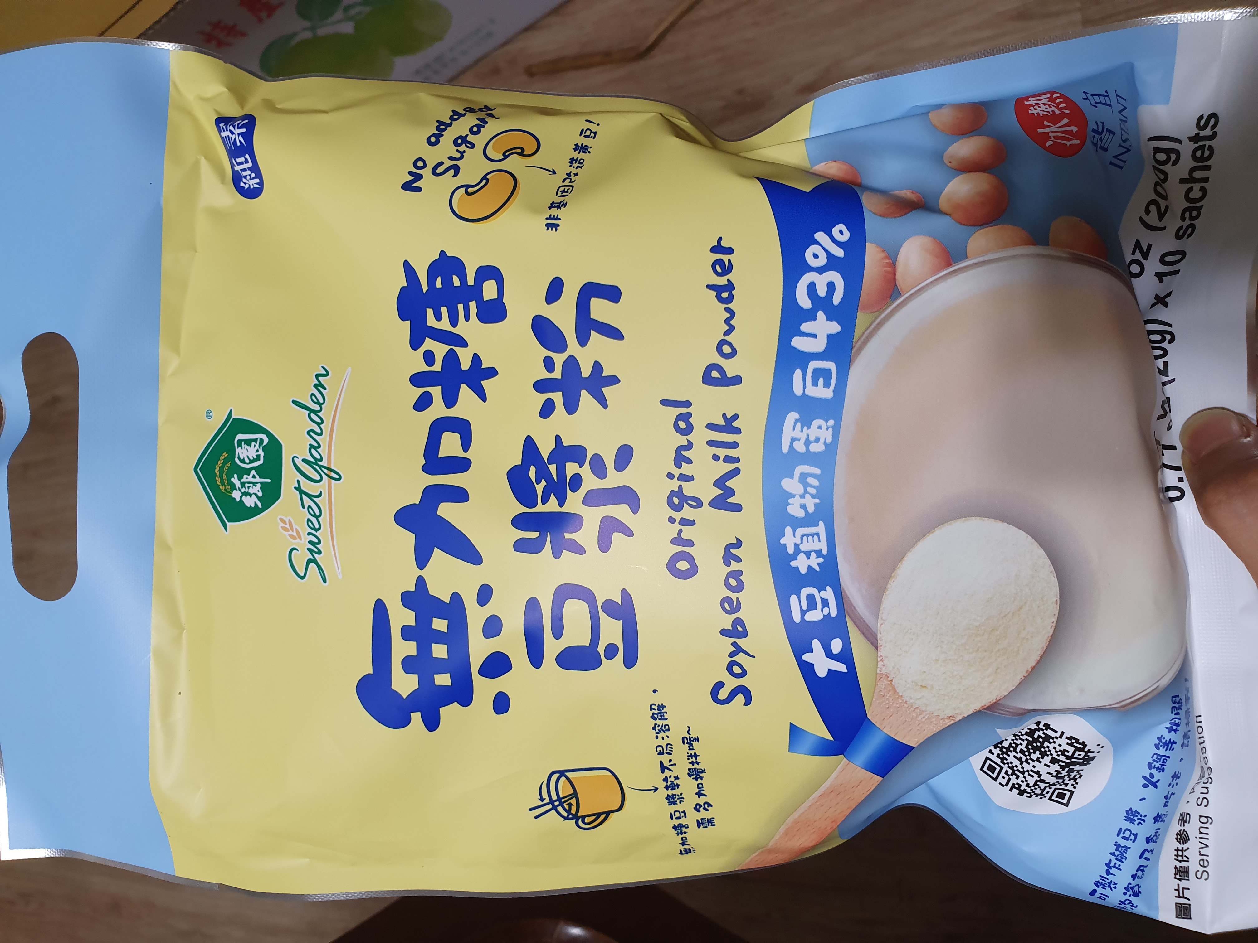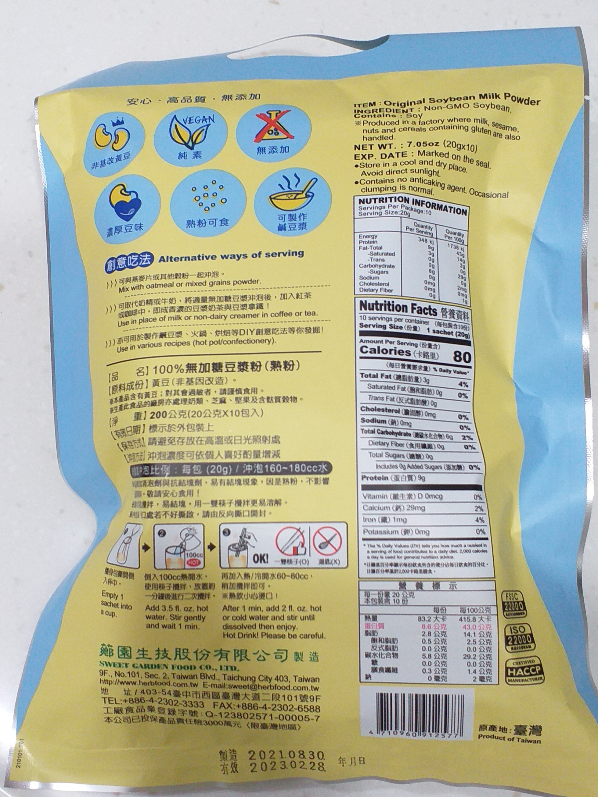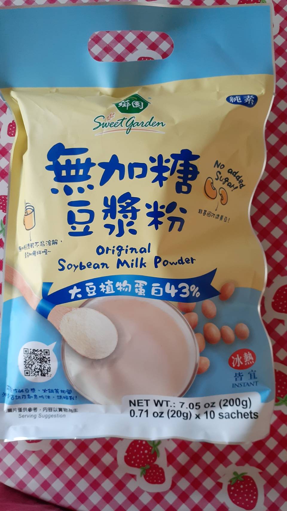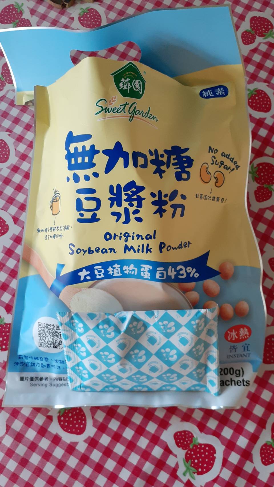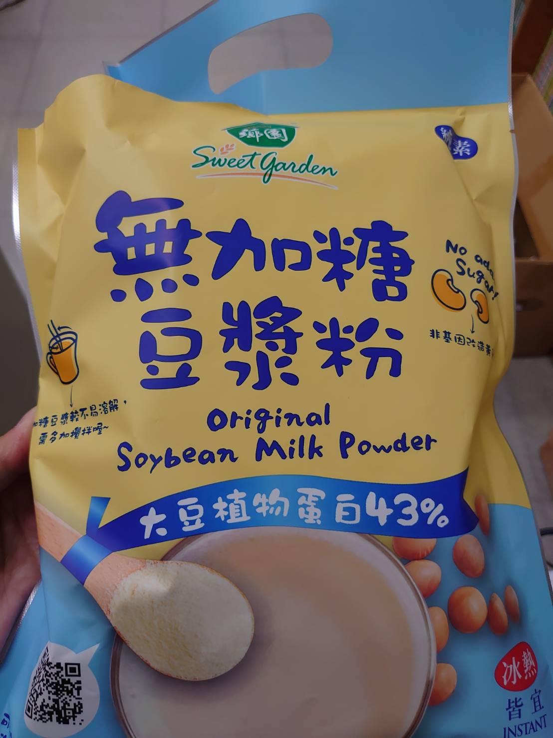 品質嚴選,食安把關——經SGS檢驗通過,含有豐富優質植物性蛋白質,營養標示中每100公克含有43公克的蛋白質,領先市面上一般豆漿含量。