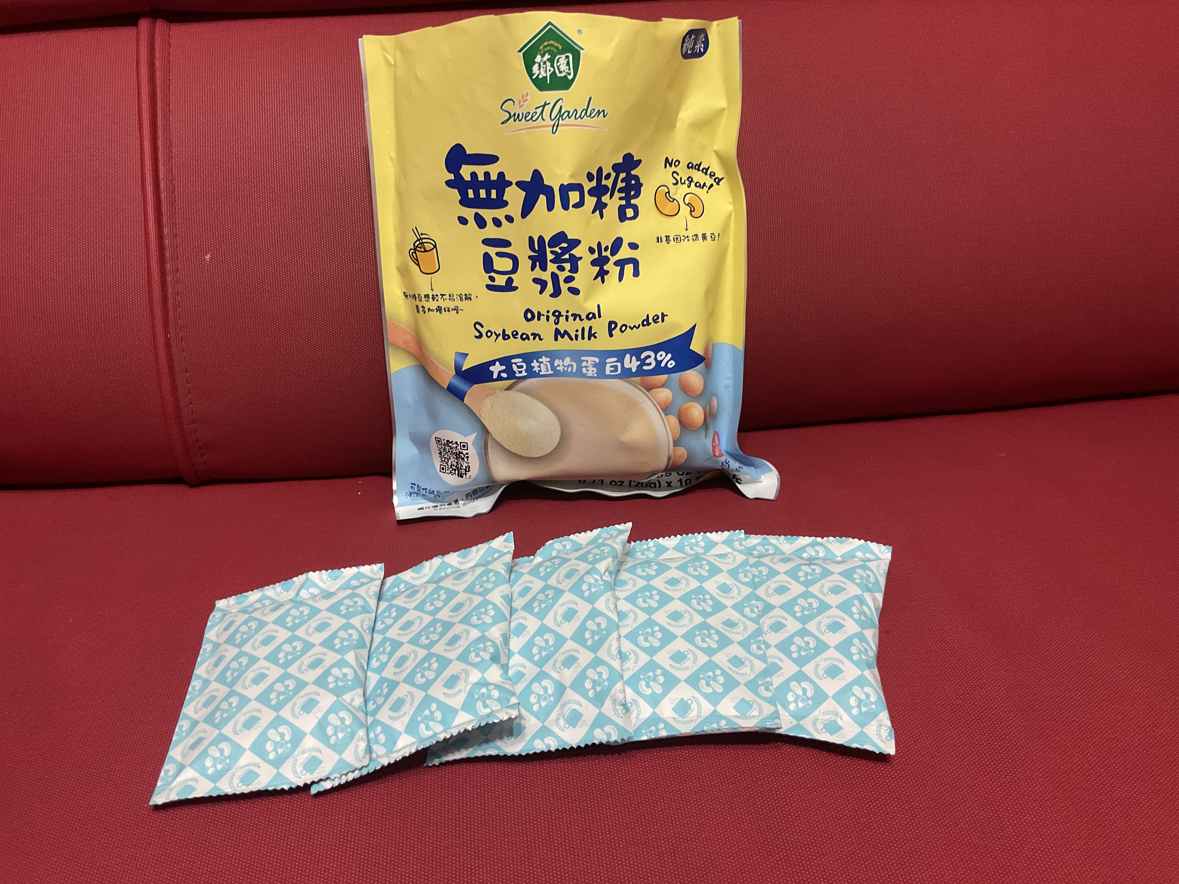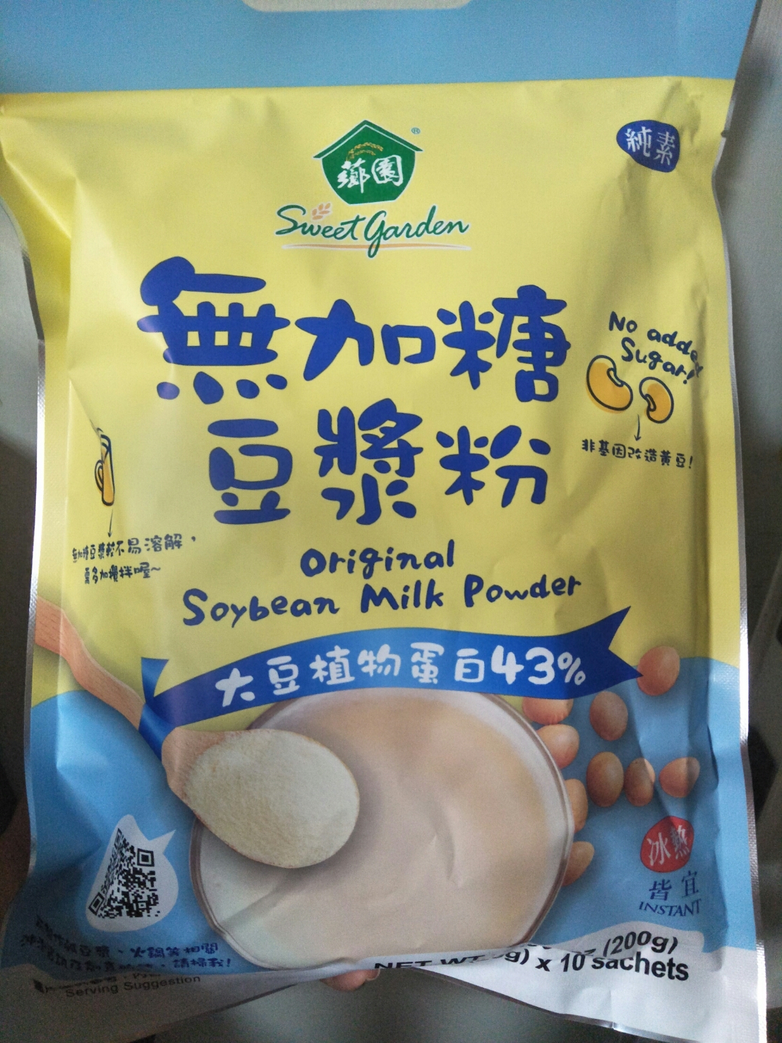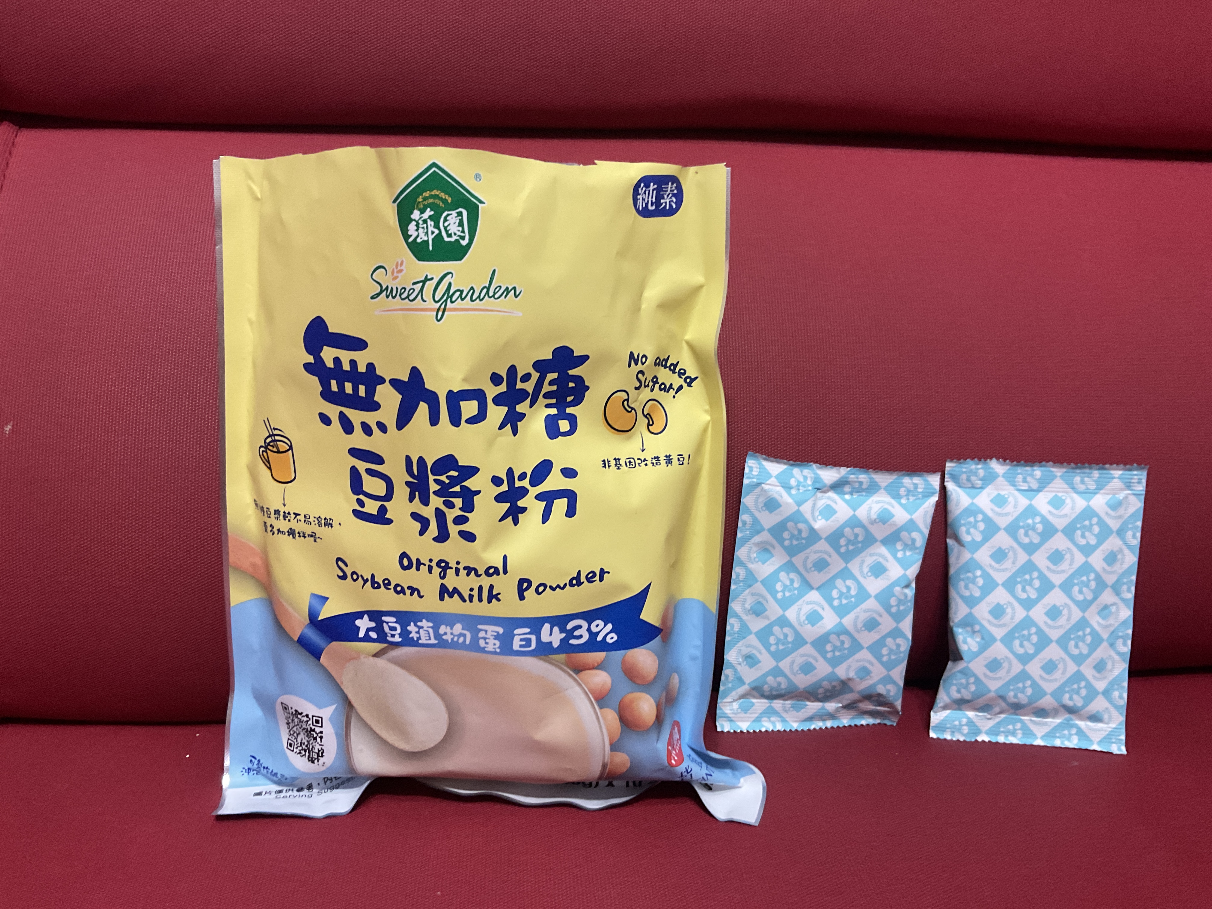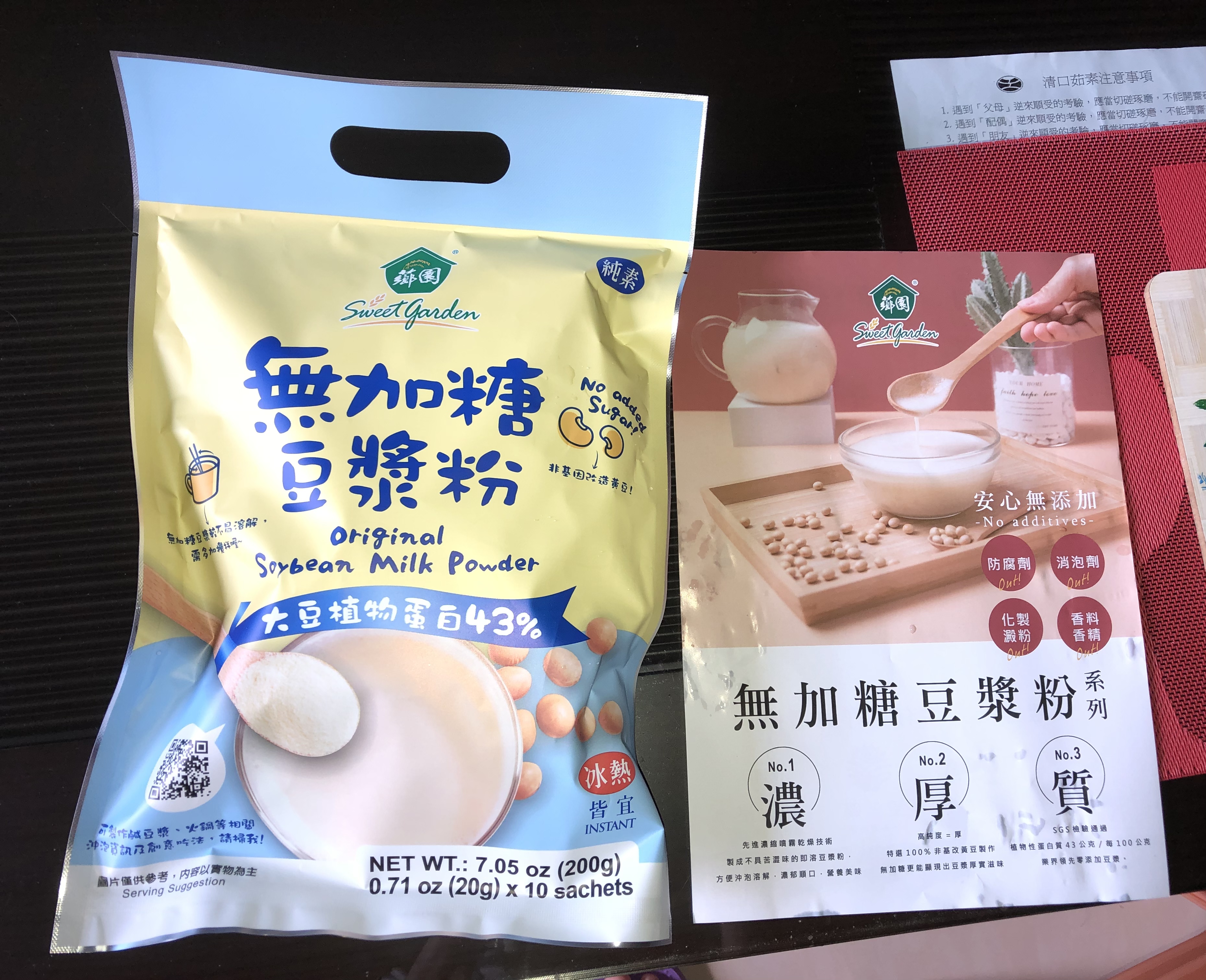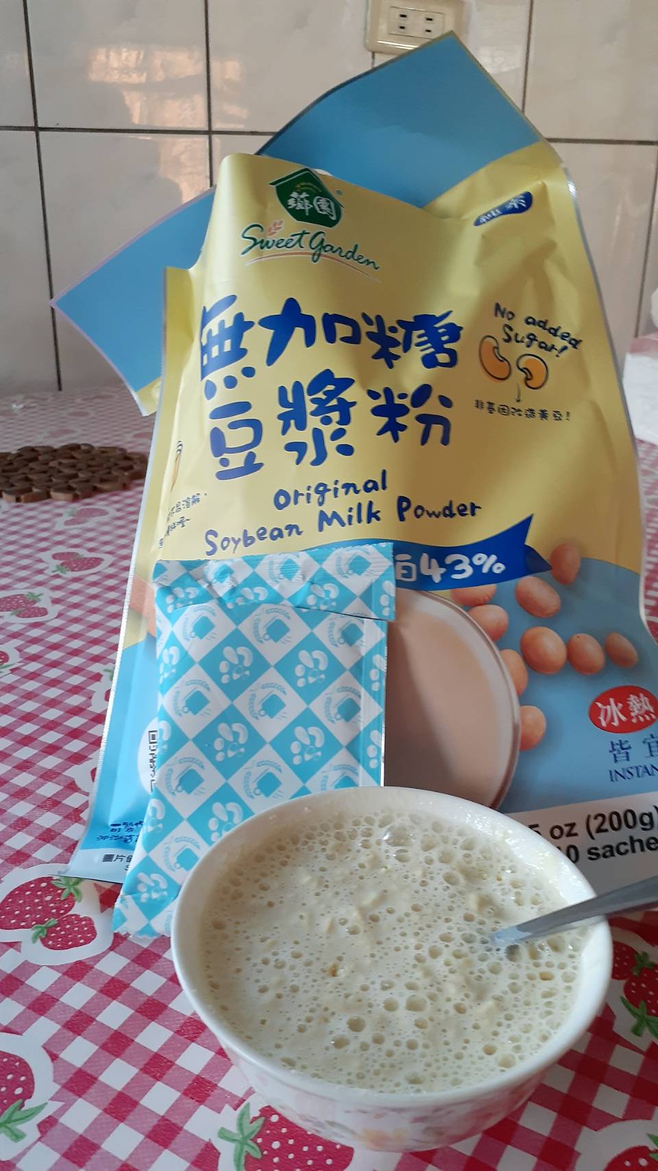 品質嚴選,食安把關——經SGS檢驗通過,含有豐富優質植物性蛋白質,營養標示中每100公克含有43公克的蛋白質,領先市面上一般豆漿含量。