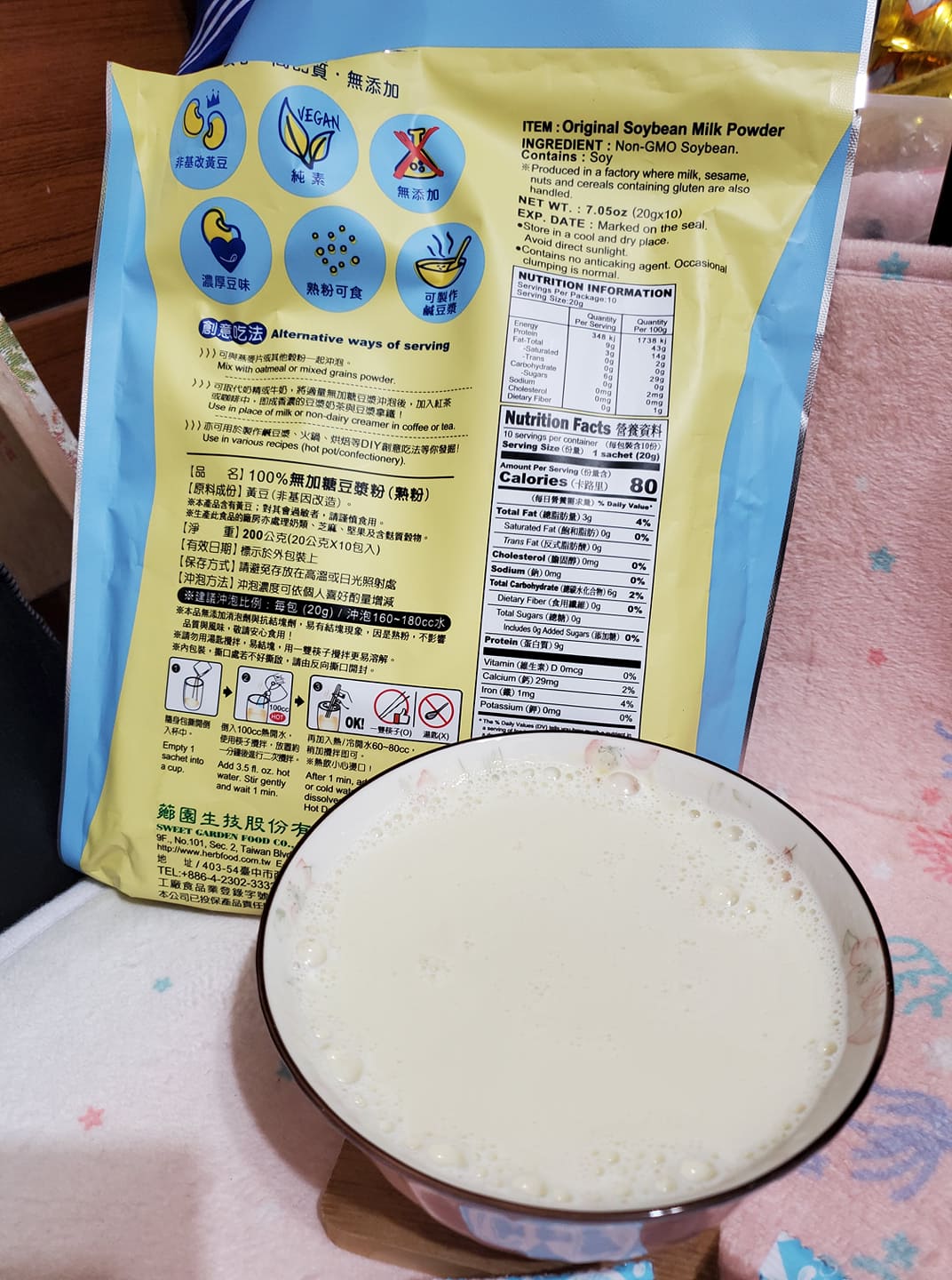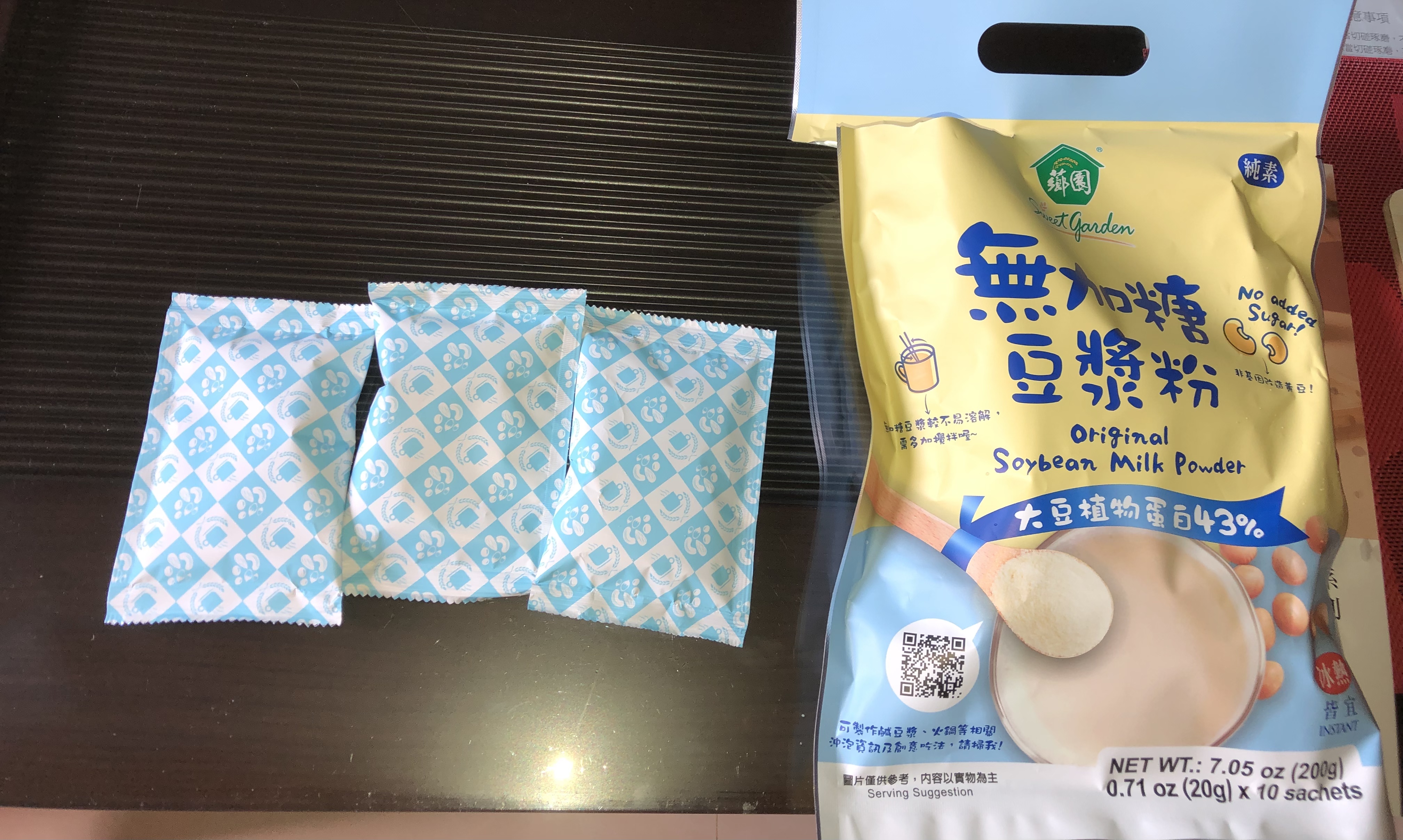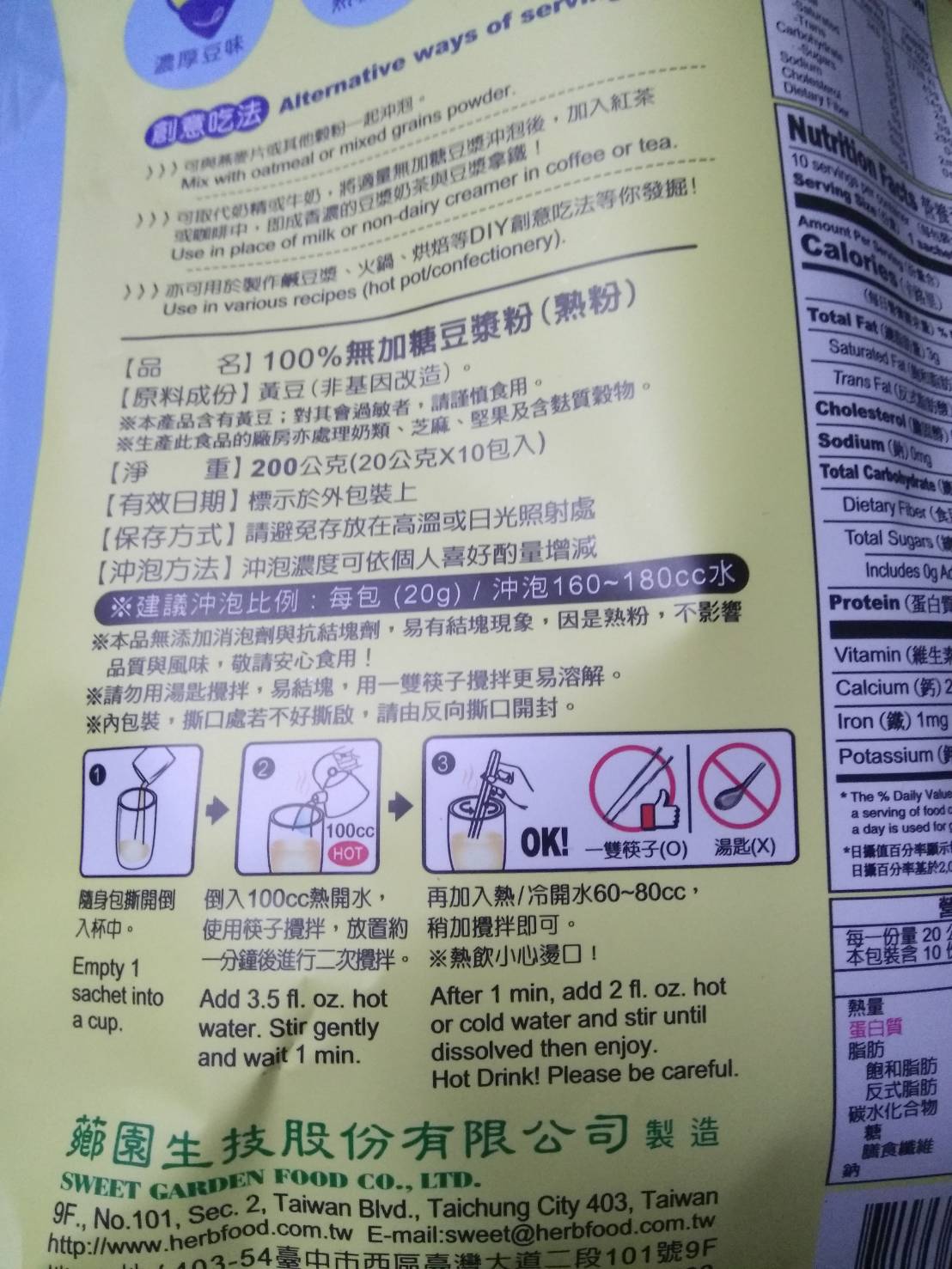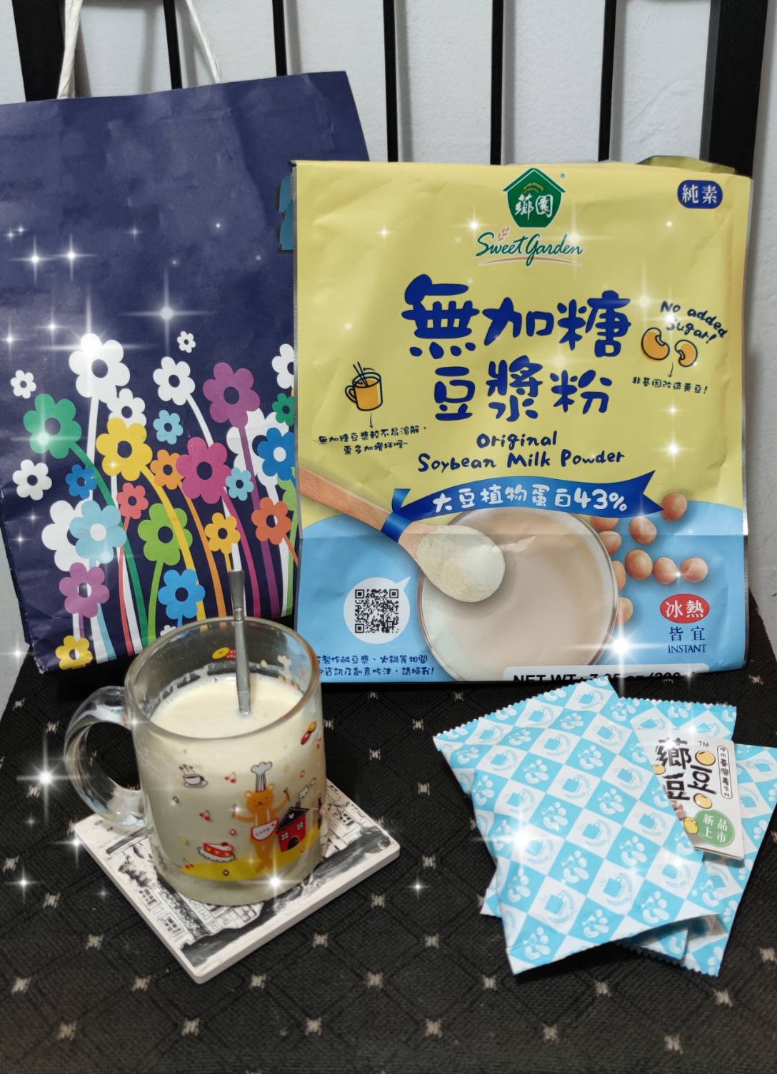 品質嚴選,食安把關——經SGS檢驗通過,含有豐富優質植物性蛋白質,營養標示中每100公克含有43公克的蛋白質,領先市面上一般豆漿含量。