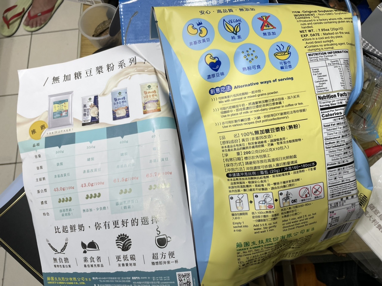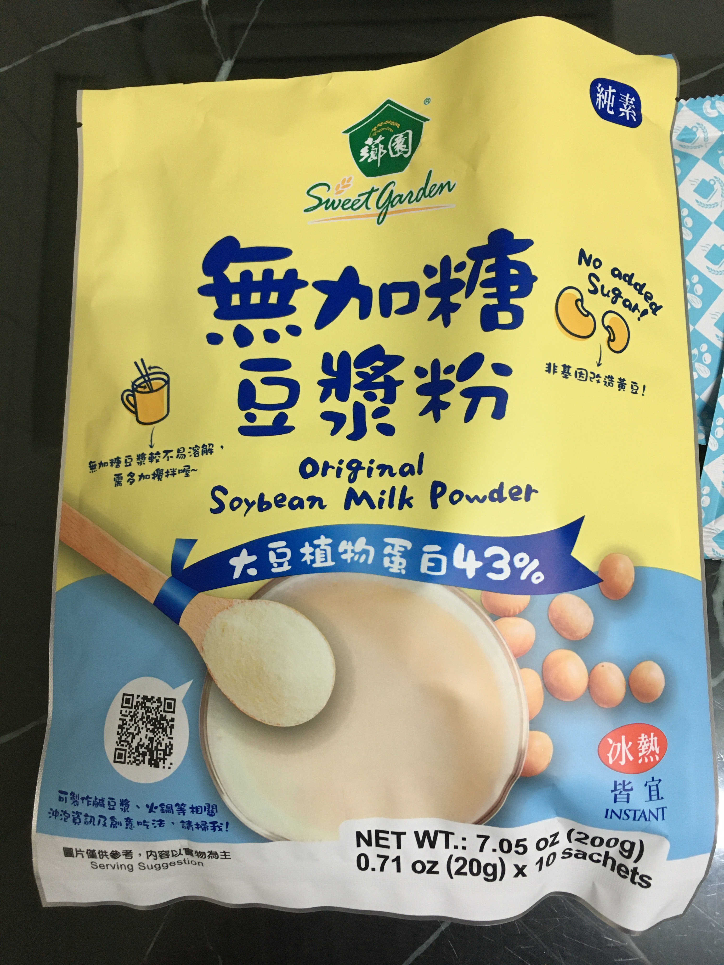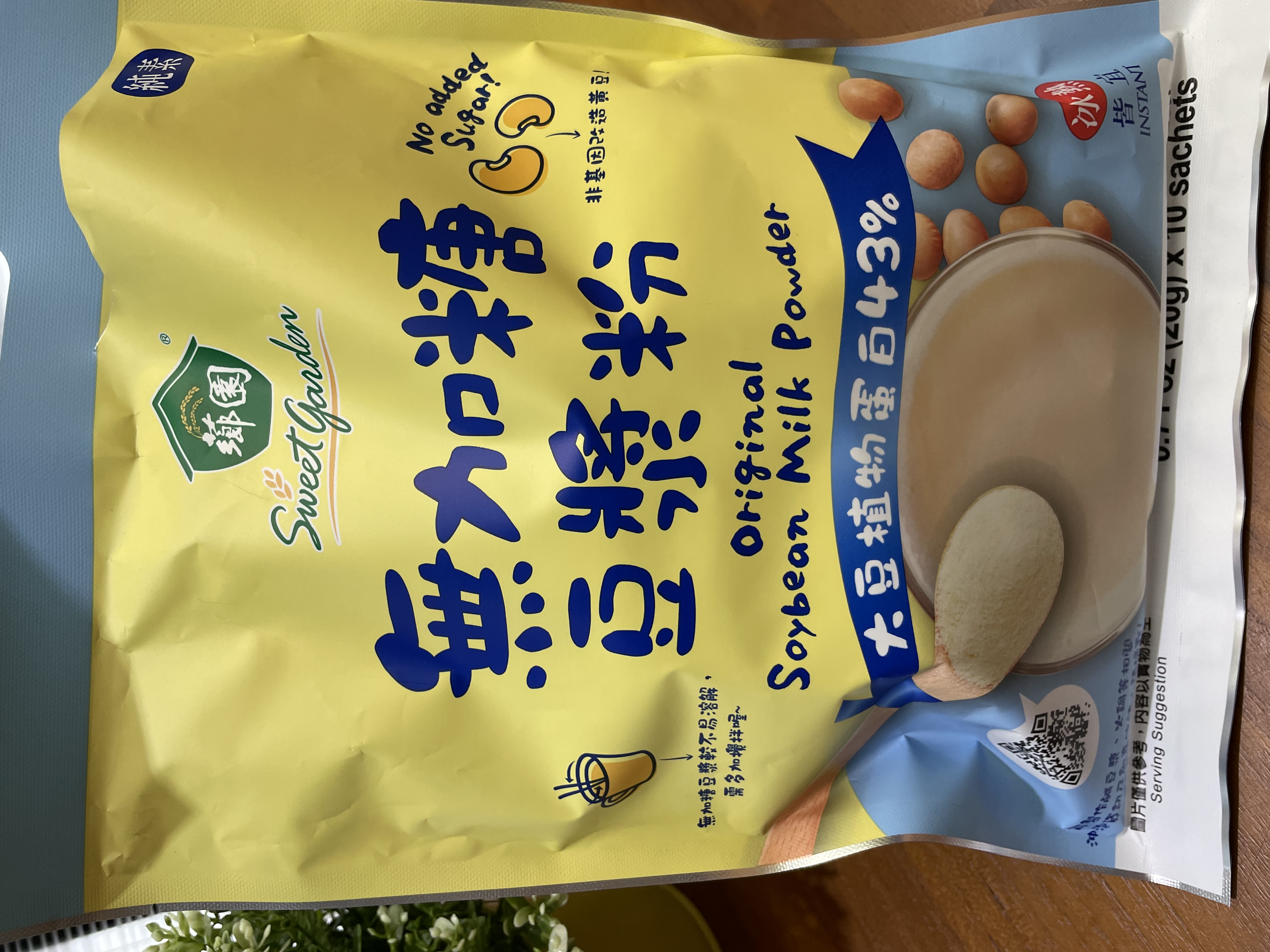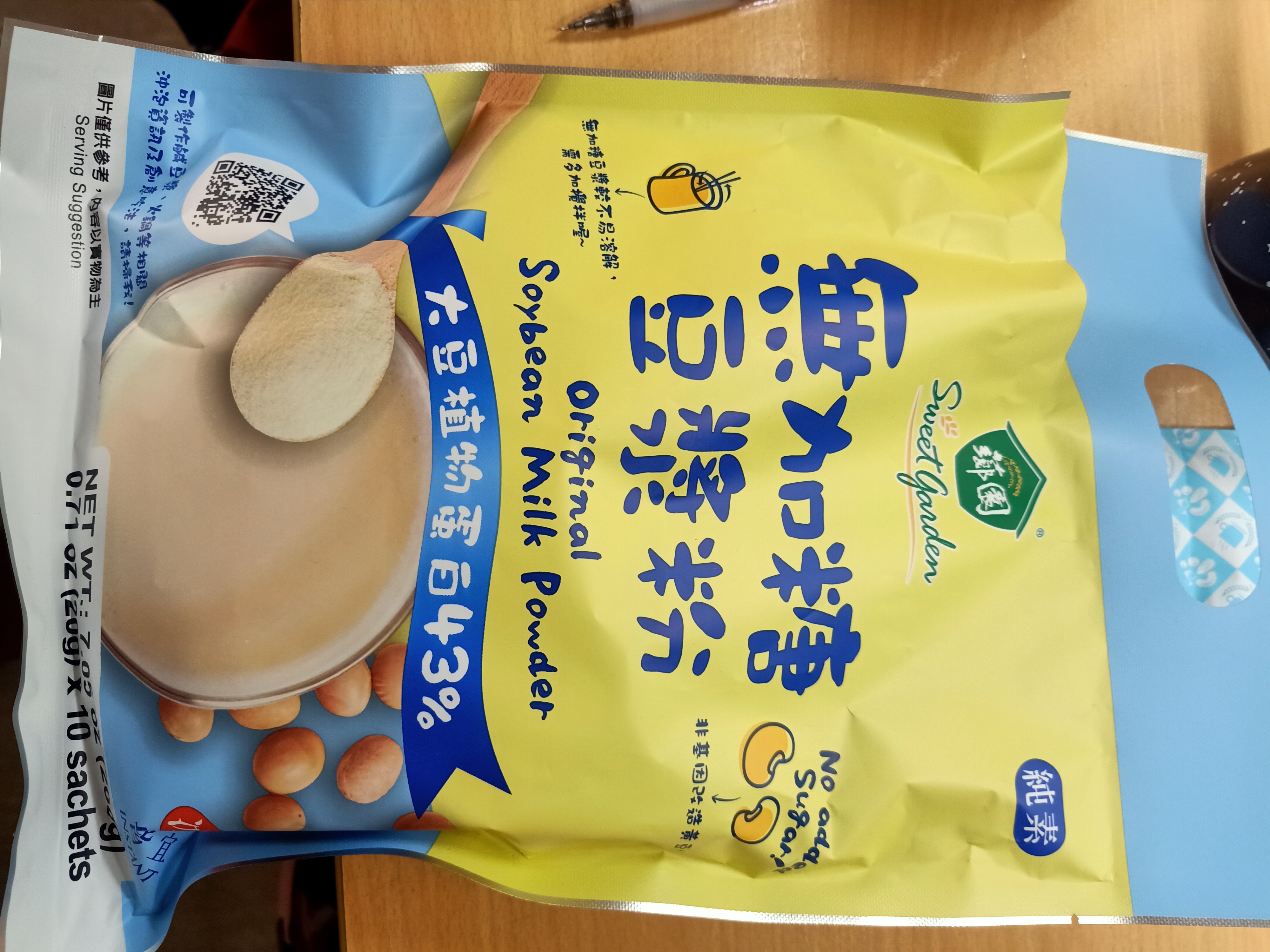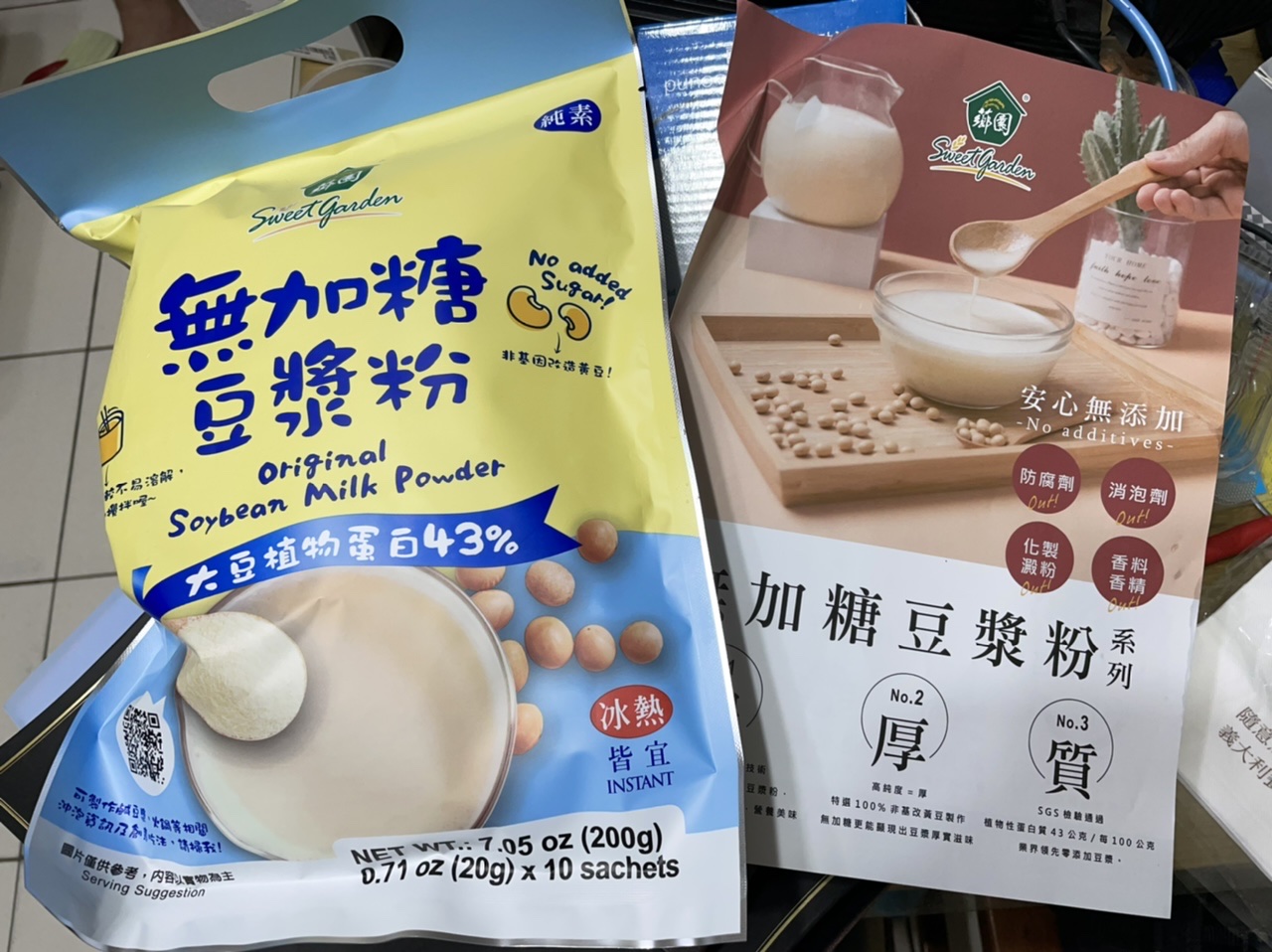 品質嚴選,食安把關——經SGS檢驗通過,含有豐富優質植物性蛋白質,營養標示中每100公克含有43公克的蛋白質,領先市面上一般豆漿含量。