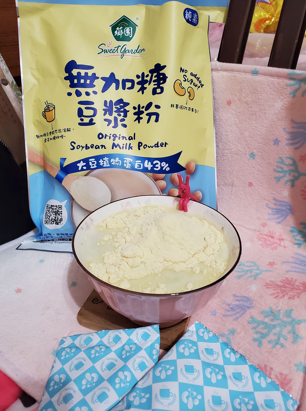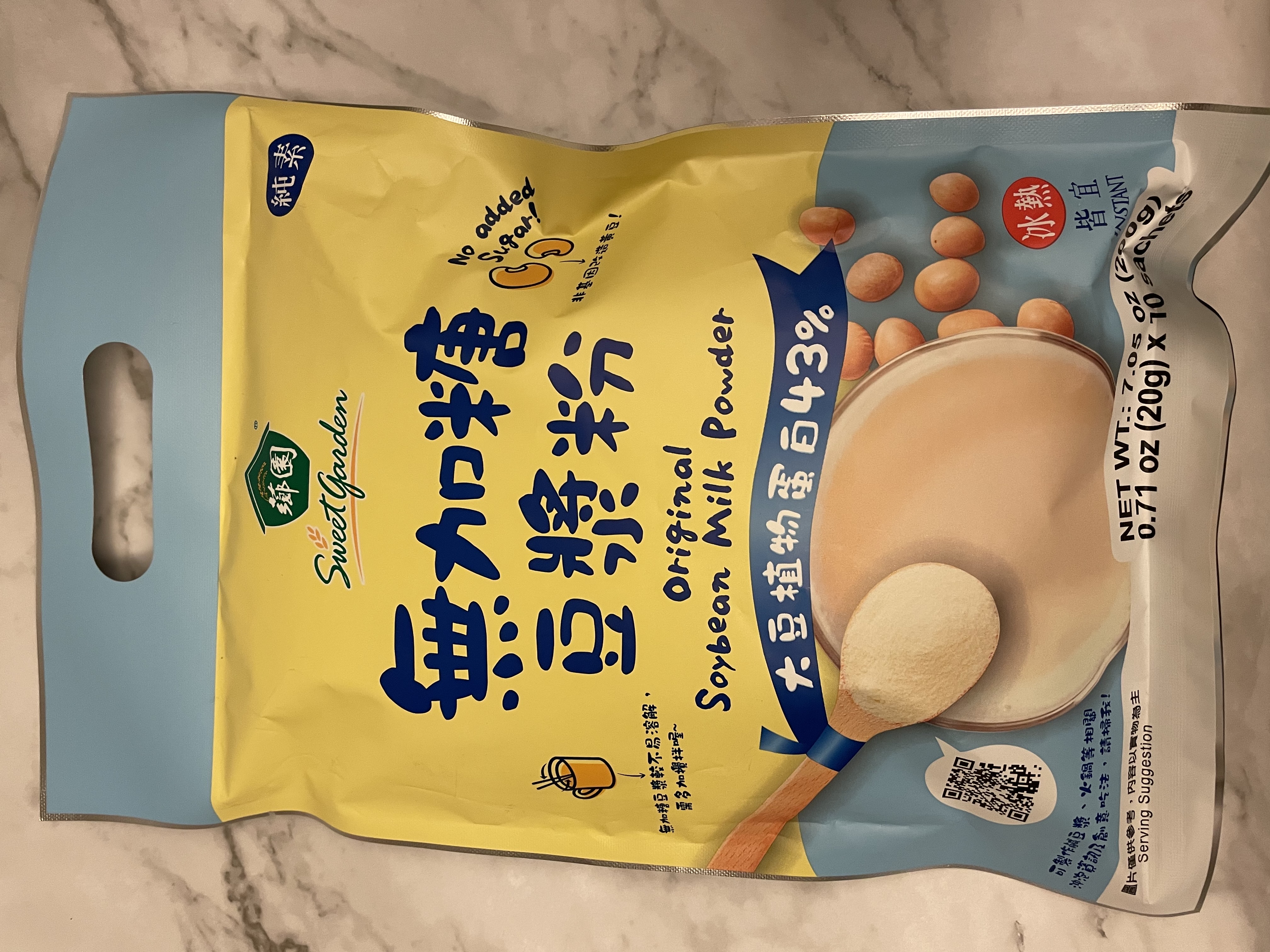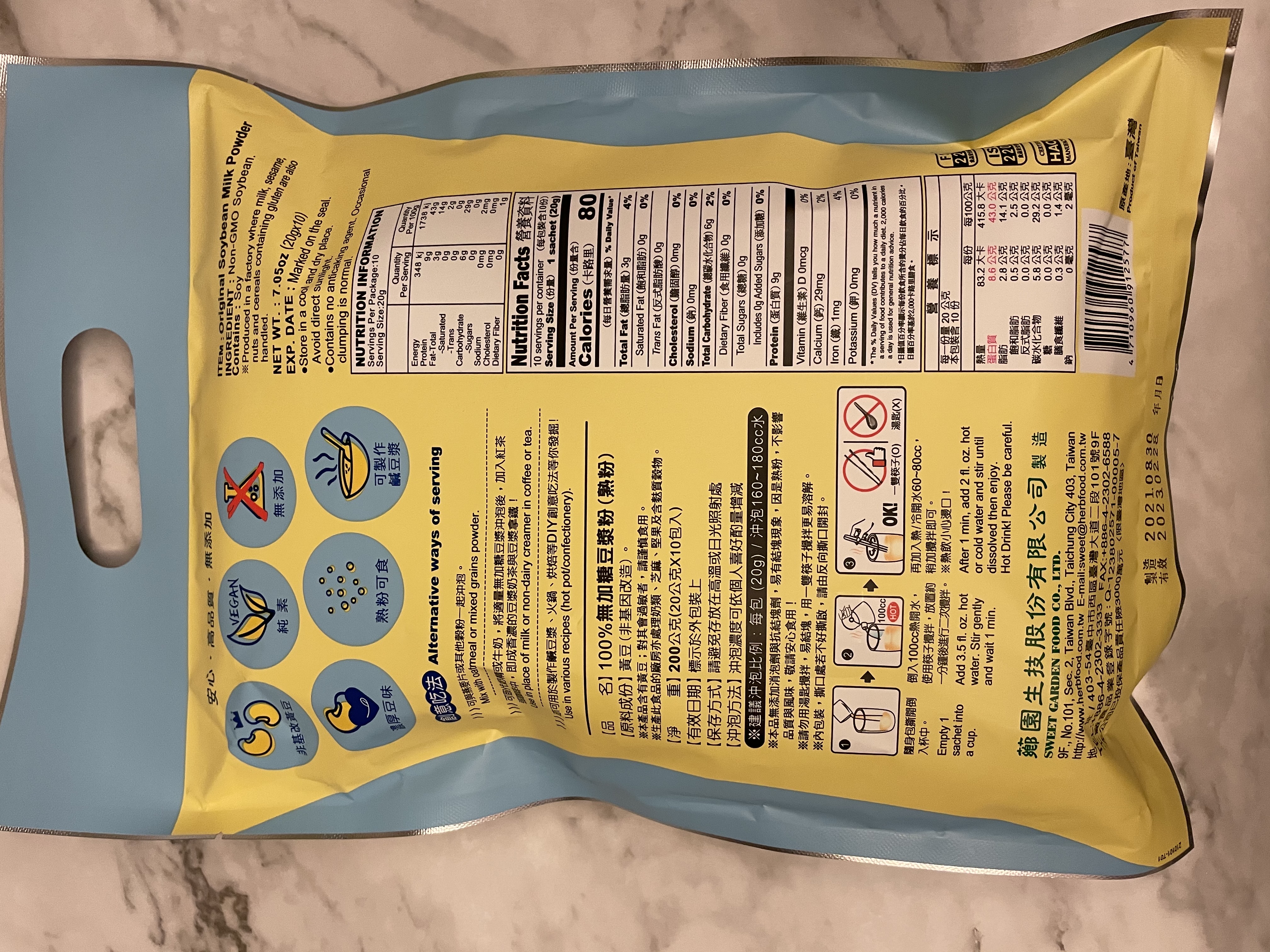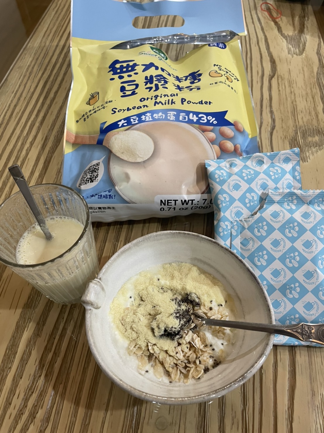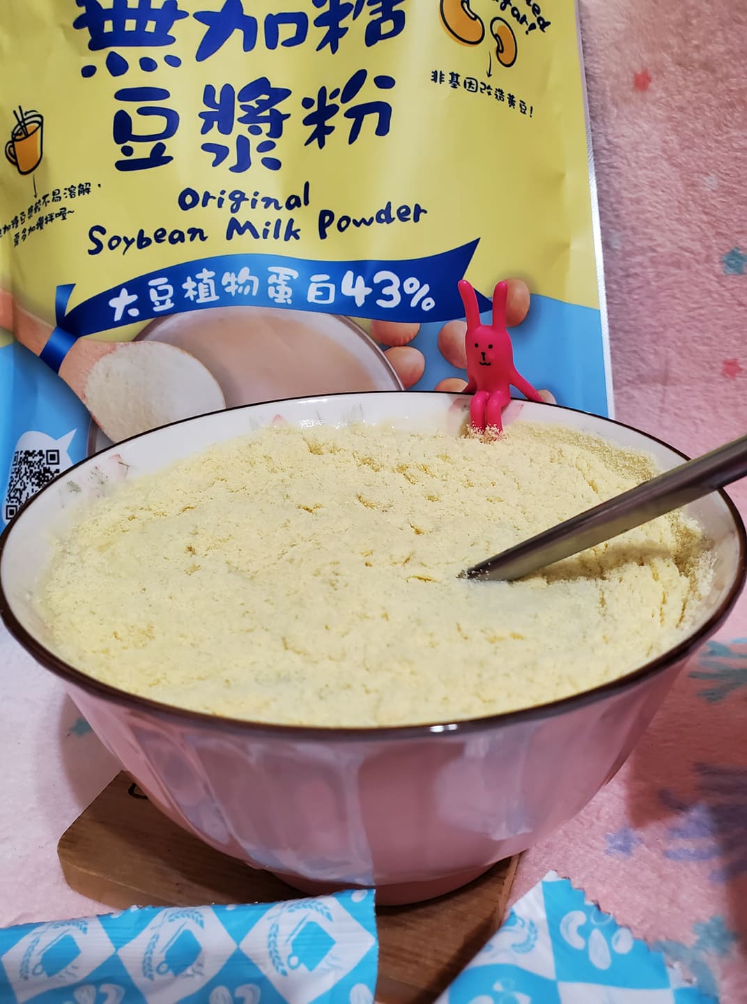品質嚴選,食安把關——經SGS檢驗通過,含有豐富優質植物性蛋白質,營養標示中每100公克含有43公克的蛋白質,領先市面上一般豆漿含量。