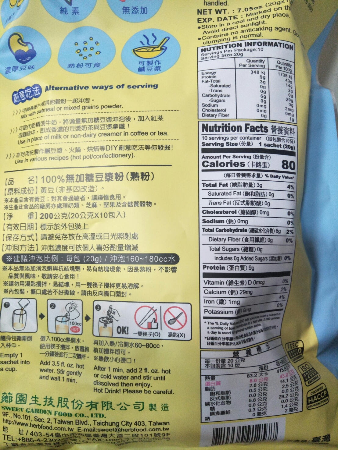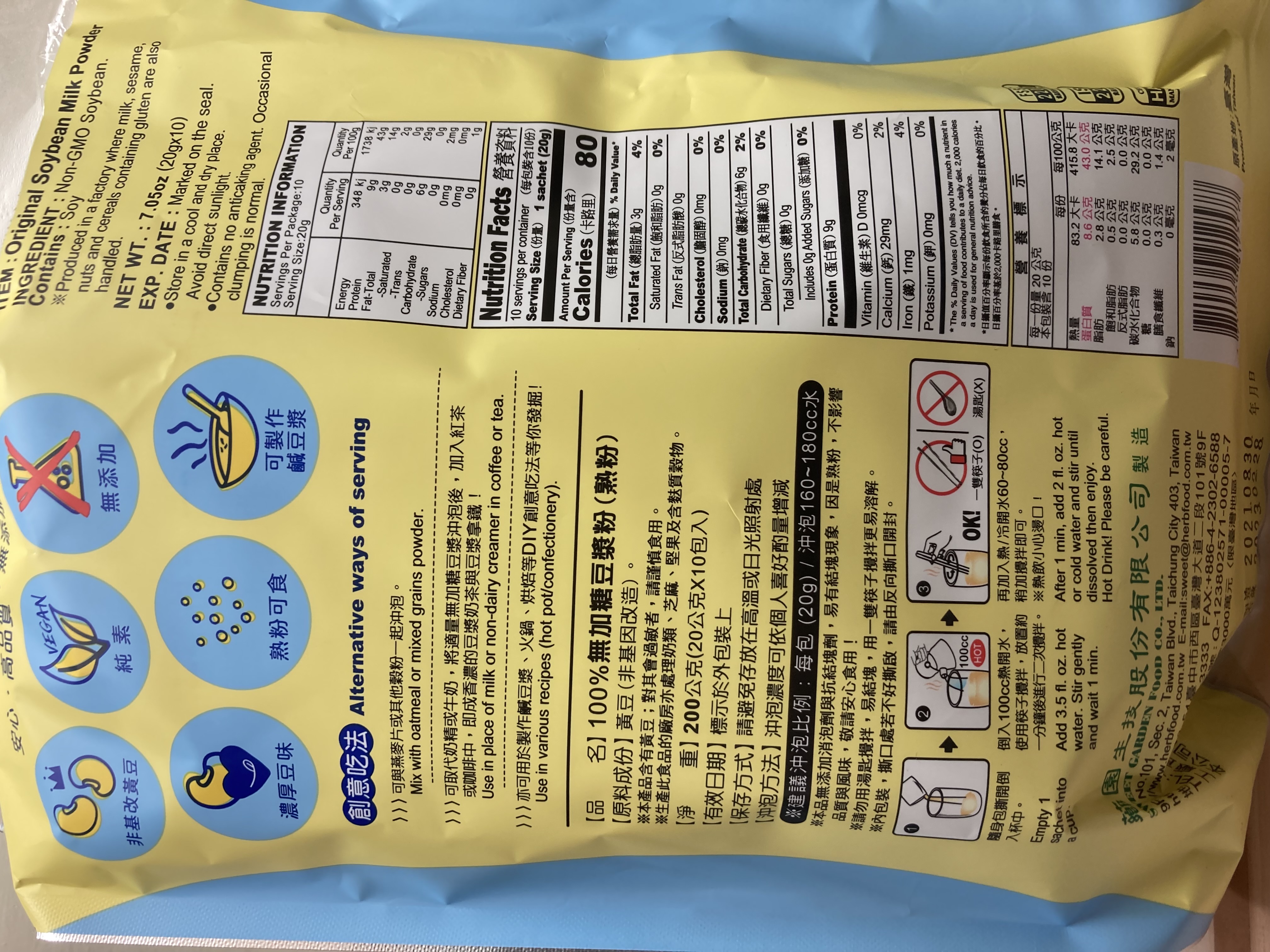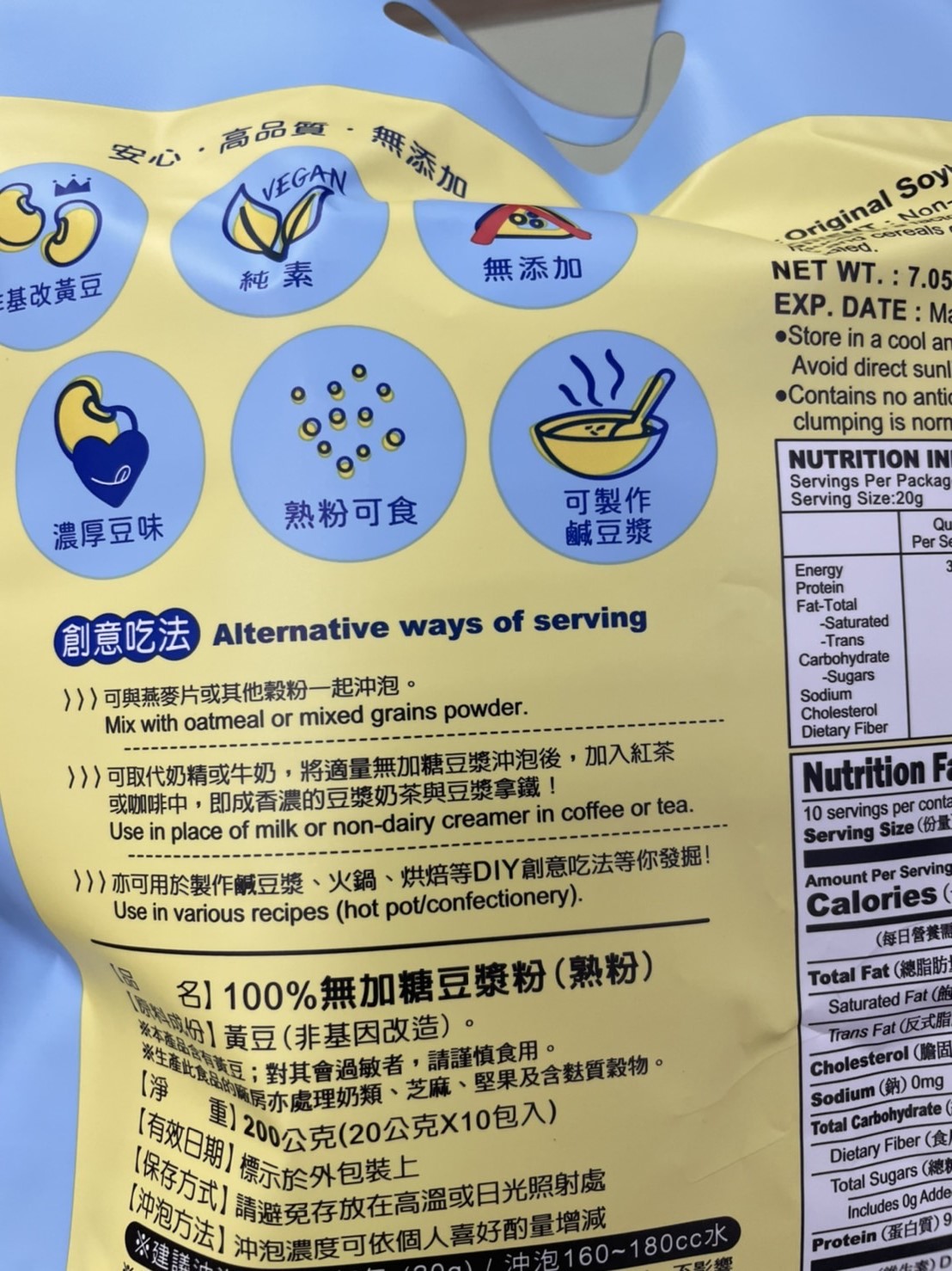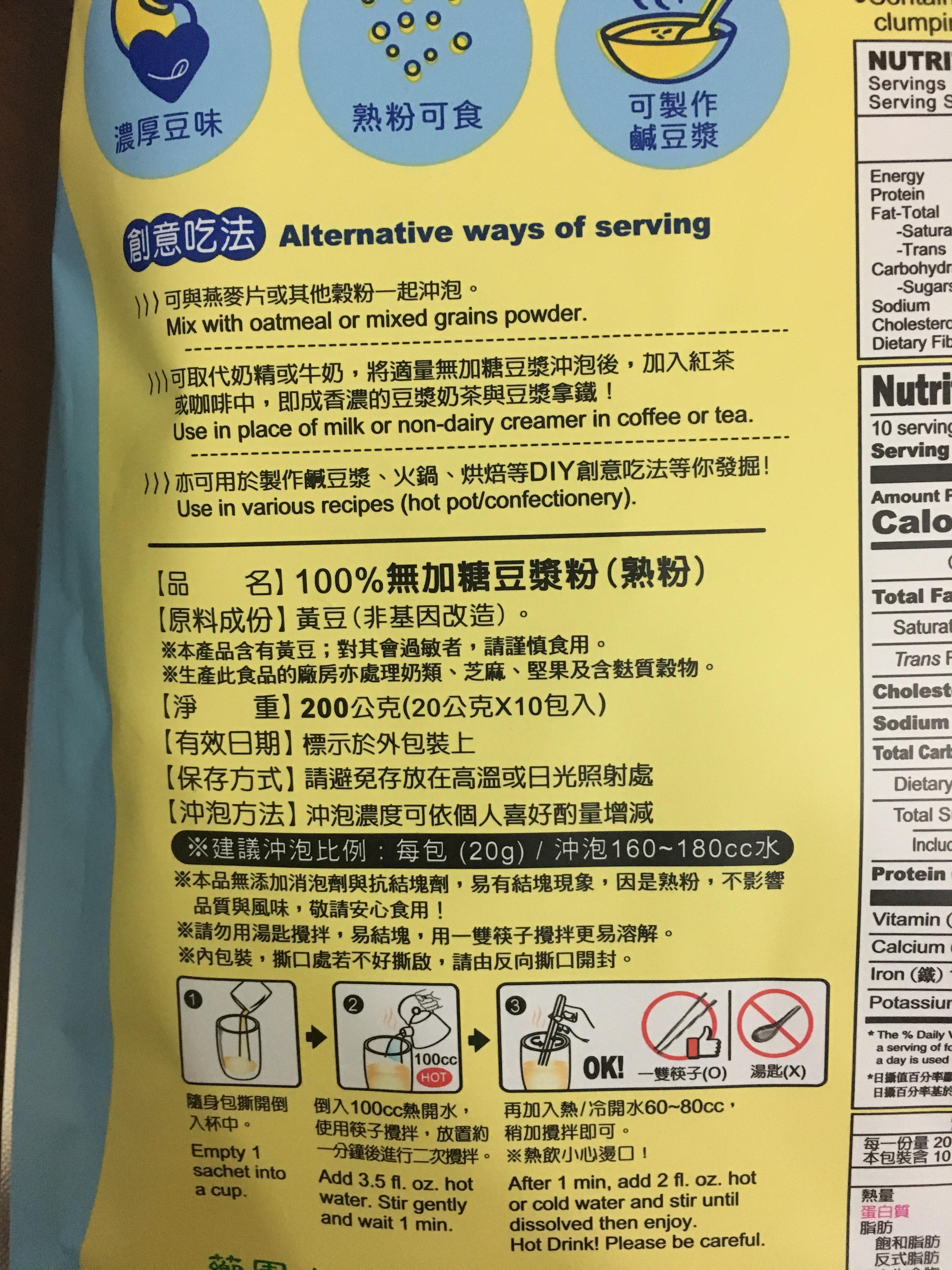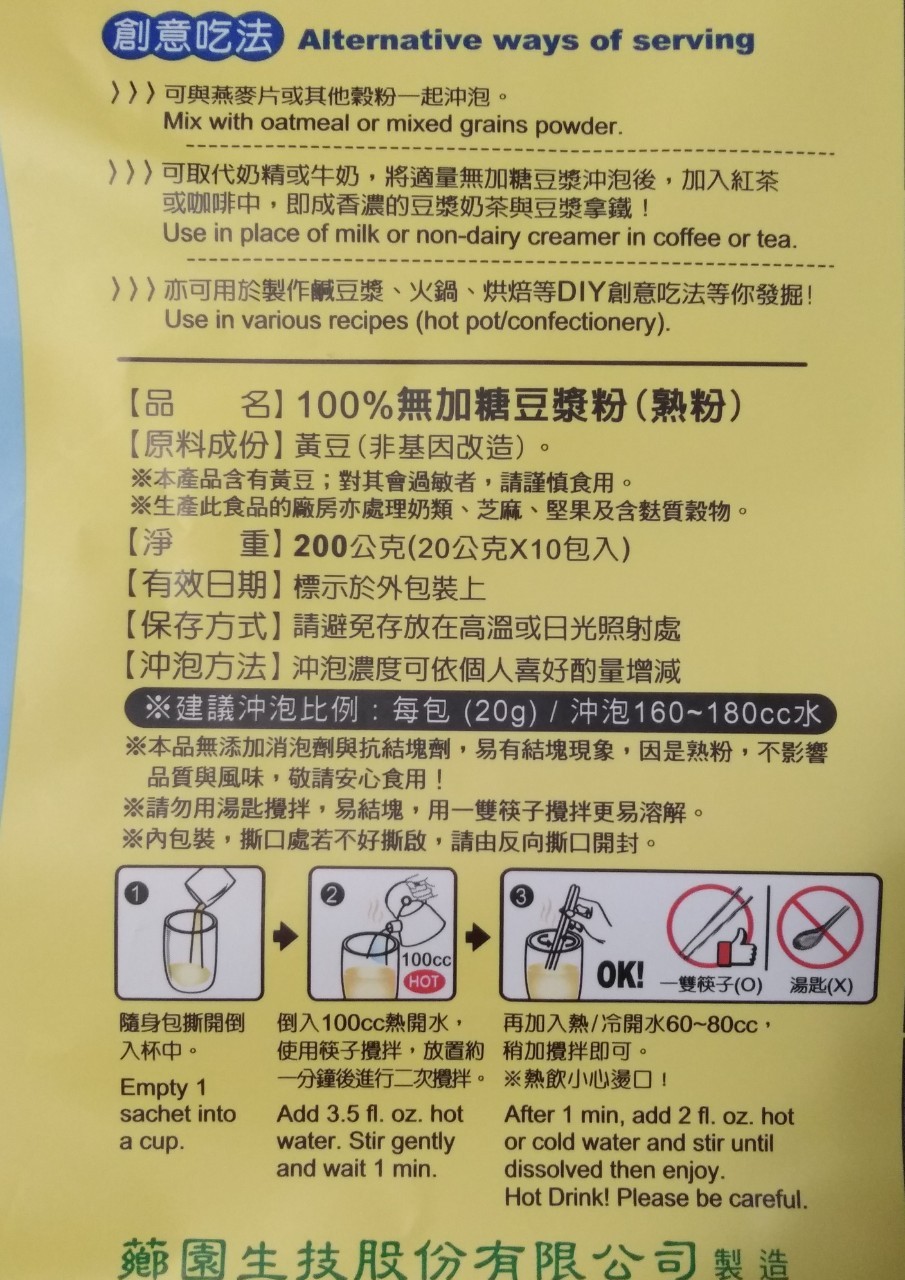 成份:黃豆(非基因改造)。