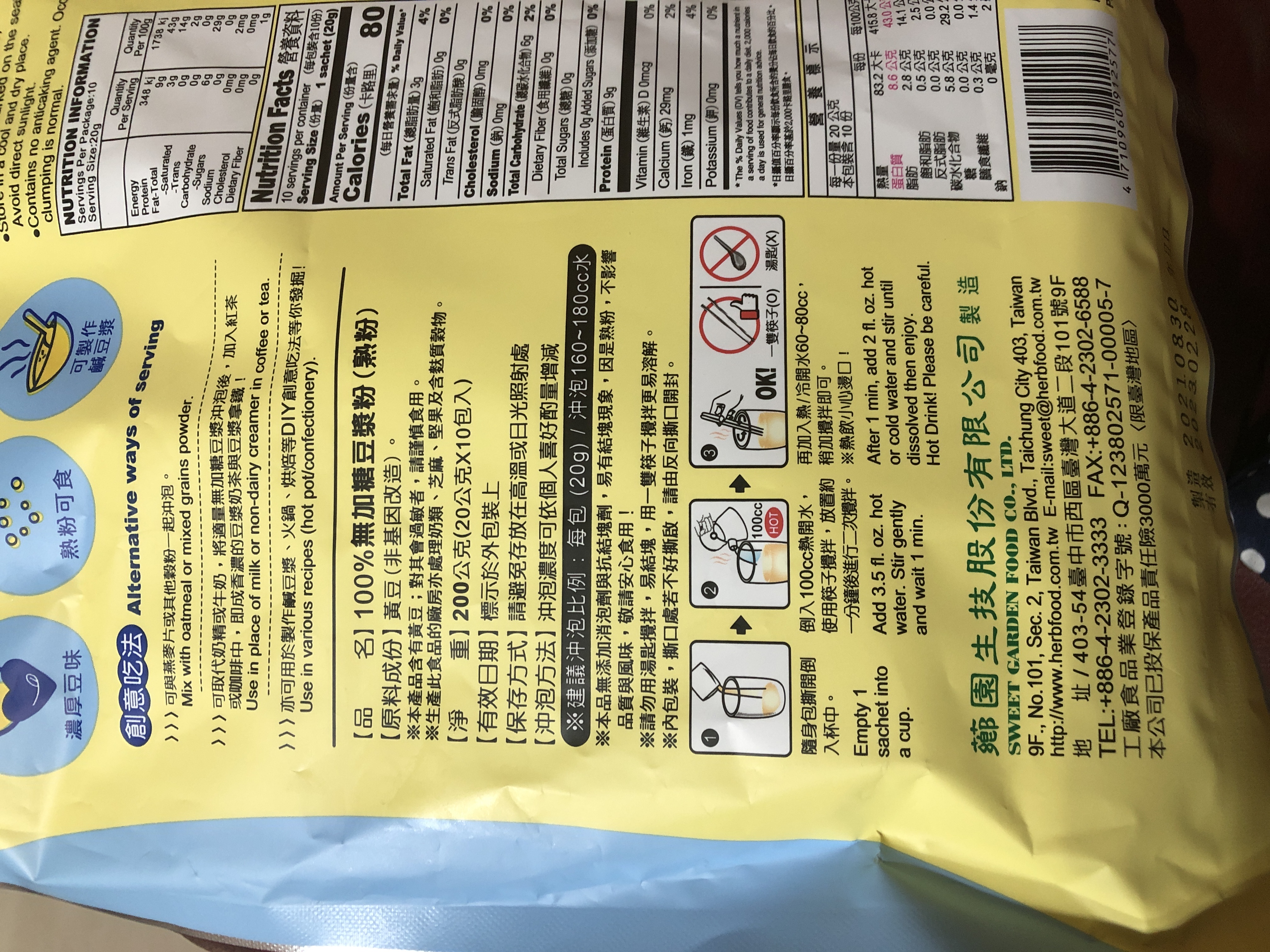 ※本產品含有黃豆,對其過敏者,請謹慎食用。