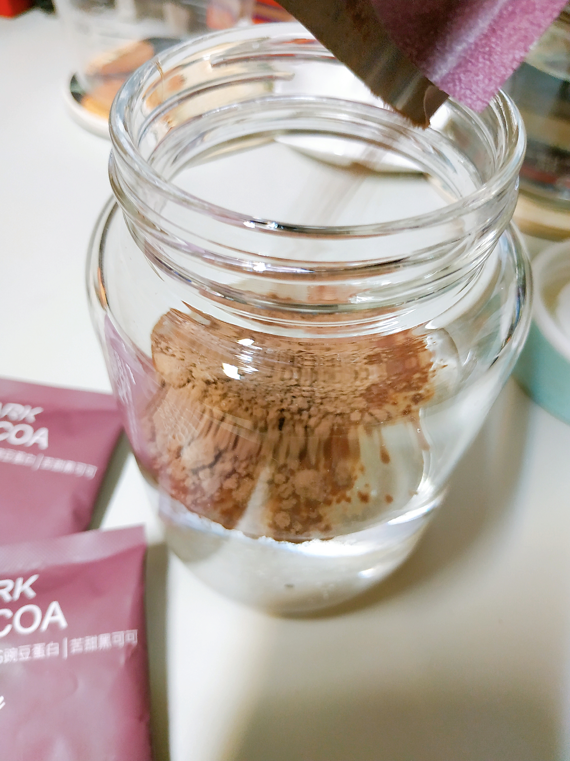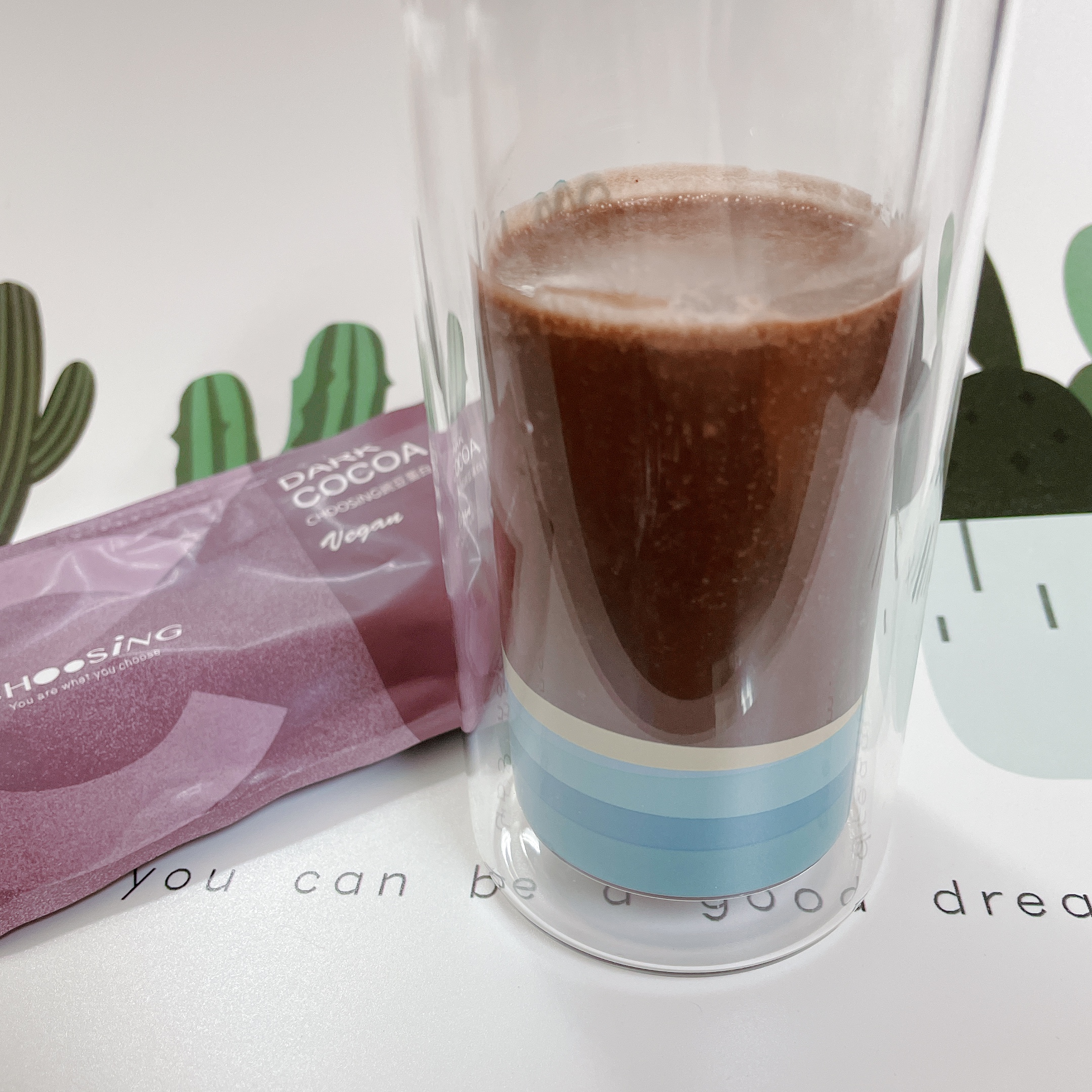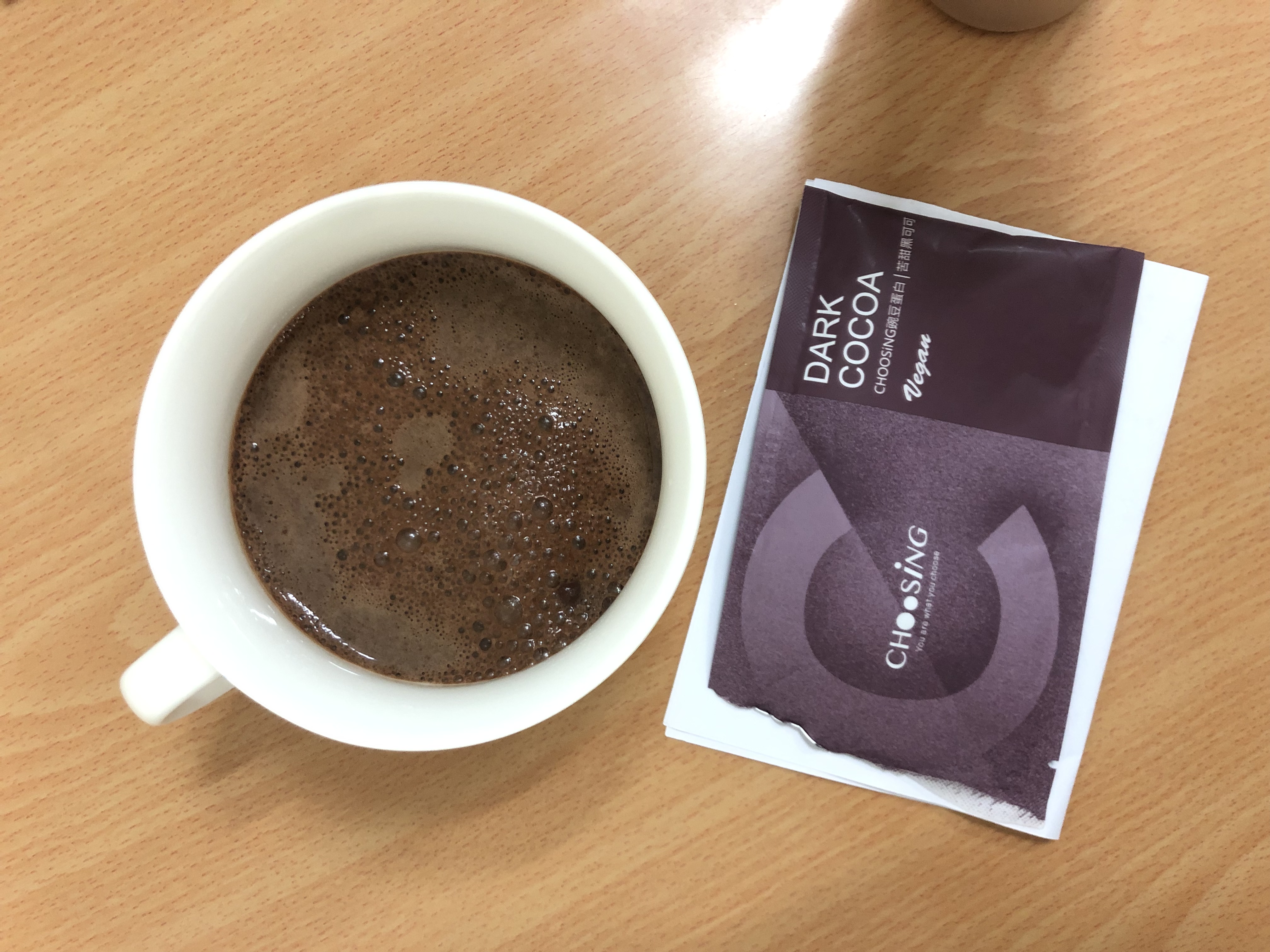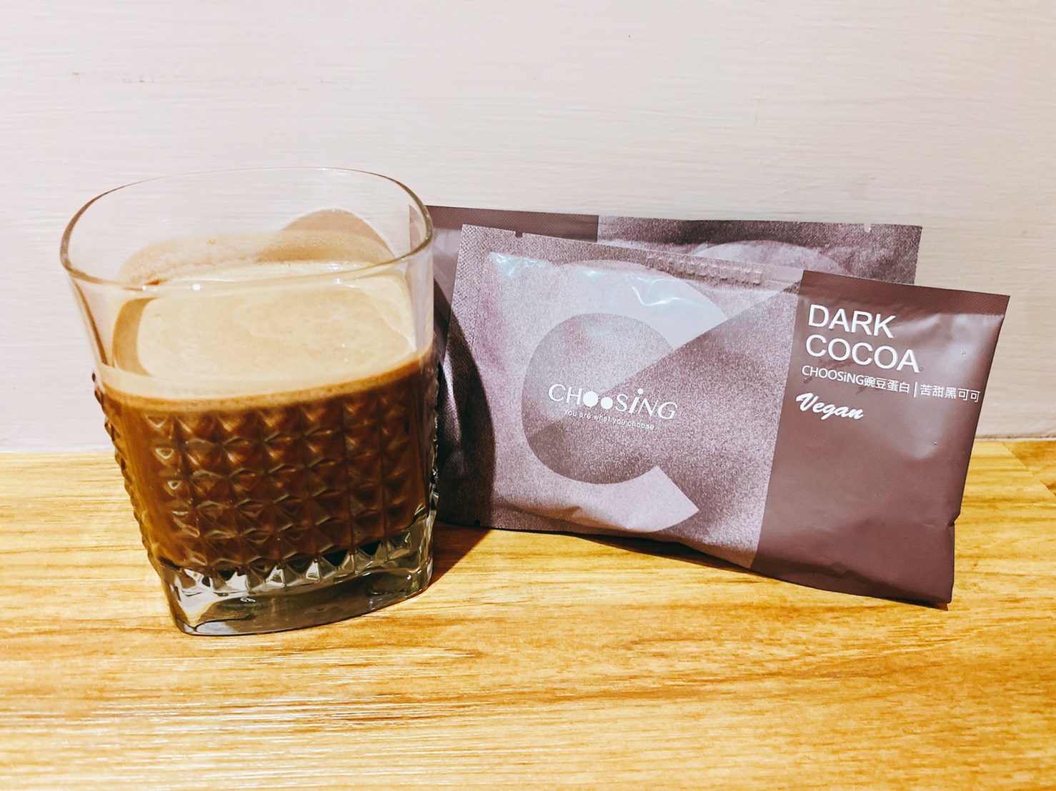 植物蛋白沖泡後會呈現未濾渣豆漿般略沙的天然口感,搭配100%可可粉調味,喝起來微苦香甜,濃郁不膩口。