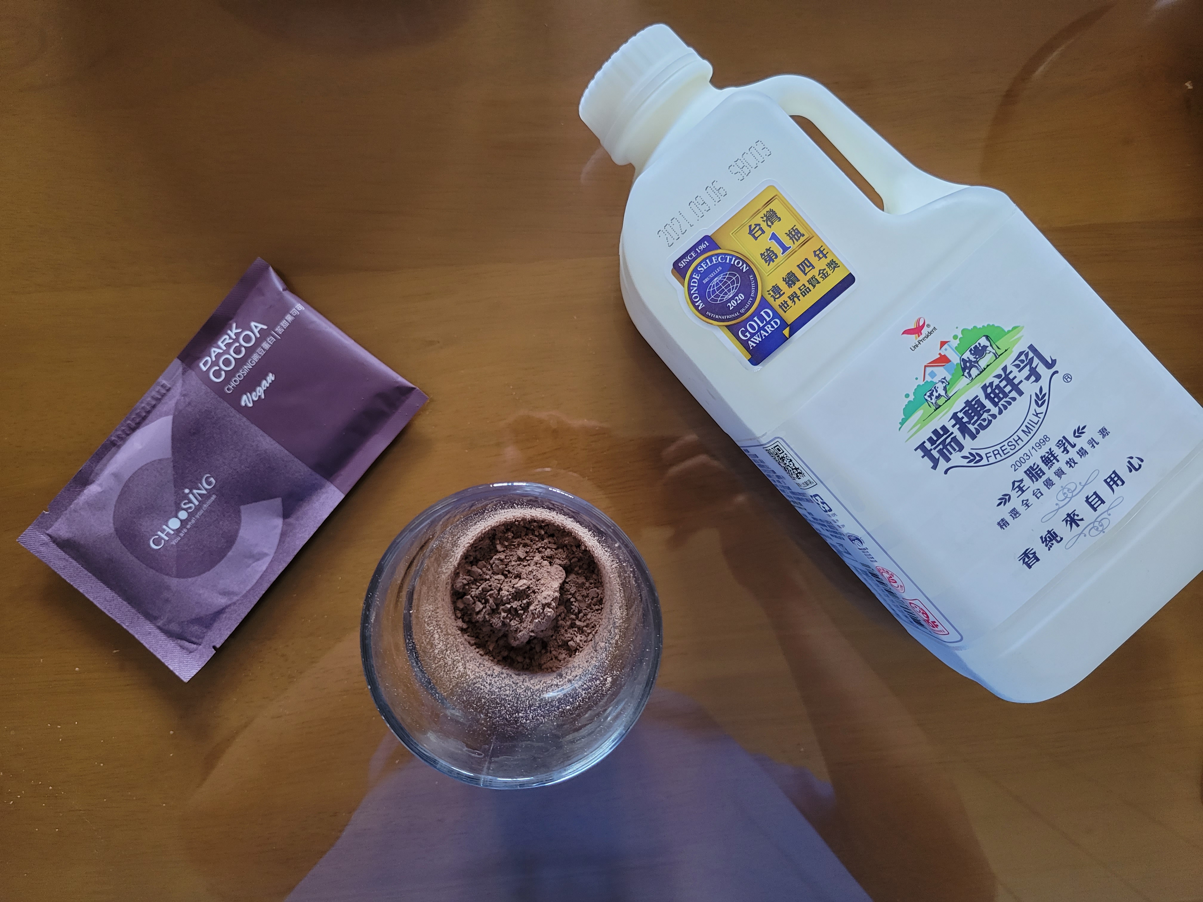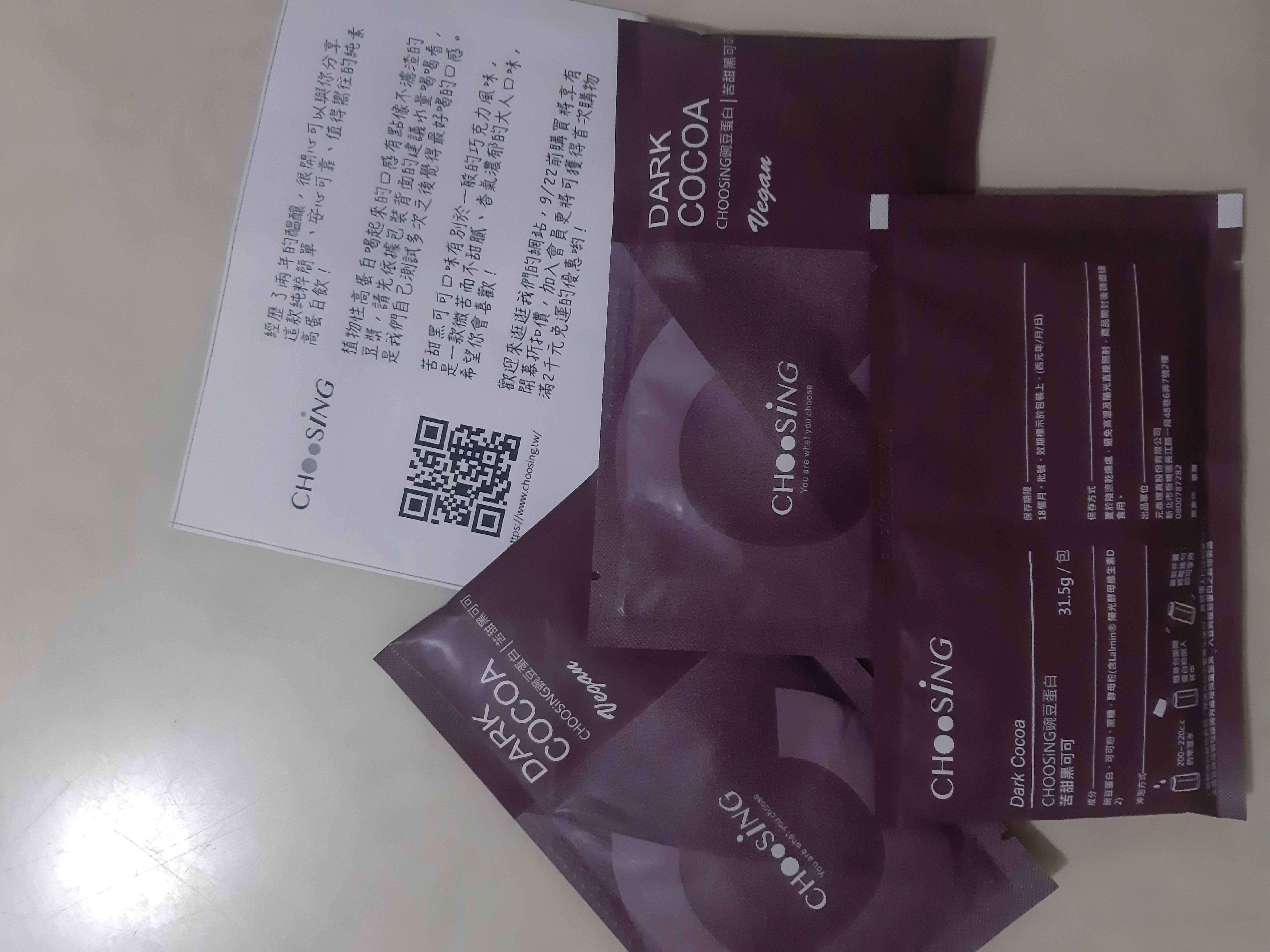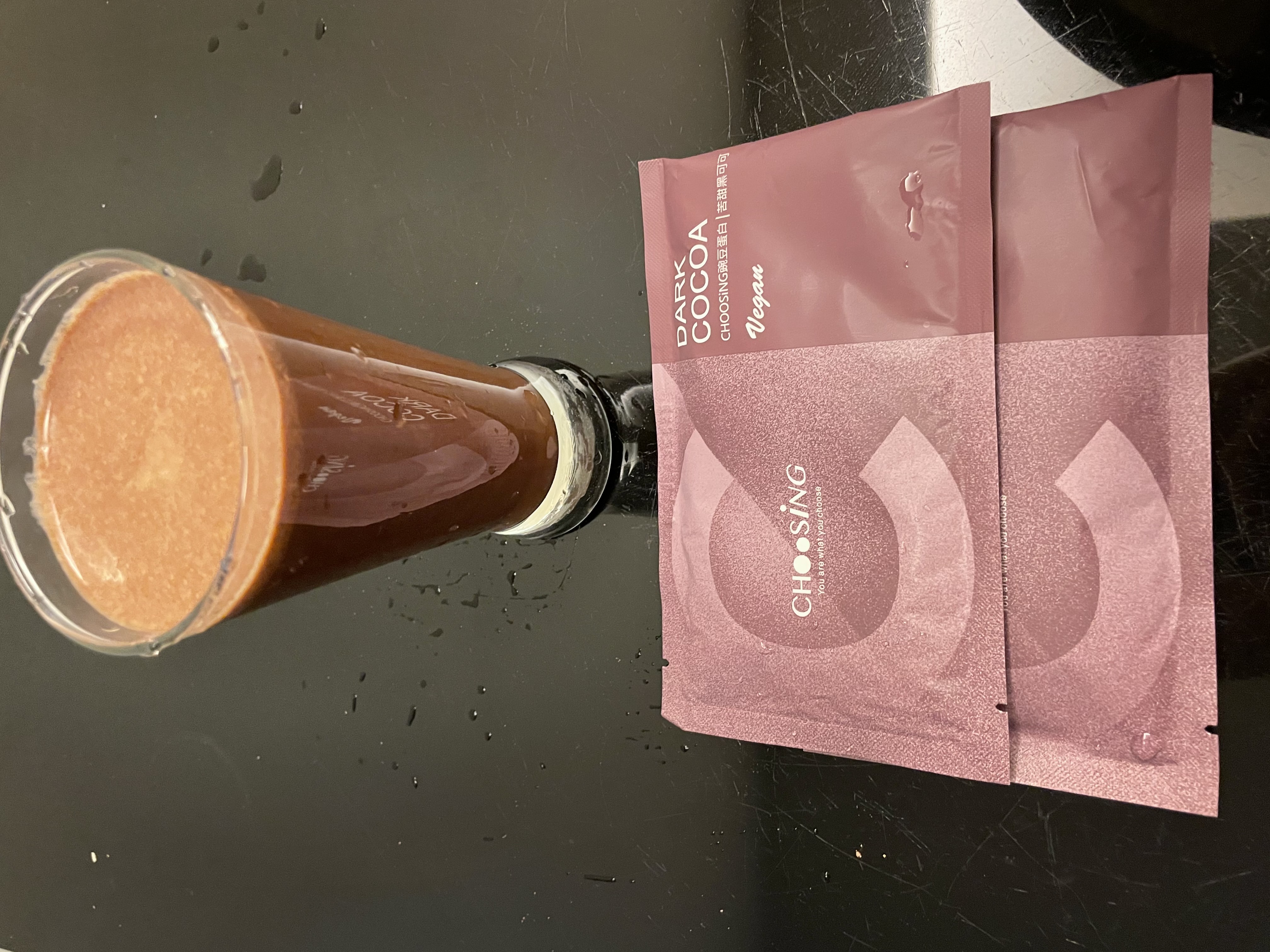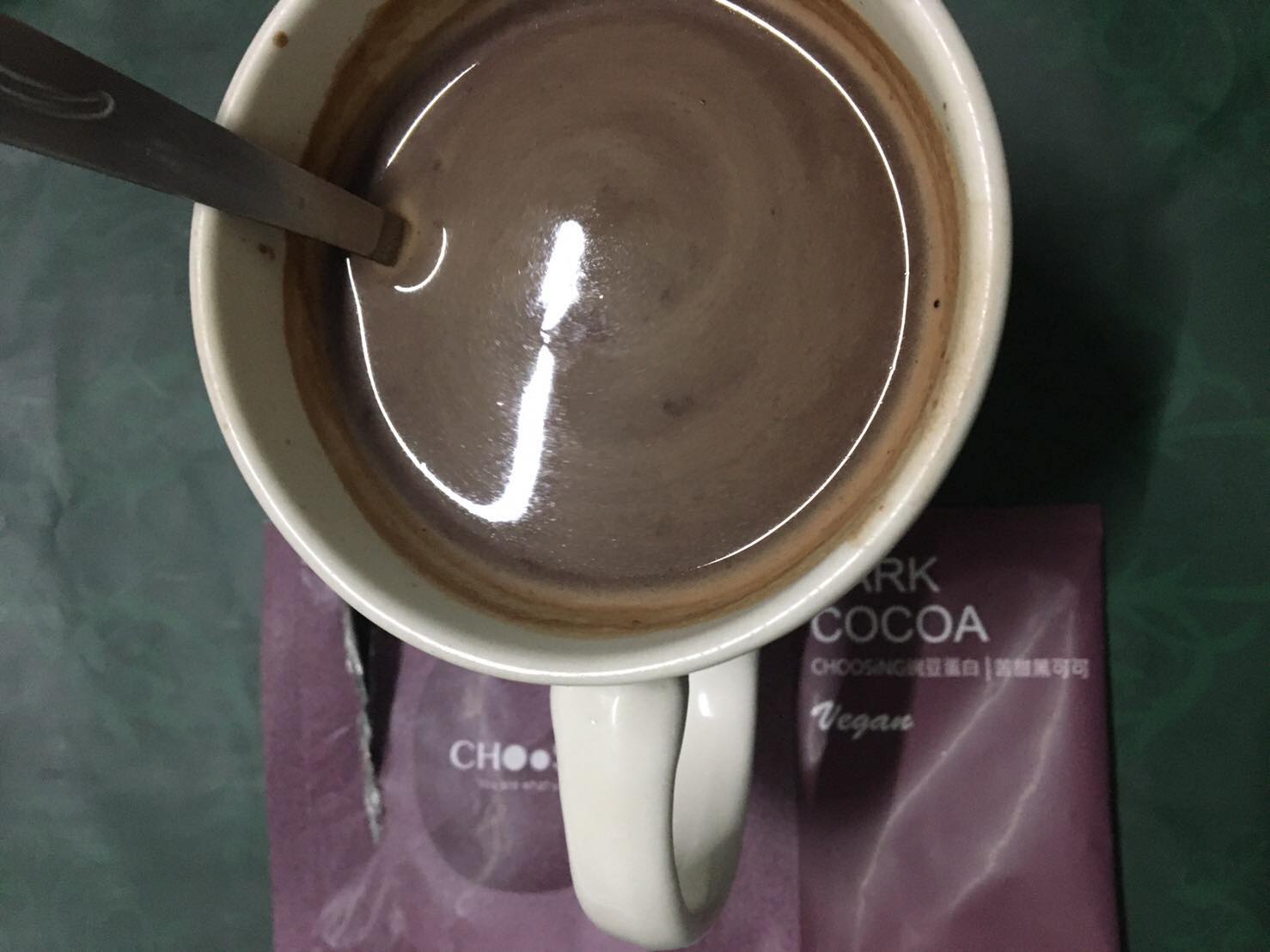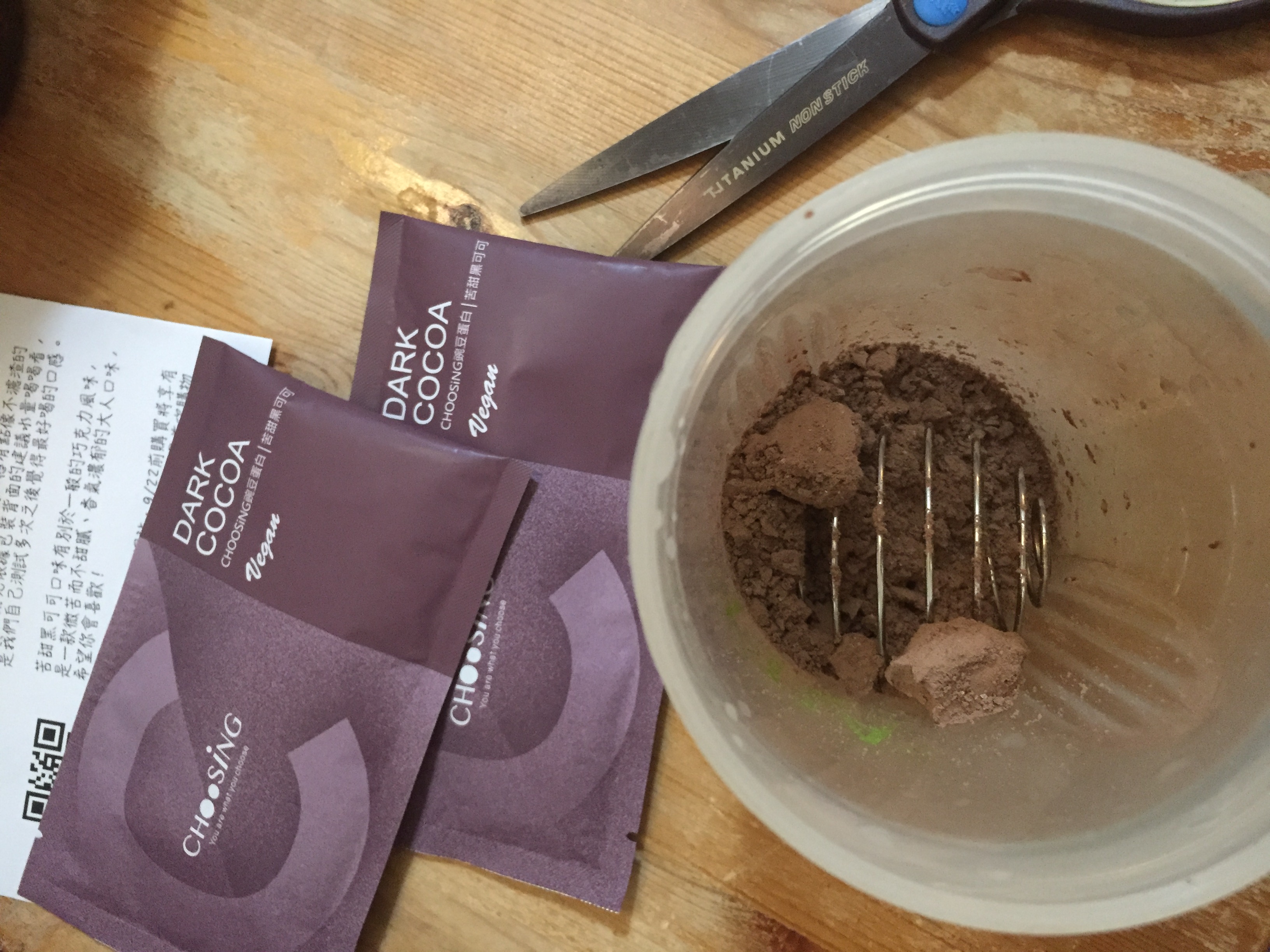 植物蛋白沖泡後會呈現未濾渣豆漿般略沙的天然口感,搭配100%可可粉調味,喝起來微苦香甜,濃郁不膩口。