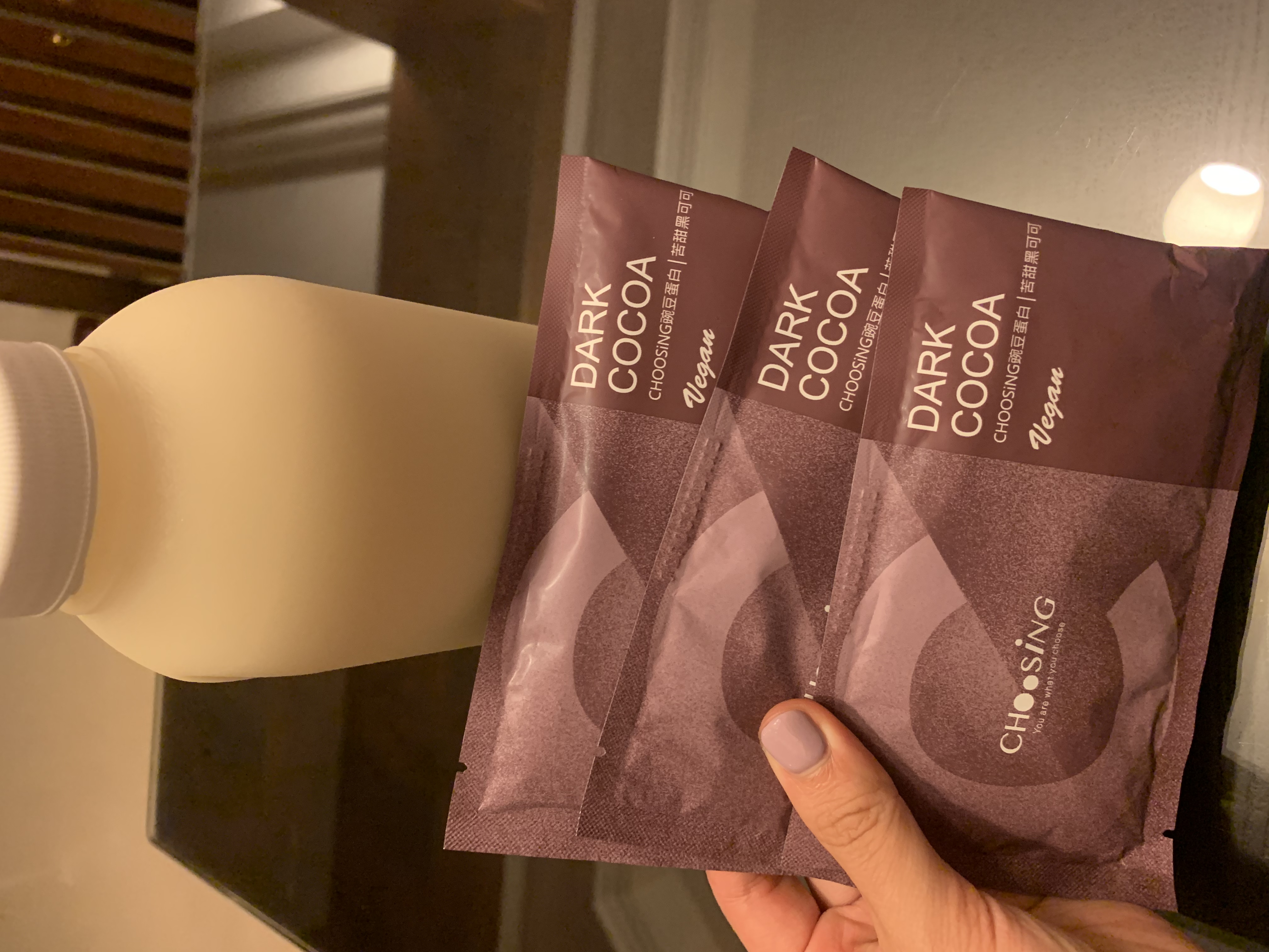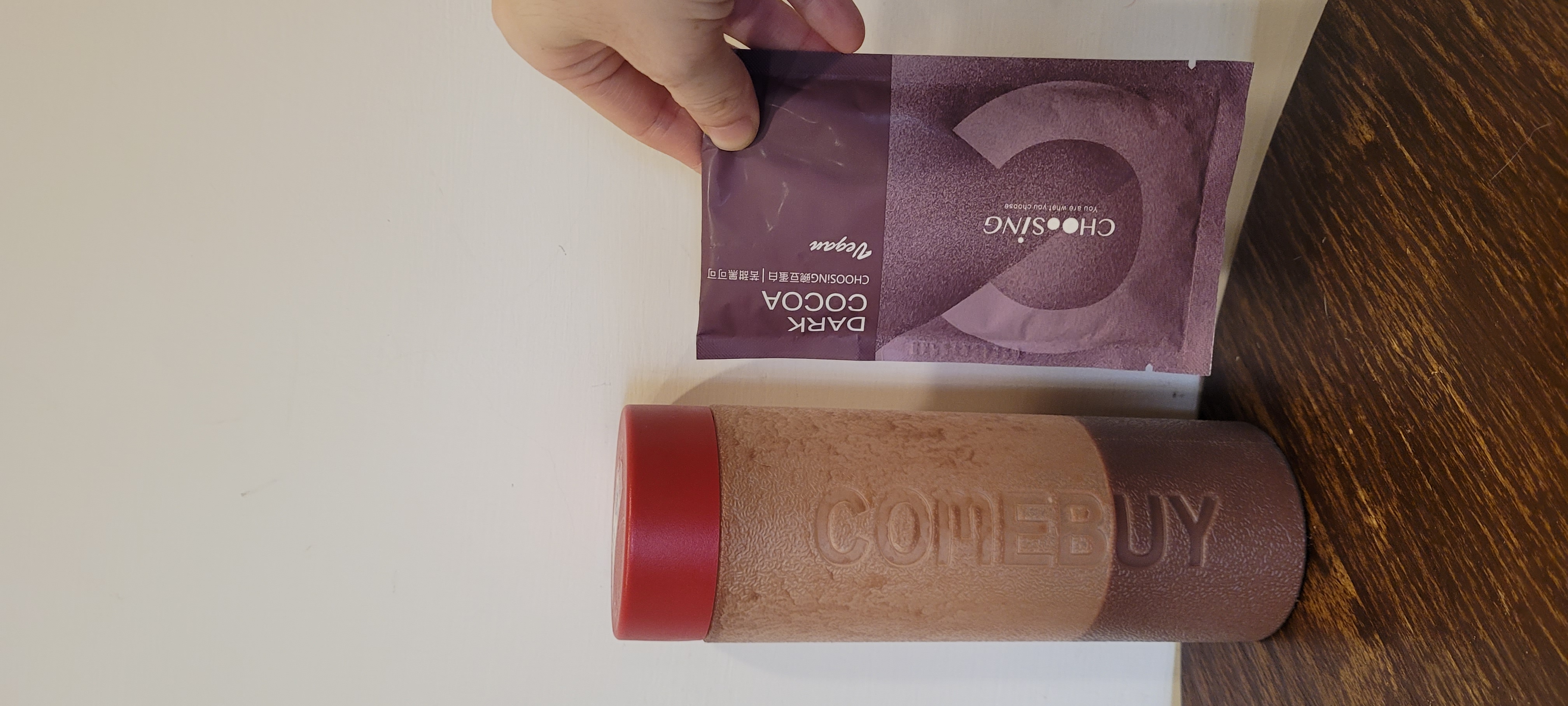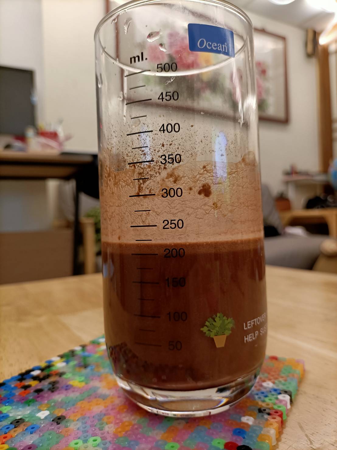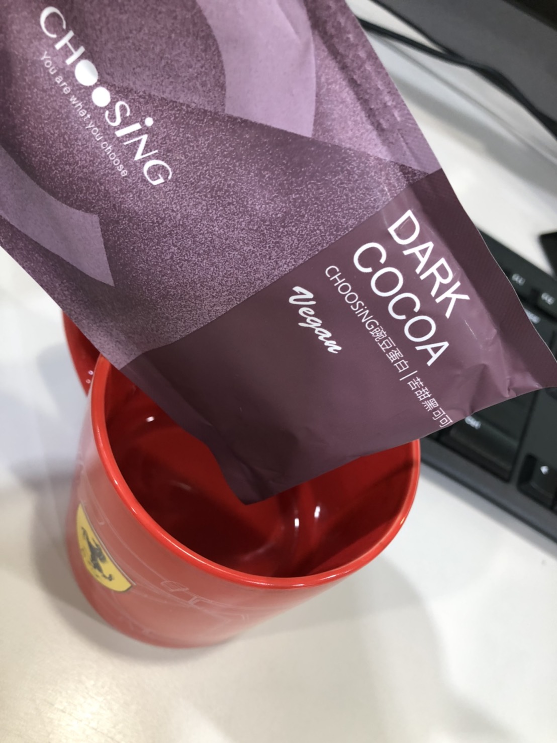 植物蛋白沖泡後會呈現未濾渣豆漿般略沙的天然口感,搭配100%可可粉調味,喝起來微苦香甜,濃郁不膩口。