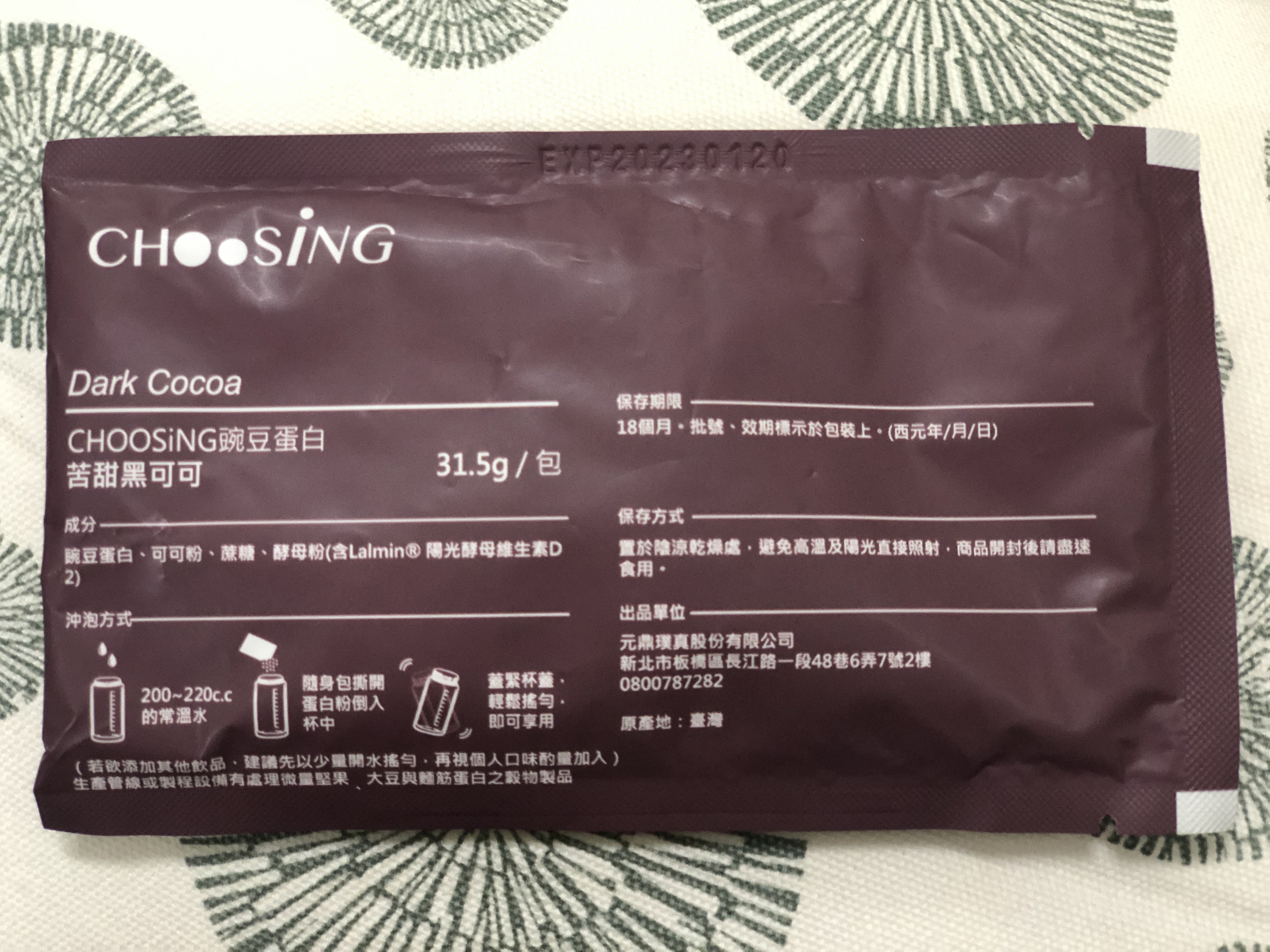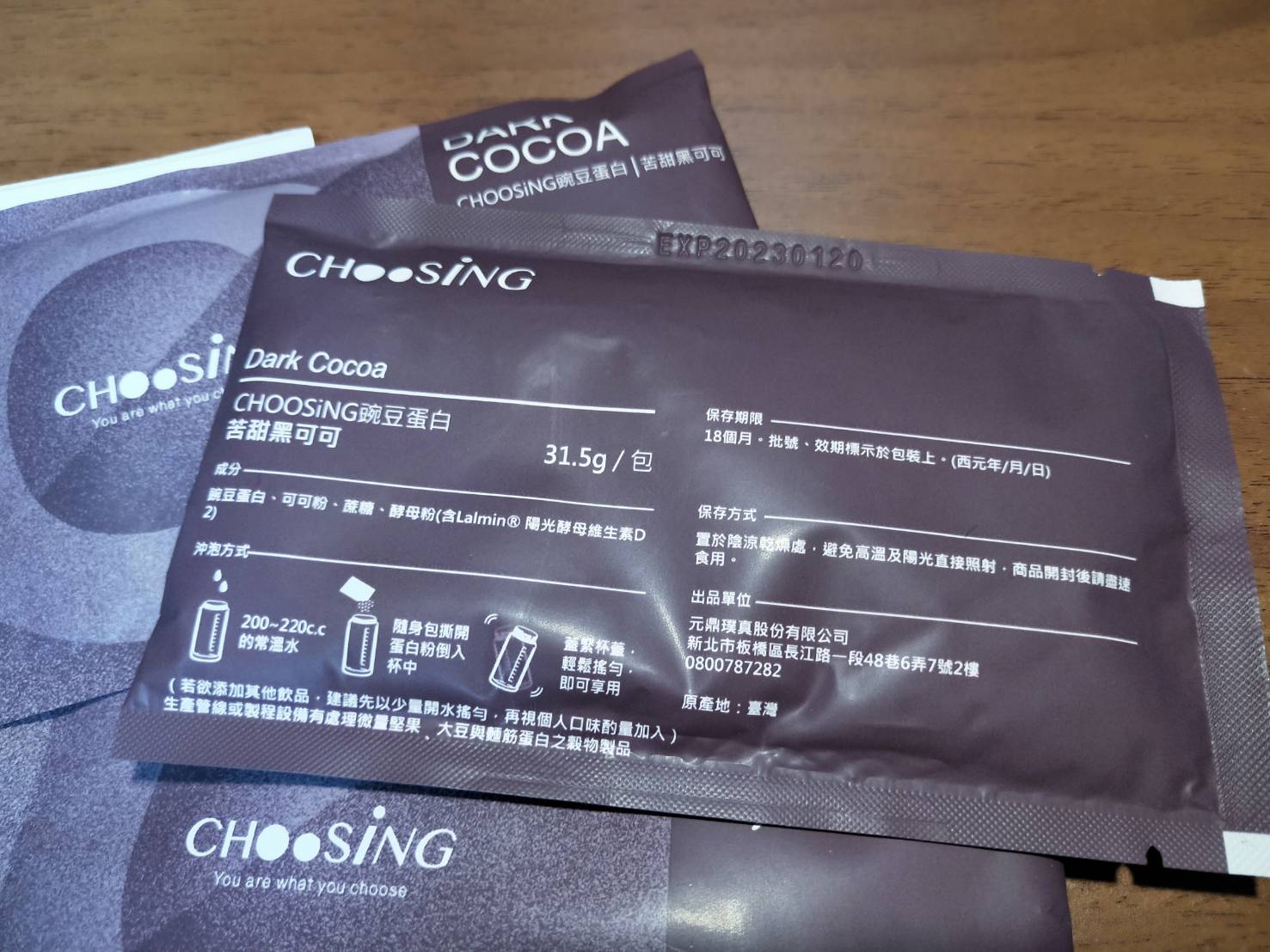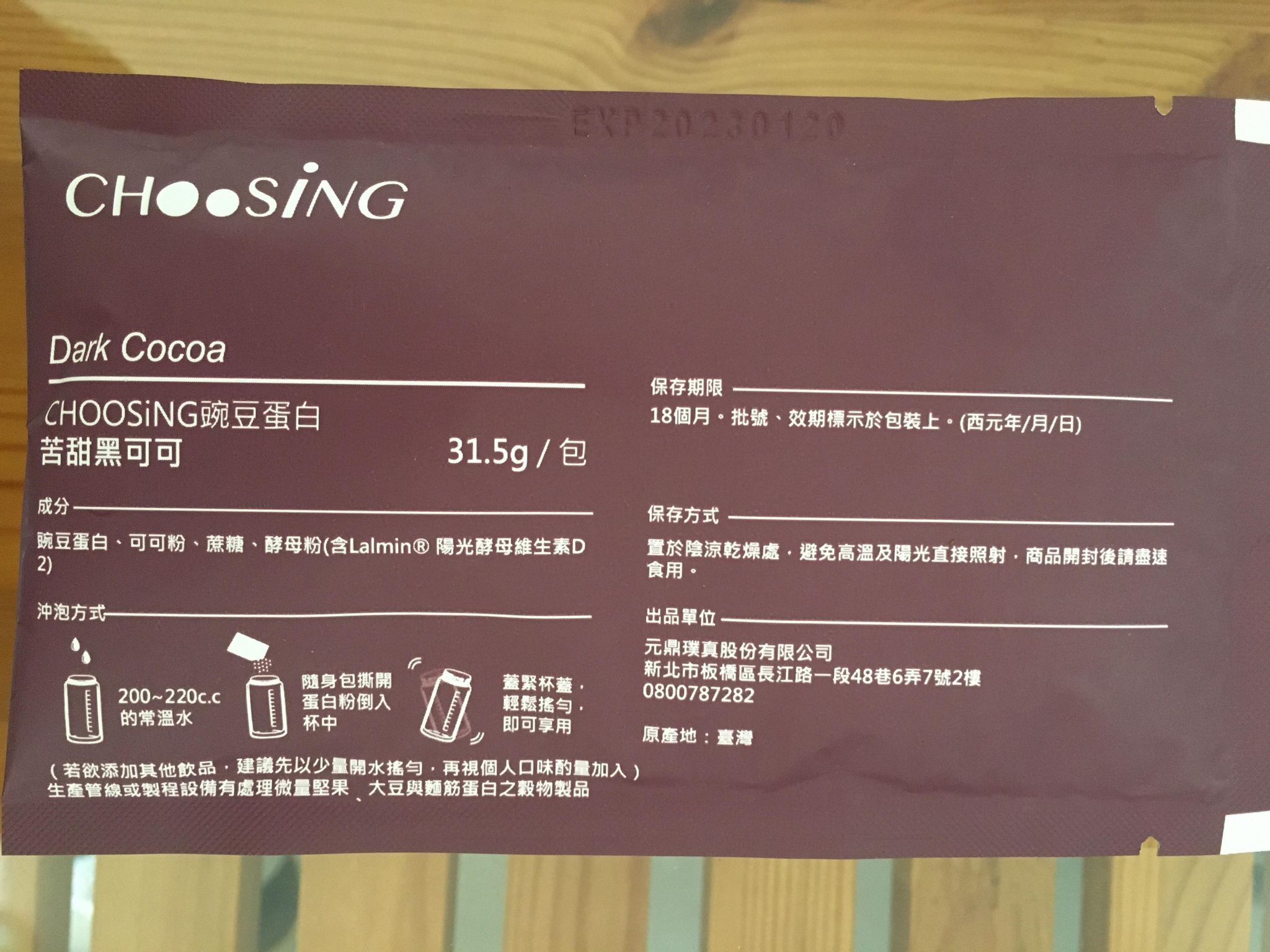 CHOOSiNG豌豆蛋白依循三大品牌原則,捨棄低成本的化學香精,100%使用天然植萃原料,並嚴選國際專利非基改豌豆蛋白,營養價值高、好入口,不易脹氣、不易長痘痘,乳糖不耐症候群也能安心飲用。