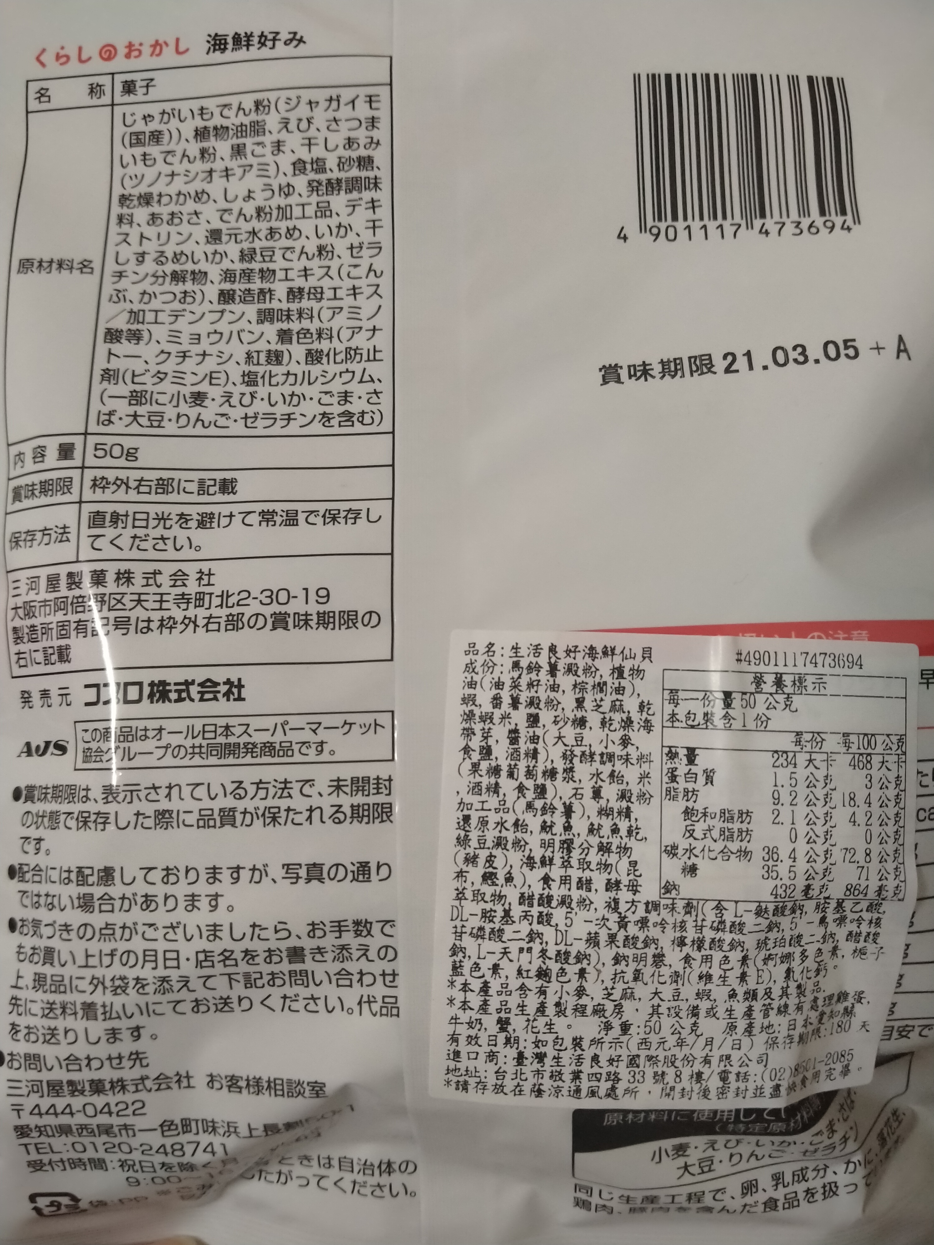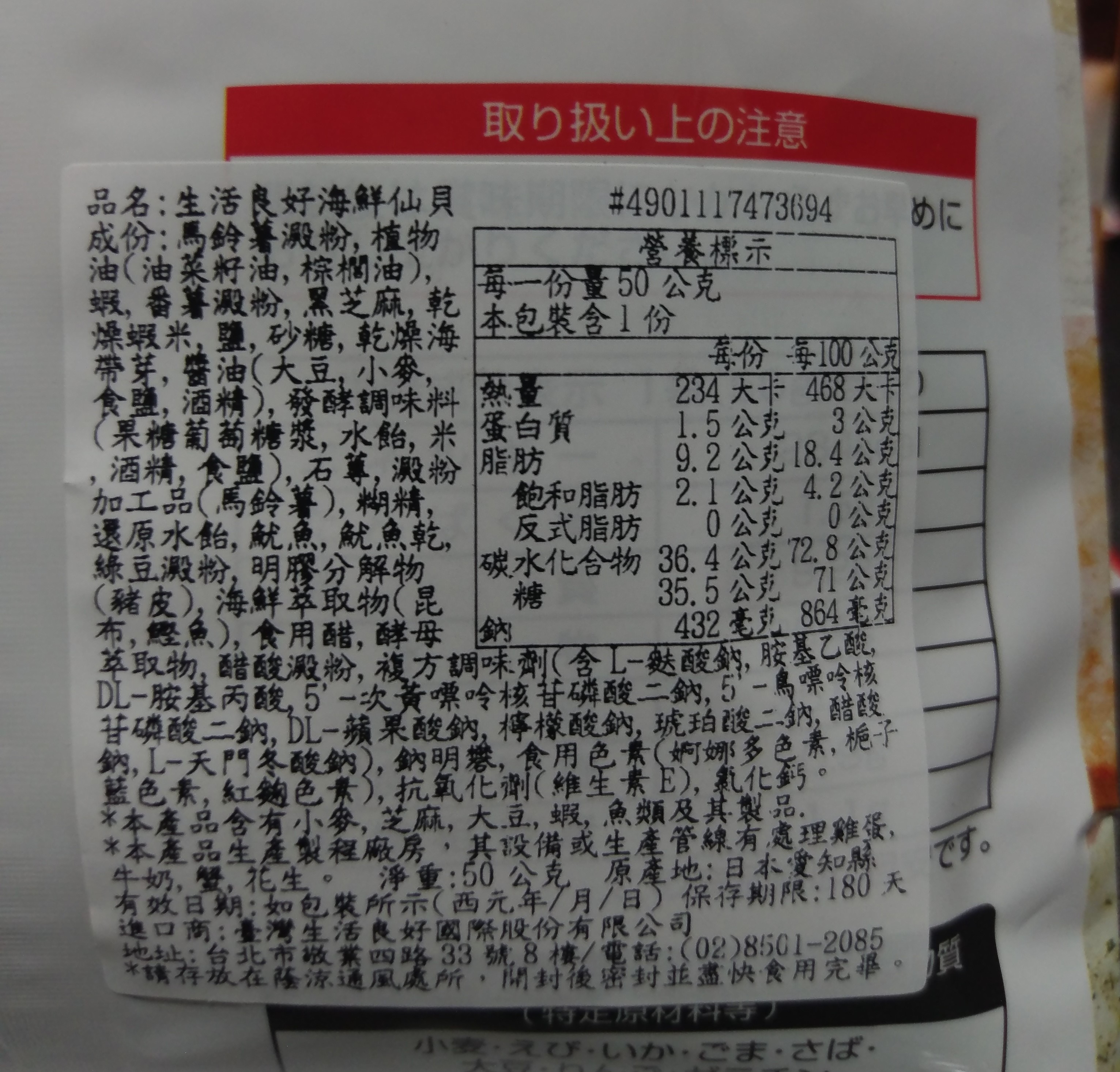 | 產品規格 | 50g/包,共3包 |