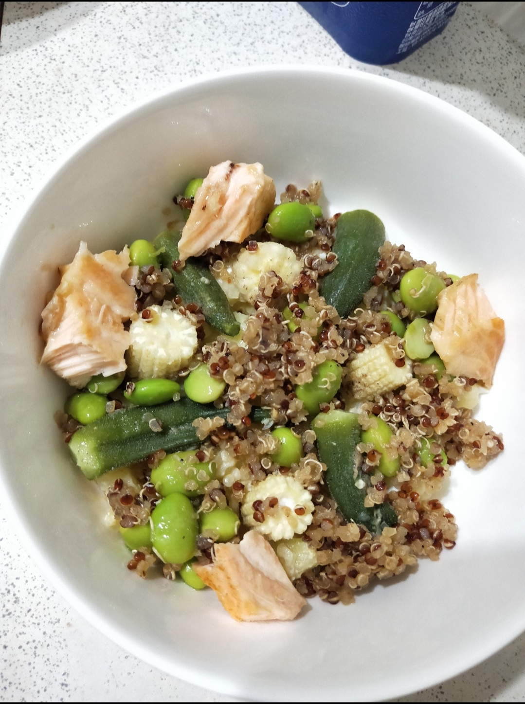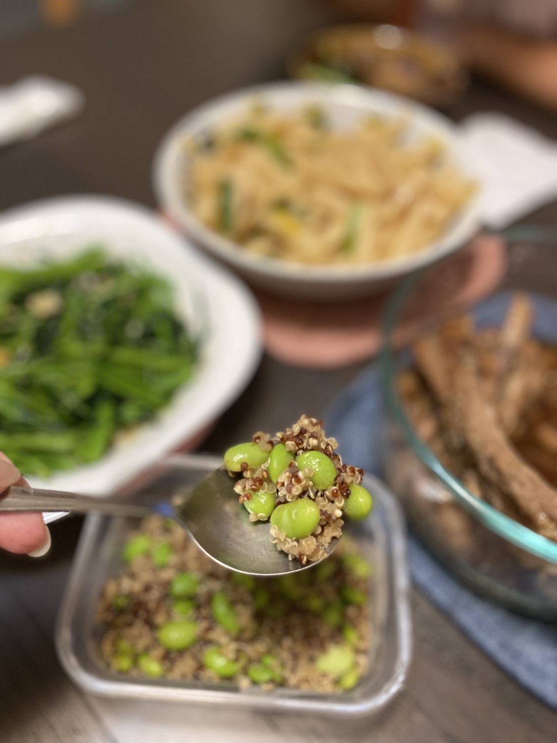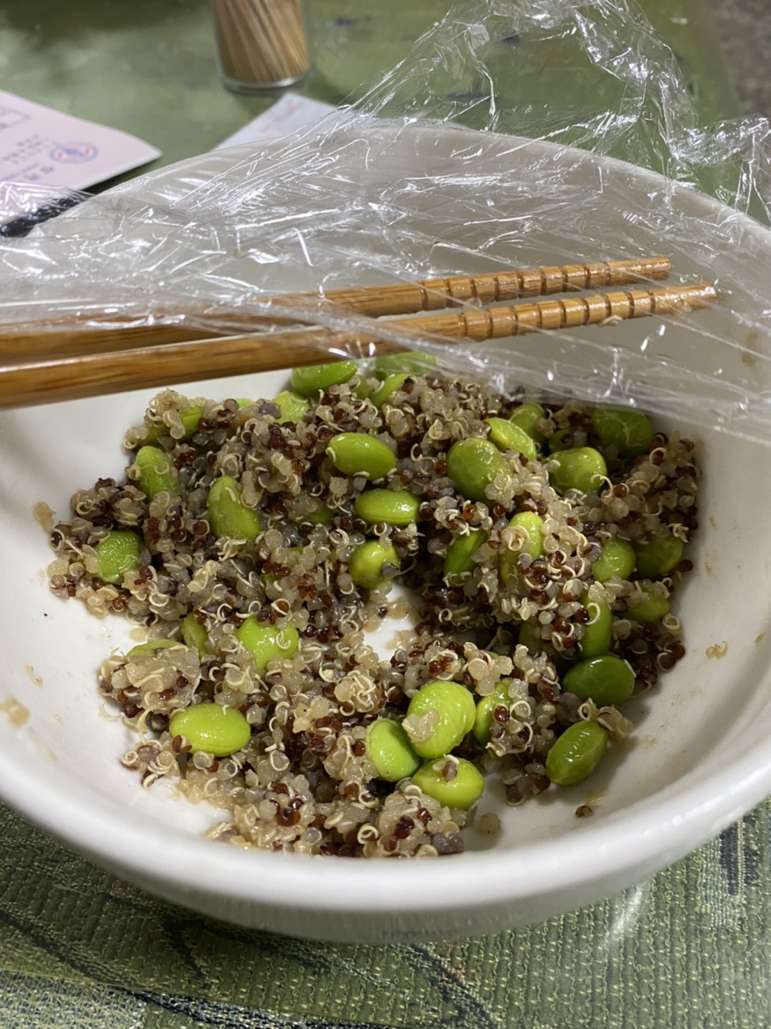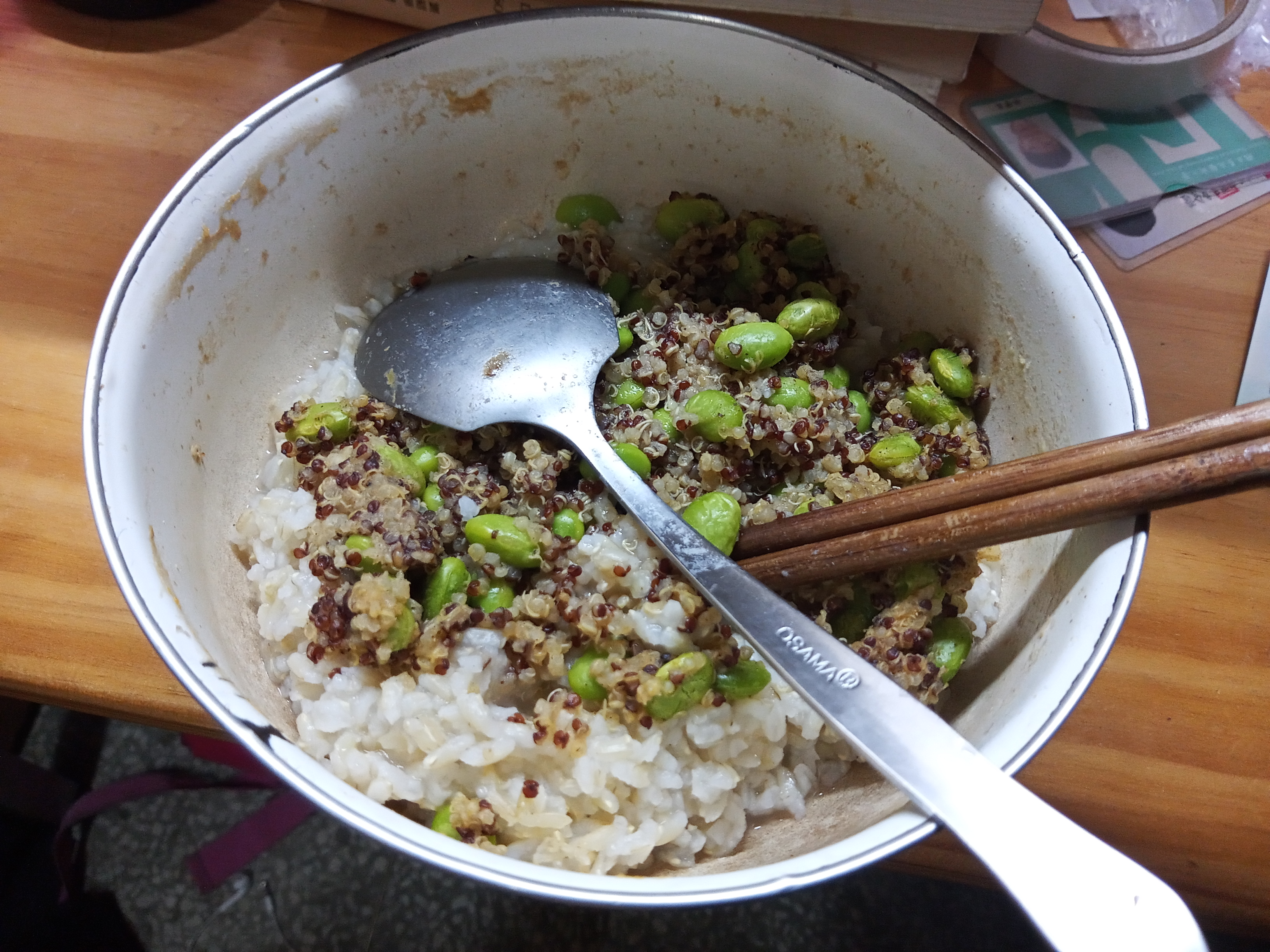 藜麥、毛豆、水飴、味醂、香油、砂糖、甜味劑(D-山梨醇液)、醬油(水,非基因改造黃豆,小麥,食鹽)、食鹽、柴魚粉、酵母抽出物、結晶葡萄糖、麥芽糊精、調味劑(5’-次黃嘌呤核苷磷酸二鈉, 5’-鳥嘌呤核苷磷酸二鈉, L-麩酸鈉,琥珀酸二鈉)、香菇精粉(麥芽糊精,香菇萃取物,食鹽,L-麩酸鈉)、黏稠劑(玉米糖膠)、甜味劑(甘草萃)