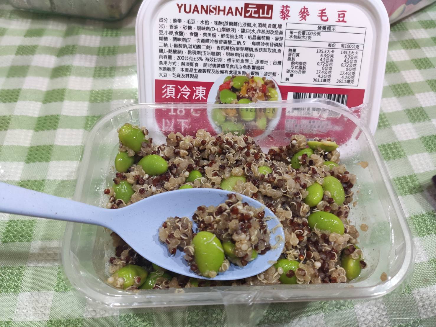 藜麥毛豆採用急速冷凍的技術,直接鎖住食物的鮮味。