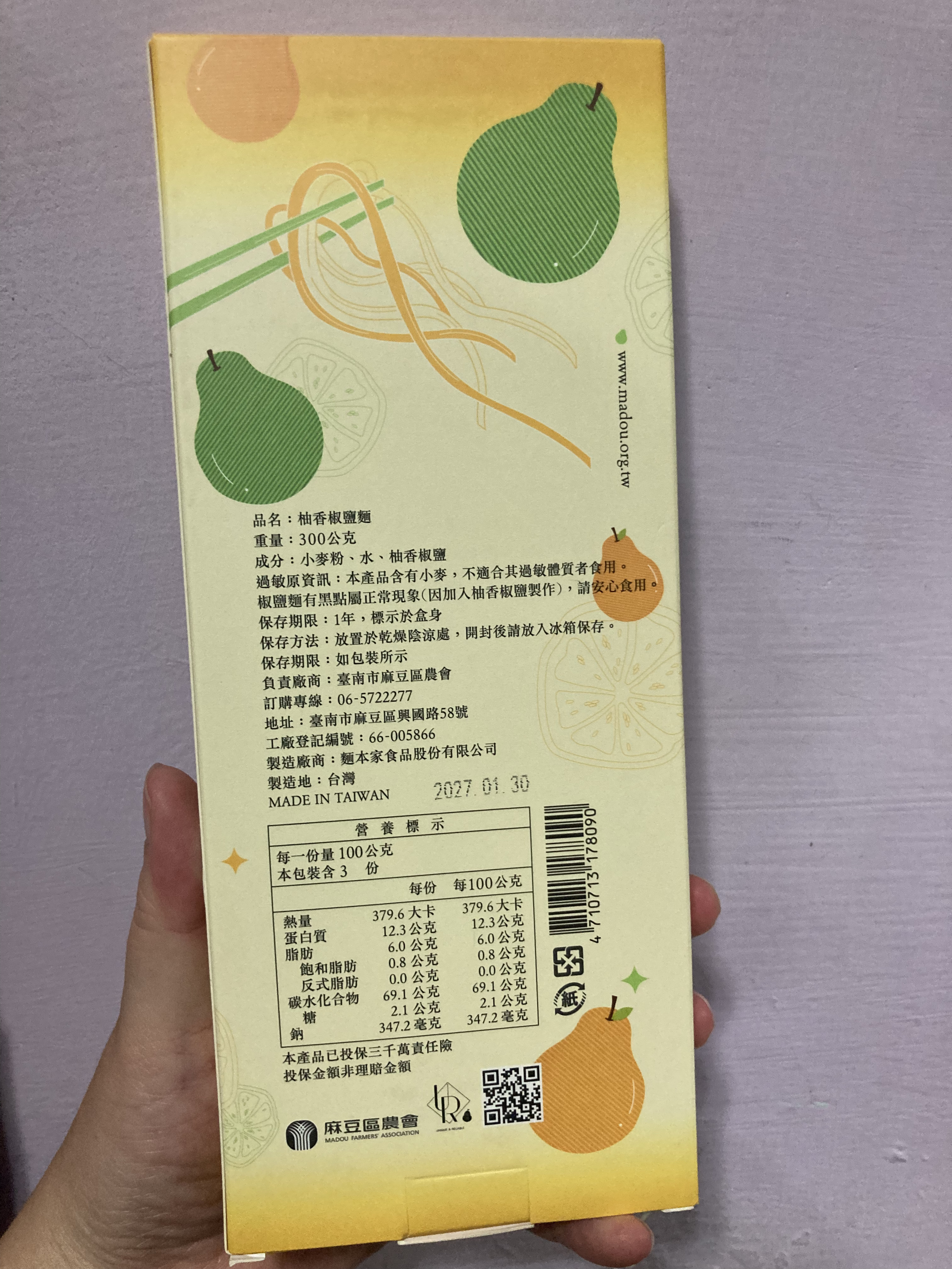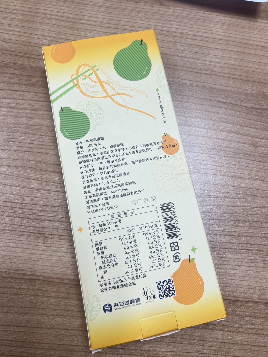 回列表 麻豆區農會 柚香椒鹽麵 吃得到的南台灣陽光,非油炸日曬麵條,吸滿椒鹽與柚香的涮嘴精華 所需等級 一般會員以上 所需學分 50 體驗份數 15 關注人數 1230 申請人數 268 申請截止 立即購買 品牌業者:麻豆區農會 負責廠商 彰化縣埔心鄉農會 廠商地址 彰化縣埔心鄉忠義北路108號 產地 台灣 試用產品規格 300g/盒 食品業者登錄字號 N-159661907-00002-6 投保產品責任險字號 明台產物保險股份有限公司0805第14PDT00087號 心得分享 商品介紹 商品成分 注意事項 體驗名單 8.5 麻豆區農會 柚香椒鹽麵 面提Q彈度 9.1 獨家柚香層次 7.5 口味開胃 8.1 清爽解膩感 8.7 建議推薦 8.4 心得分享 15則 周孟萱 鑽石達人 27歲 臺南市 2026/03/24 對麻豆區農會 柚香椒鹽麵留下評價 10 一直對農會產品非常感興趣,這次看到家鄉的農會產品,覺得有熟悉感,還是麻豆最有名的柚子,居然也能做成柚香椒鹽麵,重點是成分非常簡單,沒有添加太多額外的加工品,這大概就是農會產品的迷人之處,想起之前試吃過白河的藕香麵,也是很好吃,很幸運再度入選試吃員,包裝內只有單純的三綑麵,沒有額外的調味包等等,所以要先自己煮湯頭,我們家是使用洋蔥、牛番茄炒出香味後,加入一包鰹魚高湯包,加水、高麗菜煮滾後,湯頭會變得很甜,加入主角柚香椒鹽麵,煮到自己喜歡的軟硬度後,撈起,就是一碗非常好吃的湯麵,但可能湯頭較濃郁,椒鹽味道比較不突出,下次可考慮用清淡一點的湯頭在嘗試看看,總之很推薦唷! Talia 金食達人 34歲 臺北市 2026/03/31 對麻豆區農會 柚香椒鹽麵留下評價 10 今日很榮幸體驗到【麻豆區農會 柚香椒鹽麵 吃得到的南台灣陽光,非油炸日曬麵條,吸滿椒鹽與柚香的涮嘴精華】,台南地區的麵製品一直是遠近馳名,本次雖然外包裝沒有說明烹調方法,我喜歡吃偏軟的麵條,故水滾後放入麵條煮6分鐘,麵條口感很適合我。先品嘗原味,麵條有淡雅柚香味,不過椒鹽味倒是不明顯。之後搭配生菜以及和風醬拌勻,麵條味道很好,麵粉香濃郁,一束的份量很有飽足感。後來有再嘗試加入沙茶醬拌勻,沙茶香味十足,混合起來非常好吃,很適合趕時間的家庭主婦或是上班族,煮麵的時間和泡泡麵差不多,整體麵條口感更升級。 洪孟歆 金食達人 30歲 臺南市 2026/03/24 對麻豆區農會 柚香椒鹽麵留下評價 9 本身就很喜歡農會的商品,這次這款《麻豆農會》柚香椒鹽麵 全家人都很喜歡,原料很單純,很喜歡將柚子皮融入麵條的設計,尤其是麻豆的柚子!口味上吃的到柚子淡淡香氣,再搭配上椒鹽的調味,整體吃起來不會太膩,麵體煮起來也很Q彈,不會太軟爛,第一次以涼麵的方式享用,第二次以湯麵的方式享用,有截然不同的風味,清爽回甘的口感。不論是炎熱天氣做成開胃涼麵,或是加入高湯變成暖胃的湯麵,都能呈現不同的美味感受,包裝上也很適合送給親朋好友。再加上烹煮方式簡單快速,即使平常忙碌也能輕鬆上桌,作為日常備糧或快速料理都非常方便。整體從風味到便利性都讓人留下好印象,是會想再回購的一款特色麵品。 Shih 金食達人 30歲 新北市 2026/03/24 對麻豆區農會 柚香椒鹽麵留下評價 9 一開始以為有醬料包,打開包裝發現裡面只有乾麵條,很好奇該如何呈現柚香椒鹽的風味,一份麵條的量感覺起來比外面的稍微多一點,乾麵條沒有特殊的香氣,烹煮過程麵很快熟,且不會有煮太久爛掉的問題,對於料理新手而言是很大的優點!麵條未加任何調味時,其實吃不太出來跟普通白麵條的區別性,但很神奇的是加入一些醬油後,就可以明顯感受到椒鹽的香氣,但柚香表現沒有特別突出,若沒看包裝可能不會發現跟柚子有關,不過整體而言麵條有彈性滑順好吃,包裝也相當精美,是會願意回購的商品! 智凱 鑽石達人 39歲 臺南市 2026/03/26 對麻豆區農會 柚香椒鹽麵留下評價 9 試吃產品:麻豆區農會 柚香椒鹽麵心得:雖然寫柚香椒鹽,但這兩種味道都很清淡,覺得應該很難呈現出來。說有麻豆文旦的清雅果香,但真的吃不太出來,大概是增加了清爽的部分吧。很多麵條裡會增加蔬果風味,但大多很難吃出來,就當作是有那份營養吧。成分有小麥粉、水、柚香椒鹽,非常簡單,可以放心食用,撇除有對柚香椒鹽的期待,他吃起來是很Q彈有勁的,口感好,本來以為會像麵線,結果是細麵口感,很好吃。但配料可能要清淡一點才能吃出風味,雖然吃白麵也吃不太出來。所以當作一般好吃的麵條,加在自己喜歡的醬料裡也是很棒的。 張晶晶 金食達人 57歲 臺北市 2026/03/30 對麻豆區農會 柚香椒鹽麵留下評價 9 原本以為這款麵體會帶有非常濃郁的柚香,甚至還擔心味道會和我平常吃麵的習慣差異太大,可能會不太能適應。但實際試吃之後,發現柚子的香氣比預期中更為清爽、柔和,不會過度搶味,反而讓整體風味變得輕盈乾淨。搭配椒鹽後,麵體的層次被明顯提升,口感變得更有亮點,吃起來相當爽口,就算不加其他配料,單吃也很不錯,比起一般泡麵也更讓人覺得沒有負擔。如果原本對柚子味比較敏感或不熟悉,把這款麵當成入門款其實很合適,不會讓日常飲食產生突兀感。我自己照平常的習慣加入滷肉和青菜後,整體香氣更被帶出來,味道豐富又和諧,真的非常香、非常好吃。 葉昭慶 金食達人 35歲 臺北市 2026/03/31 對麻豆區農會 柚香椒鹽麵留下評價 9 我用玉米濃湯來料理柚香椒鹽麵,整體口感讓我蠻驚艷的麵條採用非油炸日曬製法,吃起來不會軟爛,反而