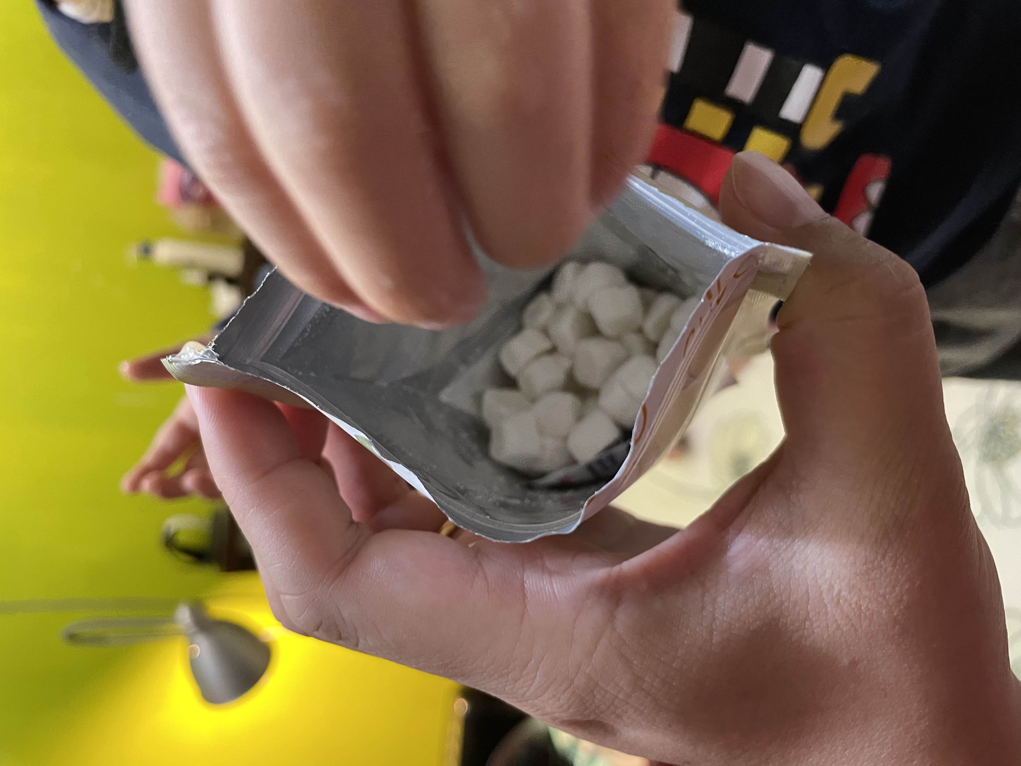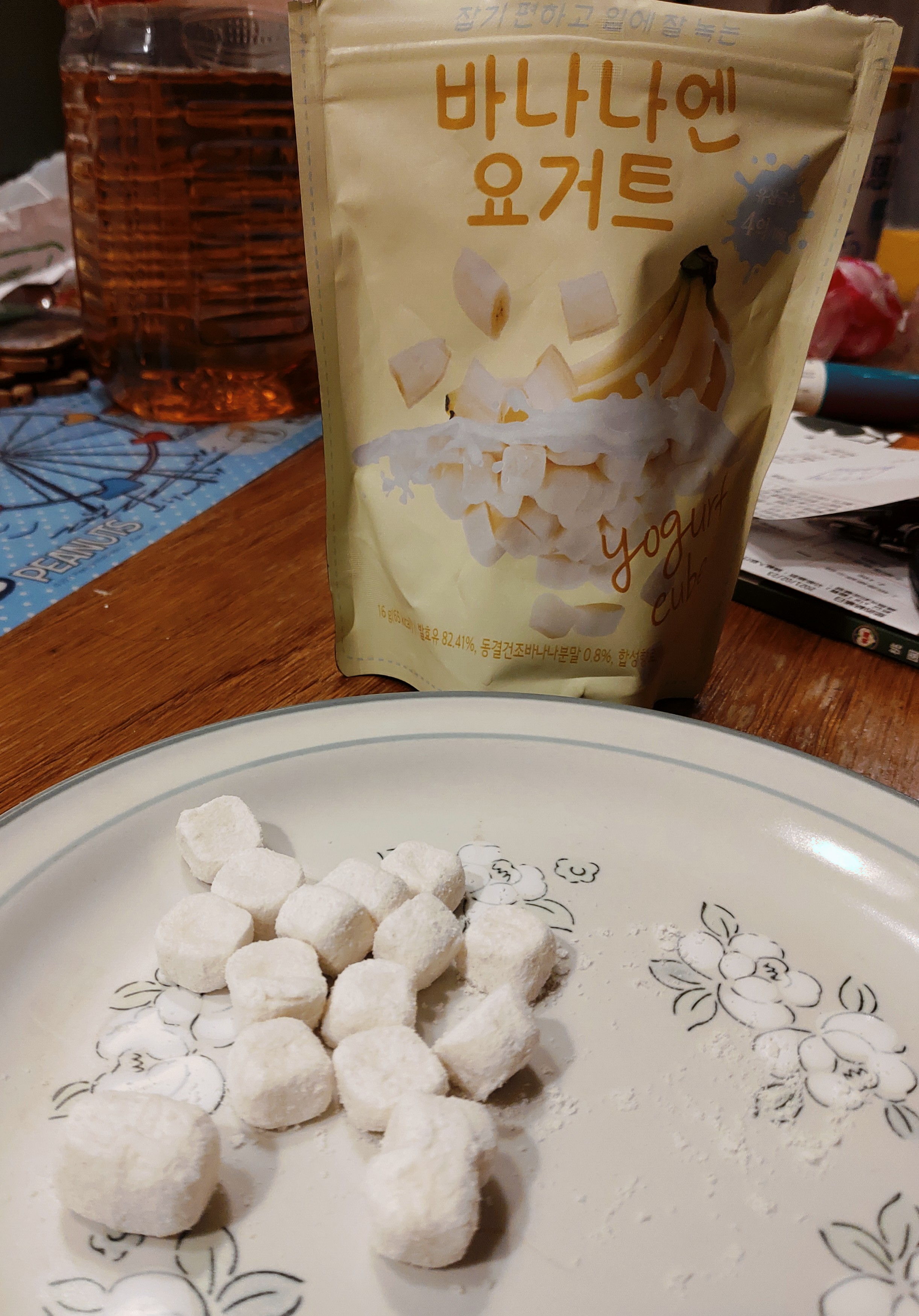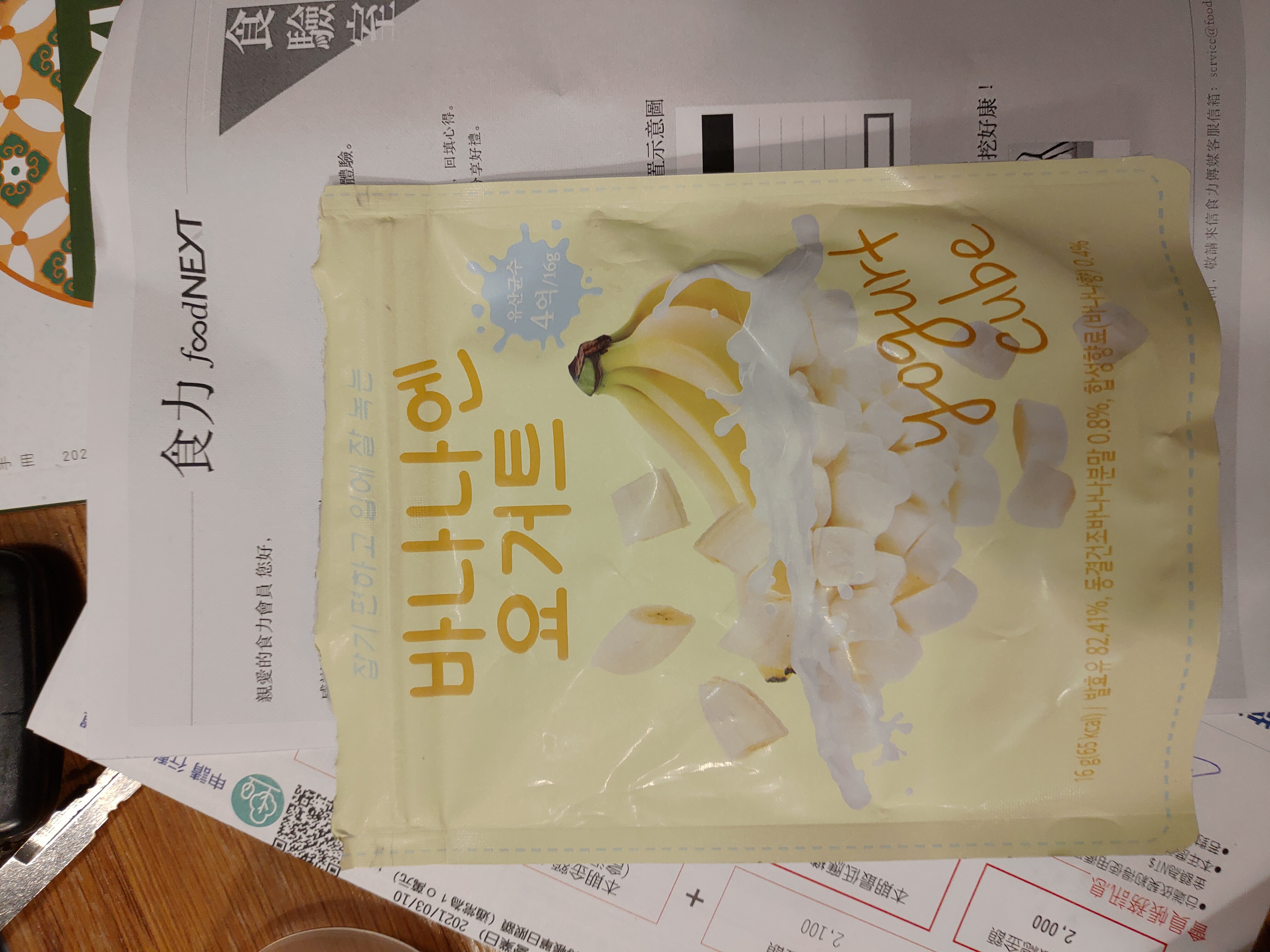 發酵乳【粗糖(韓國),液體果糖,低聚醣,牛奶&奶油(韓國),乳酸0.002%】82.41%白糖,洋木鬼纖維(法國),香蕉粉(菲律賓)0.8%,合成香料(香蕉)0.4%,冷凍乾物質0.12%