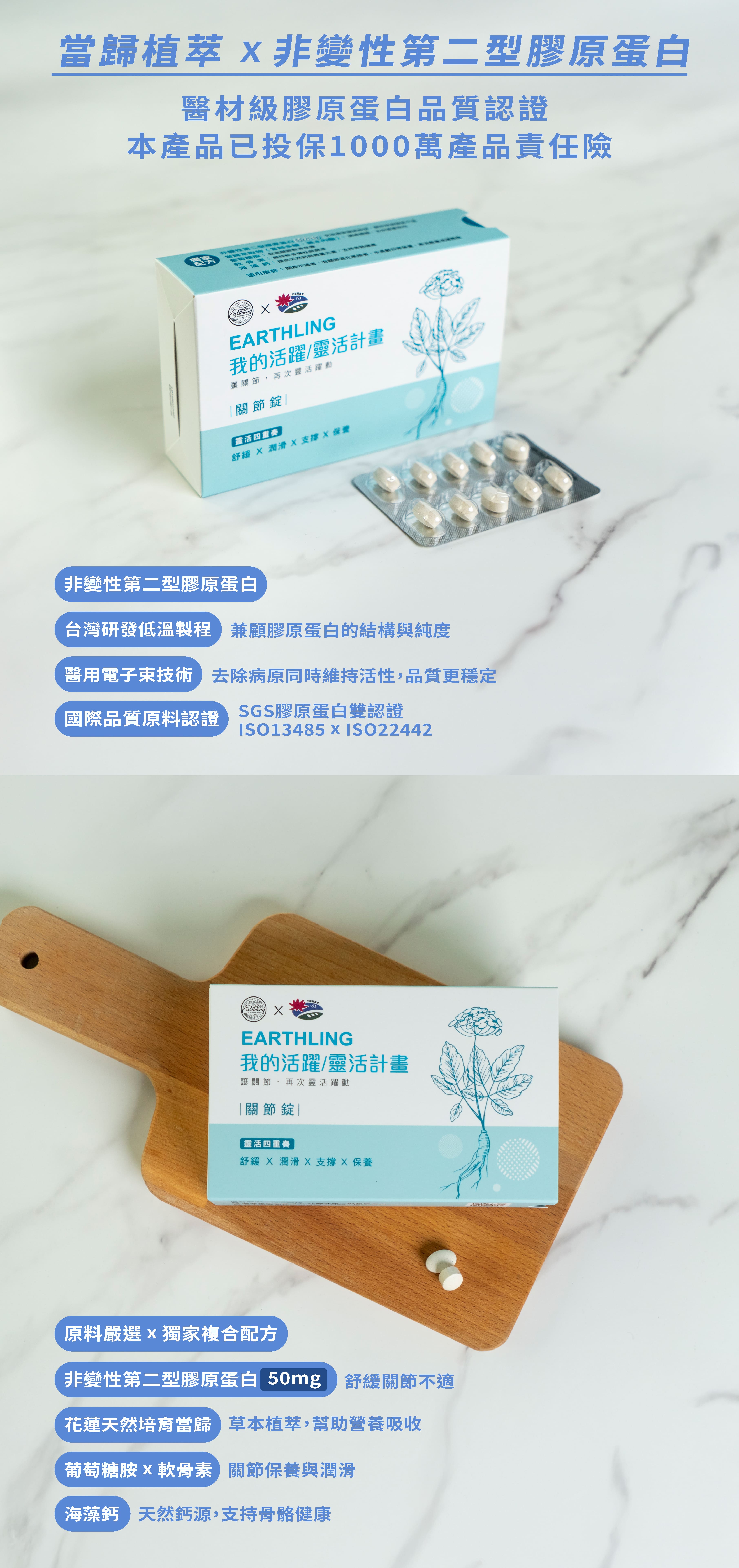 回列表 EARTHLING 我的活躍/靈活計畫 關鍵保養不卡關,讓行動再次陪你躍動 市價1780元 (免費申請) 索取進行中 所需等級 一般會員以上 所需學分 30 體驗份數 20 關注人數 66 申請人數 3 我要申請 品牌業者:花蓮縣農會 產地 台灣 試用產品規格 30錠 食品業者登錄字號 D-202326739-00000-4 投保產品責任險字號 0524字第26AML0000096號 商品介紹 商品成分 使用方法 注意事項 以溫水配食 葡萄糖胺、MSM(甲基硫醯基甲烷)、鯊魚軟骨素、海藻鈣、硬脂酸鎂(賦形劑)、非變性膠原蛋白第二型、當歸萃取物 [當歸萃取物(當線萃取物(含賽本内酯)、麥芽糊精、當歸革取物(含多醣]、総生素C、荻鹼植按、辦生素E、泛酸、磷、維生素B1、 氧化鎂、維生素B6、維生素B2、維生素A、葉酸、電解端、氧化鋅、維生素K、生物素、維生素D3、推生素B12、礦化鋼。 適用族群:關節不適者、有關節退化風險者、中高齡日常保養、高活動量或運動族 請放置於兒童不易取得且陰涼乾燥處,避免受潮、高溫與陽光直射。 本產品含有魚類及當歸成分,相關過敏體質者不適合食用。 嬰幼兒、孕乳婦、服用藥物或與其他疾病者,食用前建議諮詢醫(藥)師。 依個人體質或身體狀況不同,食用後如有不適,請立即停止食用。 申請者入選試吃活動後,系統會扣30學分以取得產品試吃資格。體驗完成後,請返回會員專區完成試吃體驗心得分享(至少200字,並上傳3張自行拍攝的照片)。 若未於限定期間內完成心得分享(至少200字,並上傳3張自行拍攝的照片),系統將列入黑名單,將影響後續申請權益。 若心得回填內容豐富、詳實完整,就有機會列為往後食驗室優先入選名單。 免費試吃體驗由食力指定物流配送,恕不接受由超商代收或寄至郵政信箱, 若不符合規範而遭退貨,視同放棄錄取資格並將列為黑名單。 敬請詳閱各項免費體驗活動內容與規範,試吃申請截止後,恕無法修改、取消。 試吃體驗商品嚴禁轉售。 其他試用 關注人數1298 申請人數 300 大甲佳旭 經典乾拌麵 堅持日曬非油炸!吸滿陽光香氣的波浪麵體,Q彈勁道 2026/02/22截止 15份 關注人數1351 申請人數 287 果然好喝 紅葡萄蘋果雙果酢 每天一杯好氣色!天然釀造好醋 2026/02/22截止 15份 關注人數1226 申請人數 267 石二鍋 蒜香胡椒鍋火鍋湯底 辛香勁爽!白胡椒的微辣爆擊,一碗下肚暖心又暖胃 2026/02/23截止 15份 關注人數946 申請人數 197 黃永福 肉骨茶湯料包 在家輕鬆燉好湯!簡單煮出大廚級的經典肉骨茶香 2026/02/25截止 15份 看更多
