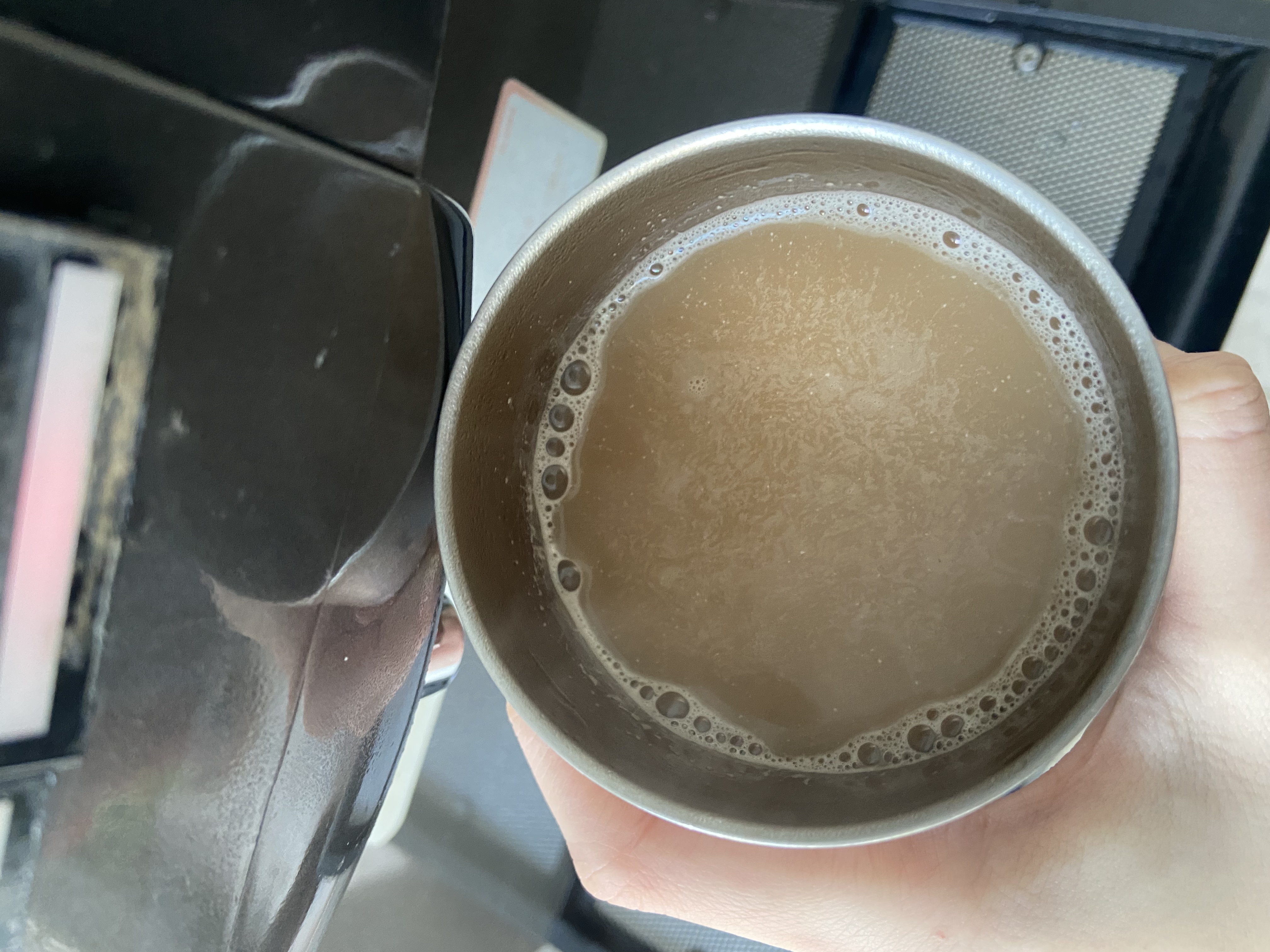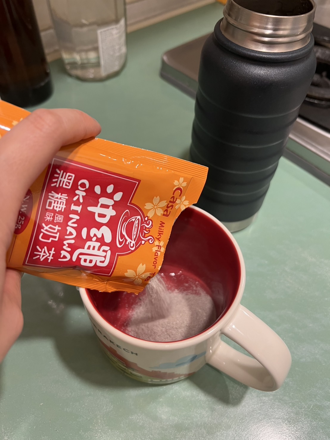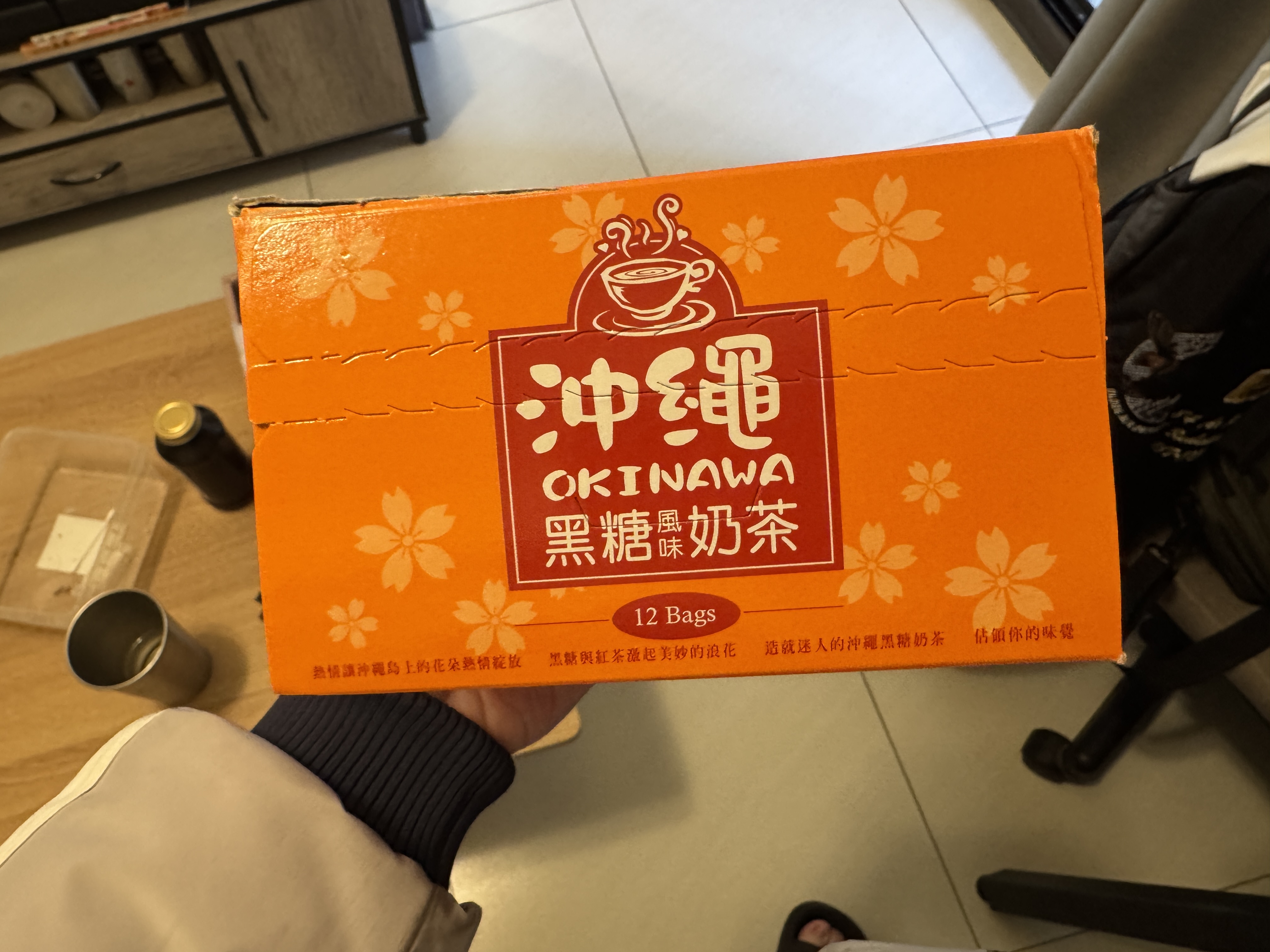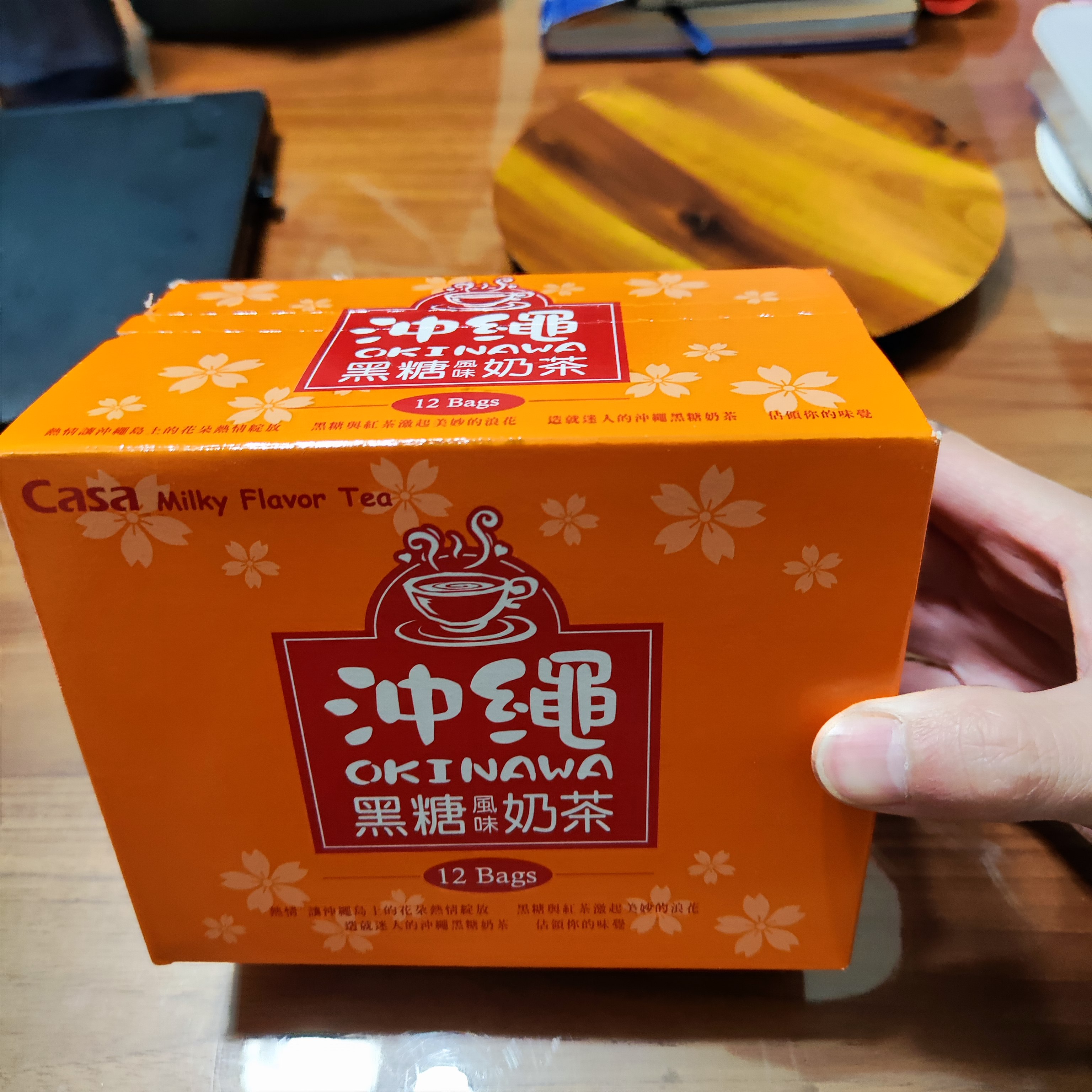 砂糖、奶精【葡萄糖漿、完全氫化棕櫚仁油、乾酪素鈉、磷酸氫二鉀、乳化劑(脂肪酸甘油酯、單及雙脂肪酸甘油二乙醯酒石酸酯)、多磷酸鈉、二氧化矽、食鹽、香料、檸檬酸鈉】、全脂奶粉、即溶紅茶粉、黑糖粉、食鹽、阿拉伯膠、抗結塊劑(二氧化矽)、香料