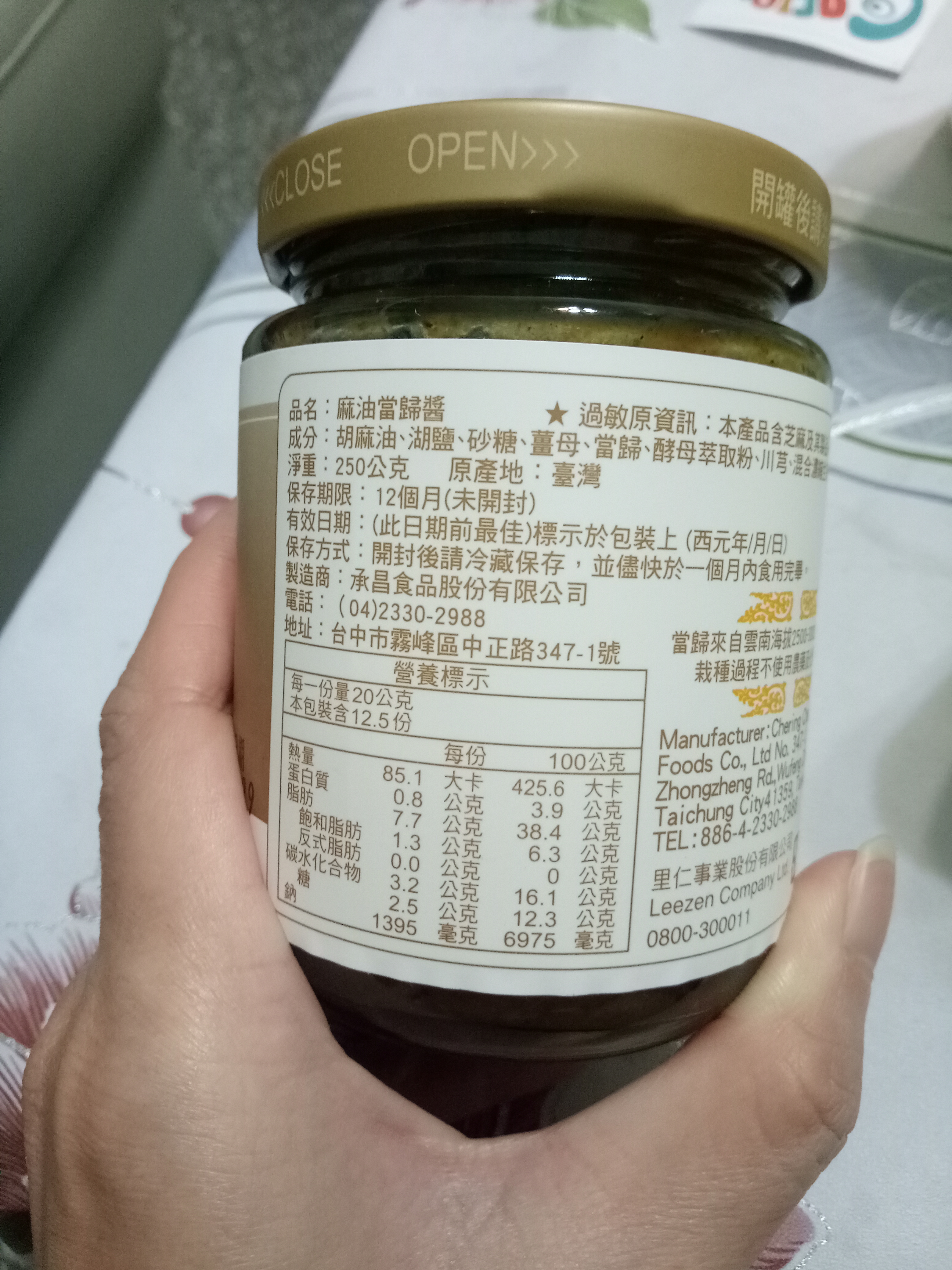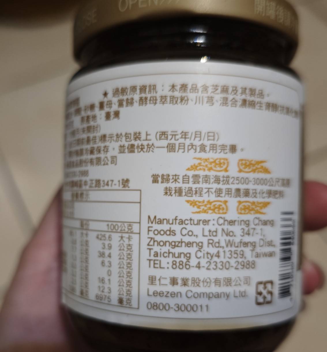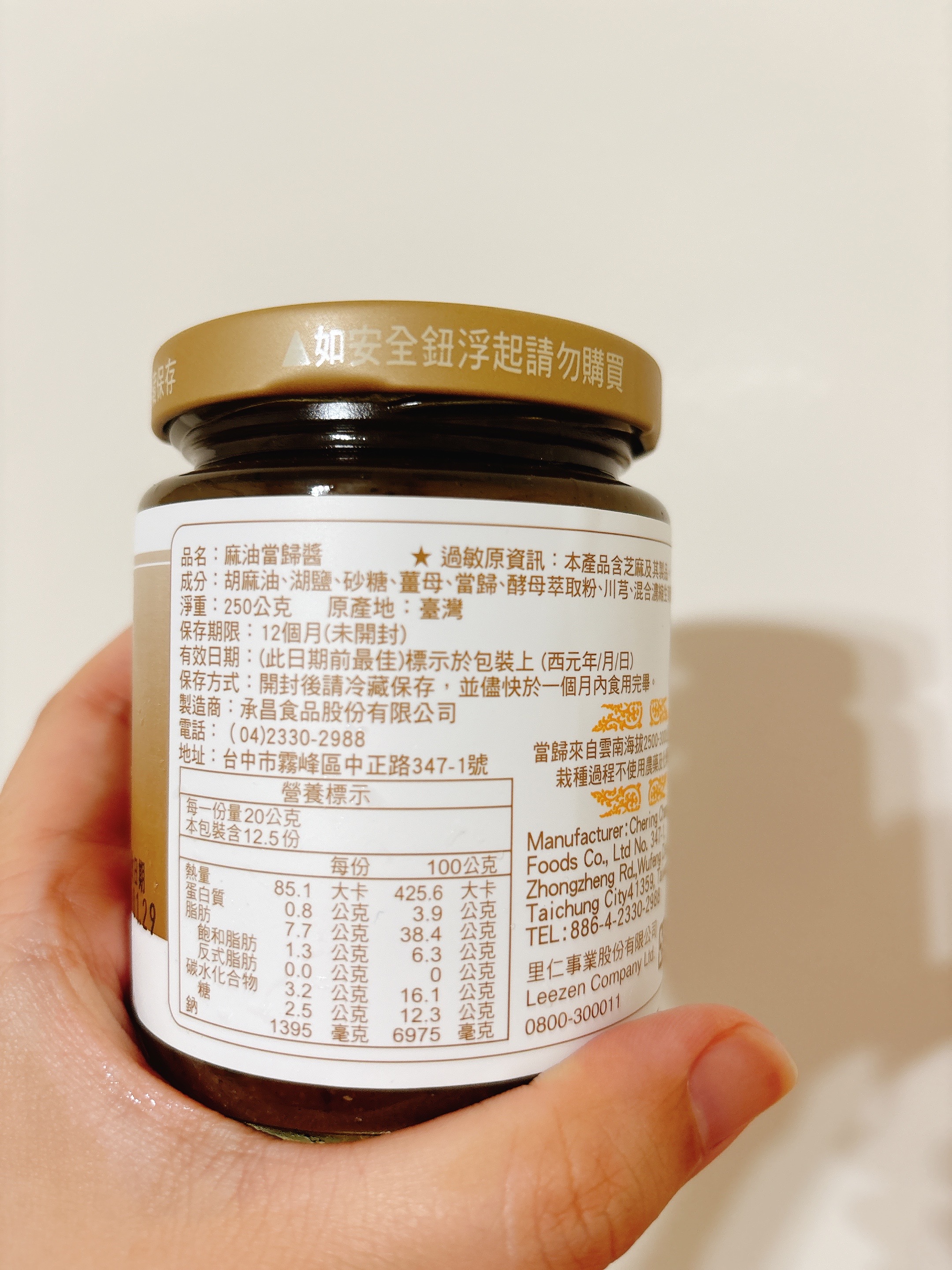 回列表 里仁麻油當歸醬 以胡麻油為基底 濃郁的麻油與當歸香 市價 $190元/ 1瓶(免費申請) 所需等級 一般會員以上 所需學分 30 體驗份數 50 關注人數 763 申請人數 255 申請截止 品牌業者:里仁 負責廠商 承昌食品股份有限公司 廠商地址 413台中市霧峰區中正路347-1號 產地 台灣 試用產品規格 250g/瓶 食品業者登錄字號 B-105836520-00000-8 投保產品責任險字號 1502字第12PD06791號 心得分享 商品介紹 商品成分 使用方法 注意事項 體驗名單 9.0 里仁麻油當歸醬 香氣濃郁 9.2 層次豐富 8.7 料理實用性 9.2 真材實料 9.1 建議推薦 9.0 心得分享 49則 卓美雲 金食達人 58歲 新北市 2024/05/10 對里仁麻油當歸醬留下評價 10 感謝食力和里仁,讓我有機會體驗如此特別的麻油當歸醬。我才發現我公司附近居然就有里仁門市🤣這次體驗的麻油當歸醬以胡麻油為基底,一打開就會聞到濃郁的麻油香,當歸味直接拌的時候會比較鹹、味道重一點,適合重口味的人。我拿來配豆腐跟小黃瓜,超好吃。拿來煮麵線的時後會聞到超級香的麻油味,當歸味沒有直接拌那麼明顯,但也很香。收到時,箱子中除了有要體驗的麻油醬外,還收到了三本雜誌,定睛一看,是里仁的刊物(而且居然出到第七十三期了!)。等我翻閱這本刊物後,再去看里仁的麻油當歸醬,再去品嘗時,又有不同的感受了。我很喜歡這樣結合在地文化製成的食品,會讓我覺得很有溫度。同時,推動永續的社會企業也超值得推薦的啦! 余祐鋌 金食達人 64歲 高雄市 2024/05/08 對里仁麻油當歸醬留下評價 10 今日是農曆四月初一(吃素),下午剛剛好收到里仁全素當歸麻油醬,晚上立馬用於拌麵、混合伴有機鴻喜菇(mushroom)、伴青花椰菜🥦青菜,當作鍋物湯底,亦可依個人口味或料理方式,自由搭配使用,為料理增添溫暖美味😋!使用整株當歸製作,有濃郁的麻油當歸香氣,少了化學成分的添加,吃了最安心😌! 闕素純 金食達人 58歲 新北市 2024/05/09 對里仁麻油當歸醬留下評價 10 第一次使用麻油當歸醬,之前要做麻油料理,必須準備一瓶黑麻油,老薑片,慢慢的煸炒,有了這瓶素食萬用醬,省去了很多麻煩,一打開瓶蓋,首先聞到麻油香氣,薑味不是很重,我用一湯匙的醬,拿來煎蛋,不需要再加調味料,煎好的蛋鹹淡適中,也能拿來拌麵或米粉,或者燙好青菜,淋上一匙醬,是家庭主婦的好幫手。 鄧若琳 金食達人 61歲 新北市 2024/05/11 對里仁麻油當歸醬留下評價 10 這款麻油當歸醬一打開來,十分濃郁的氣味便撲鼻來。若不看成份表,會誤以為是胡麻醬,等到嚐鮮試過味道才發覺的確是當歸及中藥材的滋味。鹹香鹹香的非常適合拌飯拌麵,如果是炒菜,在起鍋時加一小匙也能增添不同風味,另外瓶身設計簡約也很大方。 洪玉燈 金食達人 62歲 臺中市 2024/05/13 對里仁麻油當歸醬留下評價 10 今天喜獲由食力公司寄送:品名:里仁 麻油當歸醬提供廠商:里仁事業股份有限公司試吃心得: 滿滿的胡麻油香味濃郁,讓當歸補氣濃入醬香中,放入麵線中加入一些蔥花,胡麻油當歸吃入身体暖身又暖胃,是早晨一道好料理,讓您早晨充滿活力的食糧【在家好煮的好夥伴 麻油當歸醬】。初夏慢慢而來,最緊要身體要顧好,讓麻油當歸醬養胃補氣又養生,麻油當歸醬、補氣也很好消化,使用也很簡單,加入菜餚或加入麵線或白飯,味美醬香十足。麻油當歸化作滿滿動力,香氣濃郁的麻油讓鮮味更容易鎖住,隨時都可以為家人送上養生之美味菜餚!#里仁 麻油當歸醬 謝婷婷 金食達人 46歲 臺中市 2024/05/14 對里仁麻油當歸醬留下評價 10 從青春期開始,媽媽會時不時會端碗湯給家裡小孩子喝,湯裡總是飄散著一股中藥材的味道,那個時候年紀輕,不喜歡,等到年紀長了,又不自覺懷念起那股中藥味。這次有幸抽到的里仁麻油當歸醬,一打開就聞到淡淡麻油味,加到滾水中,麻油味更香,還夾帶著當歸香氣,就是一碗完美的高湯,使用起來非常簡單,再搭配麵線,蛋包,不需再加任何多餘調味,吃起來鹹淡順口,養身又健康,在飄散的香氣中,彷彿又回到從前,只不過以前是被逼著喝,現在是自己主動,一口又一口,微笑著把湯喝的乾乾淨淨,以後我一定要將這款麻油當歸醬列入家中常備醬料之一。 Li Emma 鑽石達人 49歲 高雄市 2024/05/16 對里仁麻油當歸醬留下評價 10 很高興抽中試吃(里仁麻油當歸醬),滿常在里仁門市買菜和紅棗枸杞木耳等乾貨乾果的,想不到有出這麼特別的調味醬,馬上在煮菜時加入調味給家人試吃,快起鍋前下一大匙超香的,滿滿的麻油香味讓人食慾大開哦!尤其這次是加在家人比較不愛的韭菜裡,全家吃光光哦!沒聽到之前的碎念挑剔聲,這是煮三餐的老媽最大的滿足,感謝有這個媽媽煮飯的好幫手! Shih 金食達人 30歲 新北市 2024/05/17 對里仁麻油當歸醬留下評價 10 很讓我驚艷的一款醬料,尤其是搭配拌麵大推,真的有外面當歸拌麵線的味道,但煮湯會顯得比較單薄畢竟裡面沒有大塊材料,醬料整體當歸味道足麻油也很香,只需要一小匙就足夠拌一人份的麵,記得不要一次加太多,因為顏色很淡不小心會變得太鹹。 彭韻如 金食達人 55歲 新北市 2024/05/17 對里仁麻油當歸醬留下評價 10 里仁麻油當歸醬真的很特別,開罐就聞到濃濃的麻油當歸香味,而且使用超方便。使用方法可以乾拌、當湯底、炒菜。我首先用作乾拌麵的拌醬,食用的時候真的覺得太美味了。之後我再嘗試煮麵不加任何調味料,只有在湯裡加一勺麻油當歸醬,發現