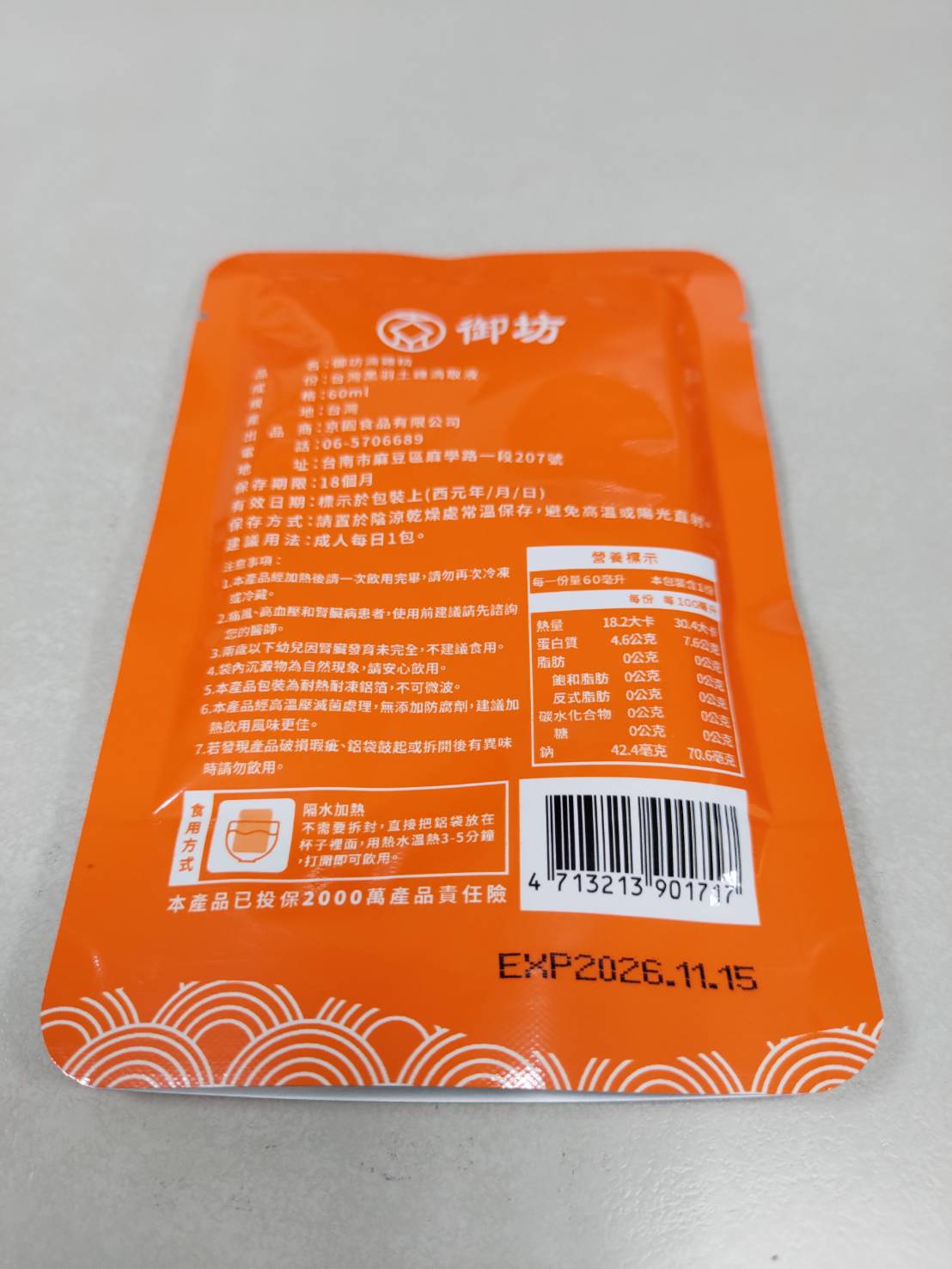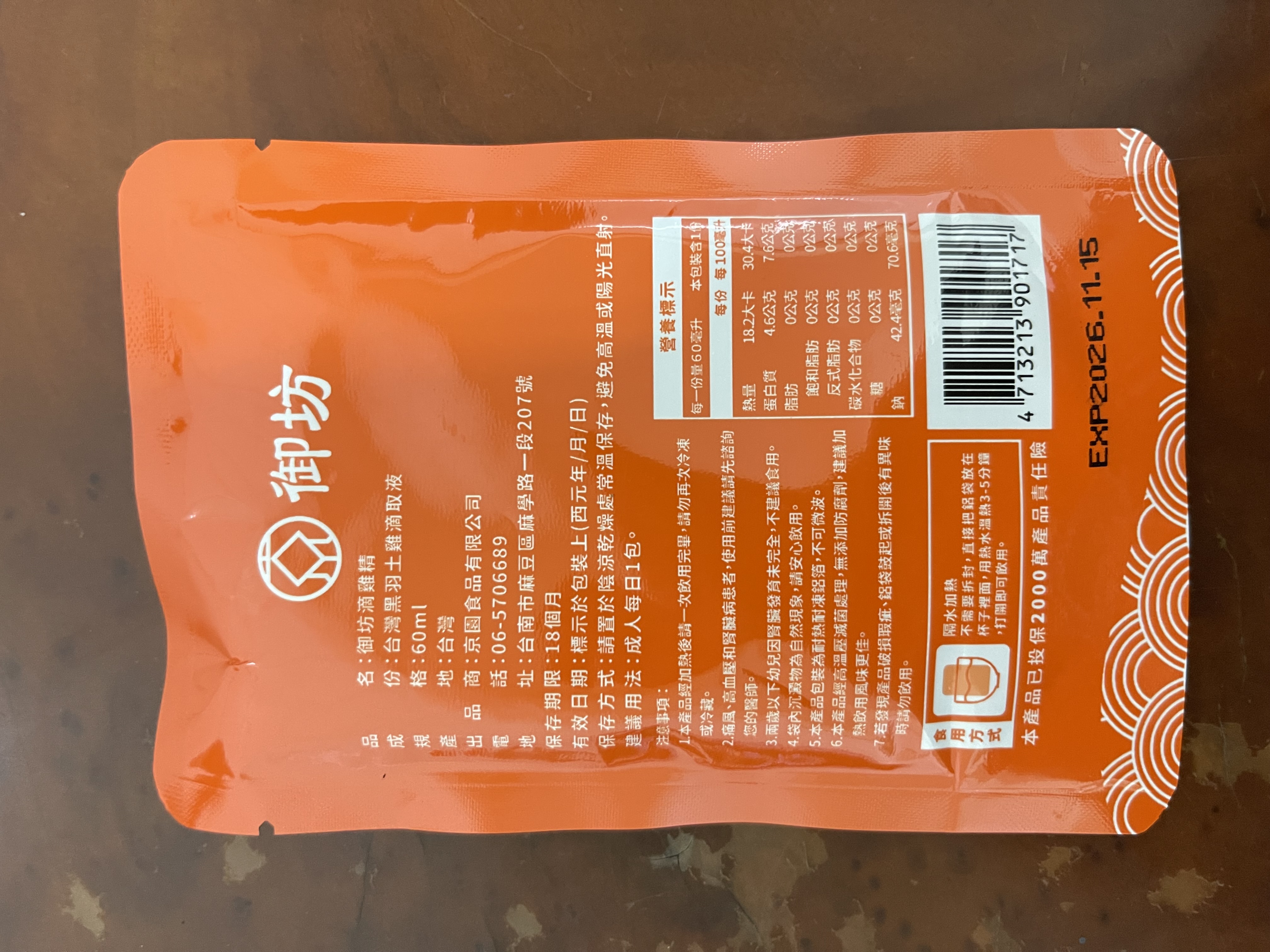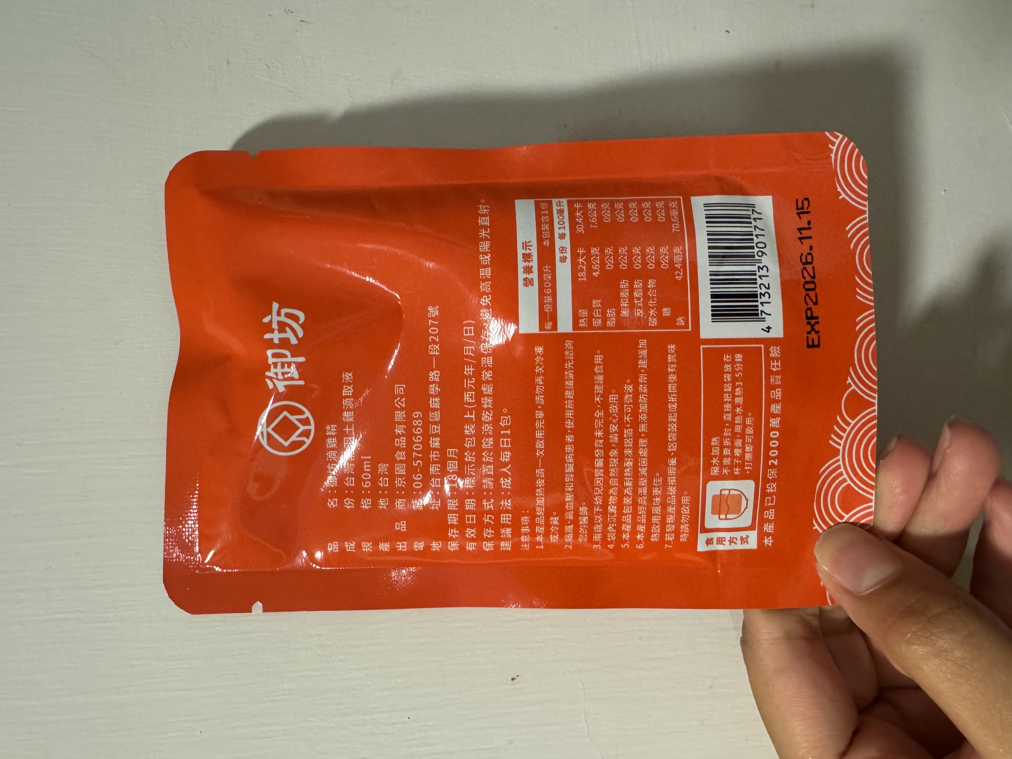 回列表 御坊 亞麻籽土雞滴雞精 滴滴精粹,每日元氣補給 市價130元 (免費申請) 所需等級 一般會員以上 所需學分 50 體驗份數 15 關注人數 990 申請人數 177 申請截止 品牌業者:京園食品有限公司 負責廠商 京園食品有限公司 廠商地址 台南市麻豆區埤頭里麻學路一段207號 產地 台灣 試用產品規格 60毫升*1包 食品業者登錄字號 D145897261-00000-3 投保產品責任險字號 第一產物保險1017字第10PR000629號 心得分享 商品介紹 商品成分 使用方法 注意事項 體驗名單 8.9 御坊 亞麻籽土雞滴雞精 風味濃醇順口 9.1 包裝設計便利 9.1 補充營養效果 8.5 無腥味接受度高 9.1 建議推薦 8.7 心得分享 15則 王美玉 金食達人 51歲 臺南市 2025/08/22 對御坊 亞麻籽土雞滴雞精留下評價 9 很開心能被抽中試飲御坊亞麻籽土雞滴雞精,此商品是選用高營養的亞麻籽為主食的紅羽、黑羽土雞,全雞碎骨切塊在特製陶甕恆溫滴淬12小時,全程不加一滴水,不加任何調味料,零添加物,保留雞汁原汁原味,濃縮出滴滴精粹的高營養價值的胺基酸,而且零脂肪、零膽固醇,熱量低又無負擔,又是小分子胺基酸、胜肽,很好吸收。 將整包放進100度c熱水中約3-5分鐘,剪開鋁袋即可食用,聞起來沒有腥味,喝起來有土雞的鮮美,味道純淨清爽回甘,鹹度適中很好喝。 非常適合體質虛弱想要補充元氣,或銀髮族的營養補給,一天一包簡單又方便。 Heidy 鑽石達人 38歲 新北市 2025/08/23 對御坊 亞麻籽土雞滴雞精留下評價 10 平常就偶爾會自己煮雞湯來喝補元氣,這次剛好很幸運抽中了 御坊 亞麻籽土雞滴雞精 的試用品,一打開包裝就聞到濃郁卻清爽的香氣,讓人很期待第一口的感覺。這次自己加點枸杞,入口的瞬間,真的有驚豔到!它的口感非常順口,完全不油膩,也沒有一般滴雞精有時會出現的腥味或苦味。反而是淡淡的甘甜,溫潤醇厚,喝下去喉嚨很舒服,還會回甘。口中沒有負擔感,反而讓人覺得像在喝一碗細火慢熬的精華湯品,很溫暖。御坊使用亞麻籽飼養的土雞,肉質本身比較清爽,搭配低溫滴煉的方式,難怪能保留這麼純淨又細緻的風味。喝完一包,身體暖暖的,精神也提振不少。這次的試喝體驗真的很不錯,讓我對御坊的印象大加分!之後有機會一定會回購,也推薦給跟我一樣注重口感、又想補氣養身的朋友試試看~ 小劉 鑽石達人 27歲 臺北市 2025/08/24 對御坊 亞麻籽土雞滴雞精留下評價 9 很開心可以試喝亞麻籽土雞滴雞精,獨立包裝適合攜帶,我用杯子裝熱水,泡在熱水裡大概3分鐘內,就可以喝了,使用上來說非常方便,很適合囤放在辦公室或給小孩帶去學校補充體力。一打開包裝是香氣十足的雞香味,沒有雞腥味或油脂味。一入口,濃郁的香氣在口腔內散開,口感非常滑順,讓人忍不住一口接一口,很快就解決一包,是個可以快速補充體力但有非常美味的滴雞精,很推薦需要補身體或容易疲勞的人可以購買,包裝是橘色也很喜慶,拿來送禮也非常適合。 李庭 金食達人 33歲 臺北市 2025/08/25 對御坊 亞麻籽土雞滴雞精留下評價 9 這次收到食力&御坊提供的"亞麻籽土雞滴雞精"試喝標題打著【每日元氣補給】真的是直接大心動呢!為什麼呢?雖然不常發生,但是偶而需要熬夜的隔天,或是身體出現疲憊的狀況,甚至是有一點點感冒徵兆的時候,都會習慣喝上一包雞精補充一下精力:) 畢竟看醫生、吃藥 真的是耗時耗神又傷身吶~這款是可以隔水加熱的產品,必須再次大推,根本是懶人福音> <味道個人覺得偏濃郁,shot掉(?)之後,整個人BUFF疊好補滿!!也不會因為是濃縮精華感覺很油或腥味喔~大力推薦給每一位辛苦的社畜!! 林怡君 金食達人 47歲 新北市 2025/08/26 對御坊 亞麻籽土雞滴雞精留下評價 8 收到產品後.覺得御坊的滴雞精以單入包裝設計,開封即飲,而且外出攜帶包包內不佔空間,十分方便。一般微波加熱,聞著帶有濃郁雞香,入口沒有多餘的腥味或油膩感。覺得口感比一般滴雞精更為清爽順口,飲用完有淡淡甘甜。早上空腹喝下去能快速暖胃,精神比較快恢復清醒。若是工作疲勞,午後補充一包,也會比飲用咖啡更持久飲用後應可減少疲倦感,不會太油重,腸胃接受度高。滴雞精適合上班族、熬夜族、孕期或產後調養者。送禮也都很方便。御坊亞麻籽土雞滴雞精是一款值得持續飲用的健康補品。我認為缺點是試用品僅一包.有點可惜。 Gloria 鑽石達人 45歲 嘉義市 2025/08/26 對御坊 亞麻籽土雞滴雞精留下評價 9 御坊亞麻籽土雞滴雞精,成分很簡單就是台灣黑羽土雞滴取液,食用方式很方便,就像市面上大多數的滴雞精,只要隔水加熱3~5分鐘,打開就可以飲用。喝起來味道香醇、濃郁又順口、不會過鹹、喝完嘴巴也不會覺得很黏膩;我試喝過幾款市售滴雞精,這款算是中上等級,我家小朋友也覺得好喝,所以一定是大家都可接受的口感。包裝使用橘色搭配金色的設計,兩種都是很有精神的顏色,每天從這包滴雞精作開頭,就覺得一整天都元氣滿滿👍 陳柔 鑽石達人 33歲 新北市 2025/08/27 對御坊 亞麻籽土雞滴雞精留下評價 10 御坊滴雞精鋁袋,真的是出乎意料的好喝!一直對滴雞精都有一種特定的印象,打開包裝就能聞到淡淡的香味,喝起來完全沒有腥味!讓人印象深刻!湯色清澈明亮,看起來很純淨,沒有雜質,比起之前喝過的滴雞精,這款真的完全沒有那種讓人不舒服的味道,真是令人驚艷。喝下去的時候能感受到淡淡的甜味,回甘又順口,裡面滿滿的膠質讓口感有點
