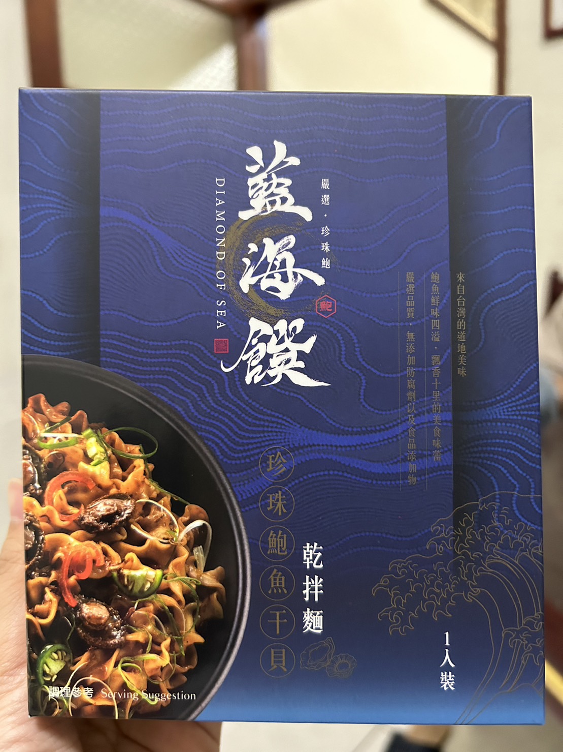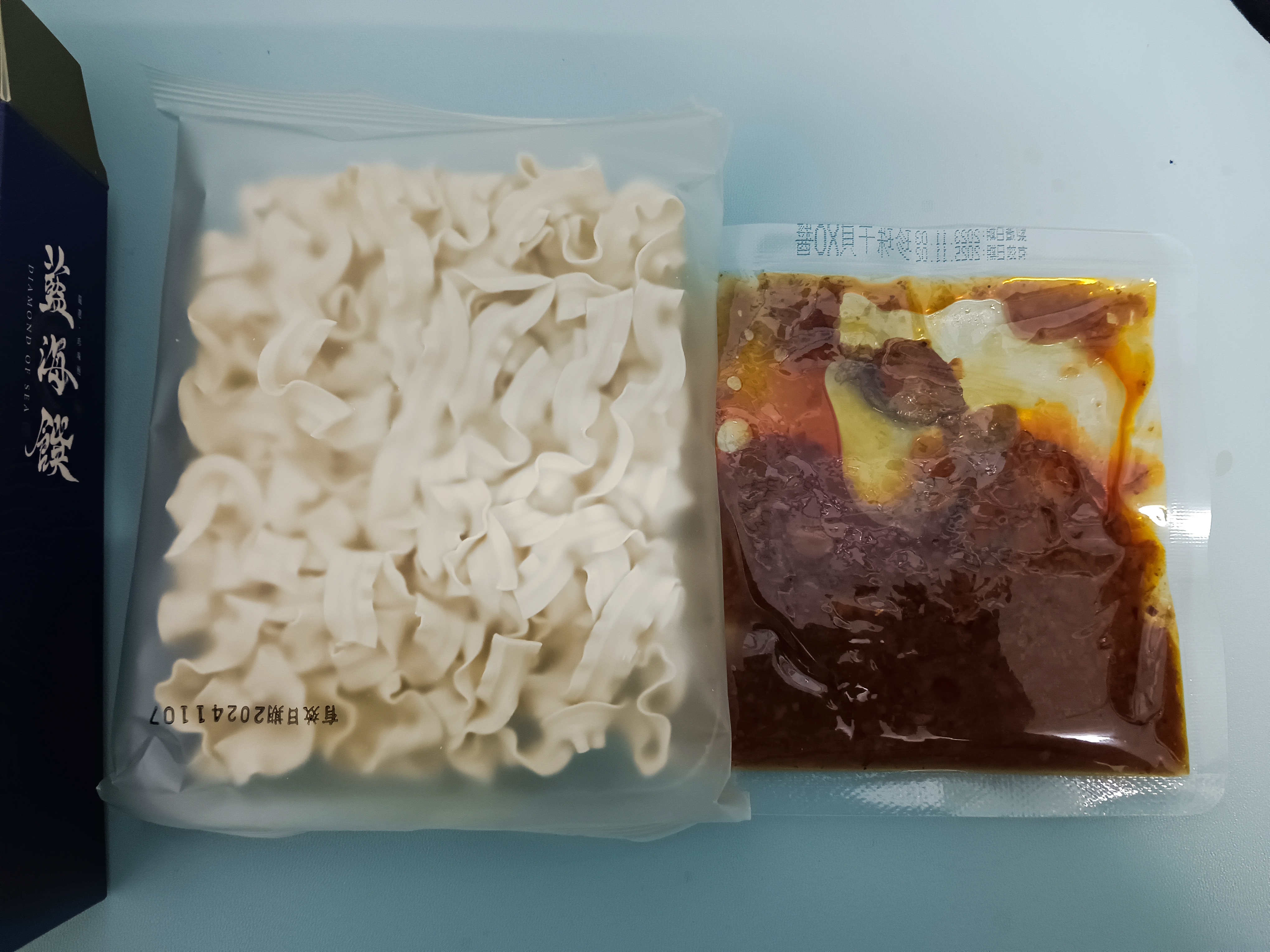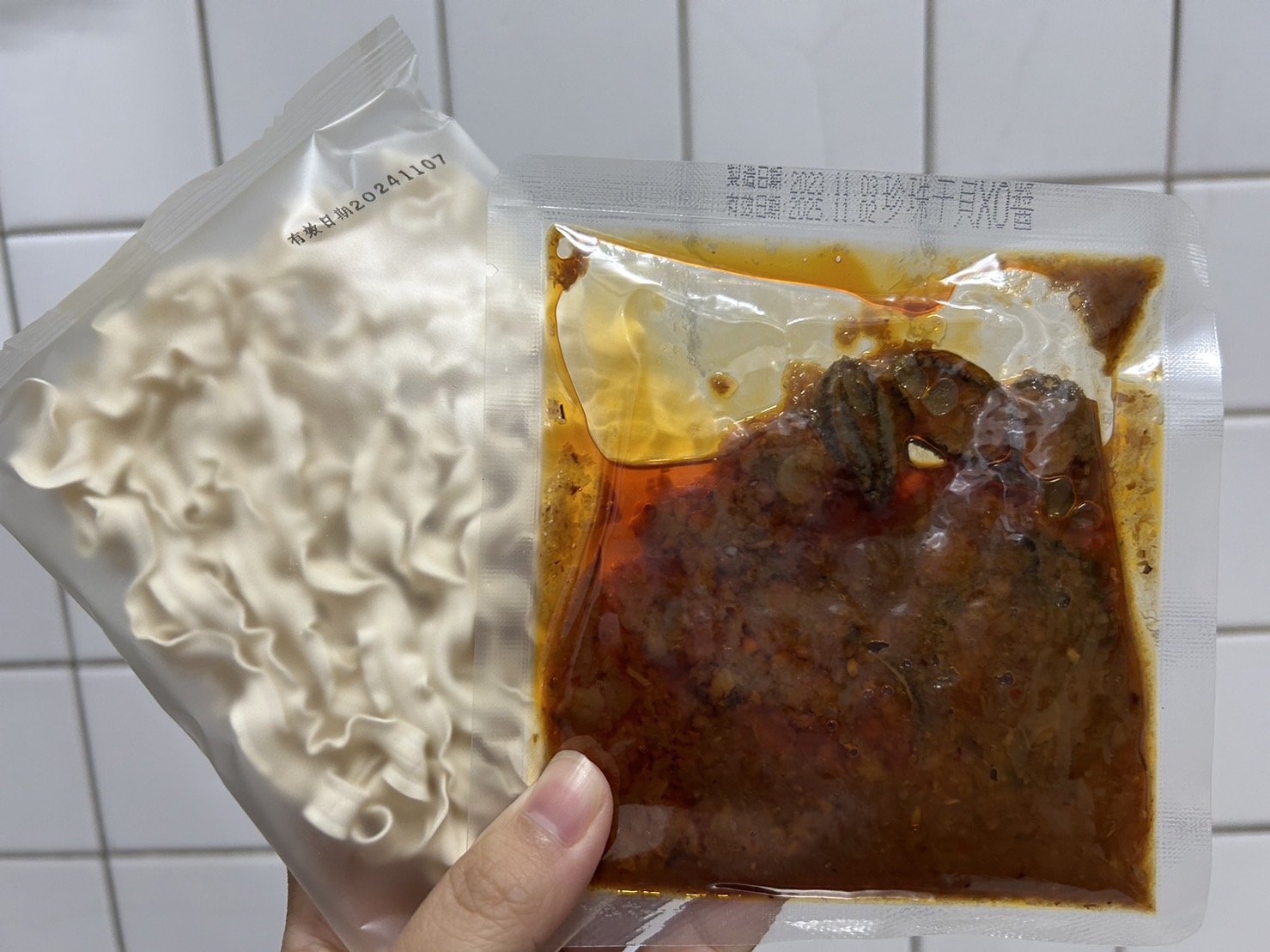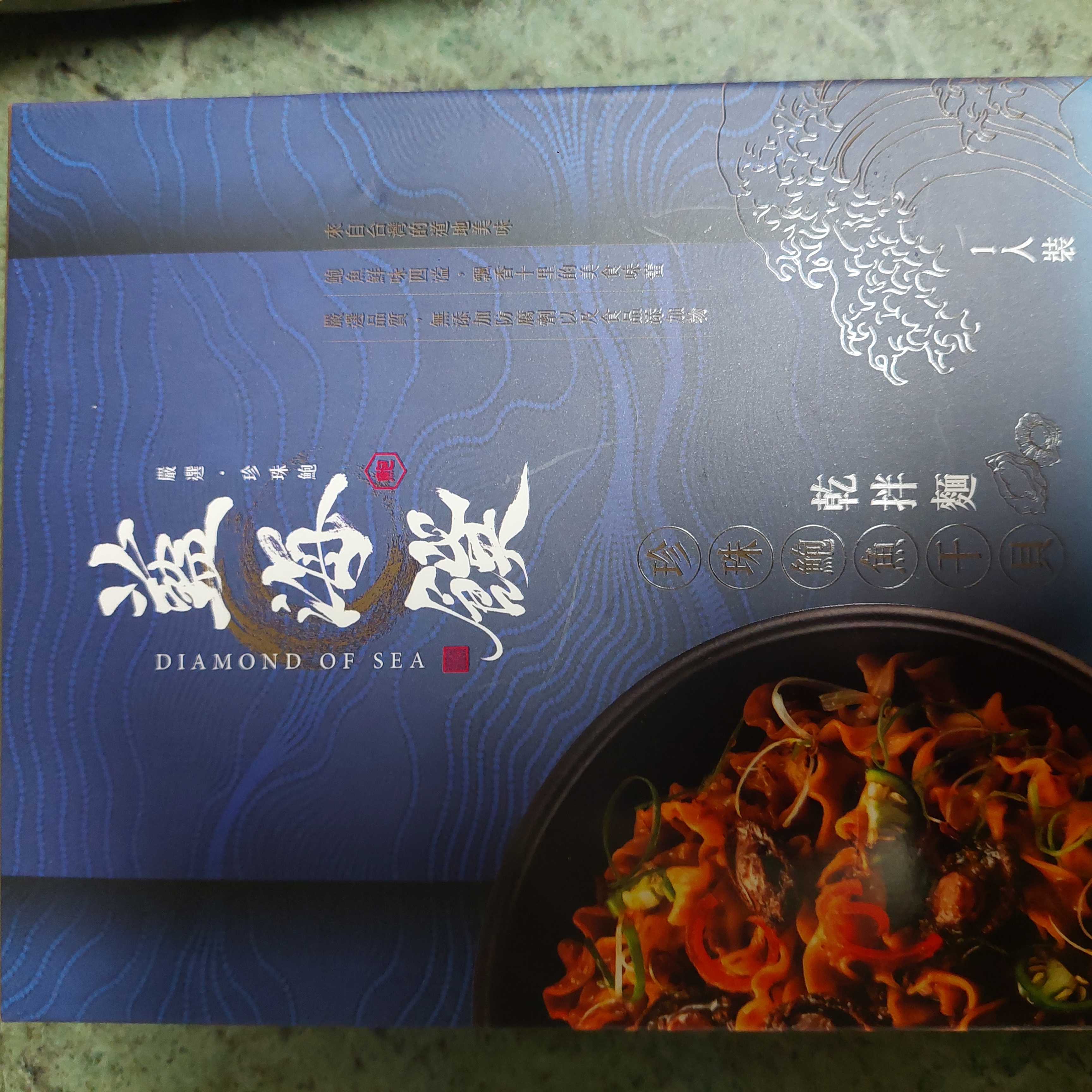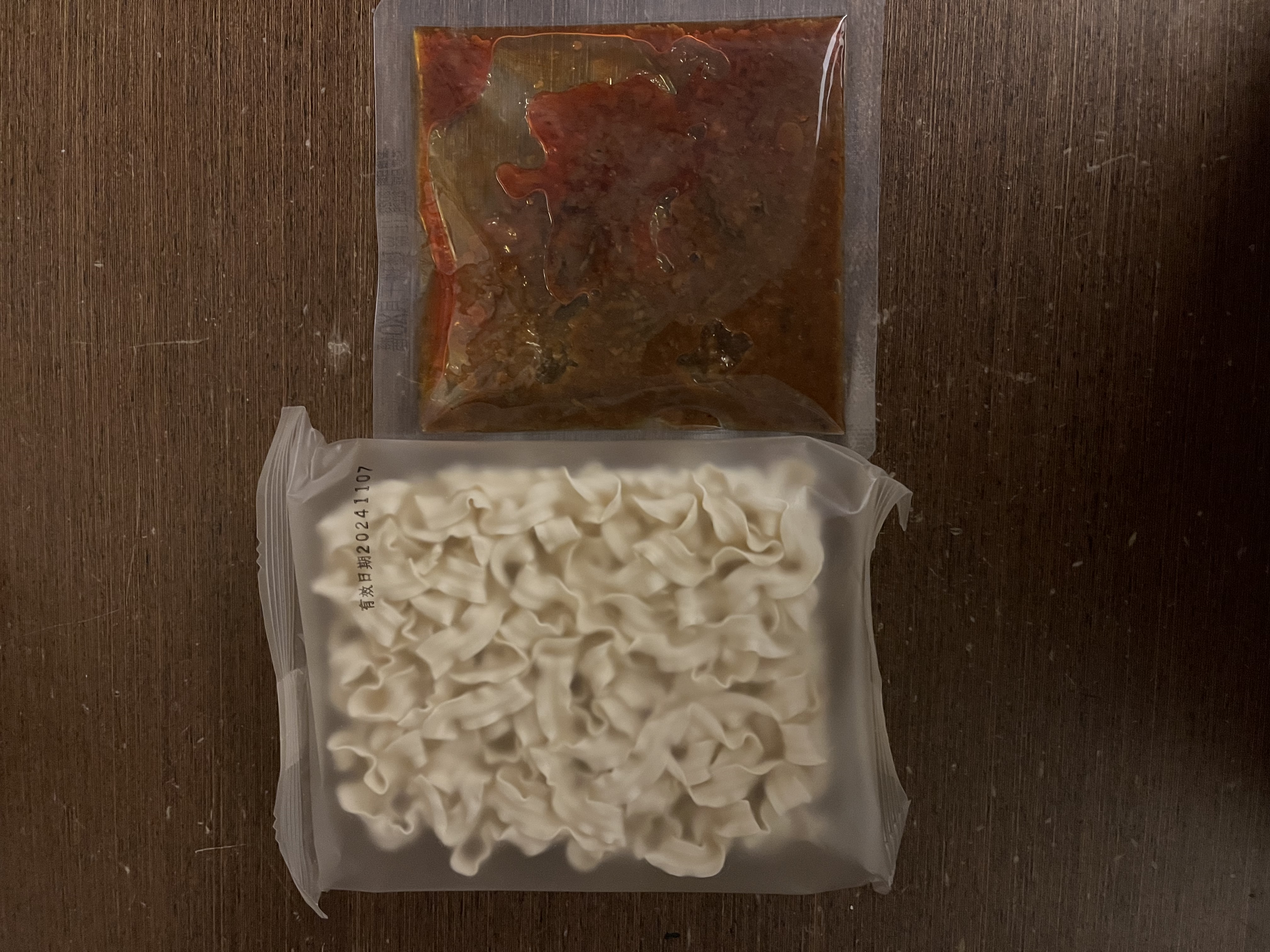 醬包:鮑魚、沙拉油、油蔥酥(紅蔥頭、棕櫚油、麥麩酥、玉米澱粉)、蒜頭、小魚乾、櫻花蝦、蠔油(蠔汁、糖、水、L-麩酸鈉、鹽、黏稠劑、小麥粉、焦糖色素)、黑麻油、米酒(米、精製食用酒精)、珠貝、冰糖、醬油(釀造生醬油(水、非基因改造脫脂黃豆片(原料來源非基因改造黃豆)、小麥、食鹽)、非基因改造脫脂黃豆片胺基酸液、水、轉化液糖(蔗糖、水)、食鹽、著色劑(焦糖色素)、調味劑(DL-蘋果酸)、酵母抽出物、紅麴色素(含酒精)、甜味劑(甘草萃(含糊精、檸檬酸鈉))、麻辣紅油(大豆油、芝麻油、花椒油、辣椒萃取物)、薑、朝天椒、豆瓣醬(水、砂糖、非基因改造黃豆、辣椒、食鹽、純釀造醋)、鮑魚萃取物、干貝萃取物、味精(L-麩酸鈉)、柴魚粉(調味劑(5'-次黃嘌呤核磷酸二鈉、琥珀酸二鈉)、食鹽、乳糖、砂糖、乾燻鰹魚、鰹魚抽出物、酵母抽出物)、麻辣醬(辣椒、大豆沙拉油、豆鼓、鹽、冰糖、素食湯粉(鹽、葡萄糖、素肉精粉、L-麩酸鈉、糖、5'-次黃嘌呤核磷酸二鈉、5'-鳥嘌呤核甘磷酸二鈉、胺基乙酸、DL-胺基丙酸、二氧化矽、檸檬酸)、花椒、八角、桂皮)、水煮醬(大豆油、辣椒、黑豆瓣醬(非基改)、辣椒粉、花椒粉、香油、芝麻、豆鼓、醬油、八角、鹽、米酒、薑、蒜、糖、鮮蔬調味粉(麥芽糊精、鹽、糖、酵母萃取物、高麗菜抽出物、水解植物蛋白、香菇萃取物)、L-麩酸鈉、辣椒抽出物)