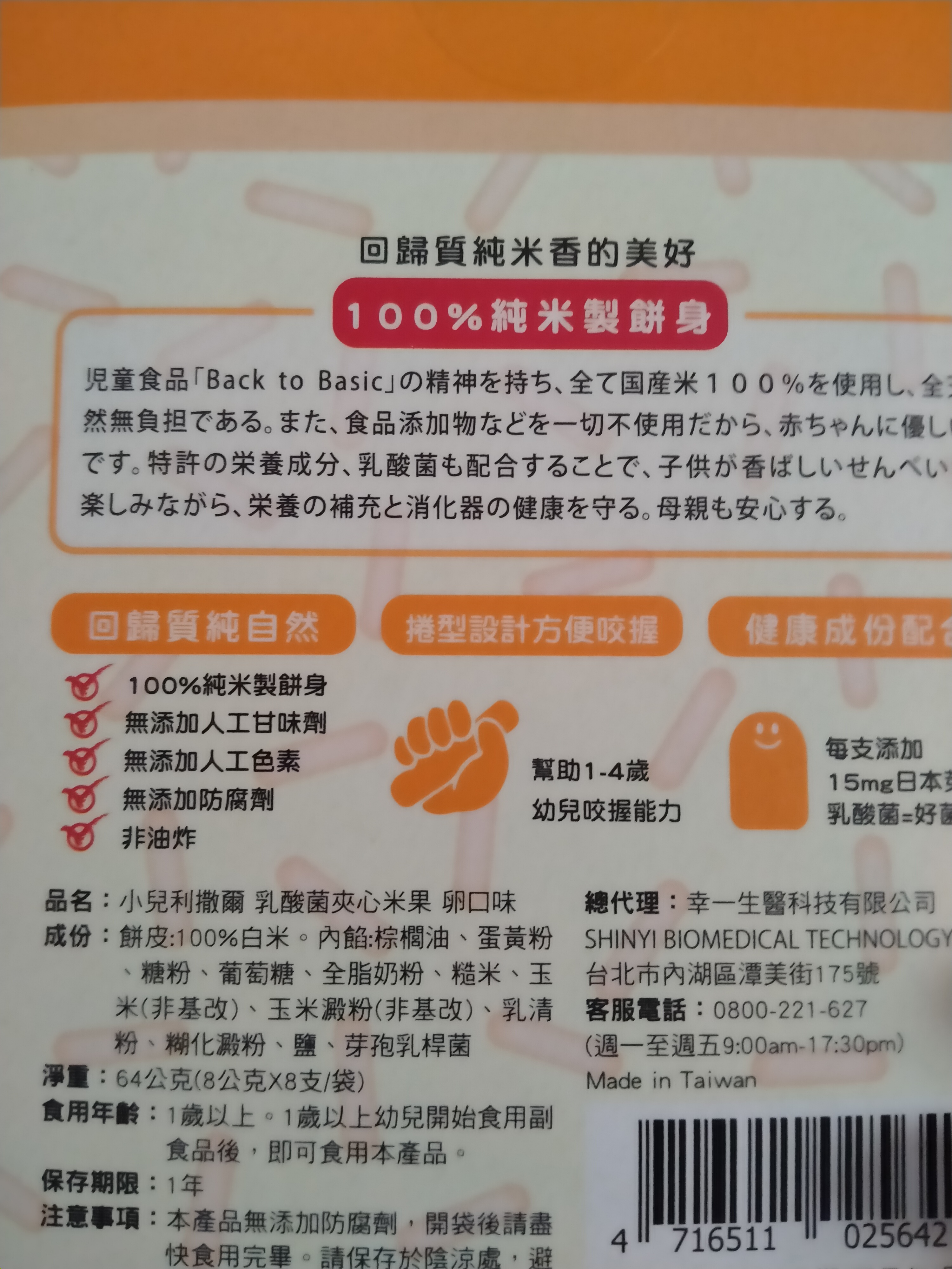 | 產品規格 | 64公克(8公克x8支) |