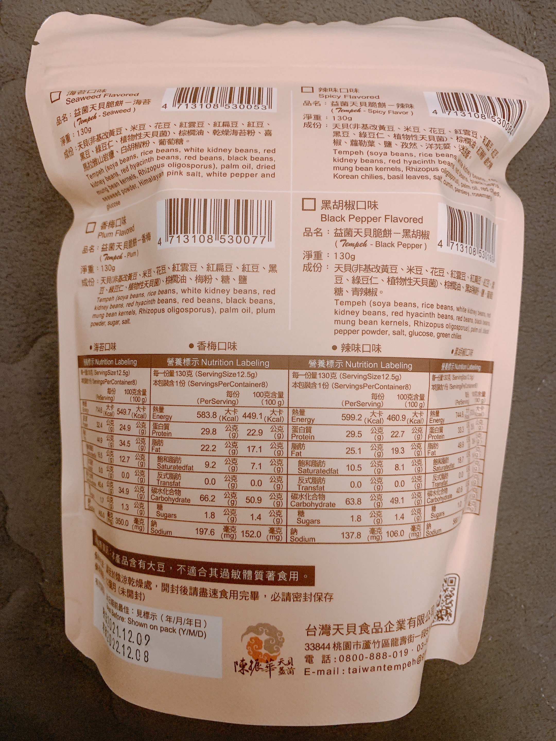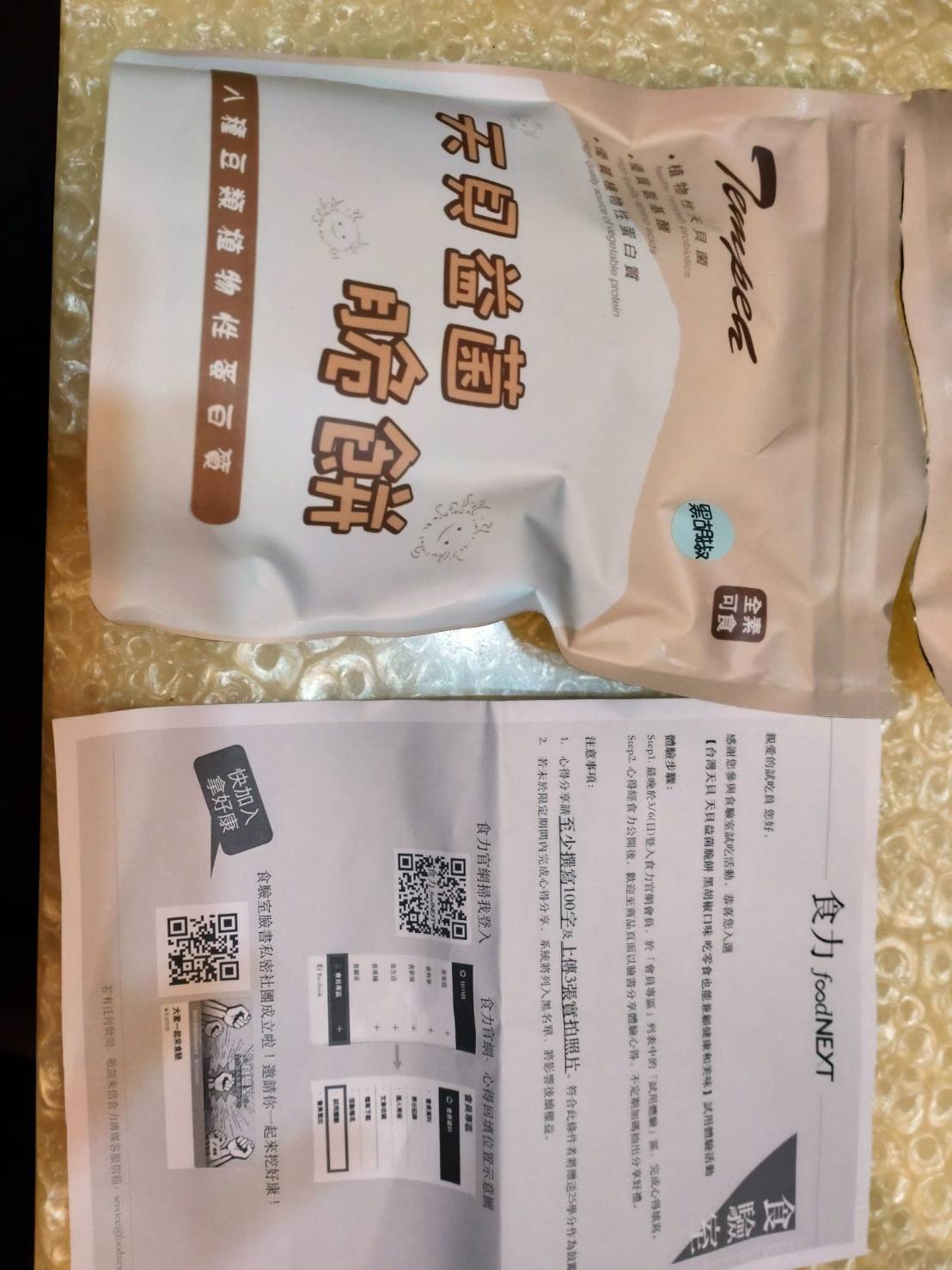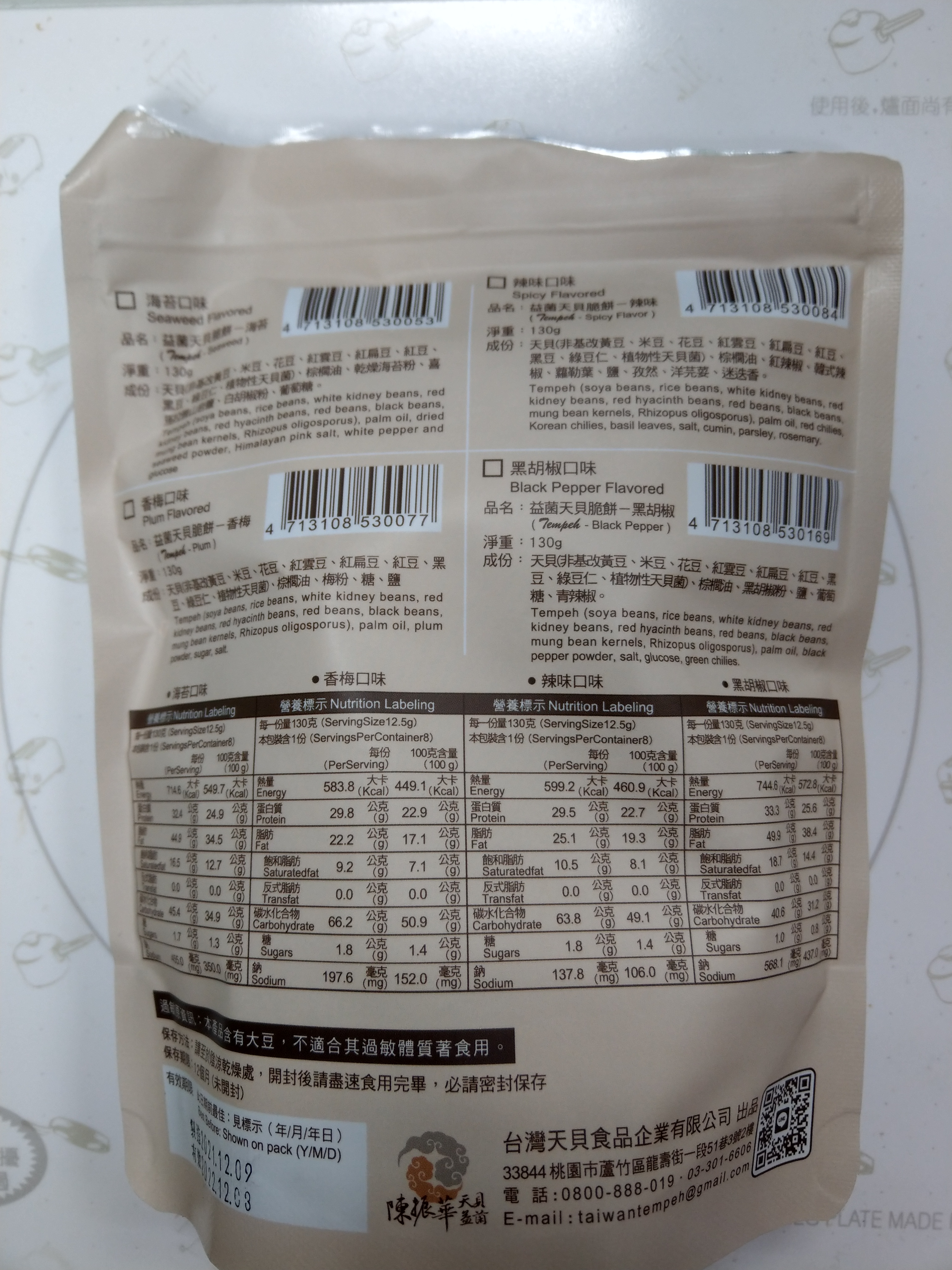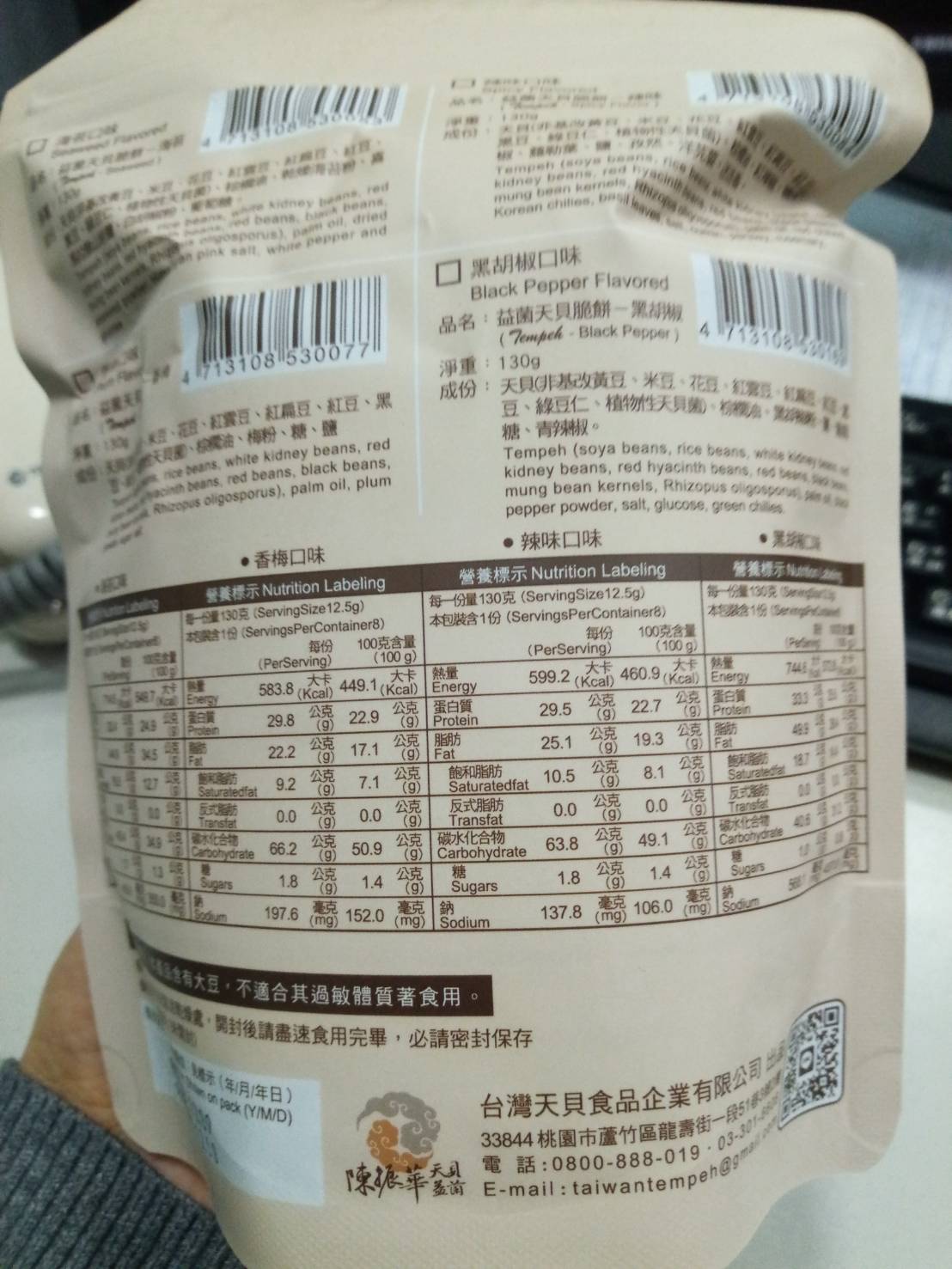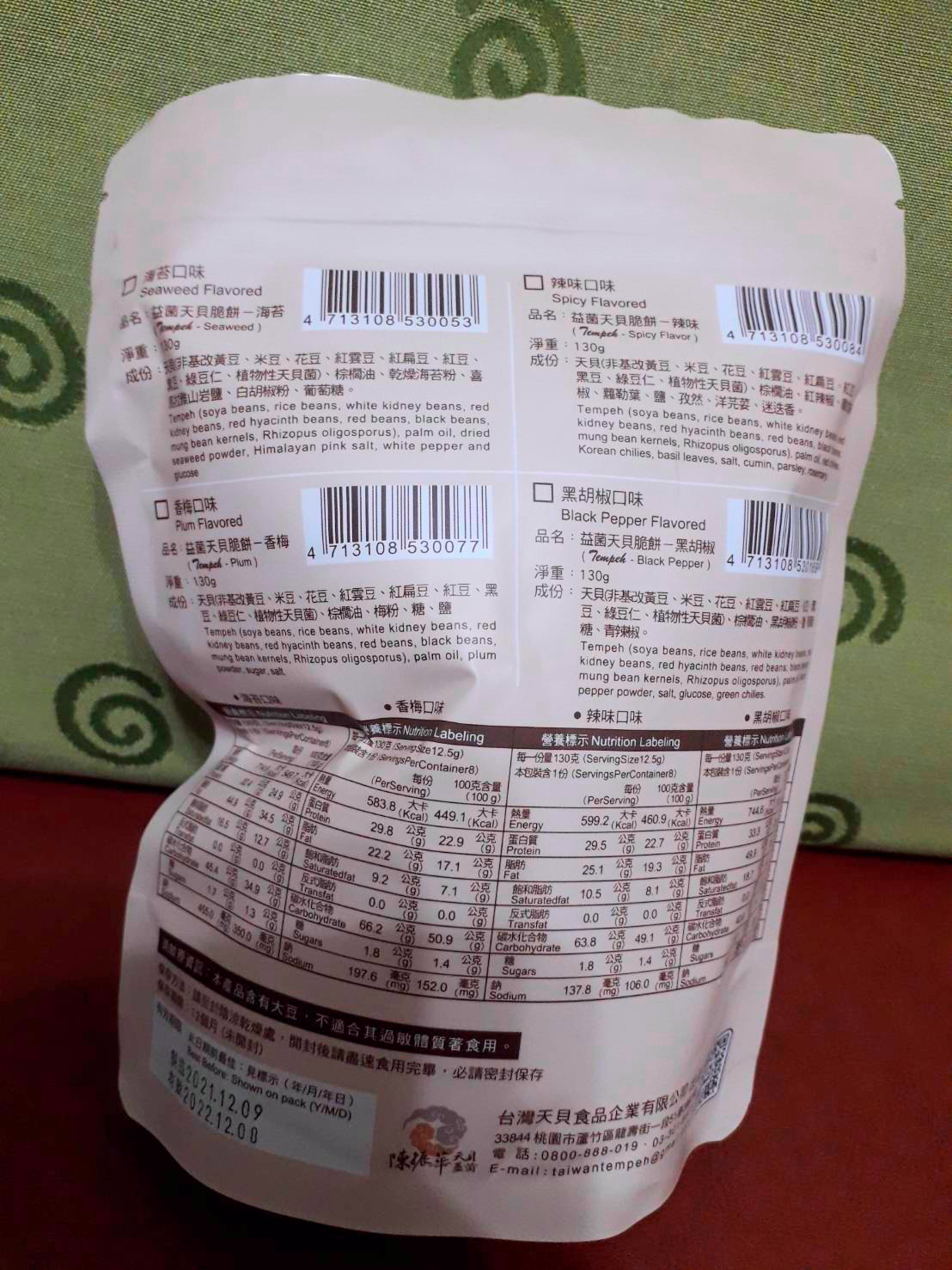 回列表 台灣天貝 天貝益菌脆餅 黑胡椒口味 吃零食也能兼顧健康和美味 所需等級 一般會員以上 所需學分 50 體驗份數 15 關注人數 1374 申請人數 317 申請截止 品牌業者:台灣天貝食品 負責廠商 台灣天貝食品企業有限公司 廠商地址 桃園市蘆竹區中福里龍壽街一段51巷3號 產地 台灣 試用產品規格 150公克/袋 食品業者登錄字號 H-153298971-00001-0 心得分享 商品介紹 商品成分 使用方法 注意事項 體驗名單 7.5 台灣天貝 天貝益菌脆餅 黑胡椒口味 包裝美學 8.1 口感香脆 8.1 椒鹽風味 7.6 唰嘴程度 6.9 建議推薦 7.4 心得分享 14則 tuogo 金食達人 46歲 臺北市 2022/02/28 對台灣天貝 天貝益菌脆餅 黑胡椒口味留下評價 8 「天貝」是近年蔬食很紅的食材,曾經在蔬食餐廳吃過用煎的天貝,對於沒有一般素食的豆臭味感到印象深刻,這次透過食驗室才知道有天貝做的零食,在試吃前就感到相當好奇。一般天貝由黃豆製成,此商品由八種豆類綜合製作,非常特別,咬下去之後從切面可以看到一顆顆豆類擠壓組合而成。產品為一口的大小,方便食用,此次試吃的是黑胡椒口味,原本擔心會很重鹹,但試吃後覺得調味很剛好,但也因為有調味,所以天貝原始的味道比較吃不出來。入口的口感相當酥脆,適合配茶或當下酒小點心,非常唰嘴。從成分表看起來除了天貝和調味料、沒有其他人工添加物,感覺很天然。以外包裝來說,夾鏈設計讓產品好保存是很值得肯定的部分,不過設計上沒有辨識度,僅有品名而沒有實際商品照,對於天貝的特色也沒有特別描述,對於商品溝通的效果會打折,放在一般賣場上可能難以突出。 賴思安 金食達人 33歲 臺北市 2022/03/01 對台灣天貝 天貝益菌脆餅 黑胡椒口味留下評價 9 這次很榮幸試吃到台灣天貝食品企業有限公司的零食,因為自己本身有健身習慣,所以吃下去的東西特別注重,這款零食既健康又沒負擔,看了一下一包蛋白質含量也有29克左右,相較於其他餅乾高出很多,這款天貝由八種豆類:包含花豆、紅豆、黑豆、黃豆、米豆、紅雲豆、紅扁豆、綠豆仁,其中最特別的成分是植物性天貝菌,在吃得當下也顧及我們腸胃的健康,很適合拿出來和同事分享,而且超有飽足感的,我下午就嘗試自己去自助餐夾菜(不買飯),配一些天貝,直接飽到下班。上網查了一下,原來天貝是源自於印尼,大部分都是由黃豆製成,我們試吃的這款含有8種豆類,營養價值相較來說又更高了,而且口感很好,酥脆又有胡椒的香味,很解饞,但我覺得偏乾,可以順勢多喝水,補充一天的水量,總之是一款很推的營養零食。 吳庭瑤 金食達人 40歲 新竹市 2022/02/27 對台灣天貝 天貝益菌脆餅 黑胡椒口味留下評價 8 第一次吃全素的餅乾就獻給天貝益菌脆餅,其實一直不知道天貝是什麼,原來是黃豆發酵完成後凝結物,但是這款天貝益菌脆餅可是集結了八種豆類而且還是非油炸的,天貝益菌脆餅其實出了很多種口味,這次來吃的是黑胡椒口味。一打開就能聞到撲鼻而來的胡椒香氣,吃起來有帶點中藥研磨成的胡椒香氣,口味為鹹但完全不辣喔!不知道為什麼我的錯覺這胡椒似乎帶了一點酒味,但明明是不含酒啊!天貝益菌脆餅的口感微脆但不硬、脆餅每片都包裹滿滿的黑胡椒香料,每一片也都做成一口的大小,對於吃素的朋友想來點零食,天貝益菌脆餅蠻適合的!說實在吃起來真的不太像全素的餅乾,口味是足的但不會過重,而且也不會吃起來很口渴,第一次吃全素餅乾雖然一開始不習慣,不過整體蠻不錯吃喔! Athena Chen 鑽石達人 52歲 臺中市 2022/02/28 對台灣天貝 天貝益菌脆餅 黑胡椒口味留下評價 7 對於家有便秘兒而言,抽到天貝益菌脆餅其實是很期待與興奮的。包裝設計素雅與標示清晰、封口位置精準,都給人好印象。食物第一眼的感覺並不好,女兒直接打槍的說盤內的餅乾就像飼料。哎呀~健康的食物沒有添加過多的添加物或色素,當然就沒有美麗的外衣。口感實在很難形容,酥脆但說不上可口,需要搭配水或牛奶才有辦法一口接一口,這應該是要改善之處,不然即便是健康的食物但孩子不願意吃也是可惜。還好是黑胡椒口味,媽媽還能繼續吃下去,真的只能說健康的食物就是有其限制之處。 邱郁文 金食達人 36歲 高雄市 2022/03/01 對台灣天貝 天貝益菌脆餅 黑胡椒口味留下評價 8 感覺是一個吃起來健康的零食,吃起來沒有像一般零食那樣好吃,但會越吃越香,而且吃完之後也不會口渴,內含8種豆類的豐富益菌,吃完之後真的有感,排泄順暢,不知道其他受試者有沒有同感😆除了黑胡椒還有其他口味,而且全素者也能吃,有機會的話也想試試香梅口味的~~~ 雅葳徐 金食達人 47歲 桃園市 2022/03/01 對台灣天貝 天貝益菌脆餅 黑胡椒口味留下評價 6 先說明,我是會去買生鮮天貝來乾煎吃的人,所以自認為對天貝是很熟悉的。我拿到的是黑胡椒口味,但黑胡椒味偏淡,還好的是不會太鹹。但是吃了好多片,吃到最後都會有苦感,澀感,不是很舒服的味道,都是最後的尾味出現這樣的感覺,很奇怪。 陳芃如 金食達人 35歲 臺南市 2022/03/02 對台灣天貝 天貝益菌脆餅 黑胡椒口味留下評價 8 包裝簡潔主打有八種豆類的植物性蛋白質成分蠻單純 沒有奇怪的化學物質 都是看得懂的原料 讓人可以安心享用吃起來比較像蠶豆那種厚實酥脆的感覺還蠻有口感的 會越嚼越香尾韻帶點淡淡的苦味 適合配茶一起享用調味不會很鹹 黑胡椒不太會辣小朋友也可接