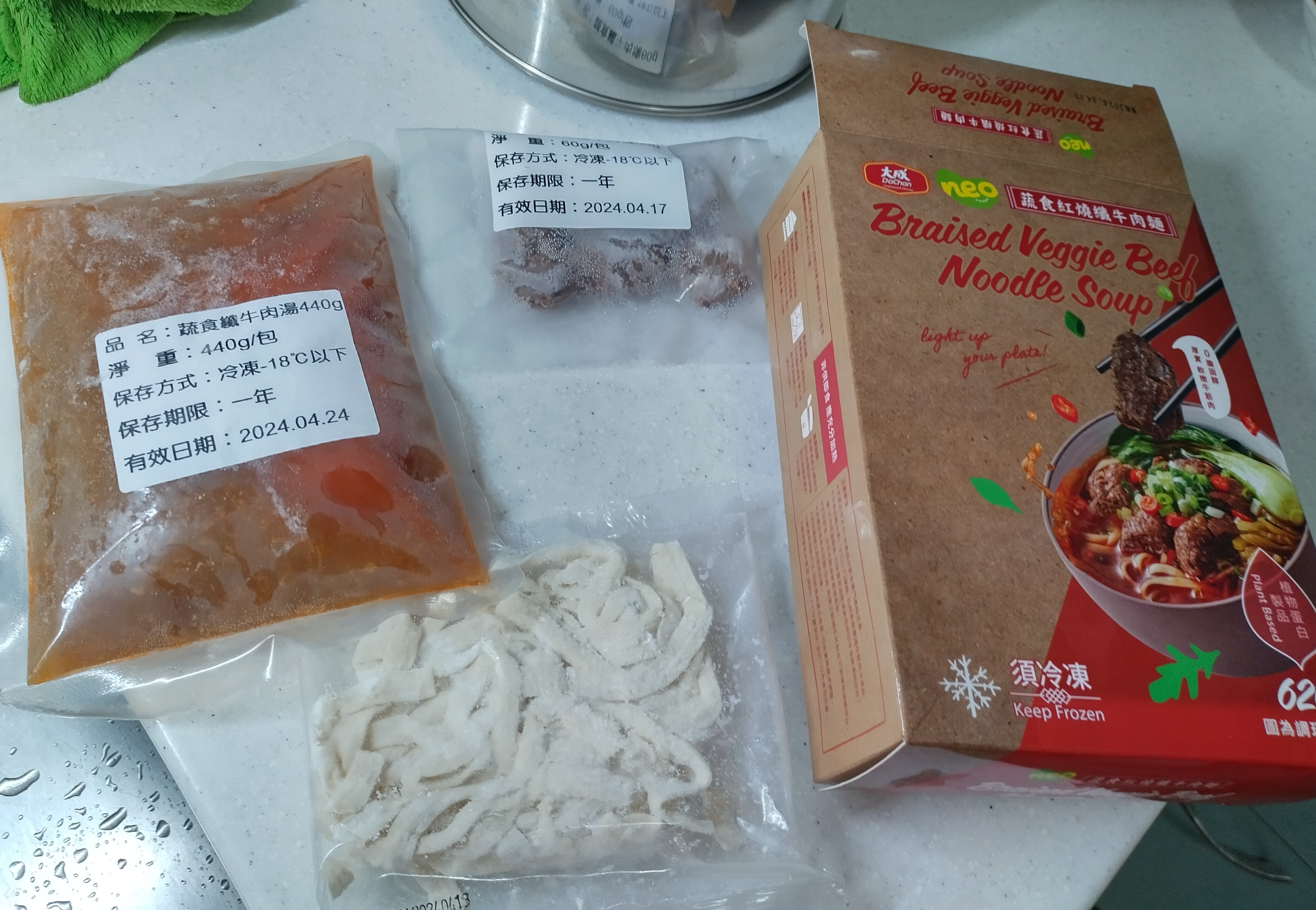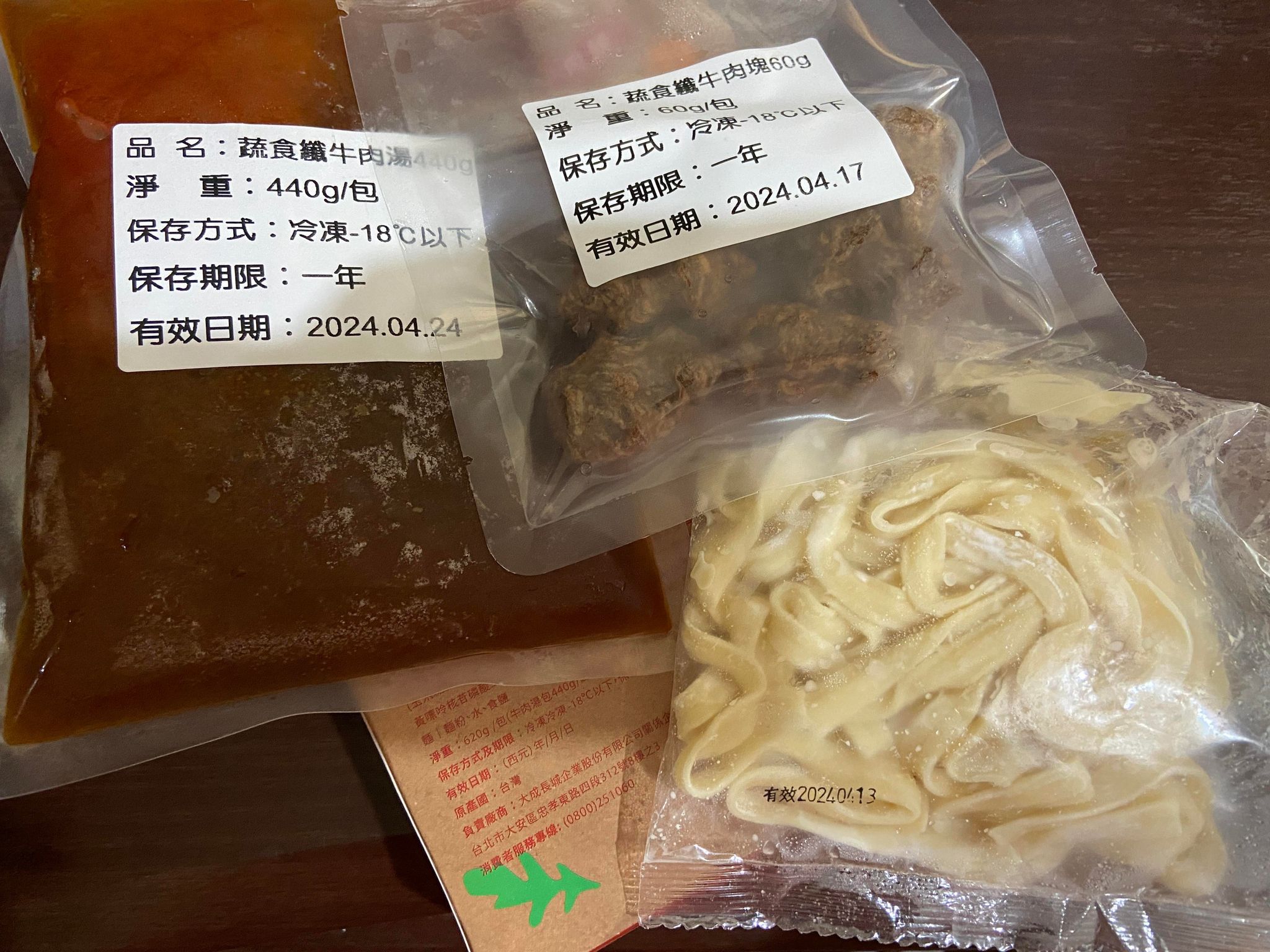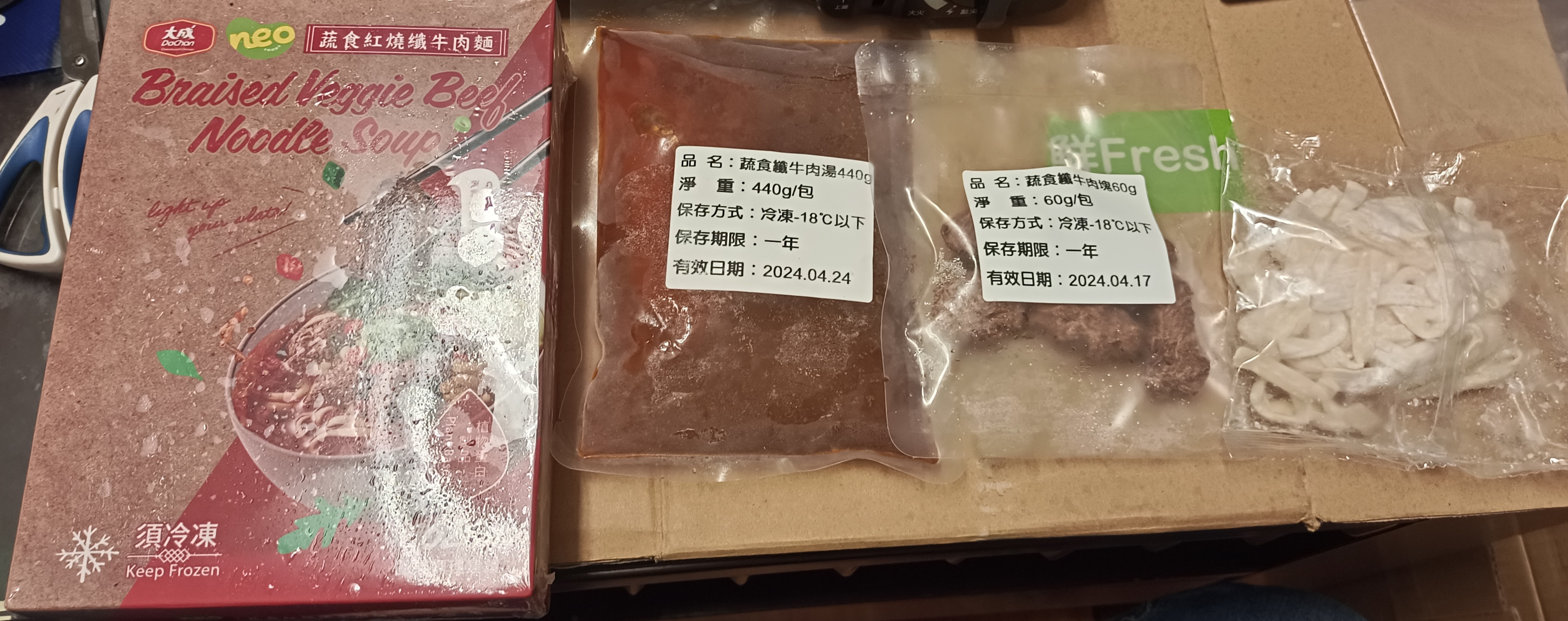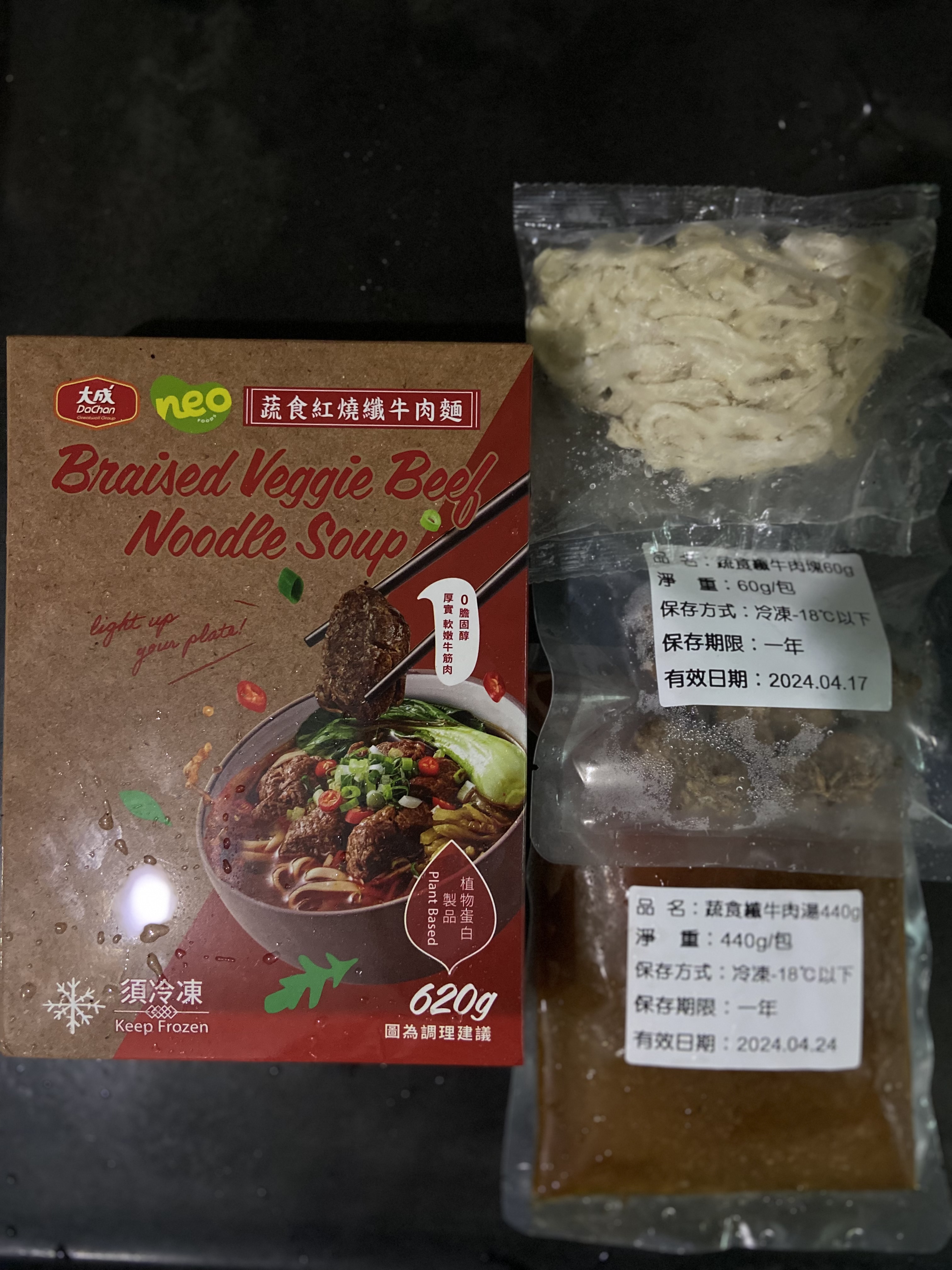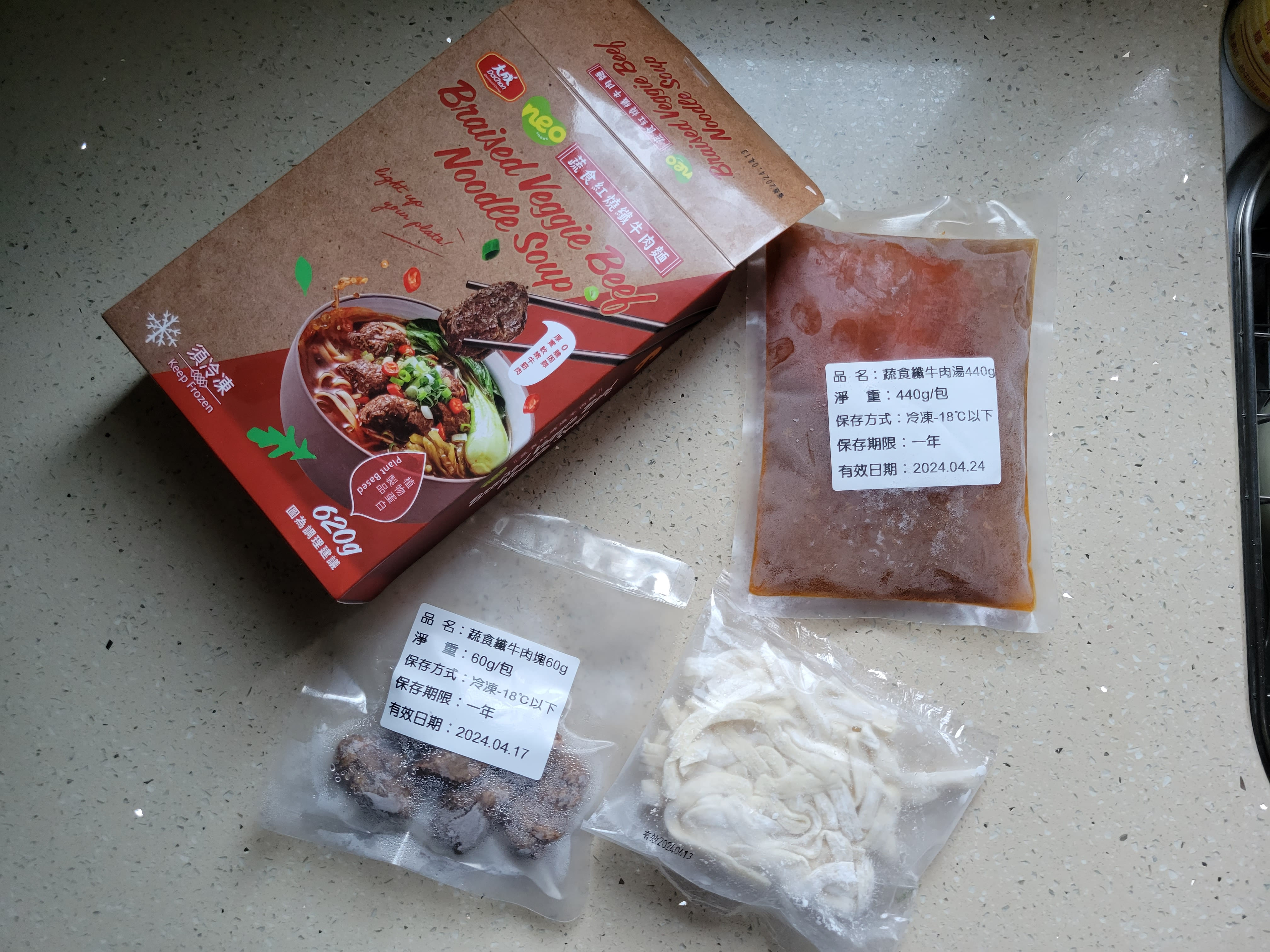 *紅燒湯:水、白蘿蔔、洋蔥、紅蘿蔔、大豆沙拉油、豆瓣醬[辣椒、水、非基因改造黃豆、鹽、蔗糖、乙醯化己二酸二澱粉、麻油、糖、三仙膠、乳酸]、釀造醬油、蒜頭、青蔥、香菇素蠔油[水、蔗糖、非基因改造黃豆(高蛋白豆片)、小麥、食鹽、黏稠劑(玉米糖膠、乙醯化己二酸二澱粉)、酵母抽出物、香菇粉]、鹽、八角、調味劑(5'-次黃嘌呤核苷磷酸二鈉、5'-鳥嘌呤核苷磷酸二鈉)、月桂葉、花椒、焦糖色素粉、白芷