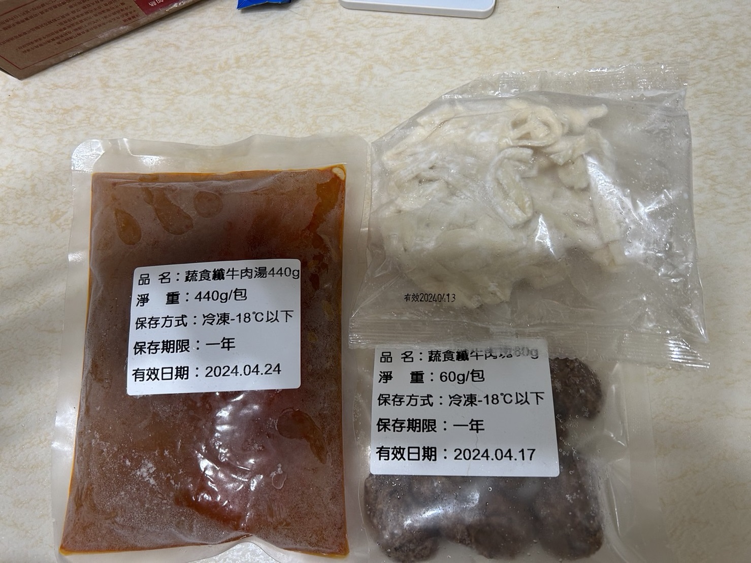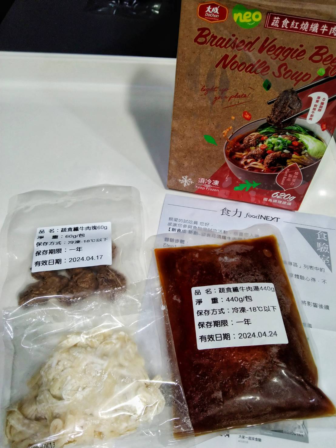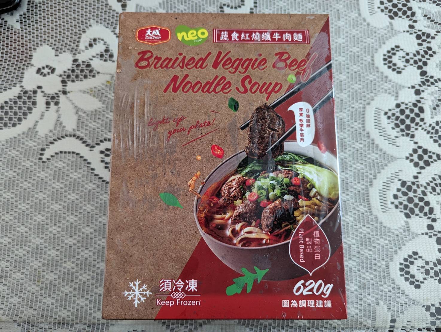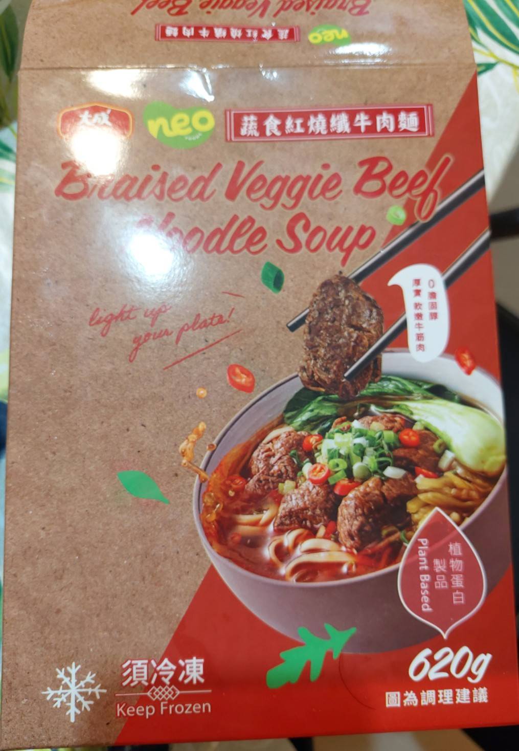 *紅燒湯:水、白蘿蔔、洋蔥、紅蘿蔔、大豆沙拉油、豆瓣醬[辣椒、水、非基因改造黃豆、鹽、蔗糖、乙醯化己二酸二澱粉、麻油、糖、三仙膠、乳酸]、釀造醬油、蒜頭、青蔥、香菇素蠔油[水、蔗糖、非基因改造黃豆(高蛋白豆片)、小麥、食鹽、黏稠劑(玉米糖膠、乙醯化己二酸二澱粉)、酵母抽出物、香菇粉]、鹽、八角、調味劑(5'-次黃嘌呤核苷磷酸二鈉、5'-鳥嘌呤核苷磷酸二鈉)、月桂葉、花椒、焦糖色素粉、白芷