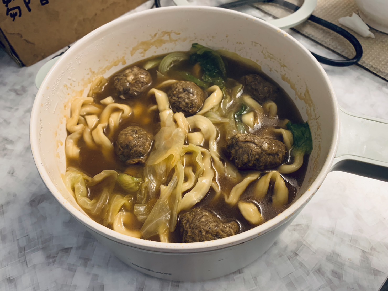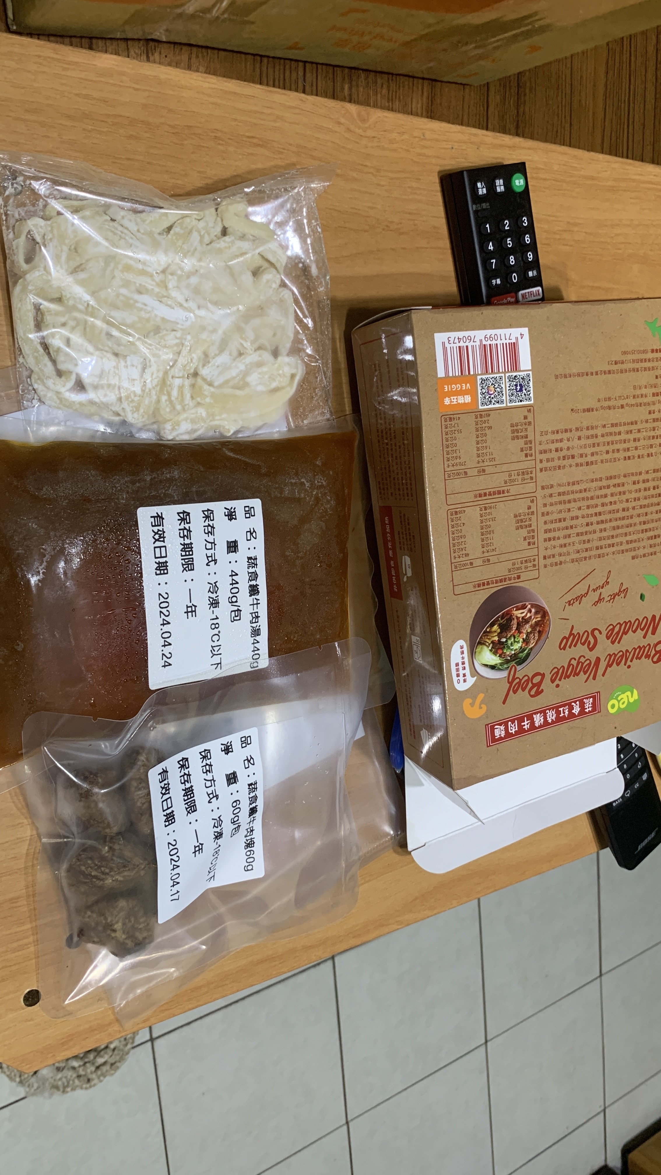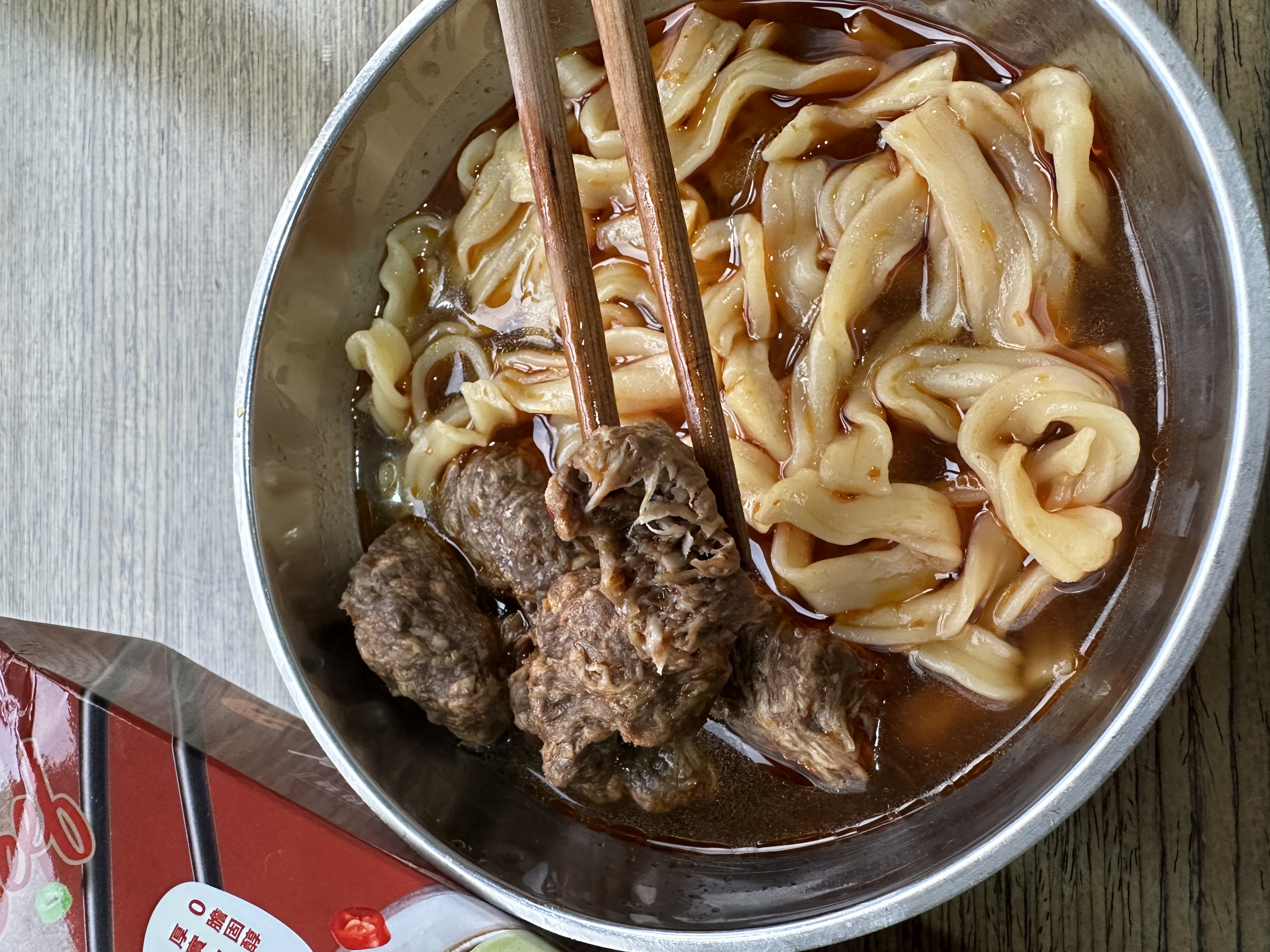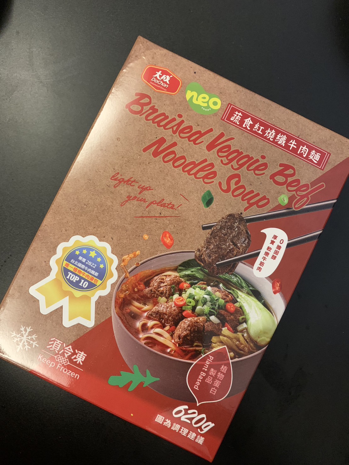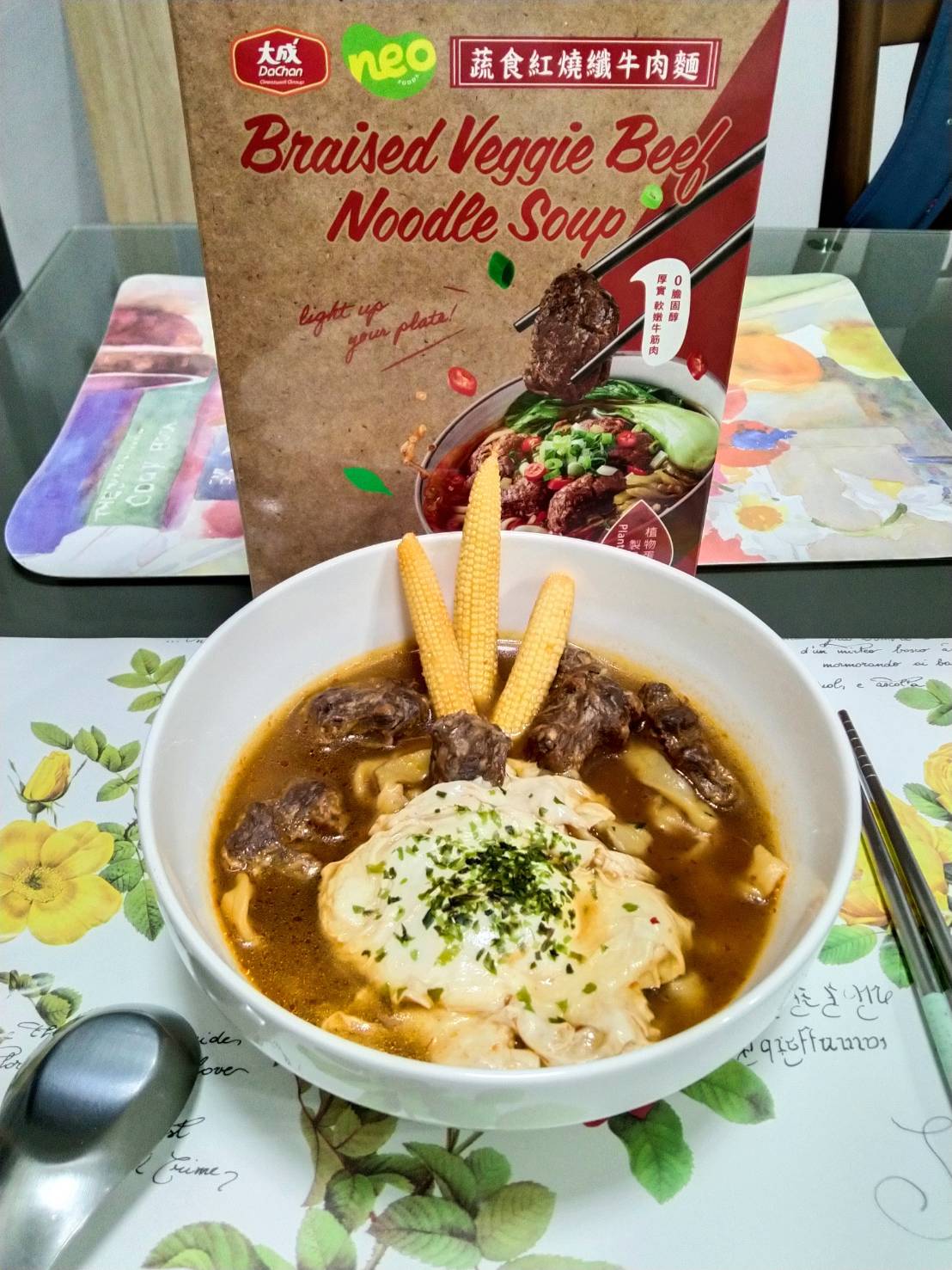 *紅燒湯:水、白蘿蔔、洋蔥、紅蘿蔔、大豆沙拉油、豆瓣醬[辣椒、水、非基因改造黃豆、鹽、蔗糖、乙醯化己二酸二澱粉、麻油、糖、三仙膠、乳酸]、釀造醬油、蒜頭、青蔥、香菇素蠔油[水、蔗糖、非基因改造黃豆(高蛋白豆片)、小麥、食鹽、黏稠劑(玉米糖膠、乙醯化己二酸二澱粉)、酵母抽出物、香菇粉]、鹽、八角、調味劑(5'-次黃嘌呤核苷磷酸二鈉、5'-鳥嘌呤核苷磷酸二鈉)、月桂葉、花椒、焦糖色素粉、白芷