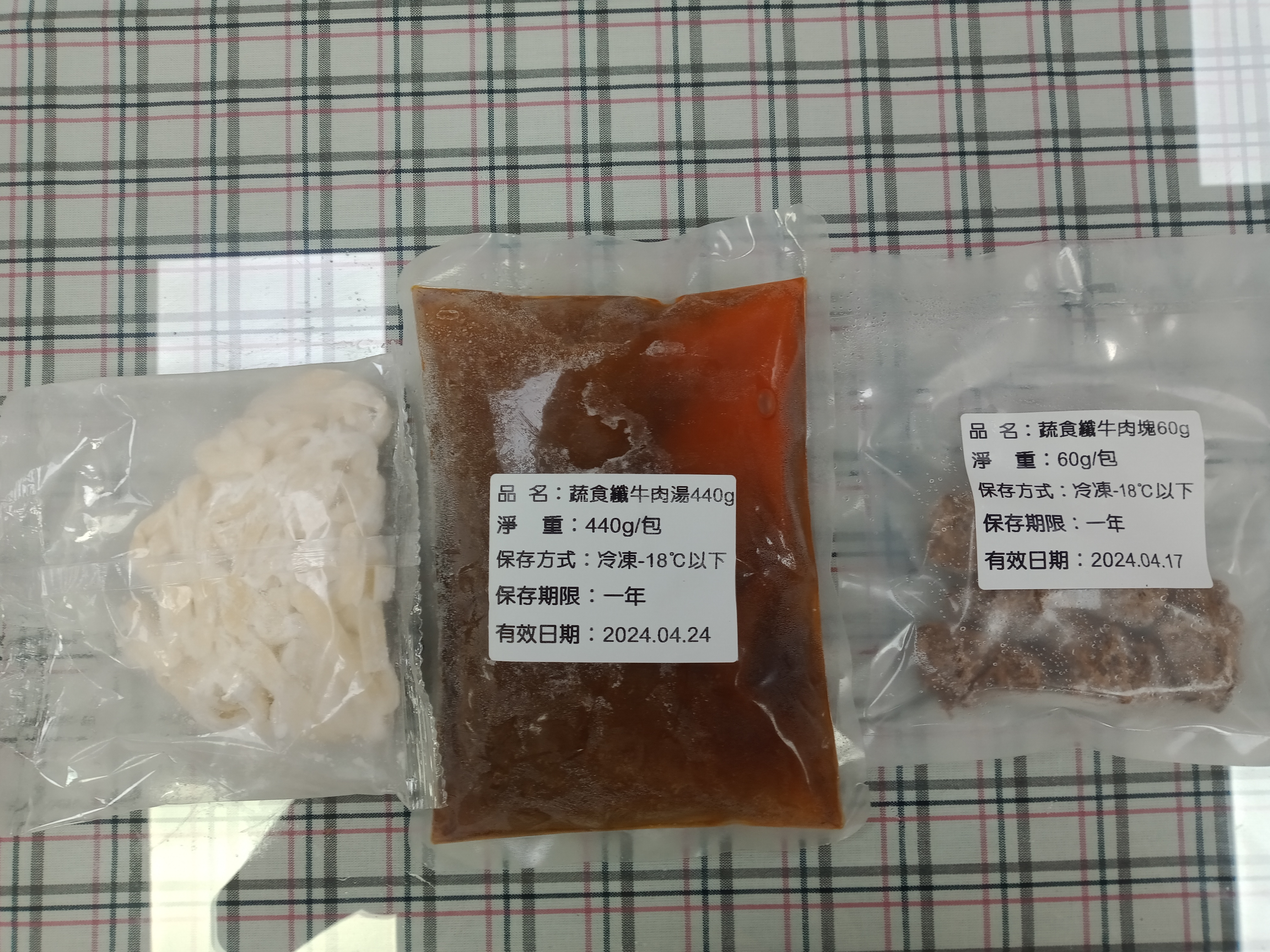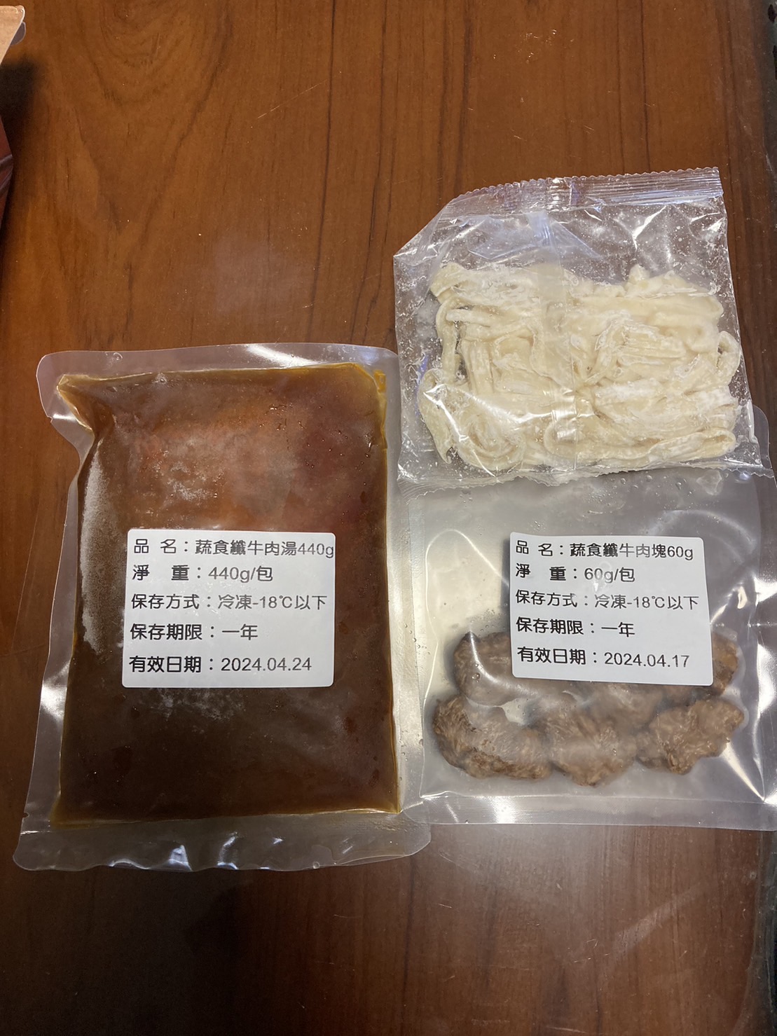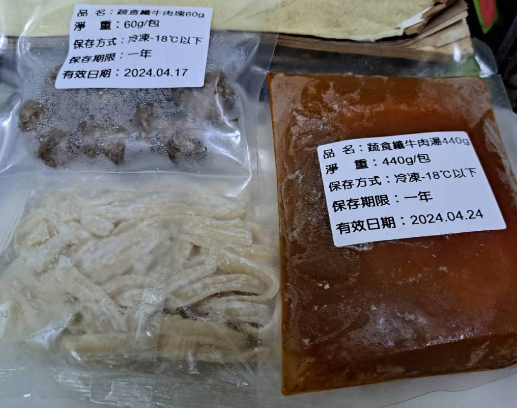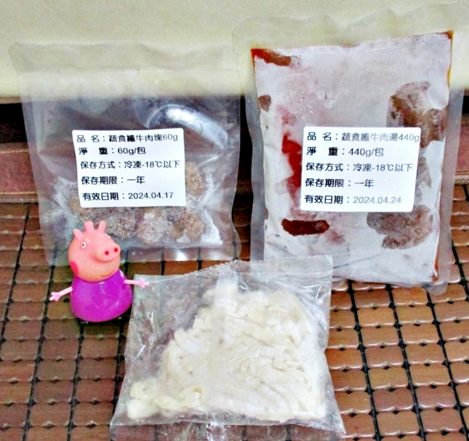 *舒植牛肉塊:水、大豆拉絲蛋白[水、大豆蛋白(非基因改造)、小麥蛋白、南瓜粉(南瓜、樹薯澱粉、大豆卵磷脂、混合濃縮生育醇(抗氧化劑))、可可粉、馬鈴薯澱粉、食鹽]、大豆組織蛋白[大豆蛋白(非基因改造)、小麥蛋白、玉米澱粉、水]、大豆沙拉油、油炸油[棕櫚油、消泡劑(矽樹脂)]、香菇、羥丙基磷酸二澱粉、甲基纖維素、蔬菜調味粉[麥芽糊精、食鹽、5'-次黃嘌呤核苷磷酸二鈉、5'-鳥嘌呤核苷磷酸二鈉、蔗糖、蔬菜粉(白蘿蔔萃取物、糊精)、高麗菜粉(麥芽糊精、高麗菜抽出物)、胺基乙酸、DL-胺基丙酸、琥珀酸二鈉、二氧化矽]、小麥蛋白、可可粉、食鹽、蔗糖、香料、DL-胺基丙酸、調味粉[酵母抽出物(酵母抽出物、糊精、食鹽、葵花油)、糊精、食鹽] 、L-麩酸鈉、調味劑(5'-次黃嘌呤核苷磷酸二鈉、5'-鳥嘌呤核苷磷酸二鈉)、酵母抽出物、白胡椒粒、甜味劑(D-山梨醇液70%)、琥珀酸二鈉