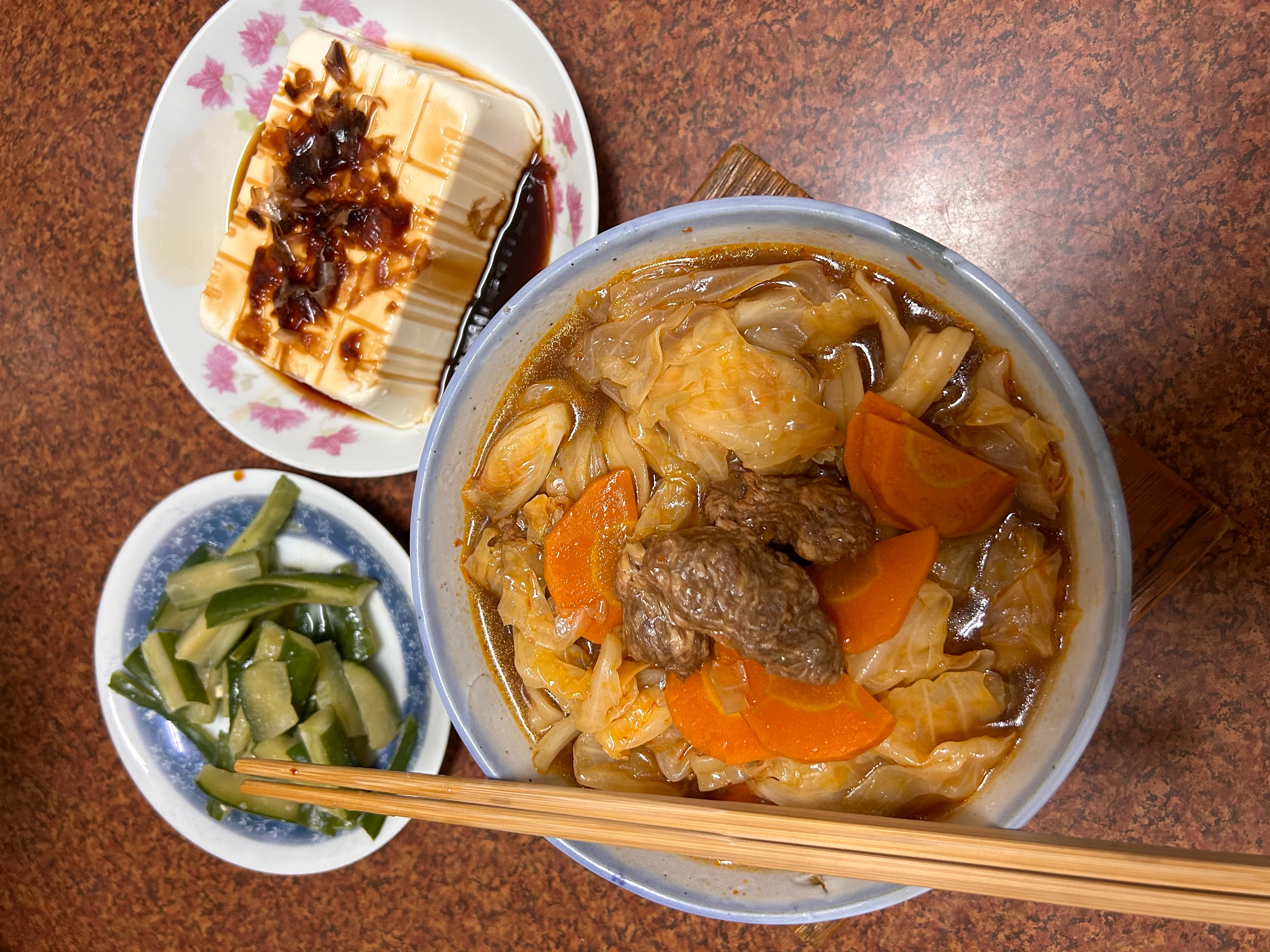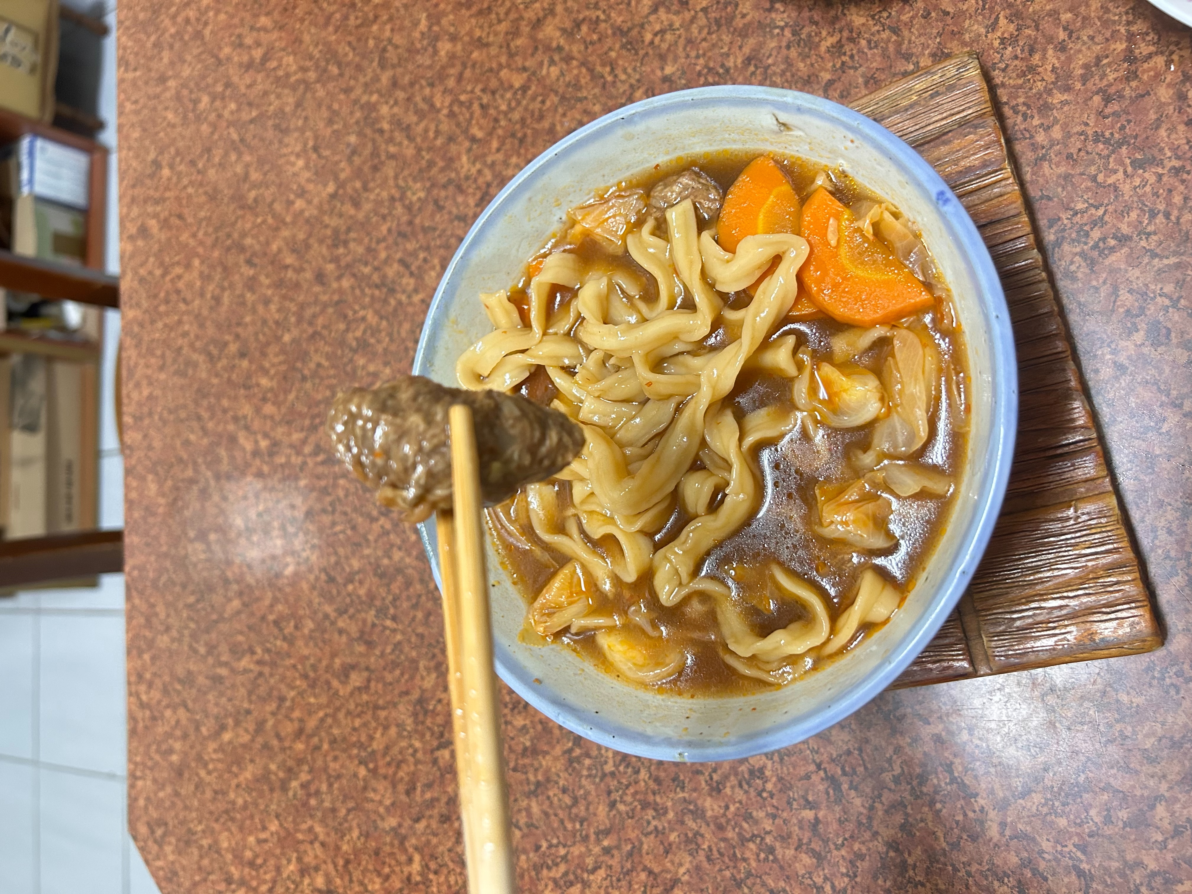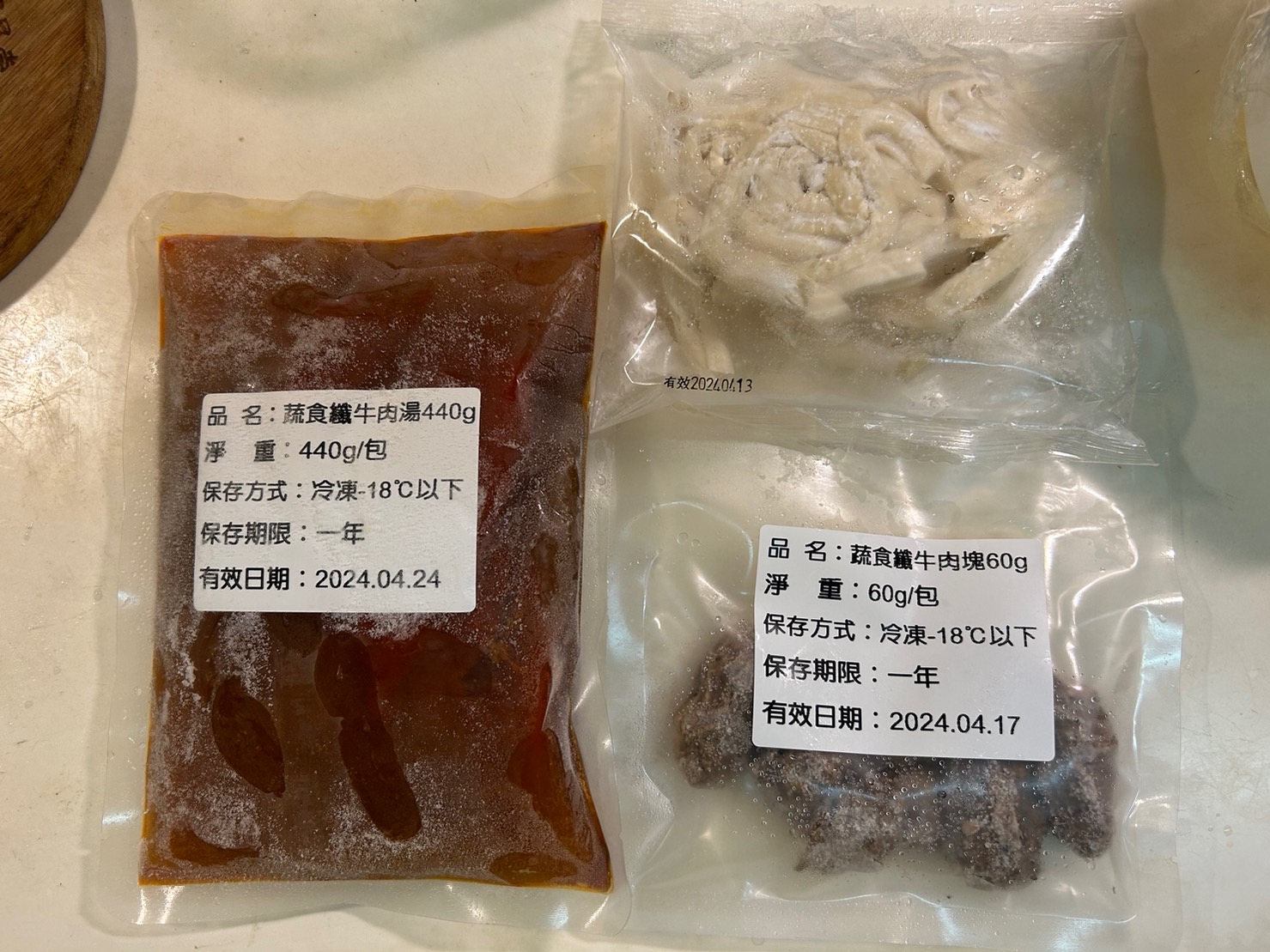 *舒植牛肉塊:水、大豆拉絲蛋白[水、大豆蛋白(非基因改造)、小麥蛋白、南瓜粉(南瓜、樹薯澱粉、大豆卵磷脂、混合濃縮生育醇(抗氧化劑))、可可粉、馬鈴薯澱粉、食鹽]、大豆組織蛋白[大豆蛋白(非基因改造)、小麥蛋白、玉米澱粉、水]、大豆沙拉油、油炸油[棕櫚油、消泡劑(矽樹脂)]、香菇、羥丙基磷酸二澱粉、甲基纖維素、蔬菜調味粉[麥芽糊精、食鹽、5'-次黃嘌呤核苷磷酸二鈉、5'-鳥嘌呤核苷磷酸二鈉、蔗糖、蔬菜粉(白蘿蔔萃取物、糊精)、高麗菜粉(麥芽糊精、高麗菜抽出物)、胺基乙酸、DL-胺基丙酸、琥珀酸二鈉、二氧化矽]、小麥蛋白、可可粉、食鹽、蔗糖、香料、DL-胺基丙酸、調味粉[酵母抽出物(酵母抽出物、糊精、食鹽、葵花油)、糊精、食鹽] 、L-麩酸鈉、調味劑(5'-次黃嘌呤核苷磷酸二鈉、5'-鳥嘌呤核苷磷酸二鈉)、酵母抽出物、白胡椒粒、甜味劑(D-山梨醇液70%)、琥珀酸二鈉